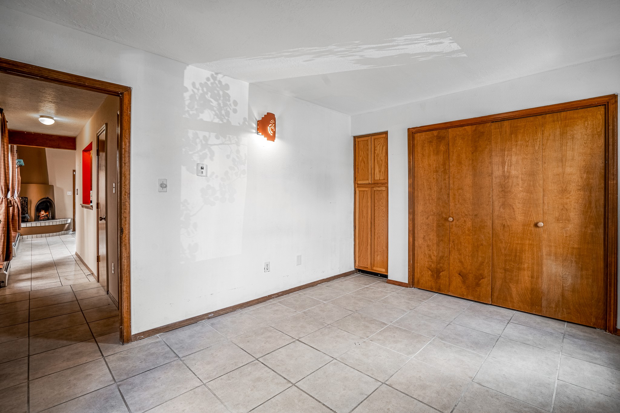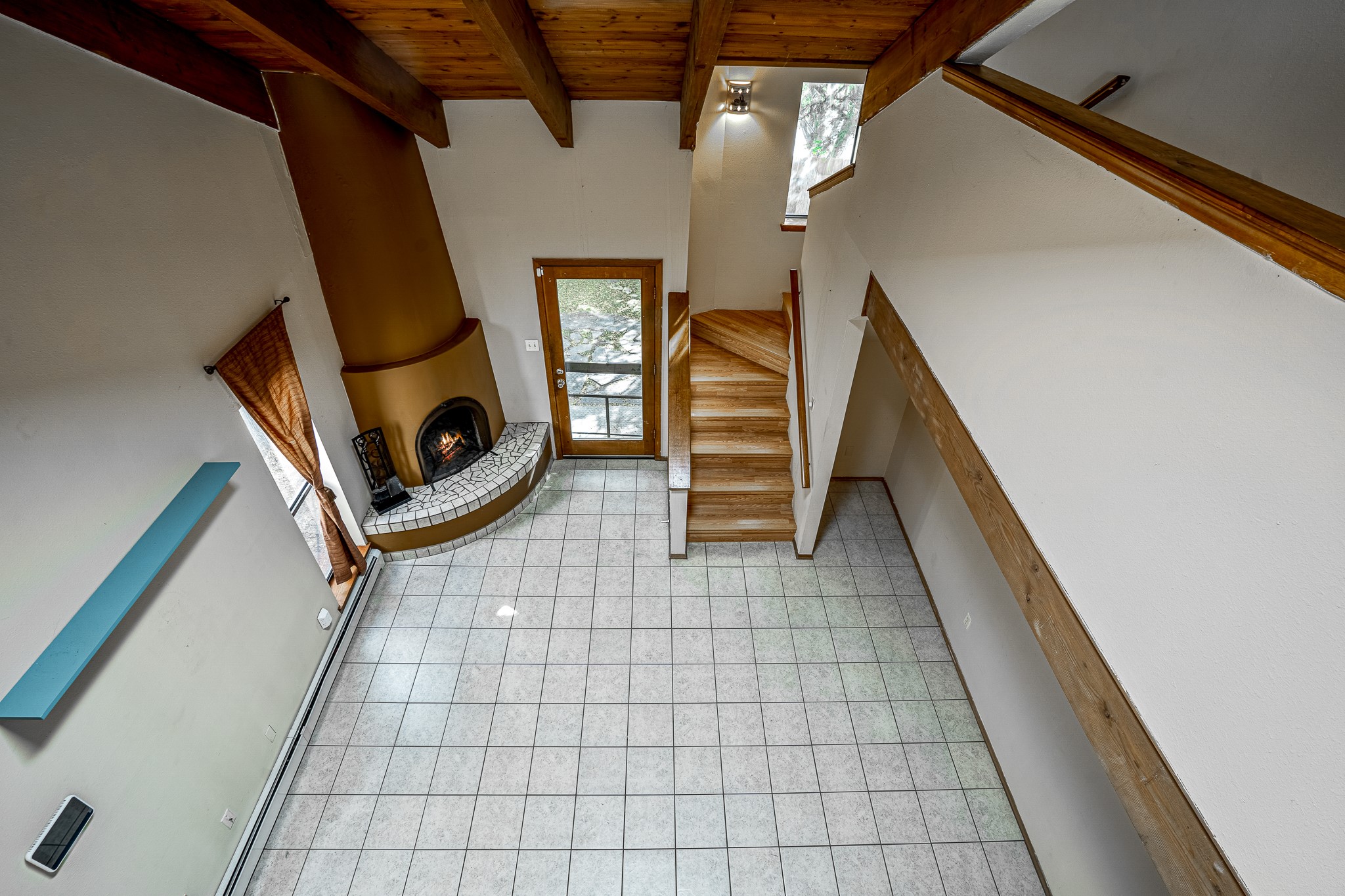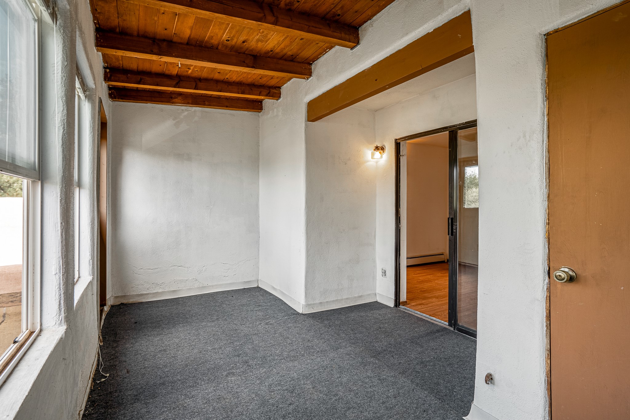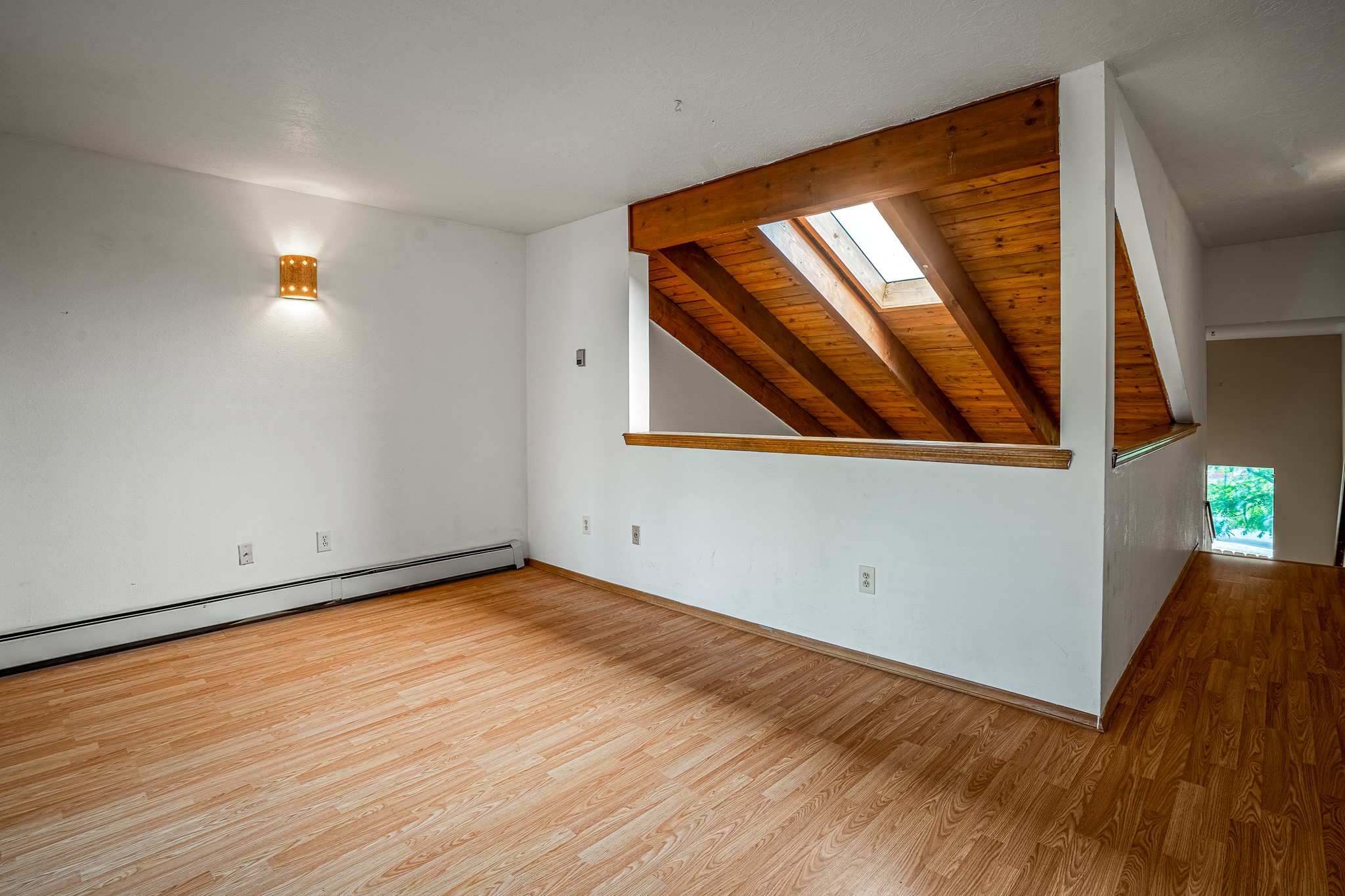 This home is centrally located with convenient access to everything that Santa Fe has to offer. With an abundance of natural light in the open-concept living space boasting high beamed ceilings and a beautiful wood-burning kiva fireplace. The shady backyard is fenced and private. The full bathroom and primary bedroom with lots of closet space are located on the first floor. On the second floor, there is a loft-style bedroom open to the living space below with a generously sized sunroom/bonus room. The home comes with two designated parking spaces off Avenida de Las Americas.