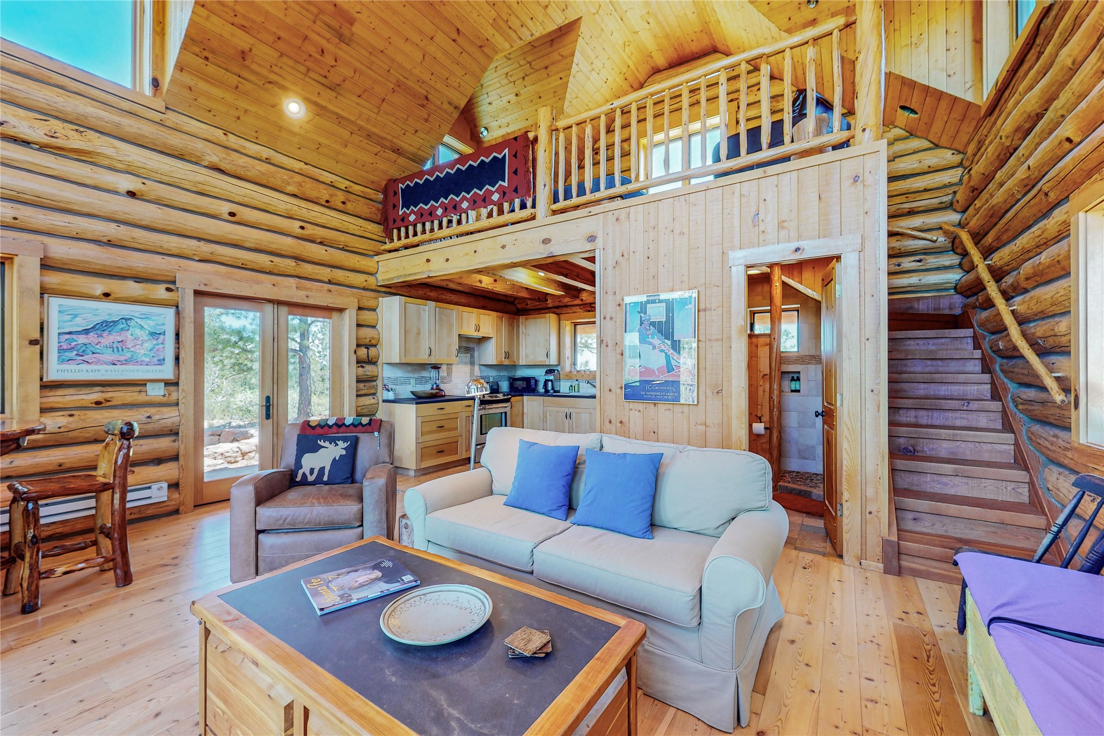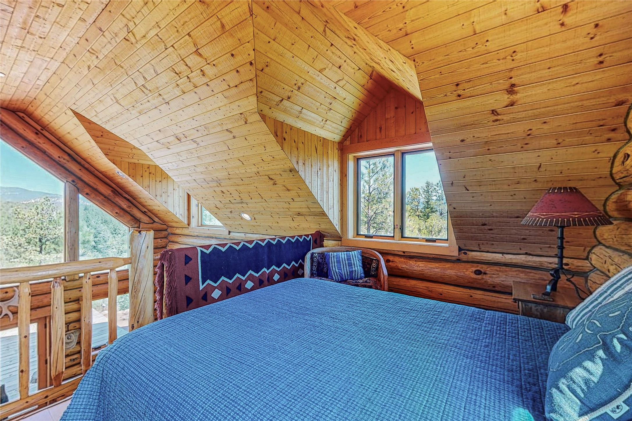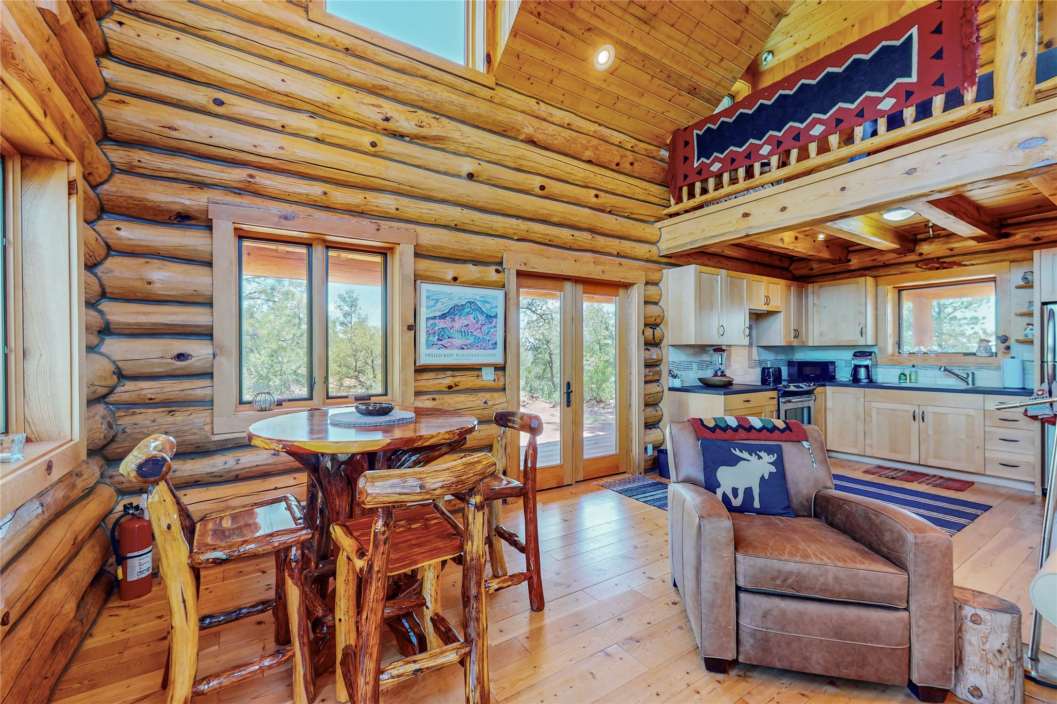 VERY RARE, amazing custom built log cabin with stunning 360 views offered to sale for the first time. Located at the top of Los Altos de Cicuye a portion of the property we have been told was the sacred Medicine hill for the Pecos Pueblo and the remains of a Kiva are present. The home was built by Pecos Trail Contractors, the premier builder in the area and the details of the construction are significant. Properties such as this one are rarely available For folks seeking a quality, log cabin please consider Los Altos de Cicuye.