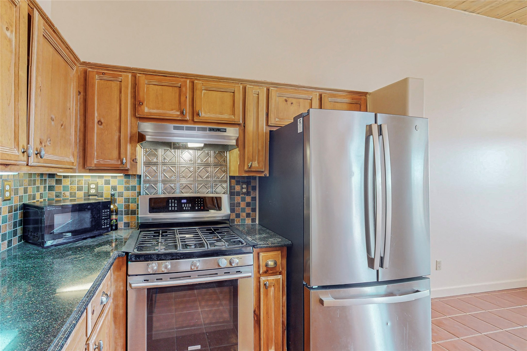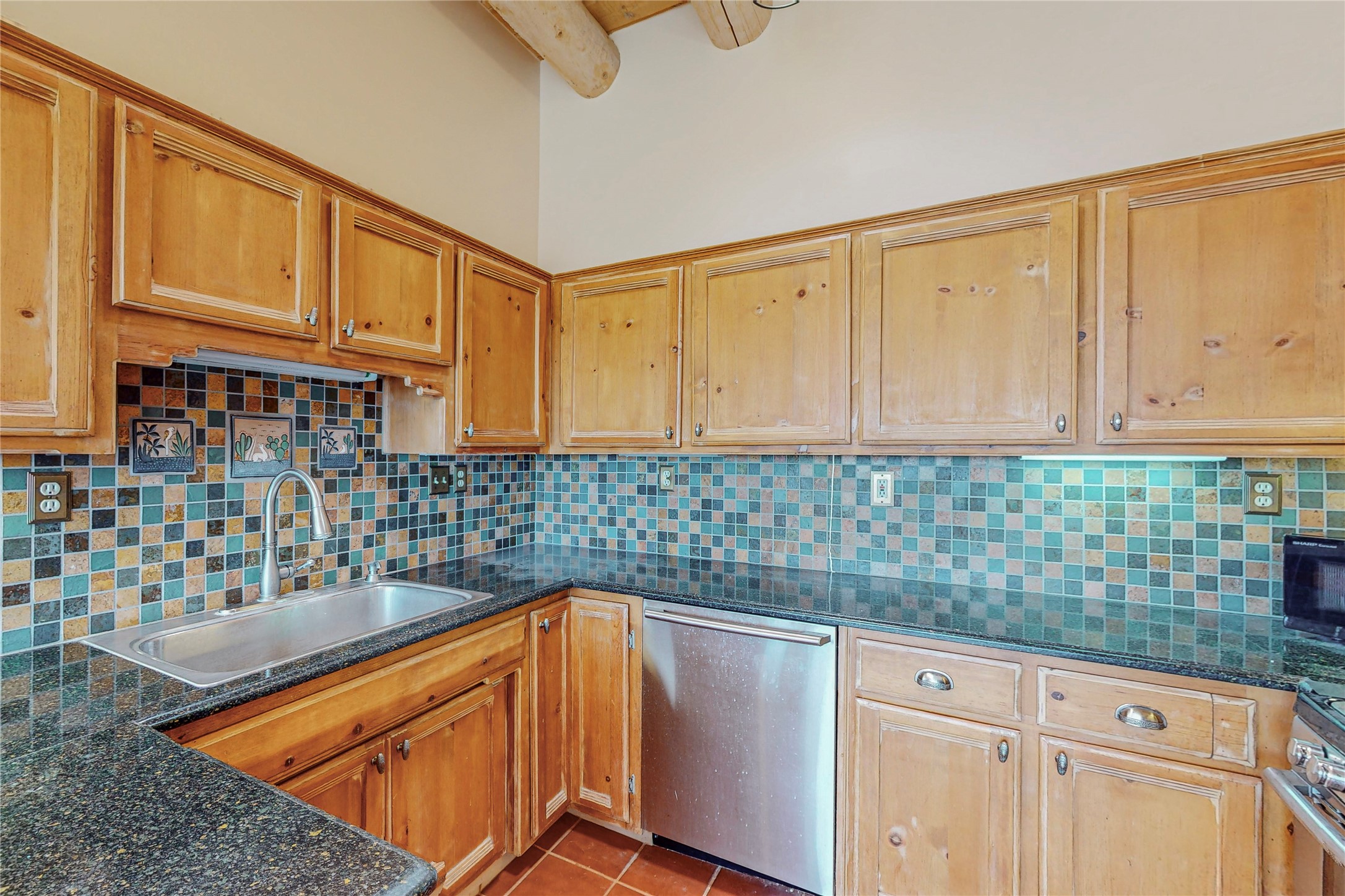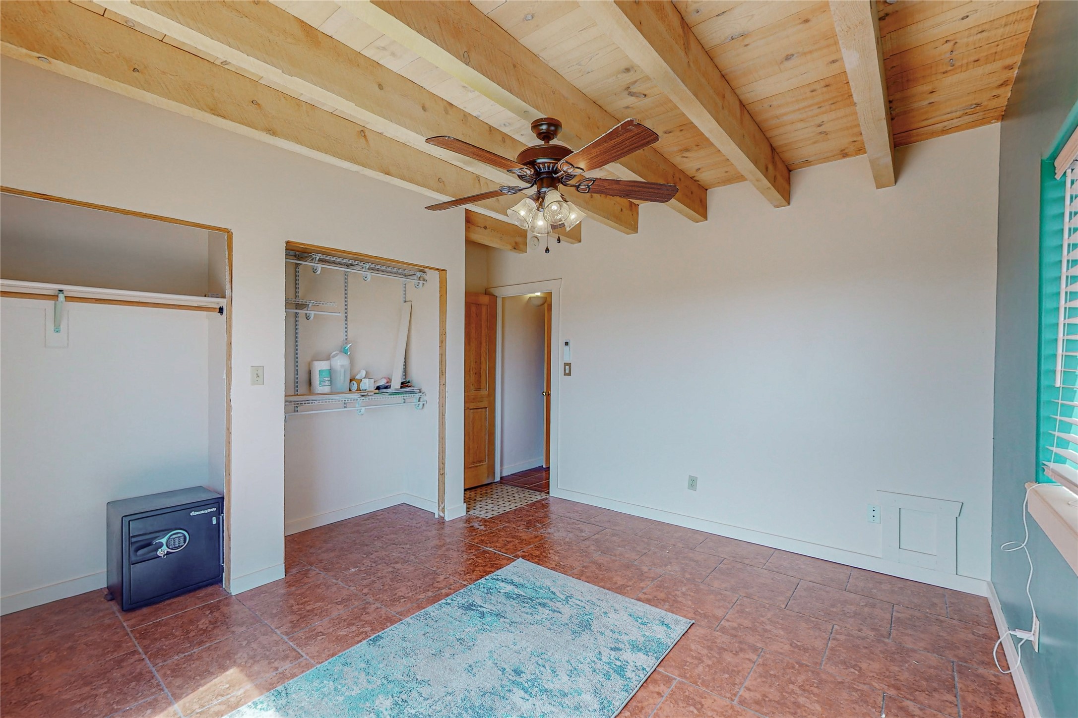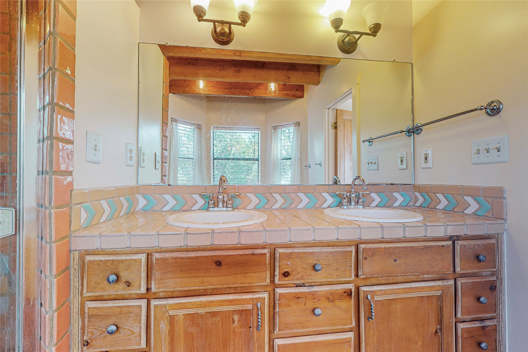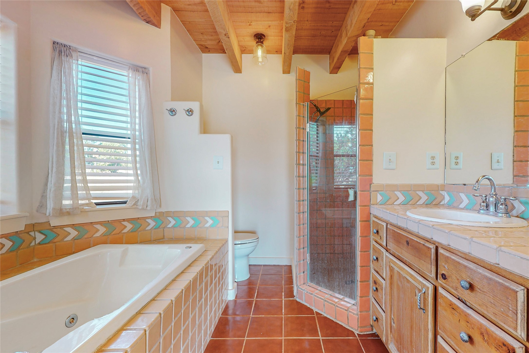 A rare exceptionally semi-private location with no thru streets and minimal ambient noise. Lot backs to a large greenbelt with direct access to social paths and the rail trail. East side of lot borders a retired historic railroad spur that runs between the Santa Fe Railyard and Lamy. The spur and subsequent train cars are occasionally used for slow-roll excursions and Hollywood movie sets (Oppenheimer). The east side of the home also features a flagstone patio with lovely views. The quaint home offers a super bright and light open flow passive solar design with high ceilings adding to spacious feel. Flexible floor plan. Great separation between owner's suite and the 2 guest bedrooms. Livingroom with corner kiva fireplace can be converted back to gas. Freshly painted throughout the interior; the canales, stucco and overhangs newly maintained. All appliances are newer, along with chef sink. New lighting in kitchen, foyer, & bathrooms.Three mini-splits were installed in 2021 for extra heating and cooling. There is a 2-car garage with circular driveway and guest parking. A large wood deck spans the length of the home. All this plus Eldorado amenities, Senior Center, Library, local shopping and only minutes into Santa Fe.