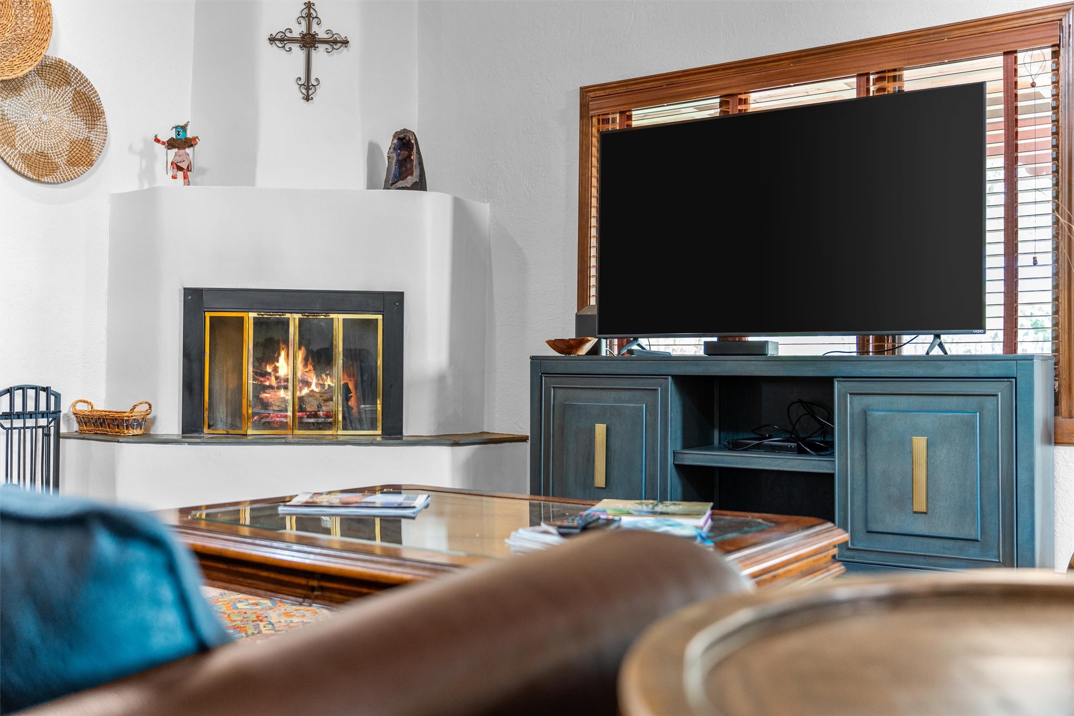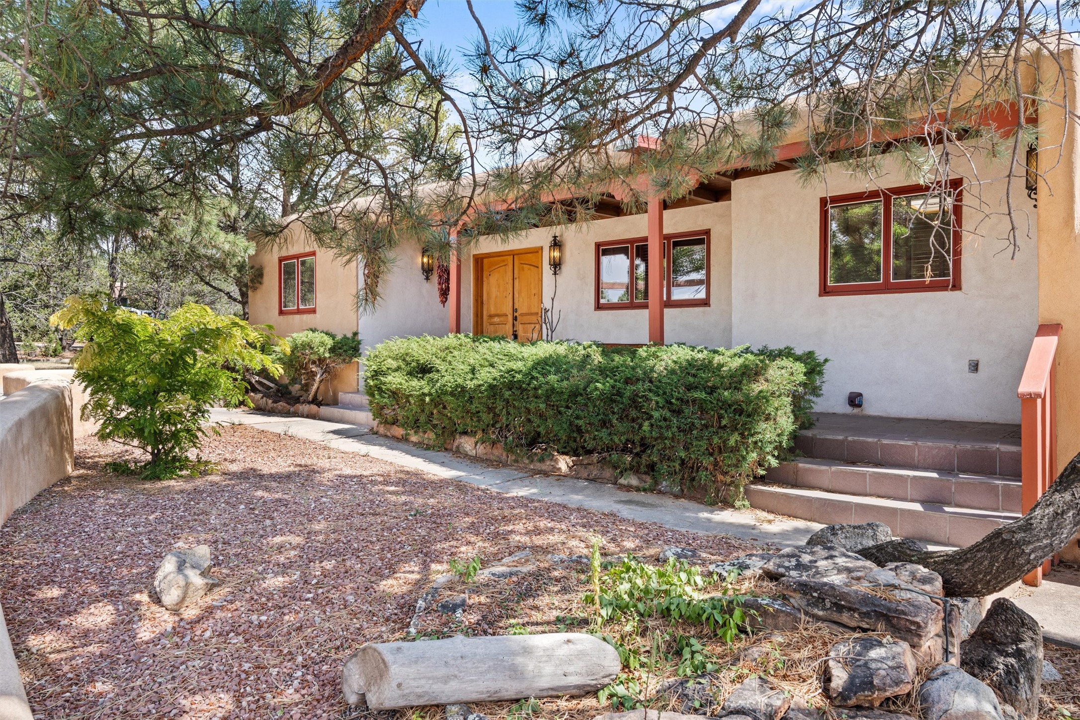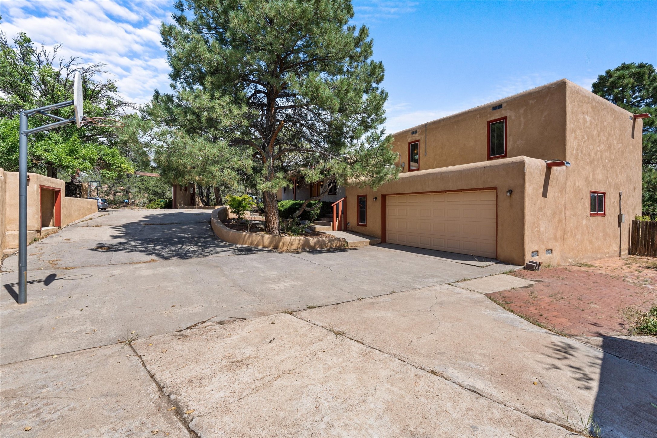 Introducing a magnificent Santa Fe gem! This sprawling split-level home offers 3447 square feet of luxurious living space, featuring 4 spacious bedrooms and 3 bathrooms.As you step inside, you'll be captivated by the warm and inviting atmosphere created by the 3 wood-burning fireplaces throughout the home. The living areas have high wood-beamed ceilings, with rustic elegance that Santa Fe is renowned for. The tiled flooring and hard wood have timeless charm while ensuring easy maintenance.All furnishings negotiableStep outside on the front and back porches, perfect for savoring the breathtaking Santa Fe sunsets or hosting gatherings. The over quarter-acre lot is a true oasis on a drip/sprinkler system. With its spacious layout, classic Santa Fe touches, and thoughtful amenities, this home won't last!