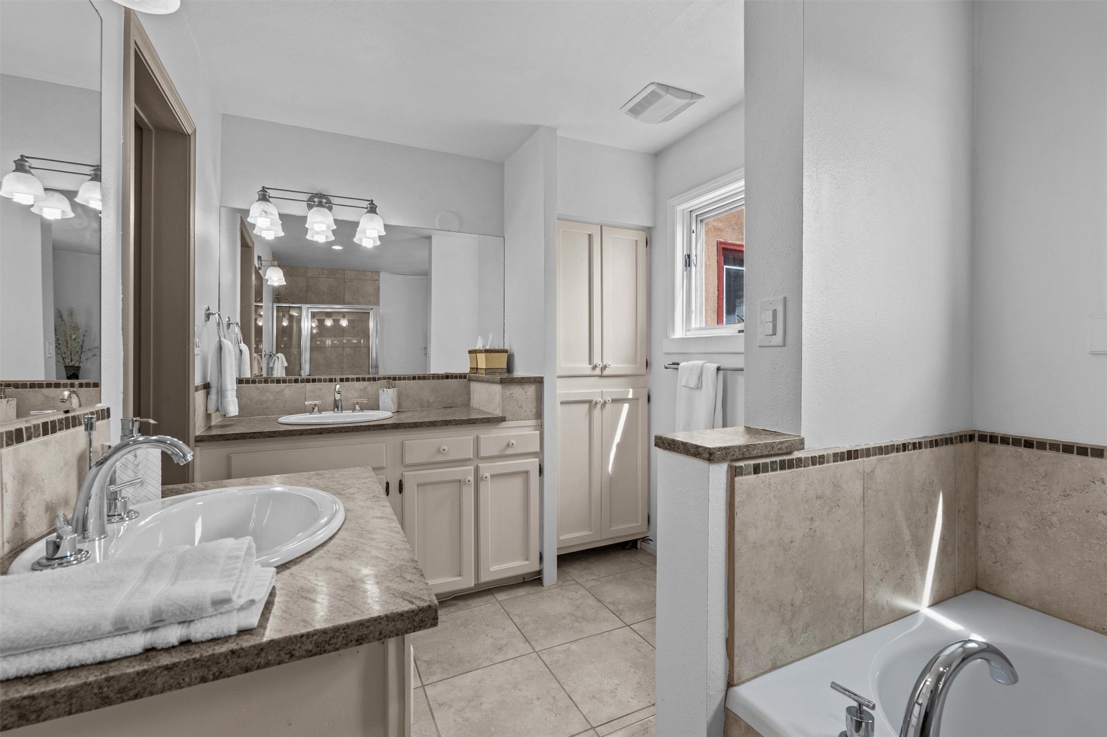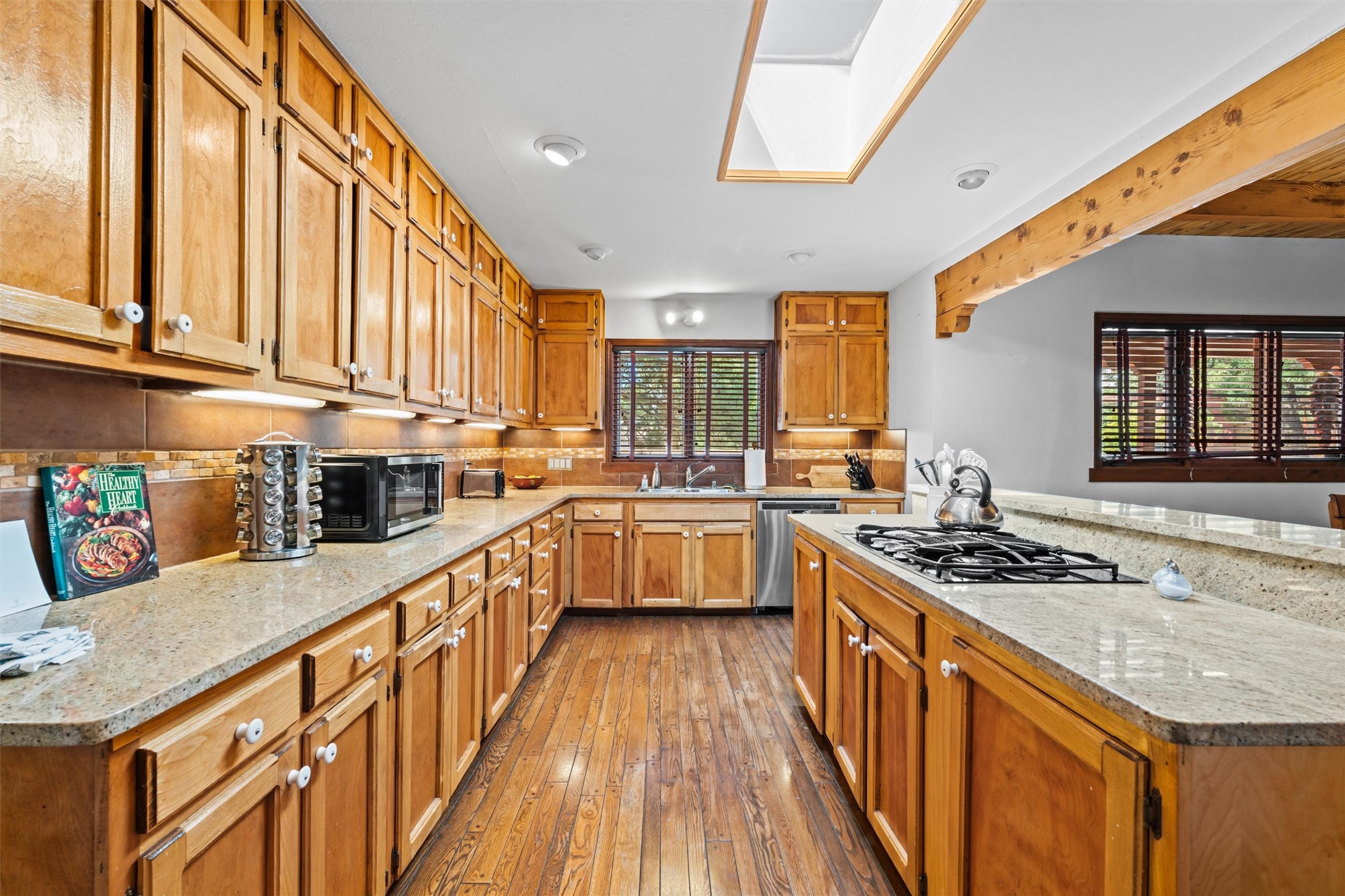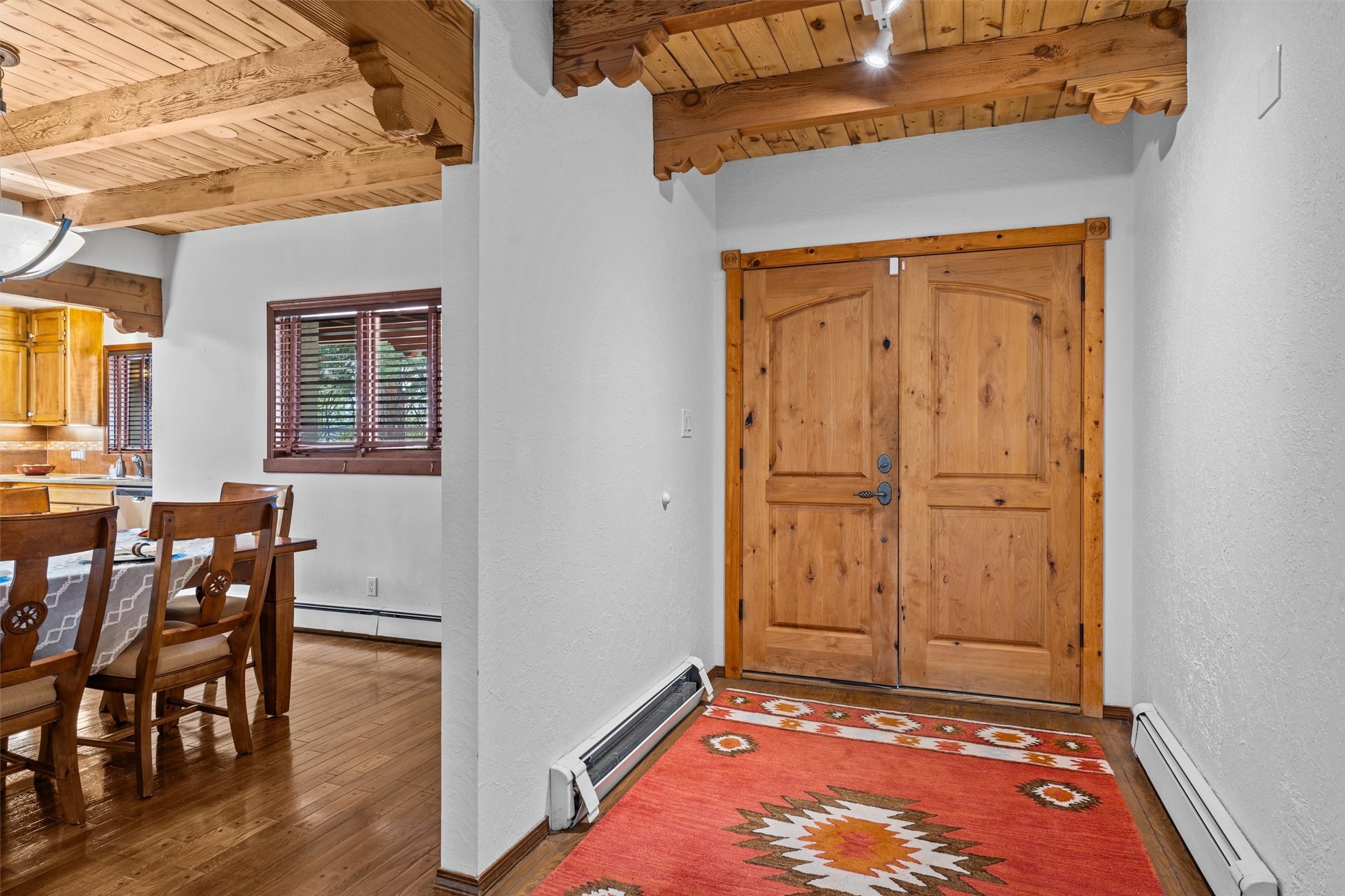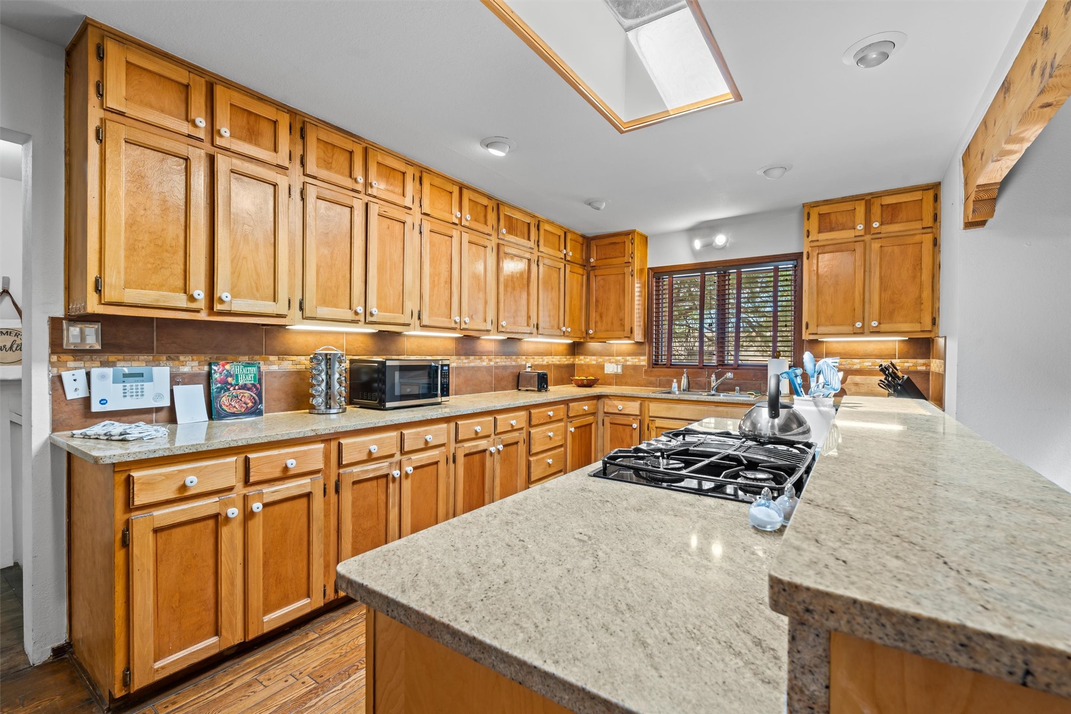 Introducing a magnificent Santa Fe gem! This sprawling split-level home offers 3447 square feet of luxurious living space, featuring 4 spacious bedrooms and 3 bathrooms.As you step inside, you'll be captivated by the warm and inviting atmosphere created by the 3 wood-burning fireplaces throughout the home. The living areas have high wood-beamed ceilings, with rustic elegance that Santa Fe is renowned for. The tiled flooring and hard wood have timeless charm while ensuring easy maintenance.All furnishings negotiableStep outside on the front and back porches, perfect for savoring the breathtaking Santa Fe sunsets or hosting gatherings. The over quarter-acre lot is a true oasis on a drip/sprinkler system. With its spacious layout, classic Santa Fe touches, and thoughtful amenities, this home won't last!