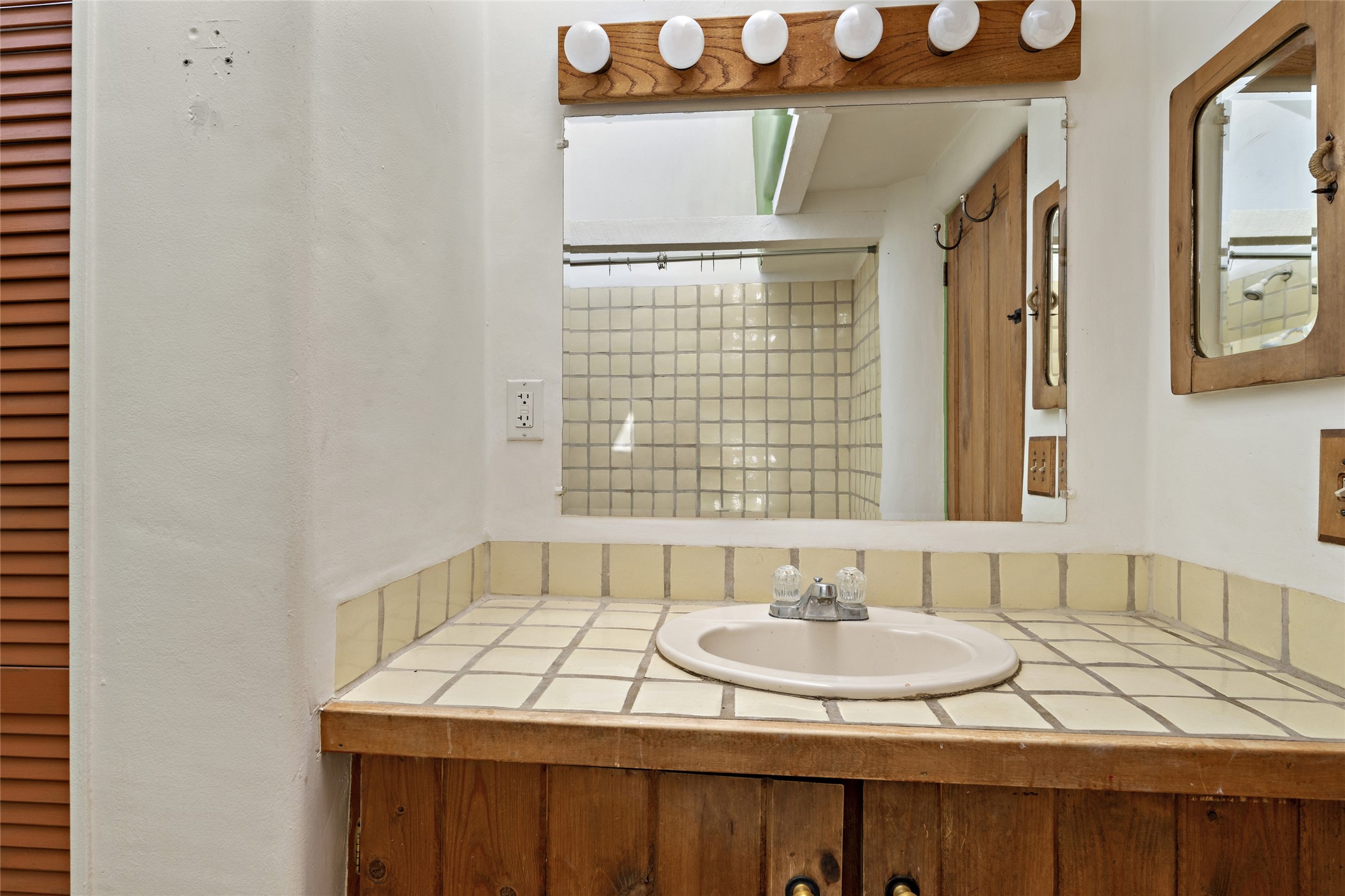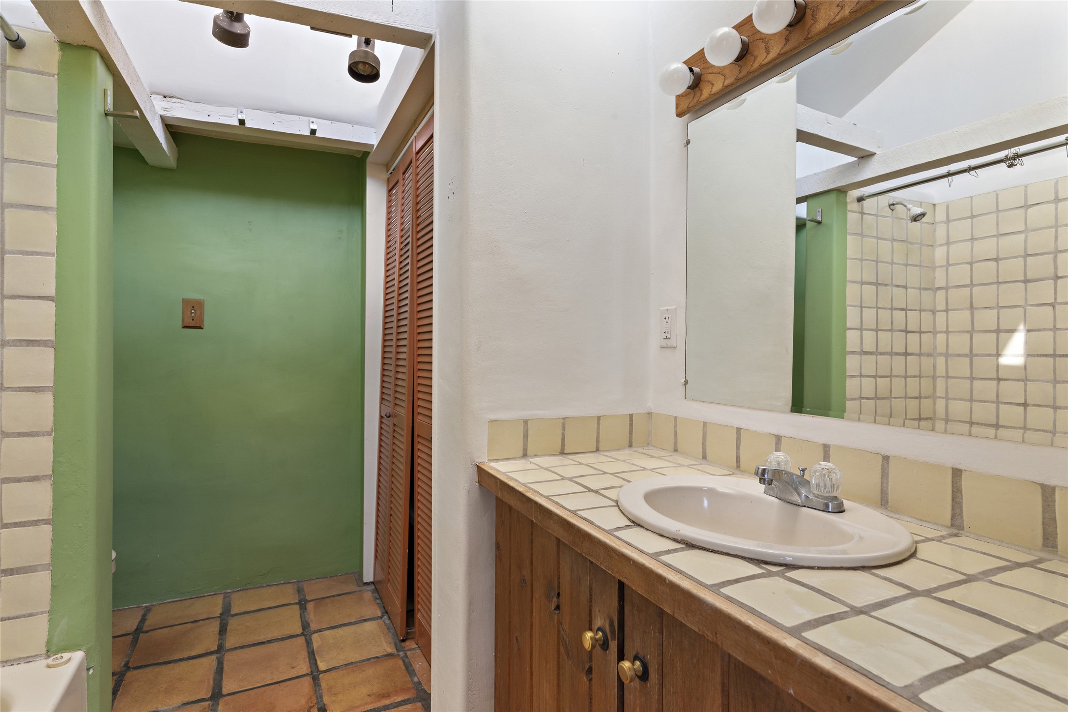 Nestled along the banks of the Galisteo Creek, this sweet original adobe/double adobe home is sited on a picturesque 0.75 +/- acres. There is a large outdoor courtyard with private and captivating views of the gardens, the Galisteo valley and bosque. The functionality of the home lends itself to be 1 to 3 bedroom spaces with plenty of natural light - ideal for artists and studio space. There is a full bathroom and kitchen off the living area. Architectural features include a large wood-burning fireplace, vigas, latillas, antique mesquite doors in the bedroom and kitchen pantry, as well as flagstone, Saltillo tile and wood flooring. A mechanical room doubles as a laundry room with a washer, dryer and utility sink. 5B La Otra Vanda is being offered by the seller for purchase as well.