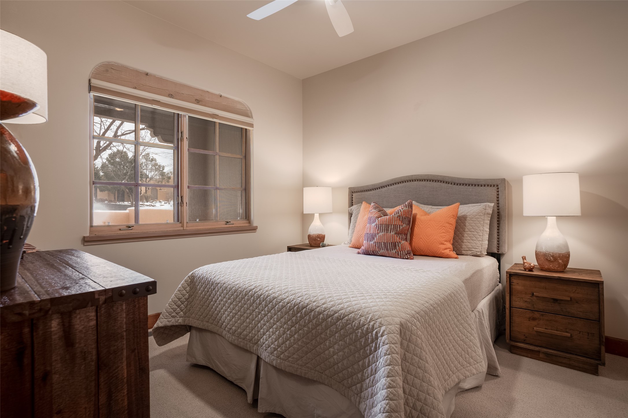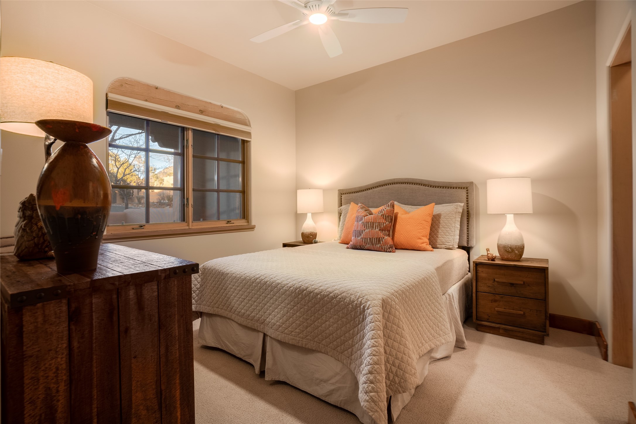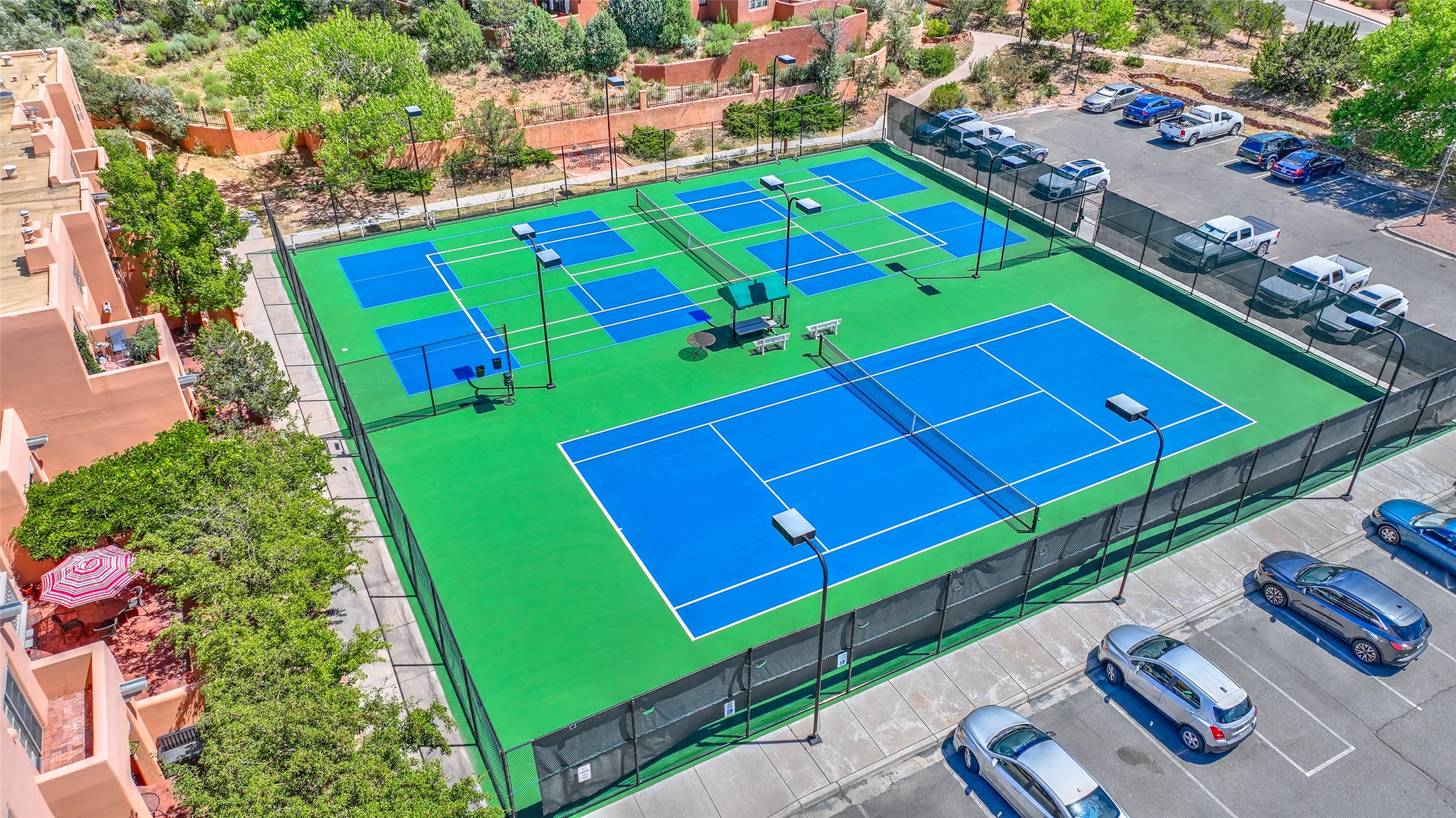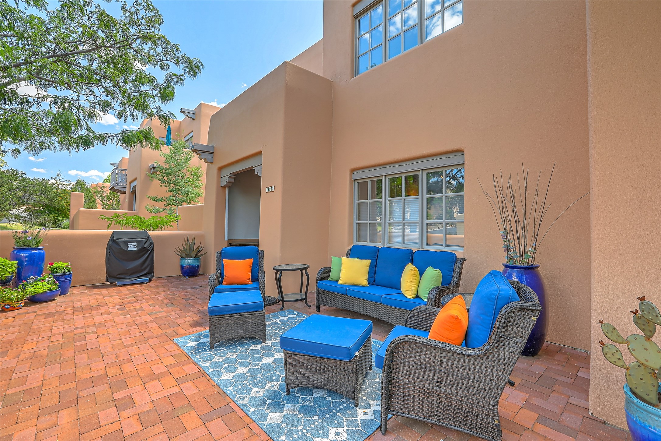 How about living with many amenities including golf, tennis, indoor swimming pool, therapeutic pool, and numerous events with music concerts & bird walks at Quail Run? Improved Condo with new Hunter Douglas cellular shades ; new Karastan berber carpet in bedrooms; cleaned & sealed Saltillo floors; new frameless shower door in guest bath; new LG ThinQ washer and dryer; removal of Primary bathtub & tile with a new walk-in colorfully tiled primary bathroom Shower. Simple Human three-piece soap/shampoo/conditioner dispensers in both bathrooms. Installation of dimmer switches; replacement of shower ceiling lights in both shower areas, vent fan motors were replaced; all door stops, smoke & carbon monoxide detectors replaced; and an installation of a new dining room light. This unique location is on the first floor, and is an end unit. Patio faces Sun Mountain. There is one assigned underground parking space. Interior of condo has been repainted. And the owners installed a new furnace & air conditioner, a Bryant split HVAC Unit!! There is also an opportunity to have this as a primary or second home and/or as a rental unit with an on-site company. The bedrooms have room darkening shades that include a privacy panel. In addition, there are upgraded bathroom sink faucets, shower fixtures, towel rods, & toilet paper holders. Installation of a Honeywell Wi-Fi programmable thermostat. Replacement of the gas four-burner stovetop. Cabinet pulls & knobs have been upgraded. The monthly COA Association Fee includes the 24-hour gated/security entrance, 9-hole golf course, indoor swimming pool. Approximately dining at The Grille, $430.00 annually. The COA is $1,430 monthly, based on sq.ft. .Water & Sewer $31.66 assessment. Recycling $20.21 assessment. And Condo water use.