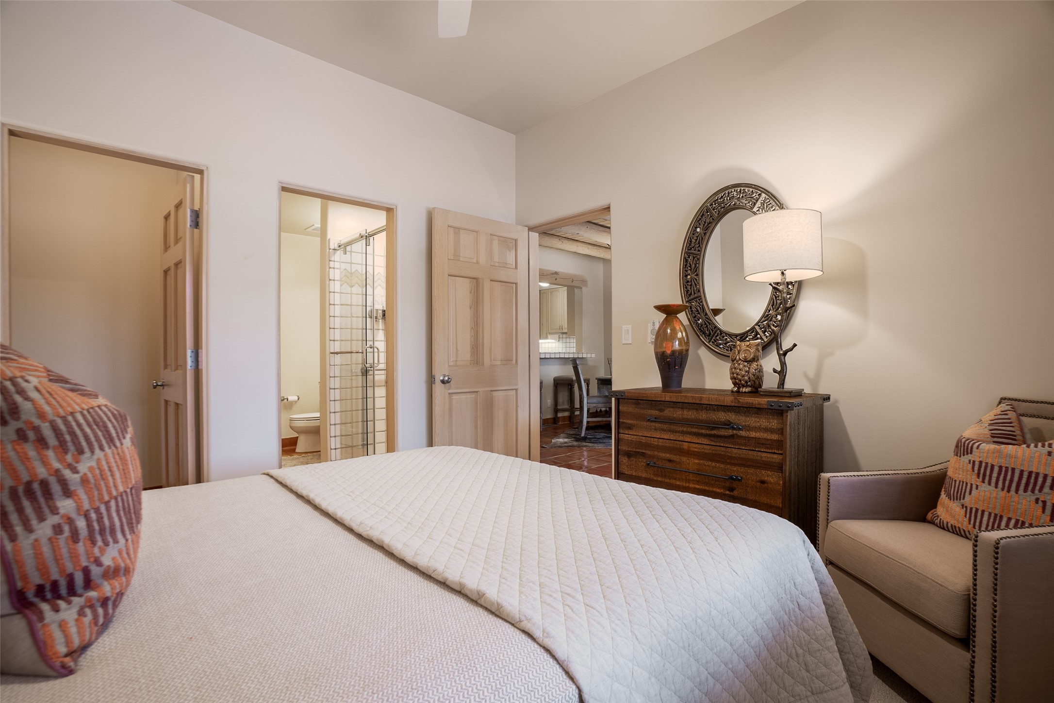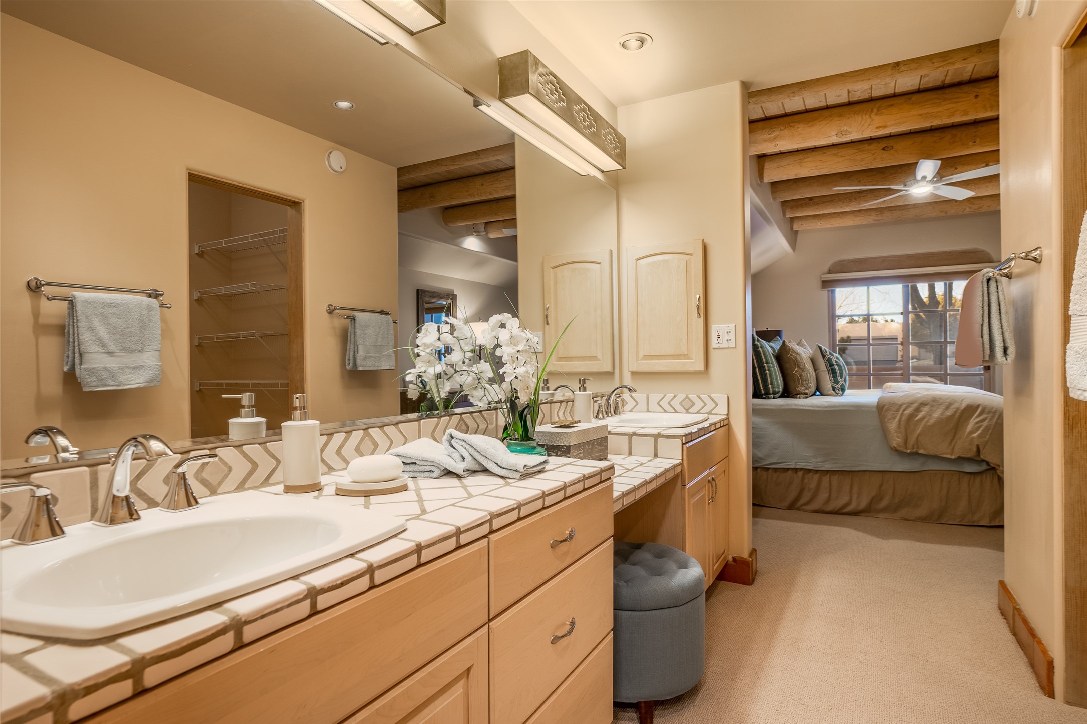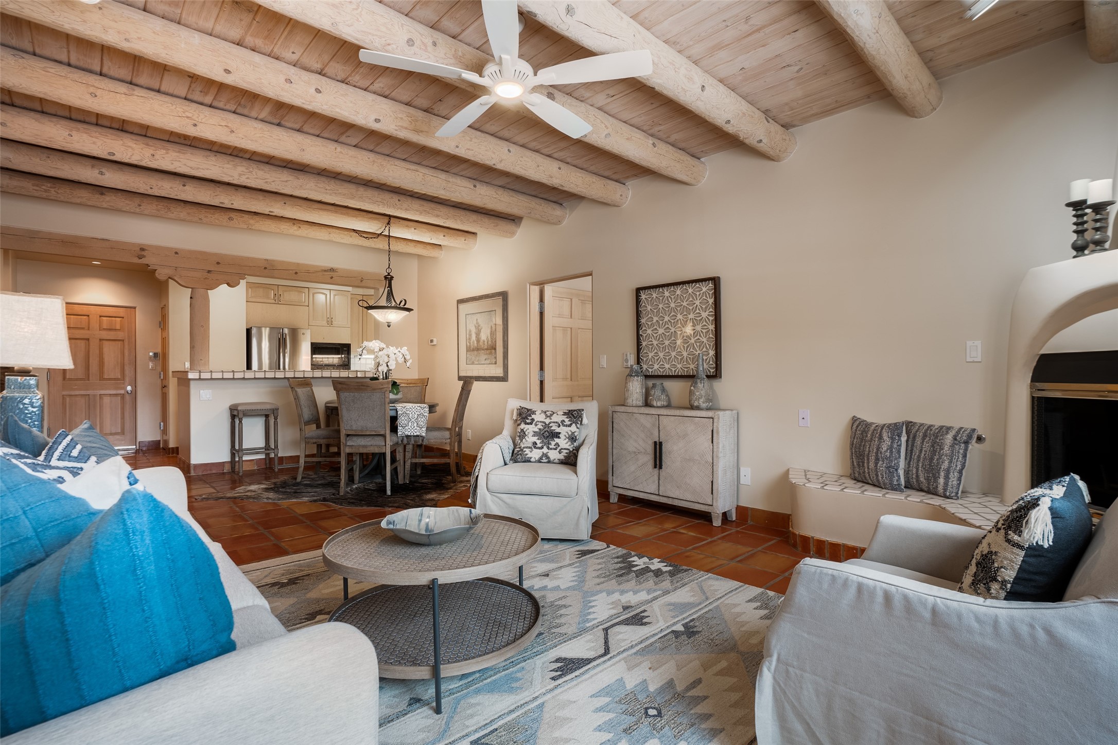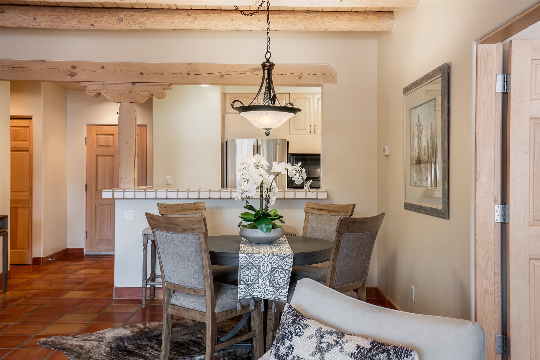 How about living with many amenities including golf, tennis, indoor swimming pool, therapeutic pool, and numerous events with music concerts & bird walks at Quail Run? Improved Condo with new Hunter Douglas cellular shades ; new Karastan berber carpet in bedrooms; cleaned & sealed Saltillo floors; new frameless shower door in guest bath; new LG ThinQ washer and dryer; removal of Primary bathtub & tile with a new walk-in colorfully tiled primary bathroom Shower. Simple Human three-piece soap/shampoo/conditioner dispensers in both bathrooms. Installation of dimmer switches; replacement of shower ceiling lights in both shower areas, vent fan motors were replaced; all door stops, smoke & carbon monoxide detectors replaced; and an installation of a new dining room light. This unique location is on the first floor, and is an end unit. Patio faces Sun Mountain. There is one assigned underground parking space. Interior of condo has been repainted. And the owners installed a new furnace & air conditioner, a Bryant split HVAC Unit!! There is also an opportunity to have this as a primary or second home and/or as a rental unit with an on-site company. The bedrooms have room darkening shades that include a privacy panel. In addition, there are upgraded bathroom sink faucets, shower fixtures, towel rods, & toilet paper holders. Installation of a Honeywell Wi-Fi programmable thermostat. Replacement of the gas four-burner stovetop. Cabinet pulls & knobs have been upgraded. The monthly COA Association Fee includes the 24-hour gated/security entrance, 9-hole golf course, indoor swimming pool. Approximately dining at The Grille, $430.00 annually. The COA is $1,430 monthly, based on sq.ft. .Water & Sewer $31.66 assessment. Recycling $20.21 assessment. And Condo water use.