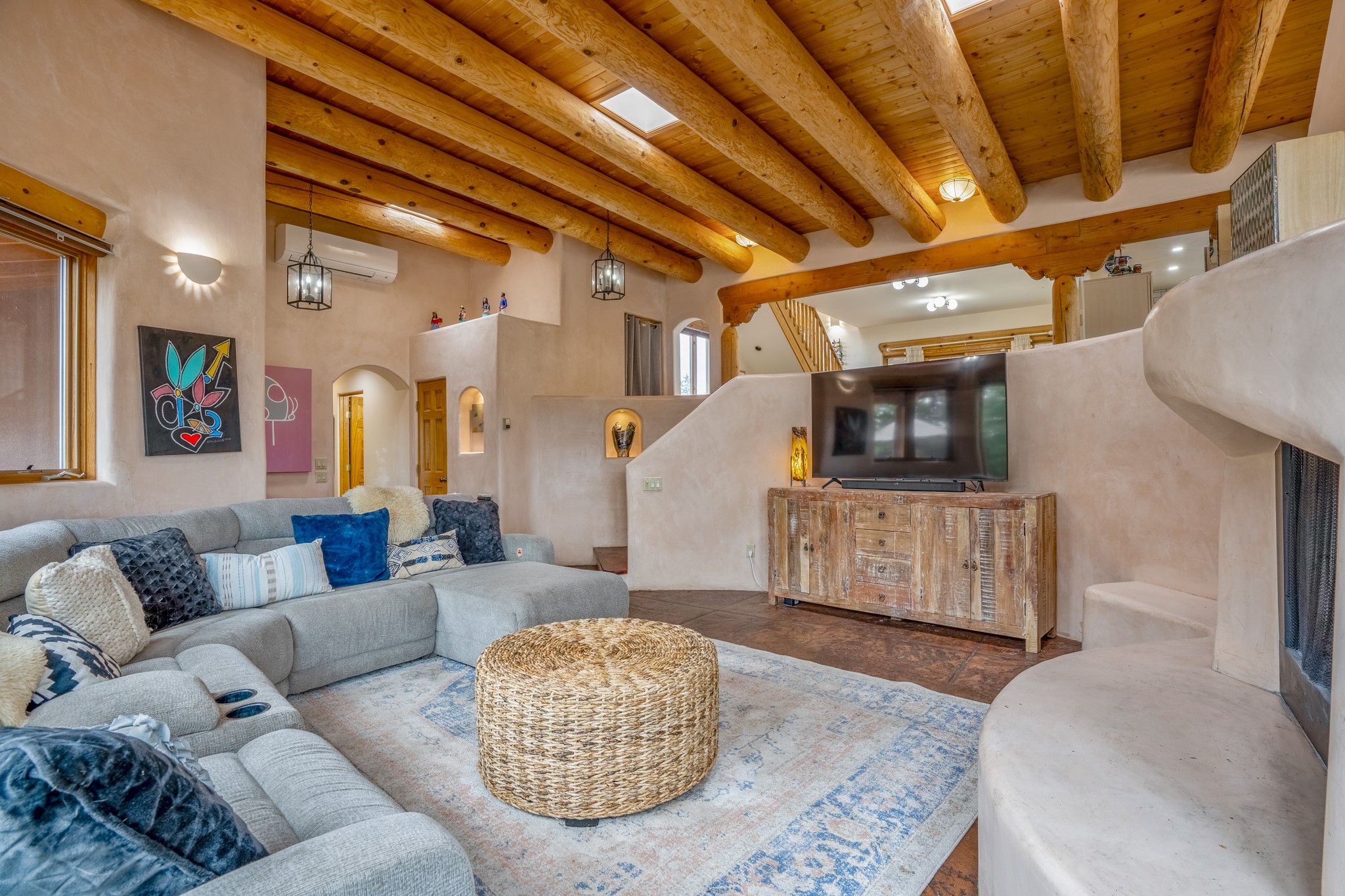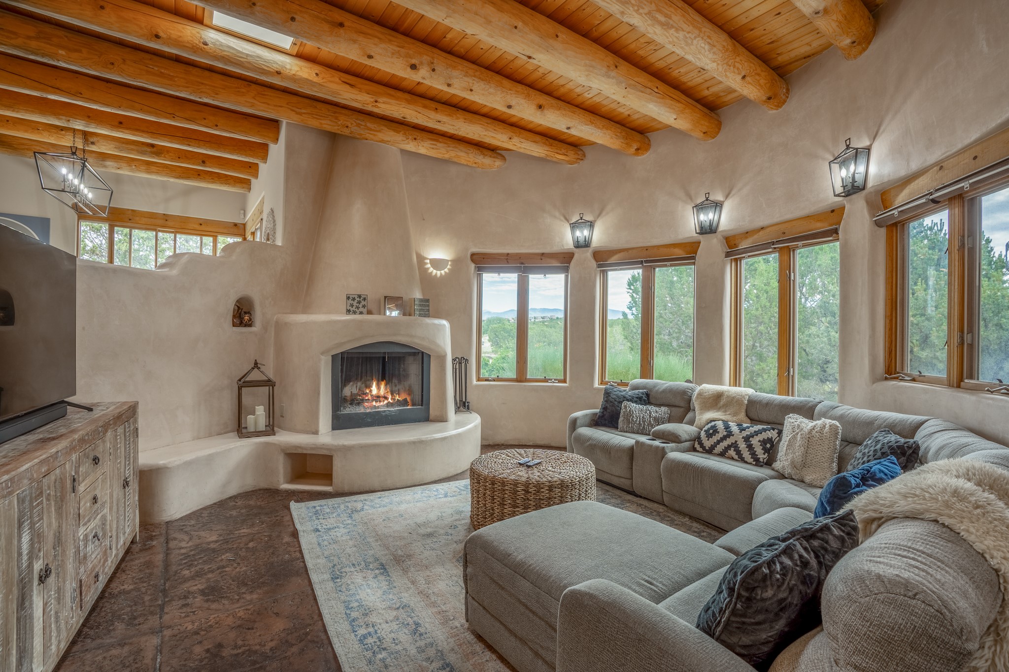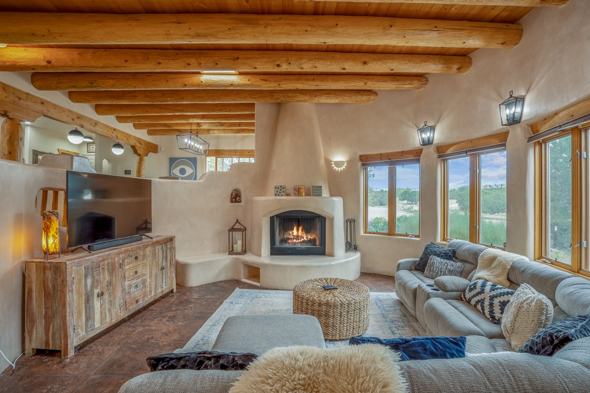 Exquisite Santa Fe Retreat with Mountain Views.Welcome to your dream home at 6 Bosque Azul in Santa Fe, New Mexico! This property offers a unique blend of serenity, style, and modern comfort.Spectacular Mountain Views: Every morning, you'll wake up to the awe-inspiring sights of the Sangre De Cristo Mountain Range. Nature's beauty is right at your doorstep.Custom Architectural Wonder: This isn't just a house; it's a masterpiece in the classic Pueblo adobe style. Crafted with care and precision, this home reflects Santa Fe's rich architectural heritage.Spacious 1.75 Acre Lot: Spread out and savor the freedom on this expansive 1.75-acre property. There's room for all your dreams here.Perfect Central Location: A mere 16-minute drive takes you to the historic Santa Fe Plaza, while I-25 is just 12 minutes away for convenient travel. It's all about location, and this one is golden.Gourmet Kitchen with a View: Prepare meals in a stunning kitchen with breathtaking views from the dining table. Gather around the cozy kiva fireplace and admire the authentic vigas while basking in the abundant natural light.Private Second-Story Primary: Upstairs, the Primary suite is a haven of luxury. Enjoy the soaking tub with views that will take your breath away. Your oasis of calm awaits.Abundant Santa Fe Charm: This home exudes charm with plaster walls, nichos, and a style that's quintessentially Santa Fe.Horse Lover's Delight: You can have two horses here, so bring your equine companions and enjoy the equestrian lifestyle.Roof Warranty: Your peace of mind is guaranteed with two years left on the roof warranty from Santa Fe Stucco and Roofing.This is not just a home; it's a lifestyle upgrade waiting to happen. Are you ready to make this Santa Fe sanctuary your own? Schedule a private tour and start living your dream!