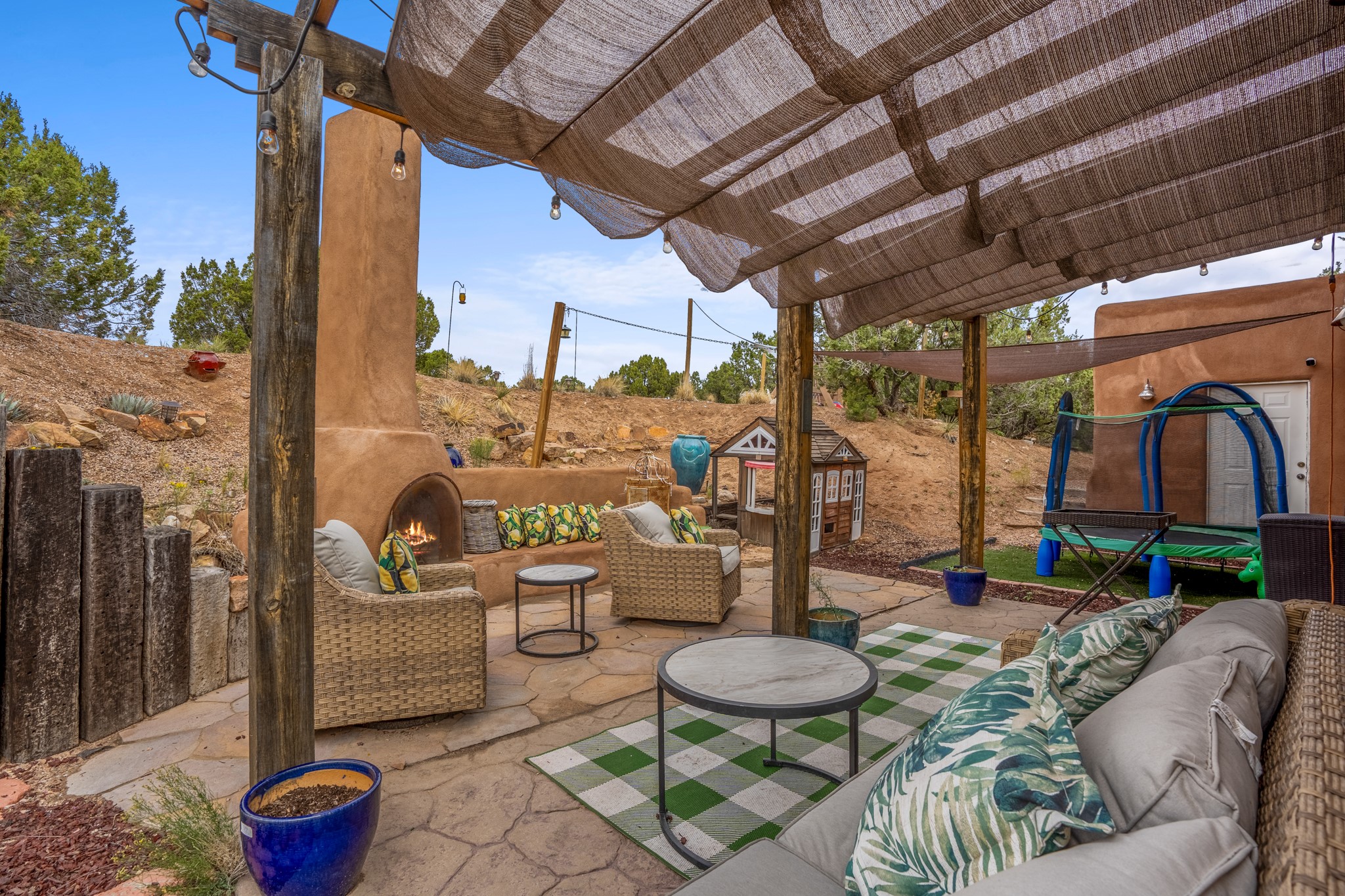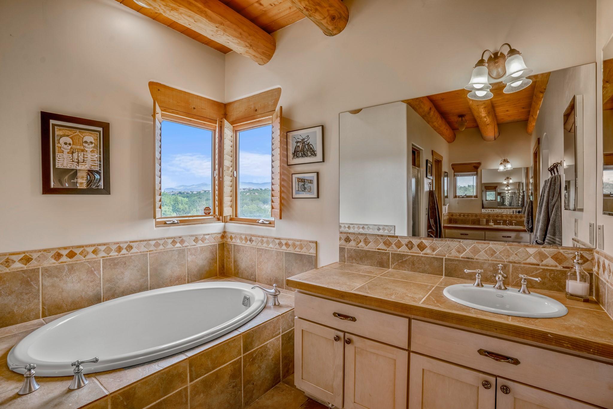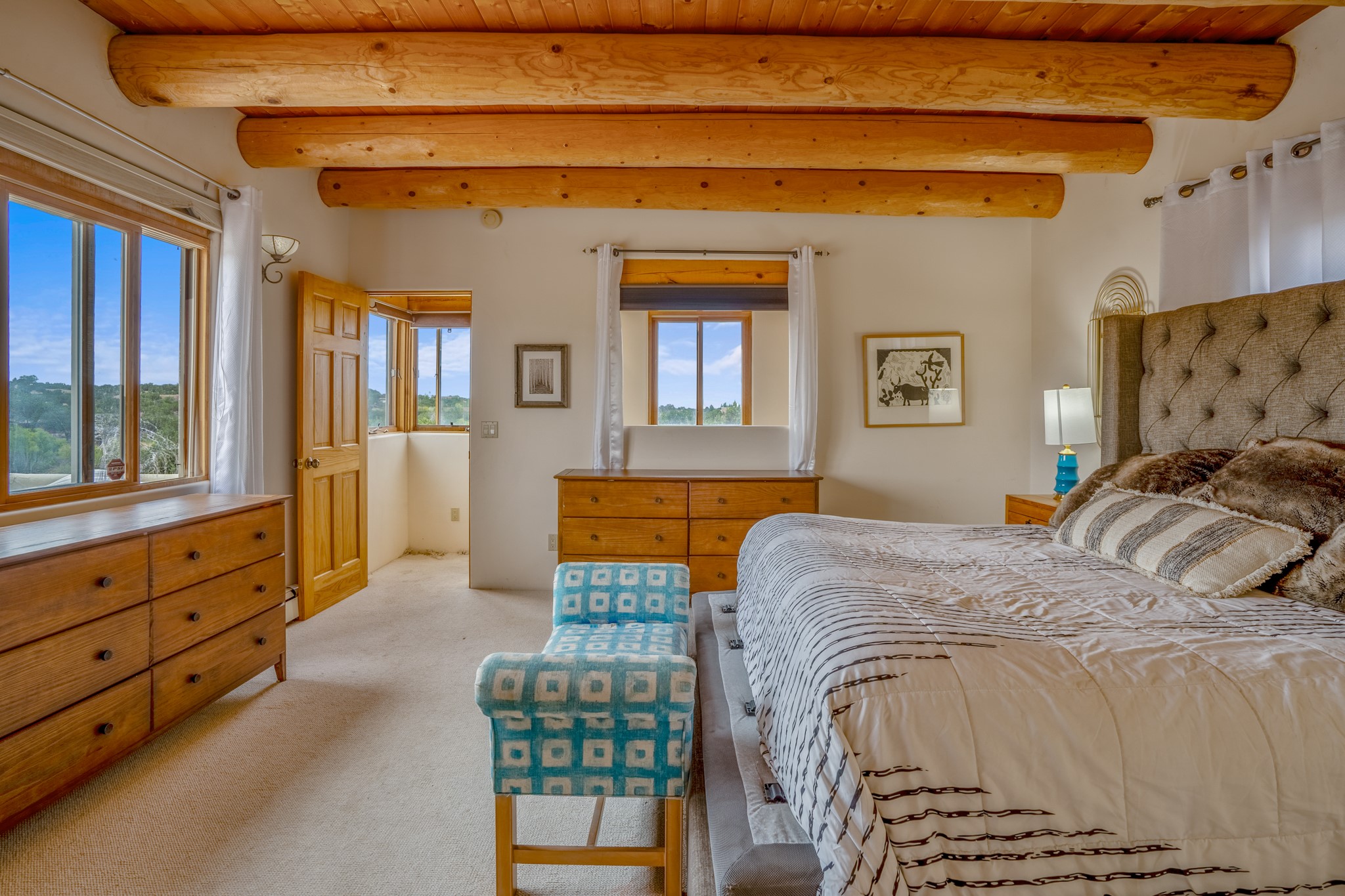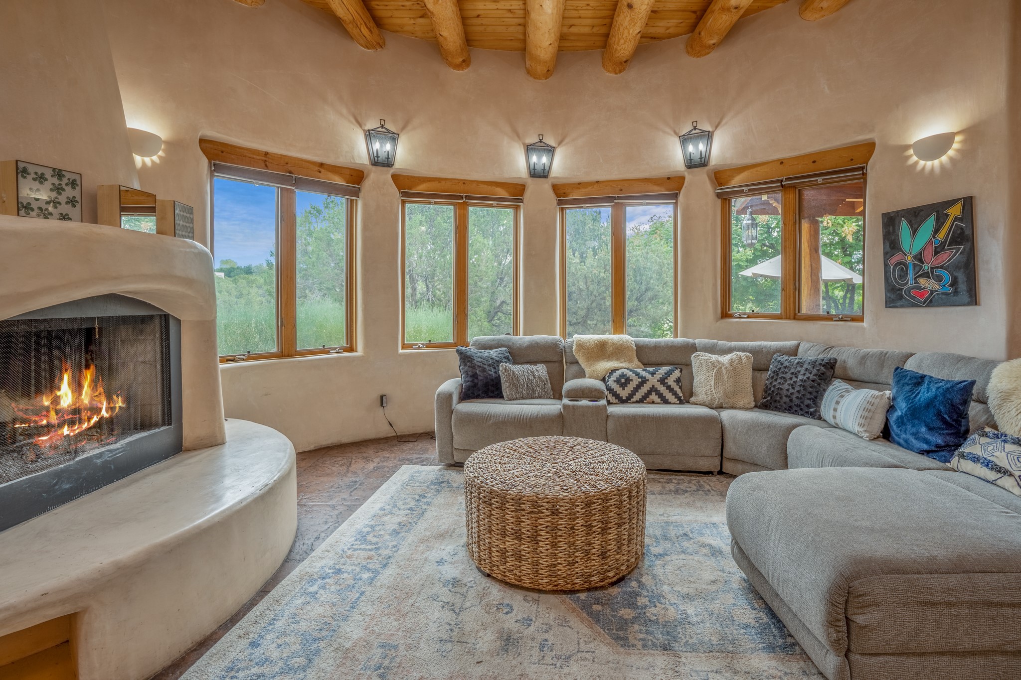 Exquisite Santa Fe Retreat with Mountain Views.Welcome to your dream home at 6 Bosque Azul in Santa Fe, New Mexico! This property offers a unique blend of serenity, style, and modern comfort.Spectacular Mountain Views: Every morning, you'll wake up to the awe-inspiring sights of the Sangre De Cristo Mountain Range. Nature's beauty is right at your doorstep.Custom Architectural Wonder: This isn't just a house; it's a masterpiece in the classic Pueblo adobe style. Crafted with care and precision, this home reflects Santa Fe's rich architectural heritage.Spacious 1.75 Acre Lot: Spread out and savor the freedom on this expansive 1.75-acre property. There's room for all your dreams here.Perfect Central Location: A mere 16-minute drive takes you to the historic Santa Fe Plaza, while I-25 is just 12 minutes away for convenient travel. It's all about location, and this one is golden.Gourmet Kitchen with a View: Prepare meals in a stunning kitchen with breathtaking views from the dining table. Gather around the cozy kiva fireplace and admire the authentic vigas while basking in the abundant natural light.Private Second-Story Primary: Upstairs, the Primary suite is a haven of luxury. Enjoy the soaking tub with views that will take your breath away. Your oasis of calm awaits.Abundant Santa Fe Charm: This home exudes charm with plaster walls, nichos, and a style that's quintessentially Santa Fe.Horse Lover's Delight: You can have two horses here, so bring your equine companions and enjoy the equestrian lifestyle.Roof Warranty: Your peace of mind is guaranteed with two years left on the roof warranty from Santa Fe Stucco and Roofing.This is not just a home; it's a lifestyle upgrade waiting to happen. Are you ready to make this Santa Fe sanctuary your own? Schedule a private tour and start living your dream!