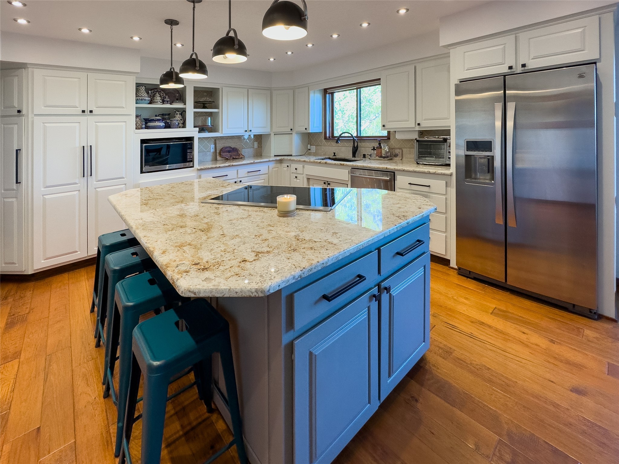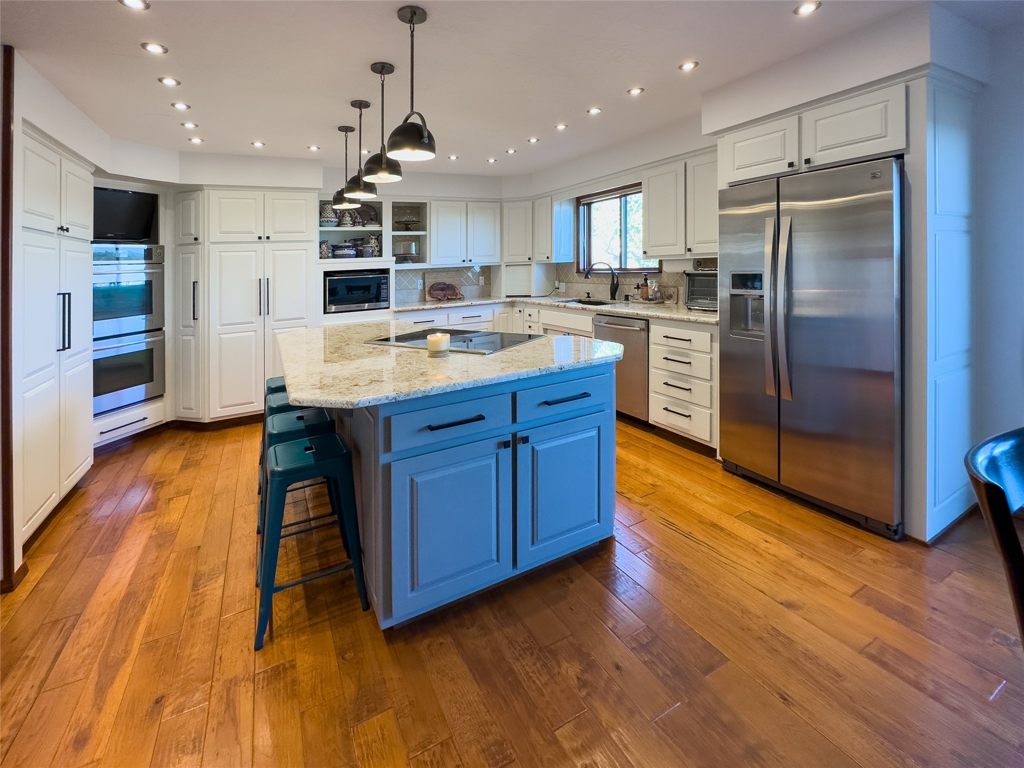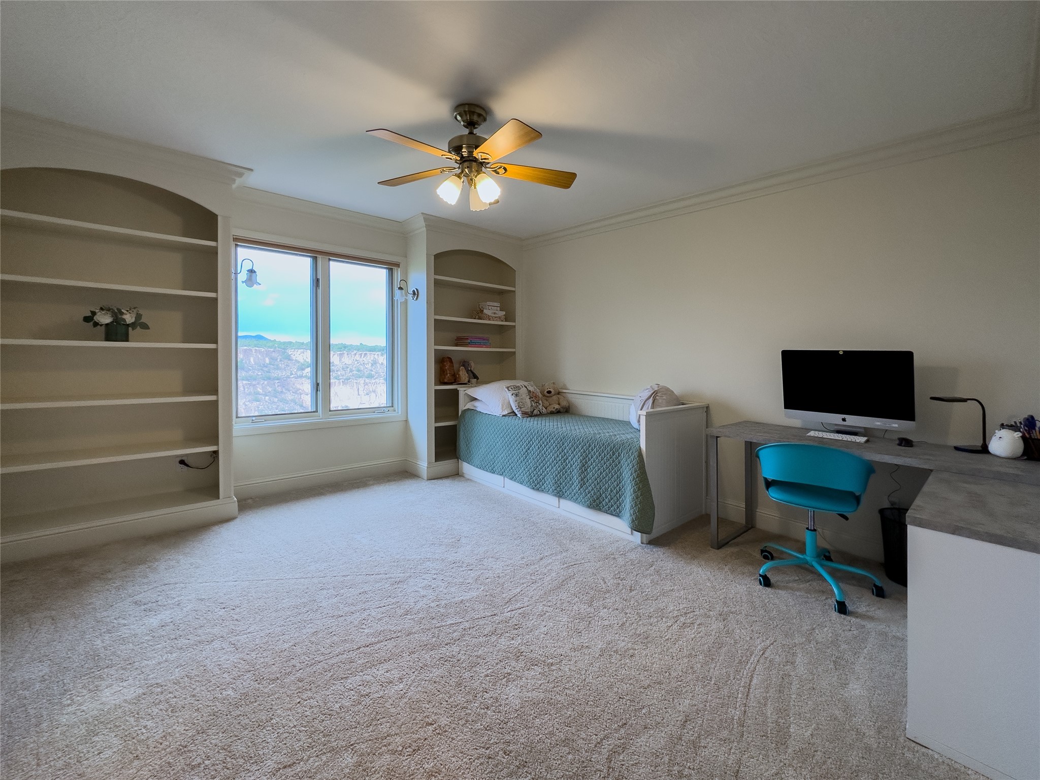 Expansive views of the Sangre De Cristos mountains and morning sunrises is just the beginning of the story about this beautiful custom home. An elegantly warm designed home with cathedral beamed ceilings in the large family room with built in bookshelves and a sitting area that feels as if you are sitting right on the canyon. Large beams accent the living space with rich wood floors and separate entertaining spaces. The large kitchen features, painted cabinets, center island with eat at bar, granite countertops, eat in breakfast nook, double ovens, tons of cabinets and counter space. It is definitely the heart of the home. Off the kitchen you have french doors out to the deck where barbecuing and dinner entertaining are a must while watching the sunset on the canyon. A main level bedroom with its own bathroom is a nice features of this home and upstairs lends itself to a loft area and office area with another outdoor sitting area, two large additional bedrooms with walk in closets and a beautifully designed full bathroom that feeds both bedrooms. The owners suite is nicely situated with an additional deck, two large closets, an amazing bathroom suite with a soaking tub and a large separate shower, it feels like you are at a spa. Don't forget the downstairs walk out basement with tons of room, extra 5th bedroom and a designer bathroom. Every detail of this home was thoughtfully designed and the 3 car garage lends to extra workshop space and there is room for RV parking on the driveway with an additional circular driveway for easy access to the entry. This is a special home and is really a must see for those that desire views, location and wildlife with plenty of room for all.