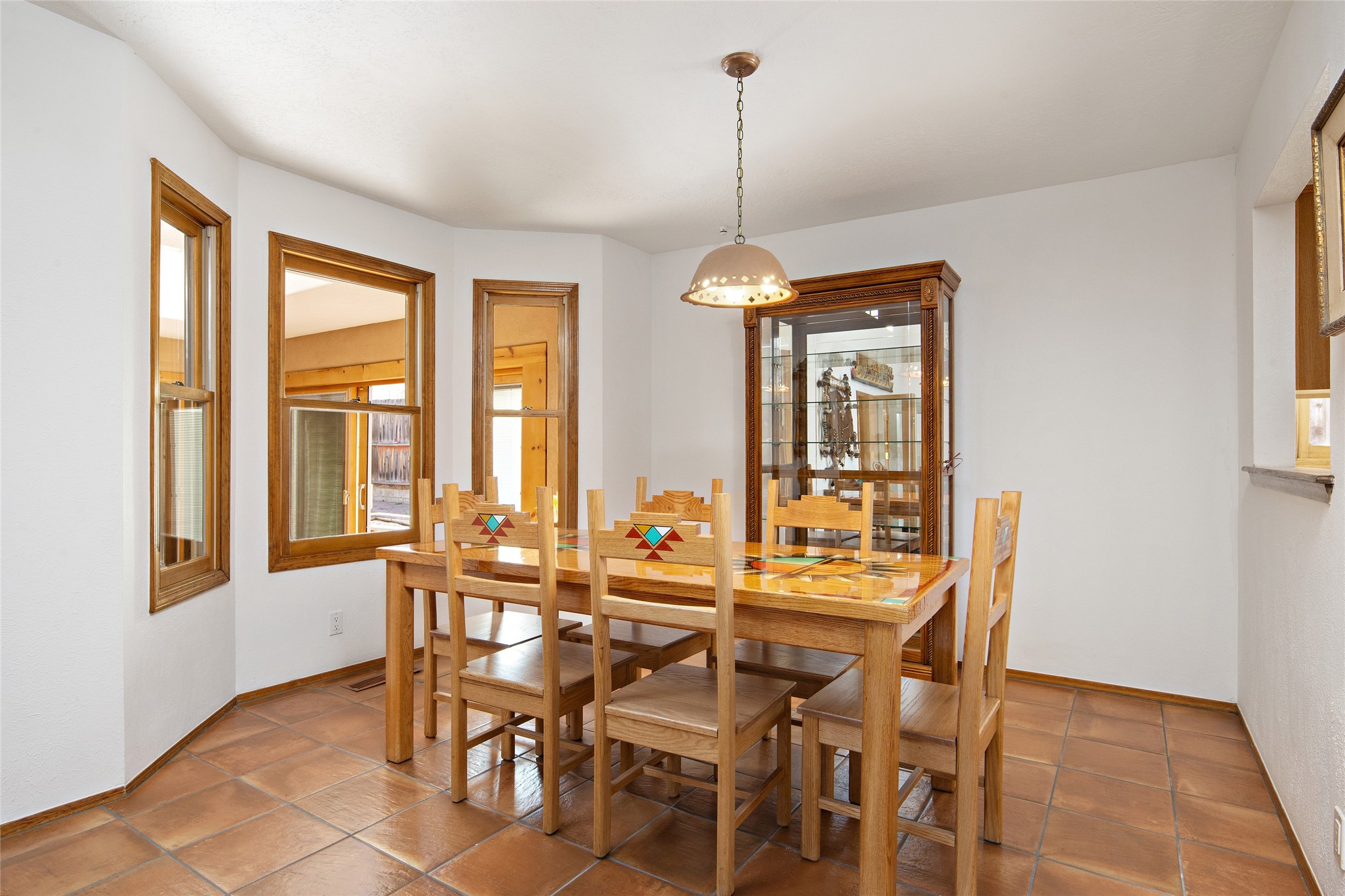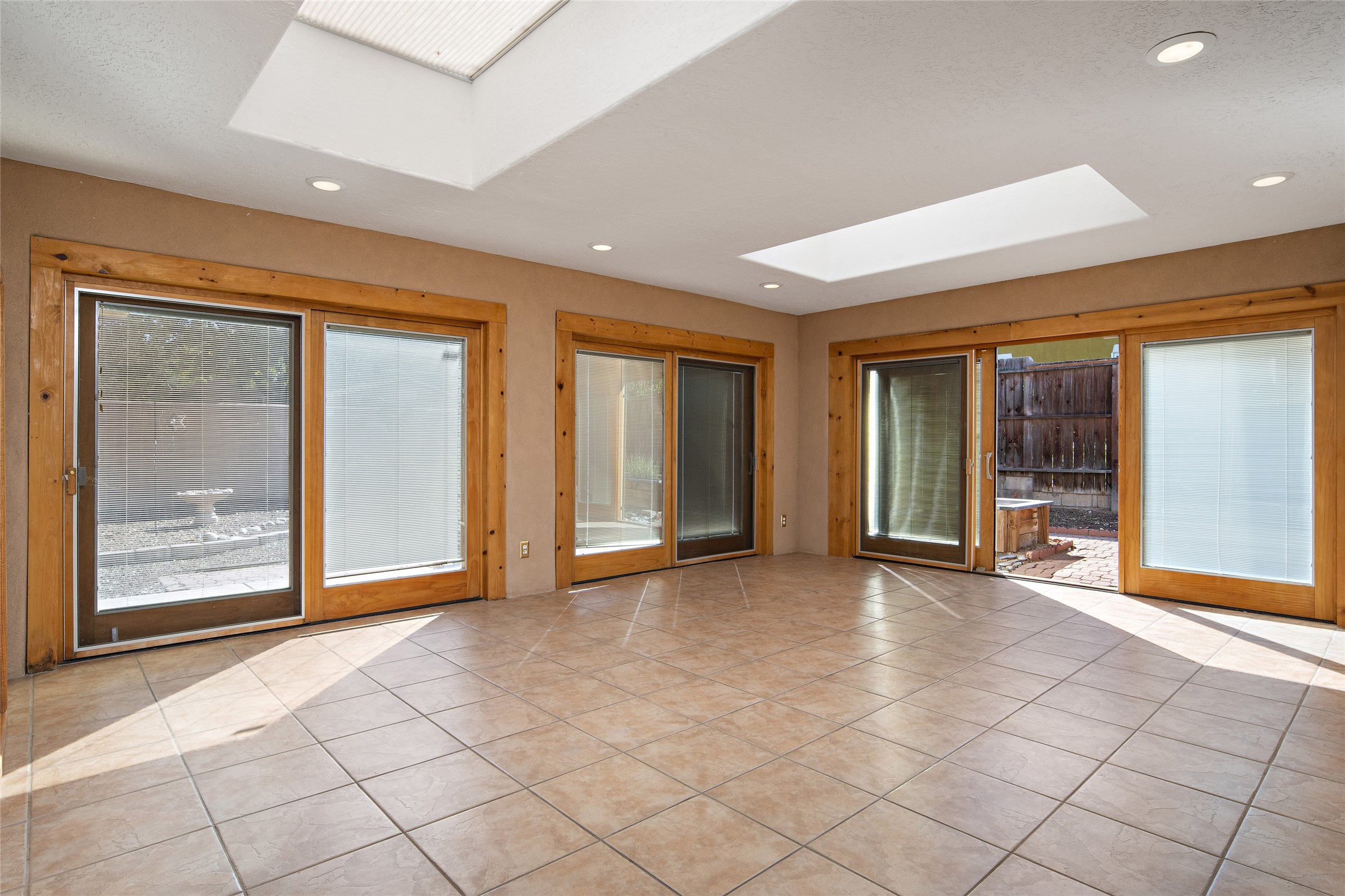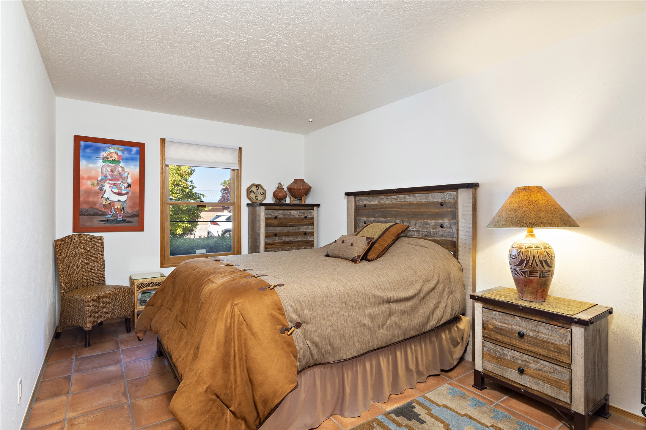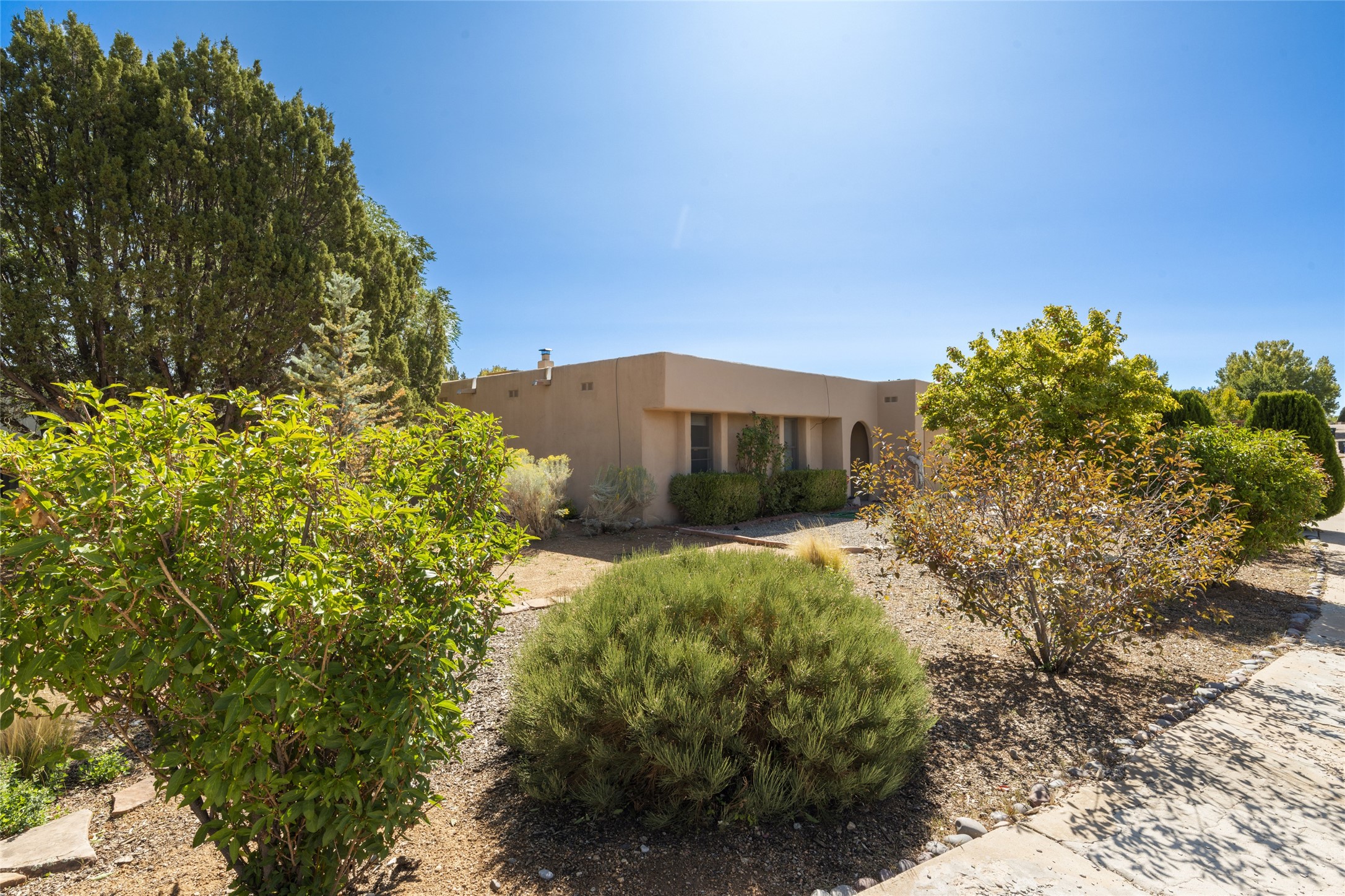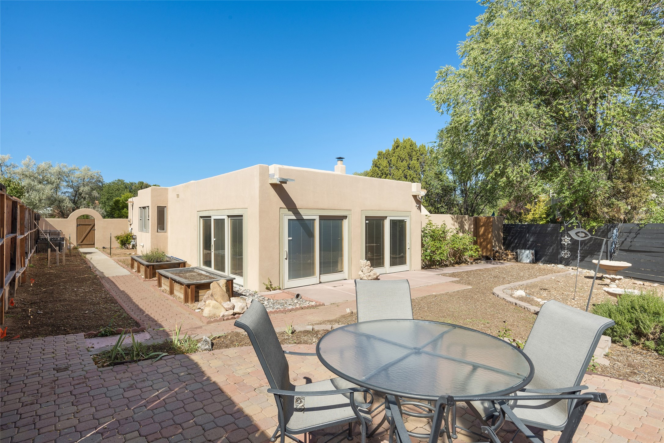It's a great home if you commute to Los Alamos or Albuquerque. This three-bedroom, two-bathroom, well-cared-for home is on a large lot in a centrally located neighborhood with no HOA. The house has an upgraded Kitchen, and in 2019, the sizeable primary bathroom was beautifully upgraded with two glass bowl sinks, a walk-in shower, and a tub. The house is completely tiled, and the living, sun, dining rooms, and Kitchen flow nicely for entertaining or large gatherings. The garden area in the backyard has been enriched with 100 bags of Black Gold in the two raised garden beds. The fenced backyard is private with many places to enjoy the evenings, entertain, dine alfresco and Bar-B-Que! There is a private walled deck off of the primary bedroom. Take a look!