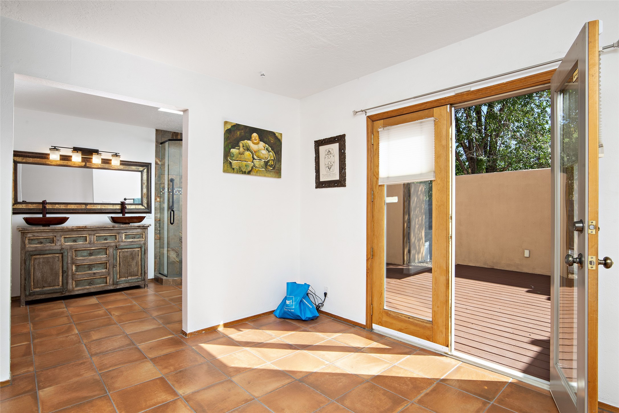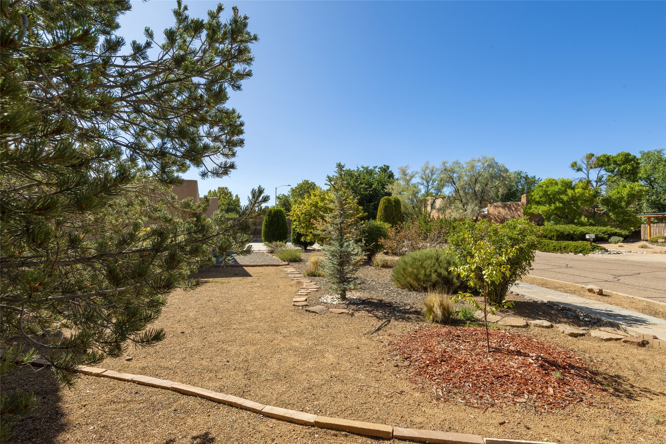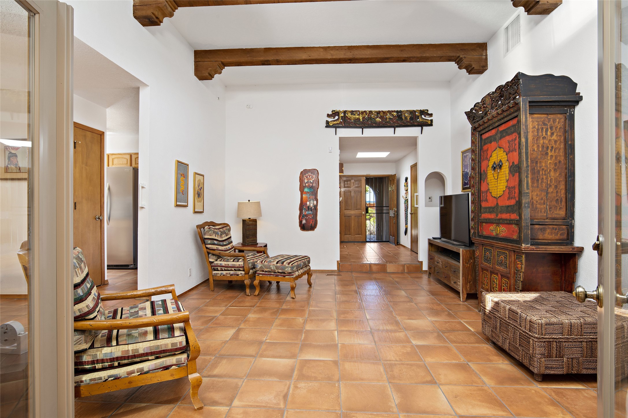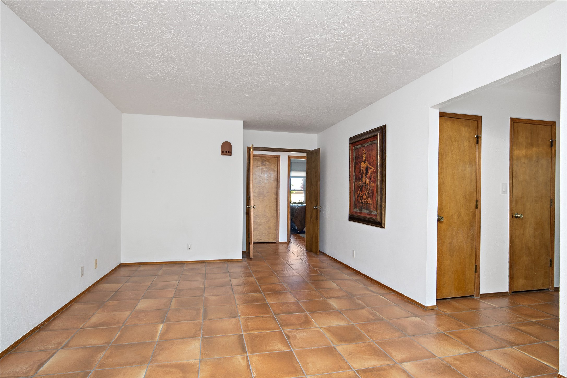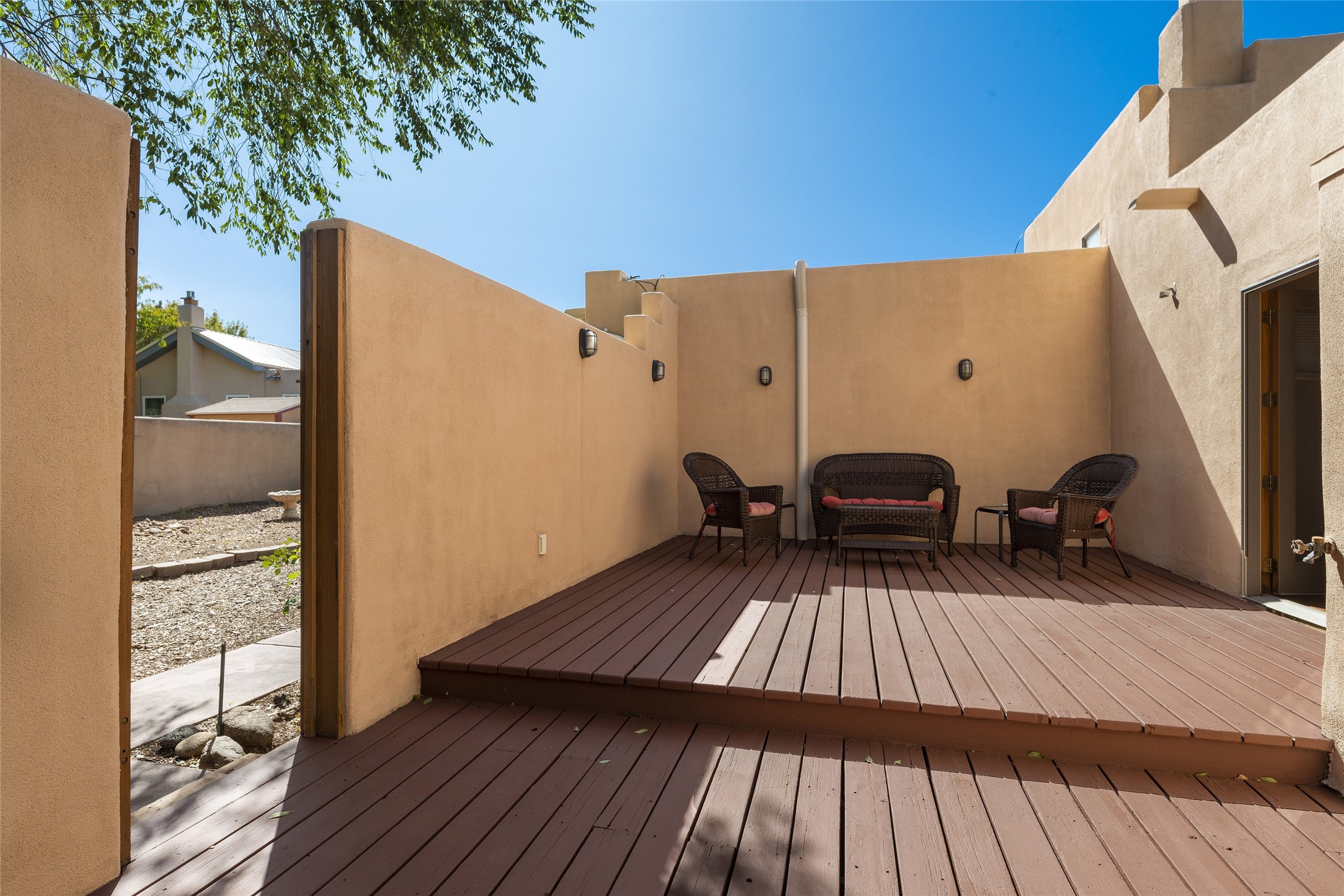 It's a great home if you commute to Los Alamos or Albuquerque. This three-bedroom, two-bathroom, well-cared-for home is on a large lot in a centrally located neighborhood with no HOA. The house has an upgraded Kitchen, and in 2019, the sizeable primary bathroom was beautifully upgraded with two glass bowl sinks, a walk-in shower, and a tub. The house is completely tiled, and the living, sun, dining rooms, and Kitchen flow nicely for entertaining or large gatherings. The garden area in the backyard has been enriched with 100 bags of Black Gold in the two raised garden beds. The fenced backyard is private with many places to enjoy the evenings, entertain, dine alfresco and Bar-B-Que! There is a private walled deck off of the primary bedroom. Take a look!
