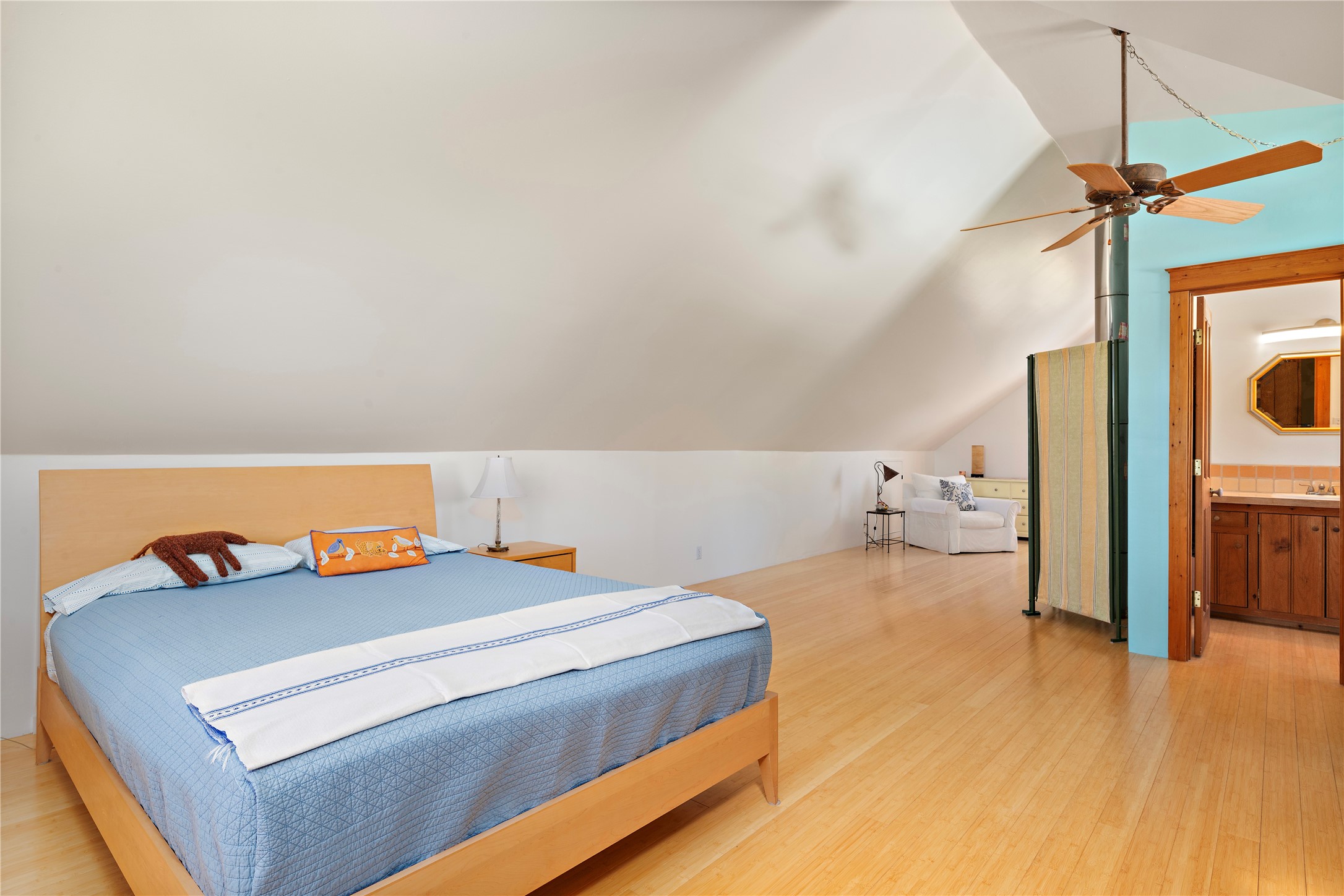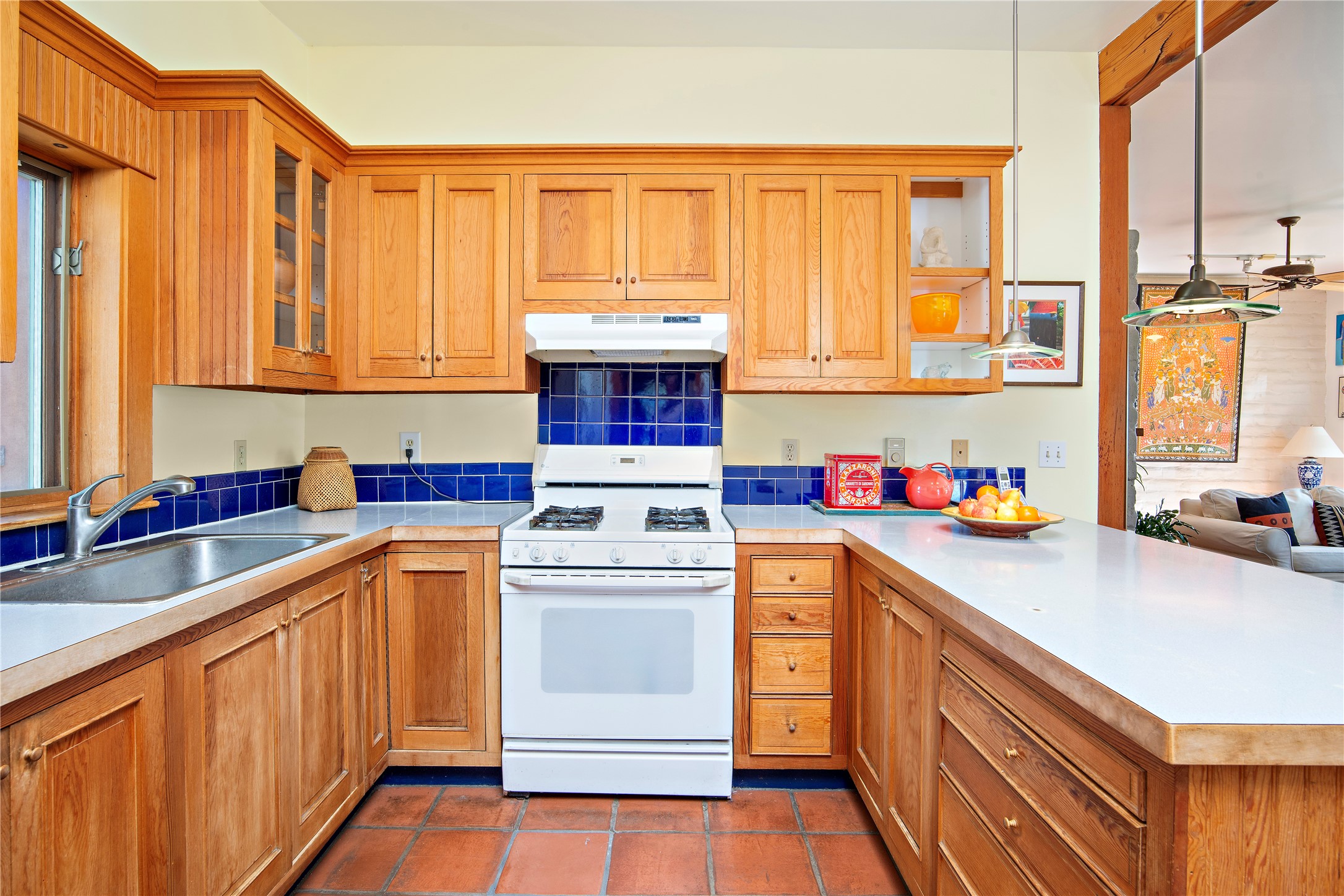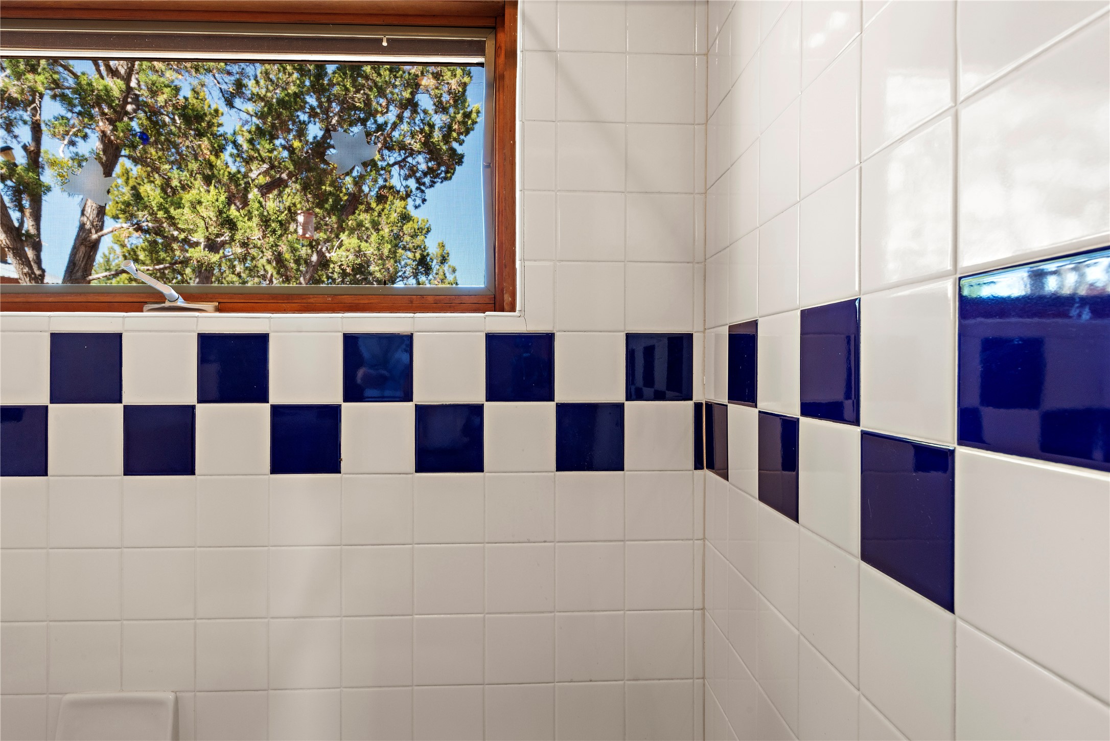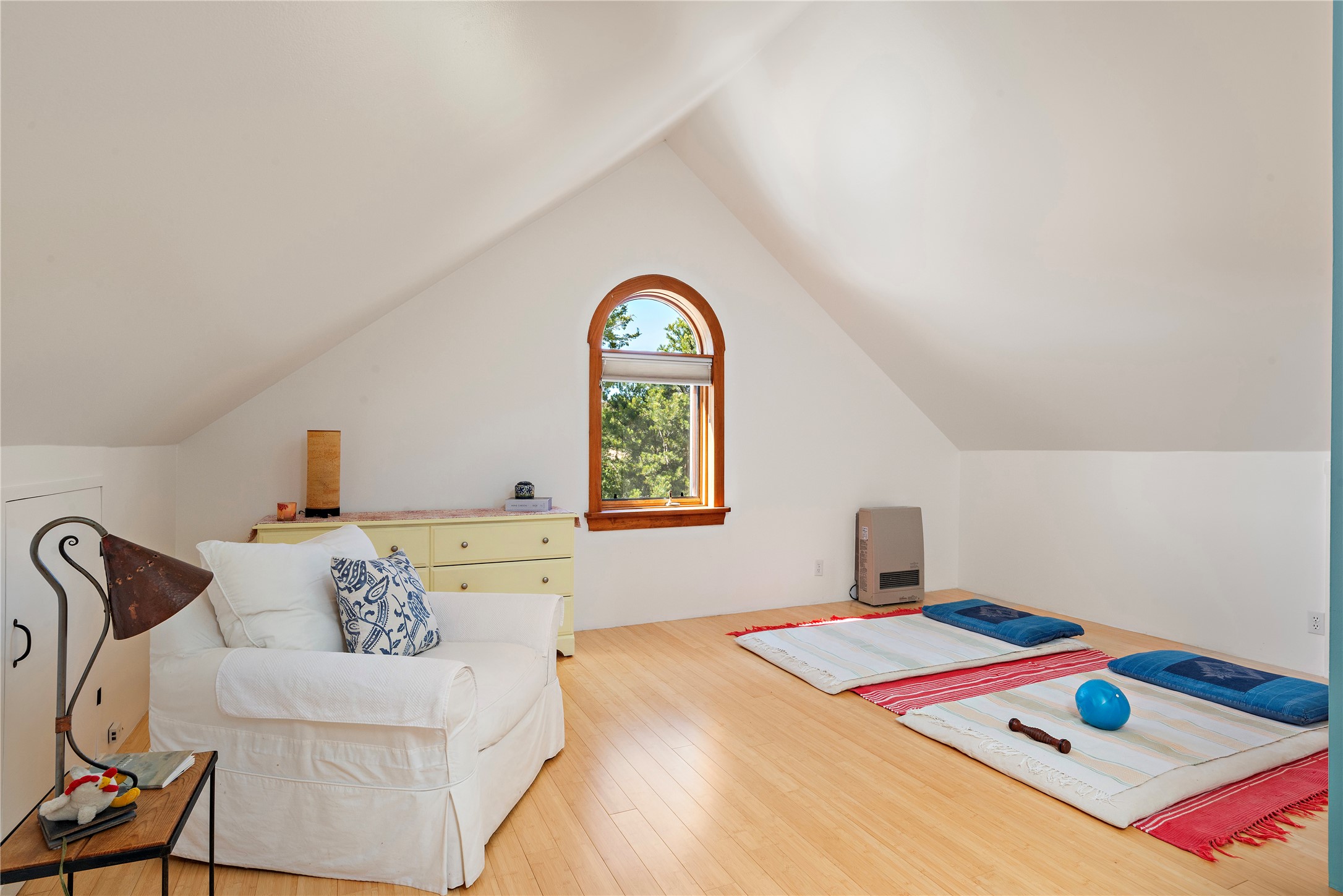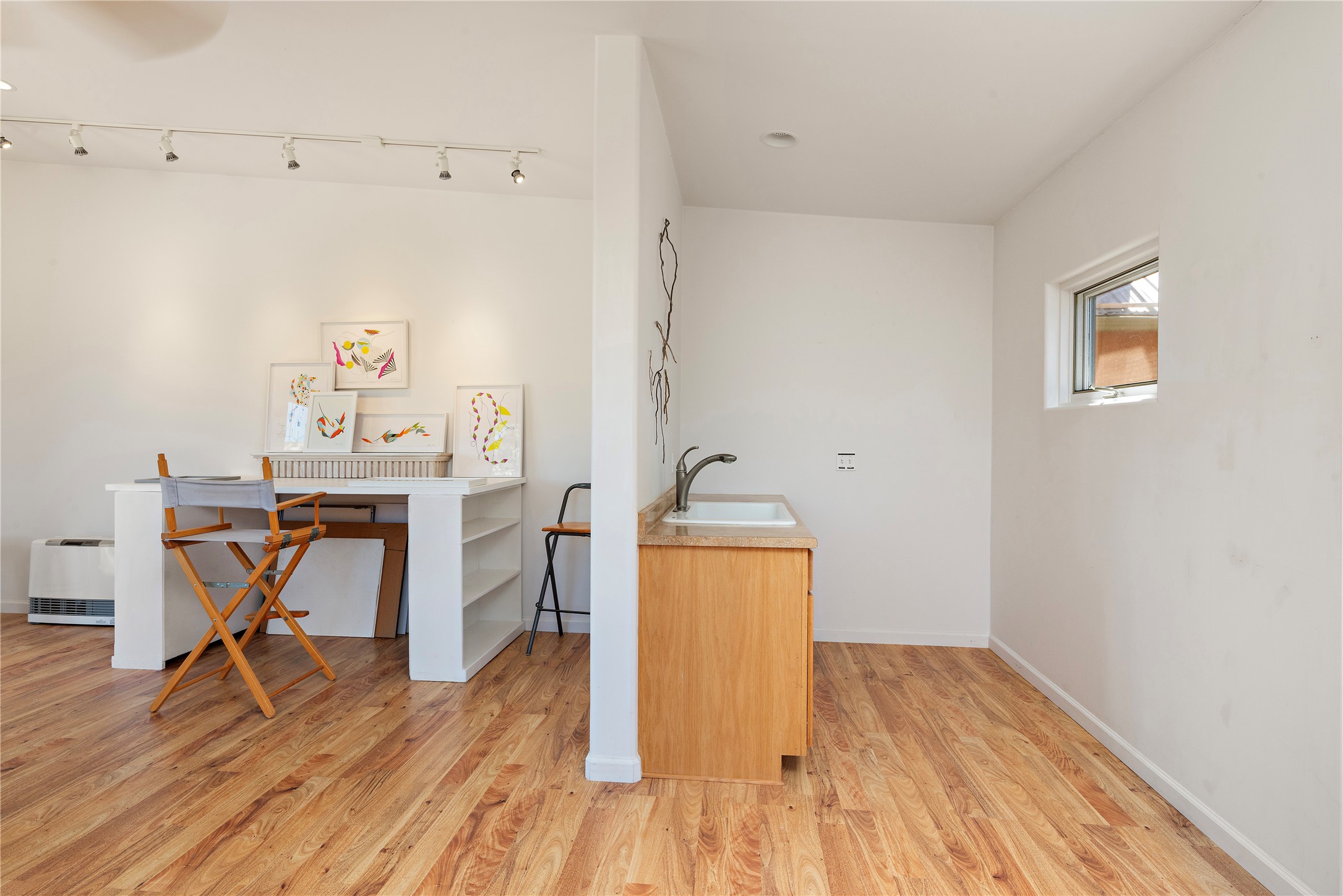 This stunning country home is not to be missed. Located high on a hill overlooking the sweet Village of Lamy, New Mexico, this craftsman-style, passive solar home has a pitched metal roof, lots of light and so much character. Enter the colorful front door into an enclosed porch/sunroom with a wood floor and windows all around and then into the great room. To the left is an efficiently designed kitchen with gorgeous cabinets and a generous pantry/laundry room. Downstairs the floors are handmade Saltillo tile. The great room has high ceilings, a wood stove, and big transom windows, giving it a light and airy feel. Two interior walls are adobe, enhancing the passive solar qualities. Also downstairs are two bedrooms and a full bathroom. Upstairs is the large master bedroom with an ensuite full bath and lots of room for an office/yoga/meditation space. The bamboo floor and pitched roof create a cozy, warm feeling. The home has lots of storage. There is a separate storage shed as well as a separate Art Studio designed by artist/owner. 488 square feet of open space with beautiful north and east light as well as LED track lighting. Large enamel sink. The landscaped yard and patio are inviting as are the expansive views in every direction. With five+ acres there is lots of room for horses, chickens, or other pets. The home is an easy beautiful drive from Santa Fe and located just a few minutes from the Galisteo Basin Preserve where you can hike or ride to your heart's content. This is a country living at its best!