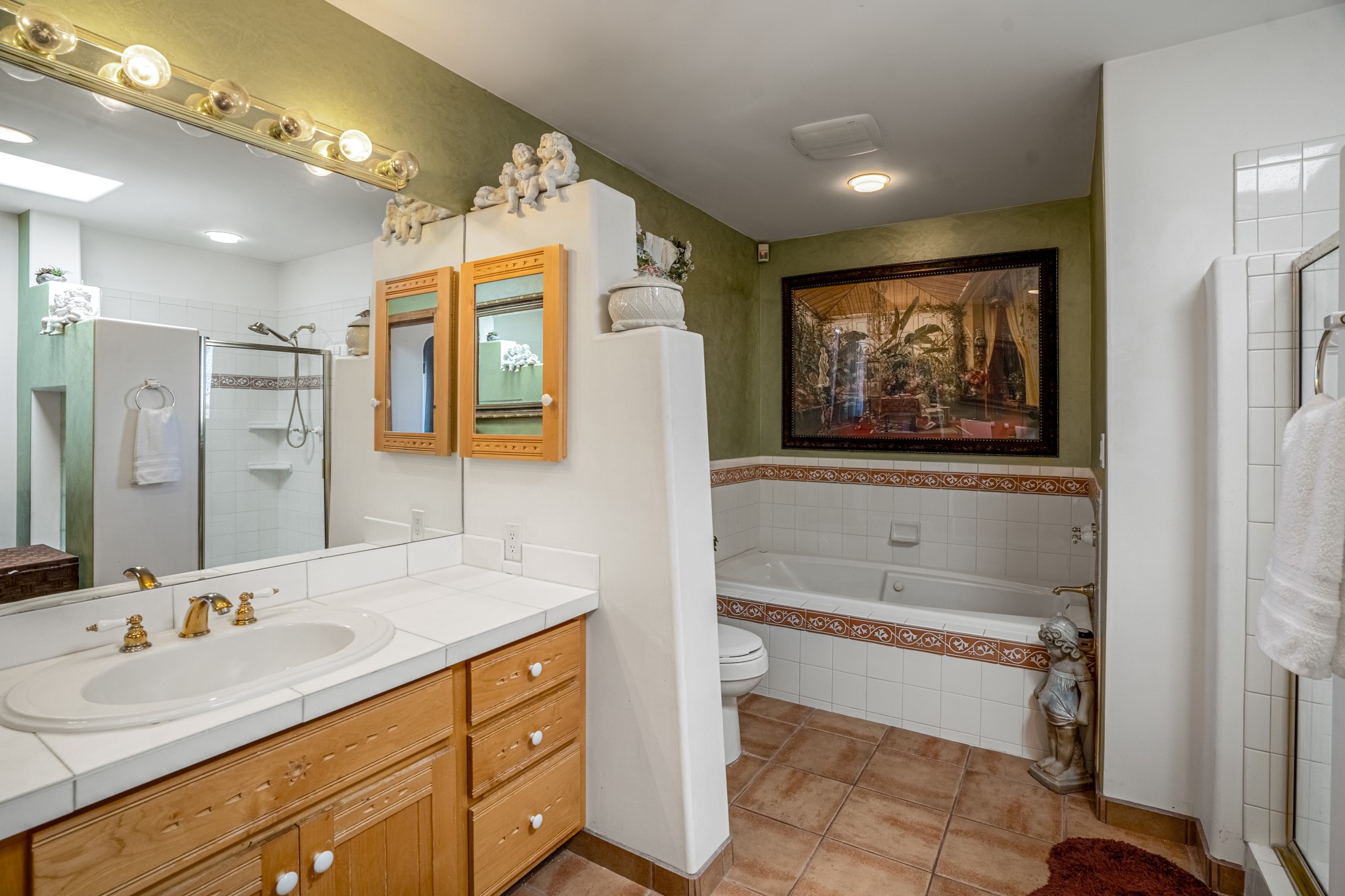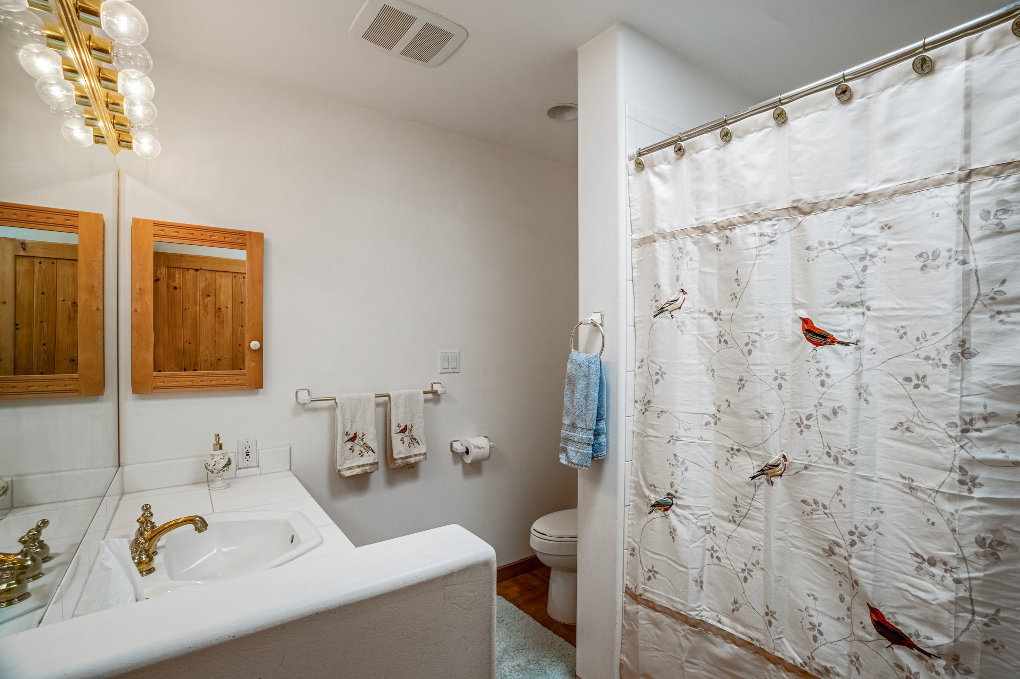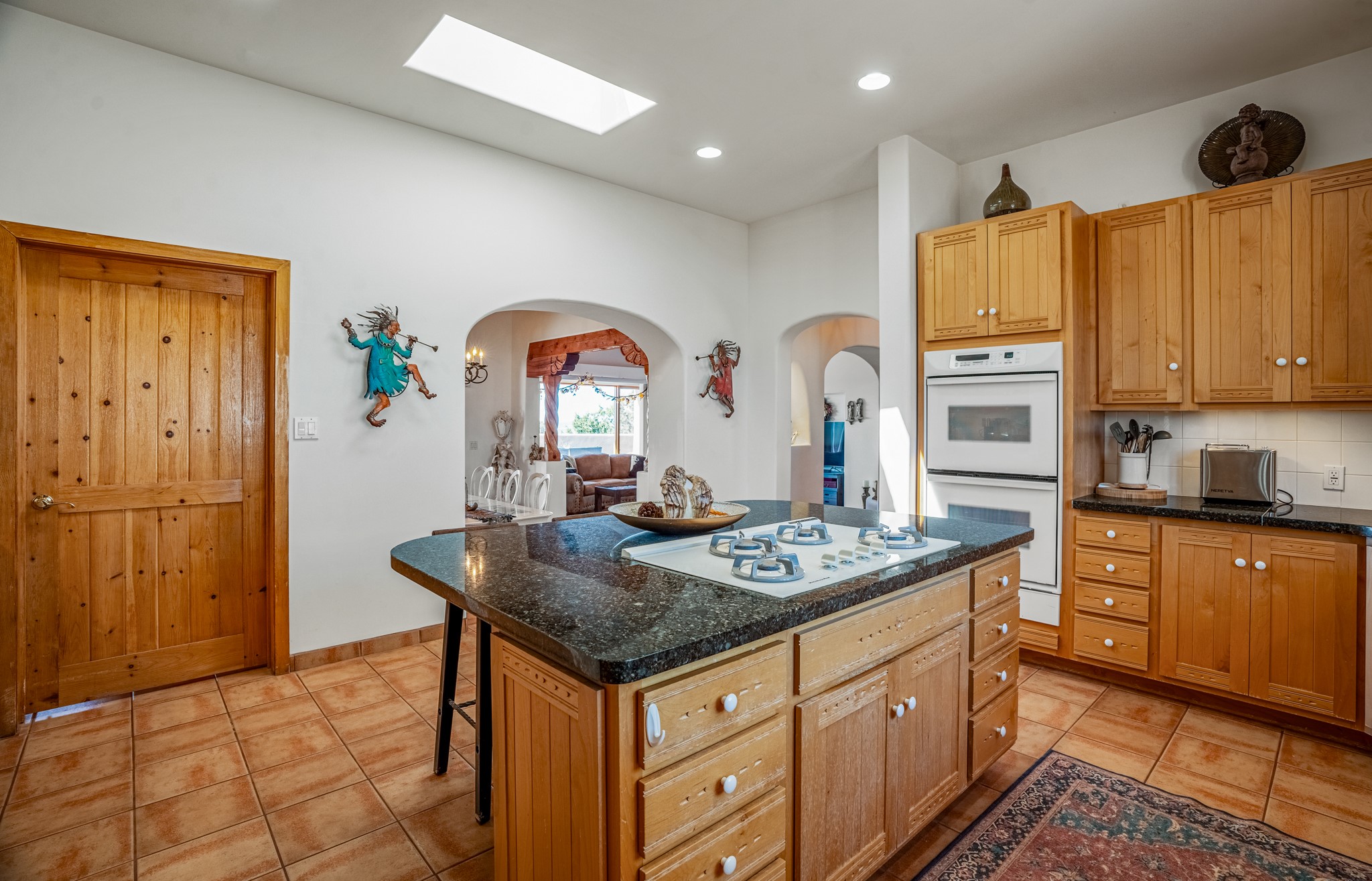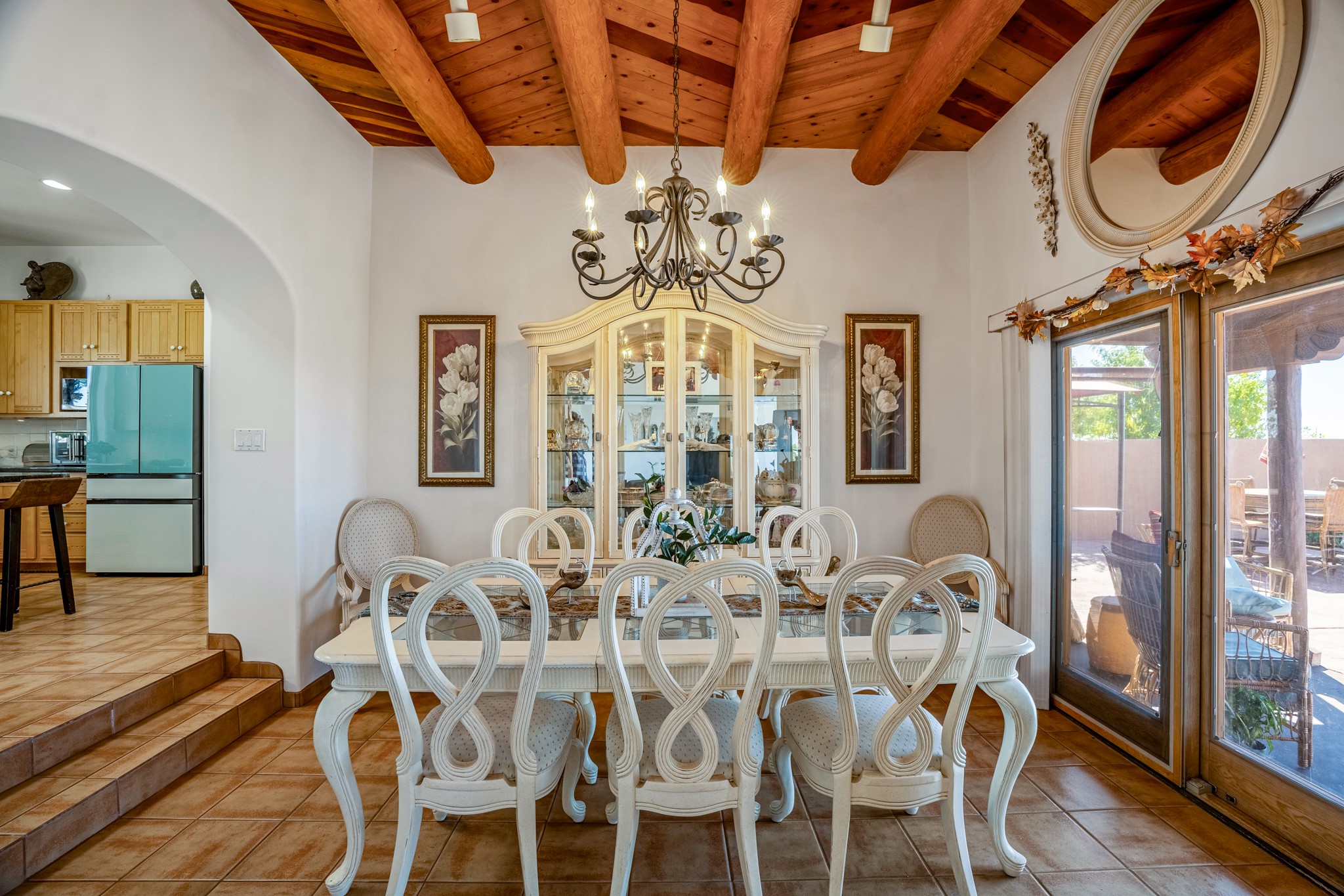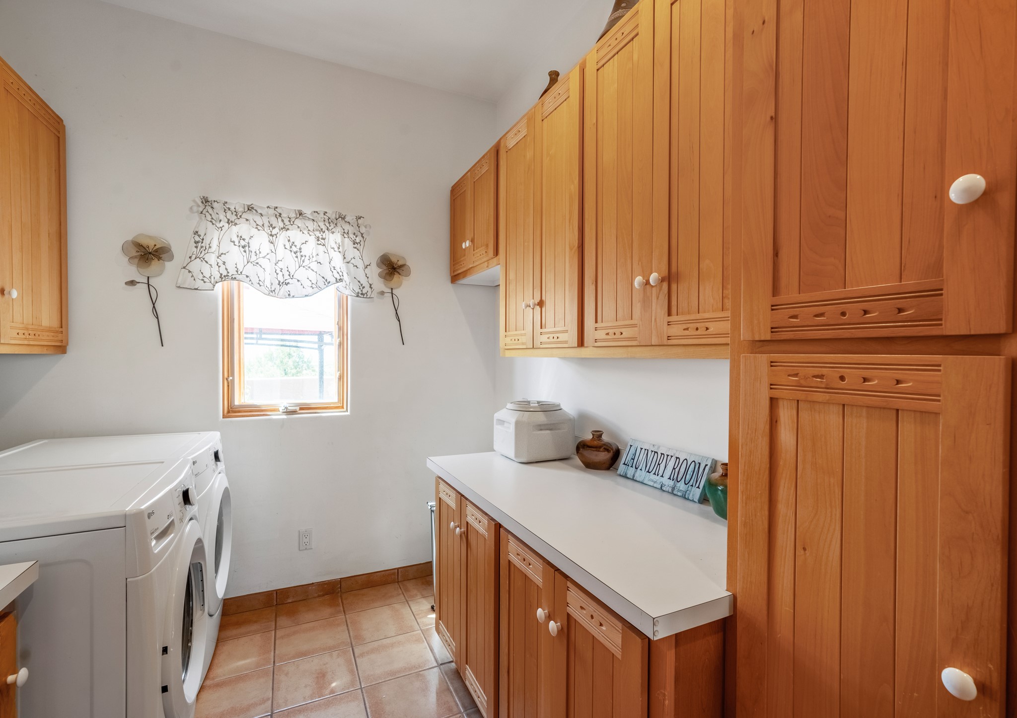 Nestled in Puesta De Sol Subdivision, just 15 minutes from Santa Fe Plaza, 40 Minutes from Los Alamos, and 9 from stores like Target and Albertsons, this 4-acre gem offers privacy and security with its gated entry, a fresh roof, stucco, and stunning mountain views. The sunlit interior boasts a spacious kitchen for entertaining, charming vigas-adorned high ceilings, and distinctive Santa Fe features such as nichos, corbels, and kiva fireplaces. Enjoy an inspiring garden shed, a cozy primary suite, and a massive patio featuring a soothing fountain. Cap it all off with a rooftop view of breathtaking sunsets. And let's not forget the eco-friendly solar features, including a battery backup system alongside grid-tie, and a solar switch for seamless operation even if the grid were to go down also provides super low Monthly utility bills. This home truly has it all!