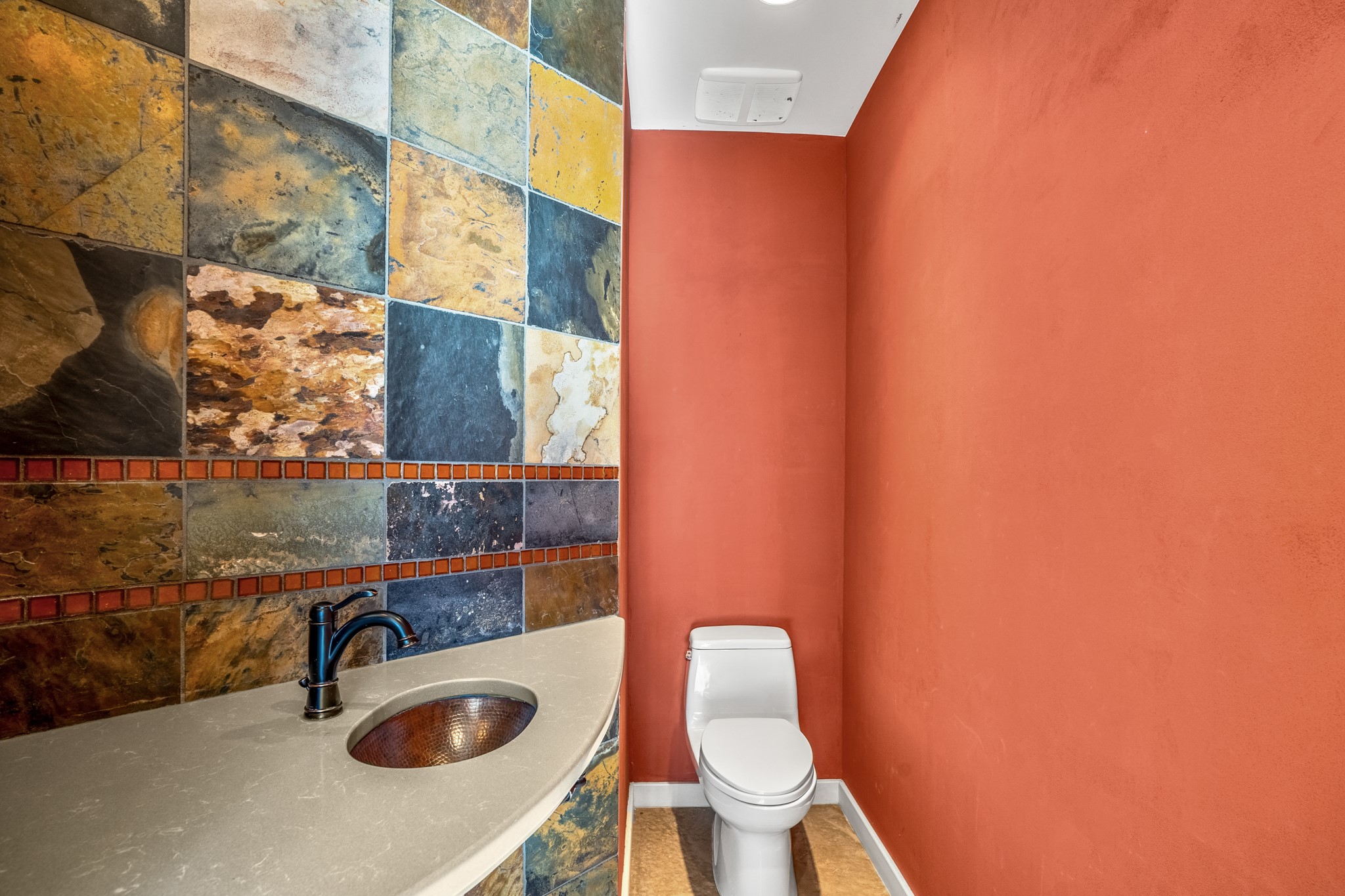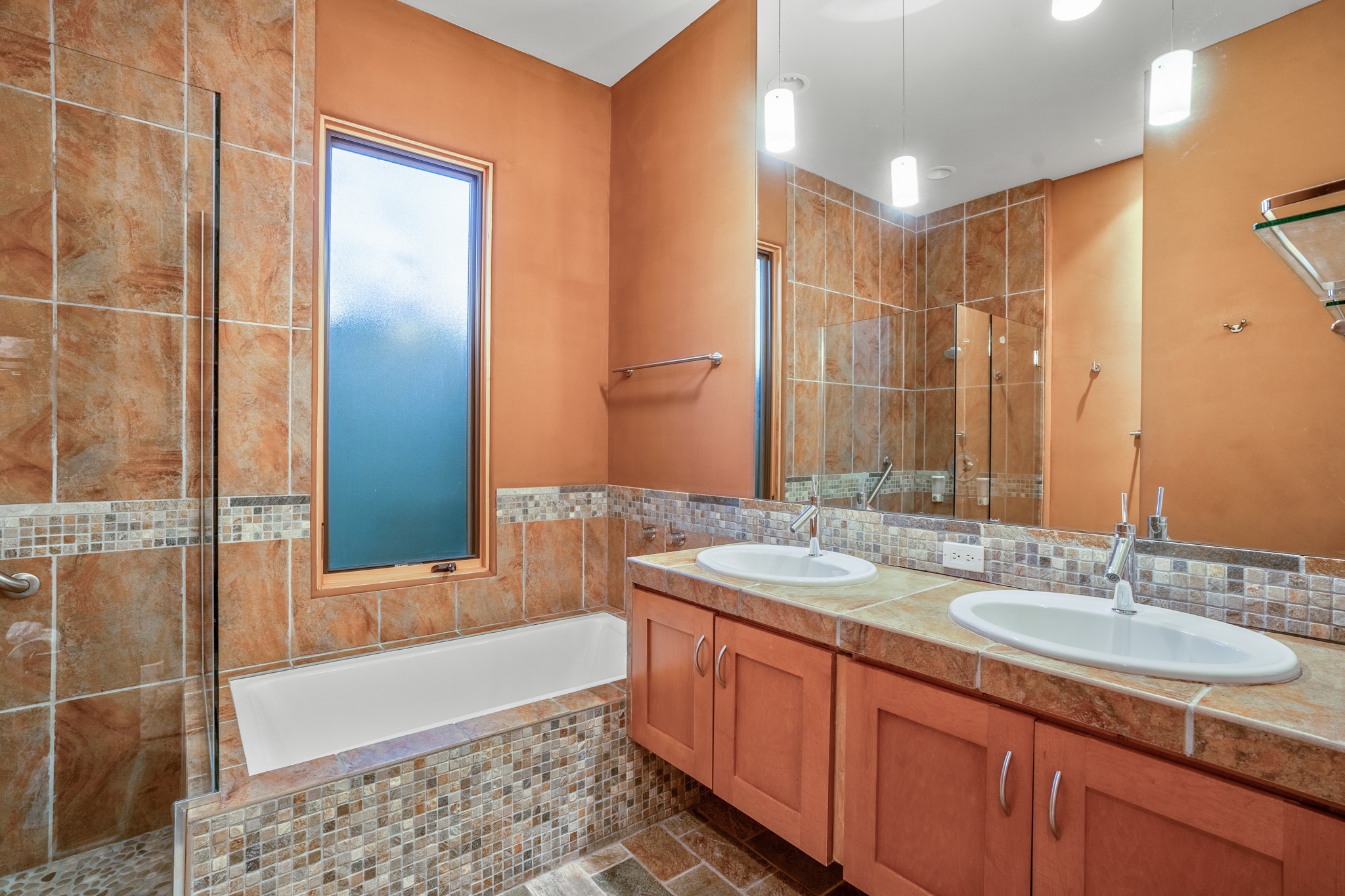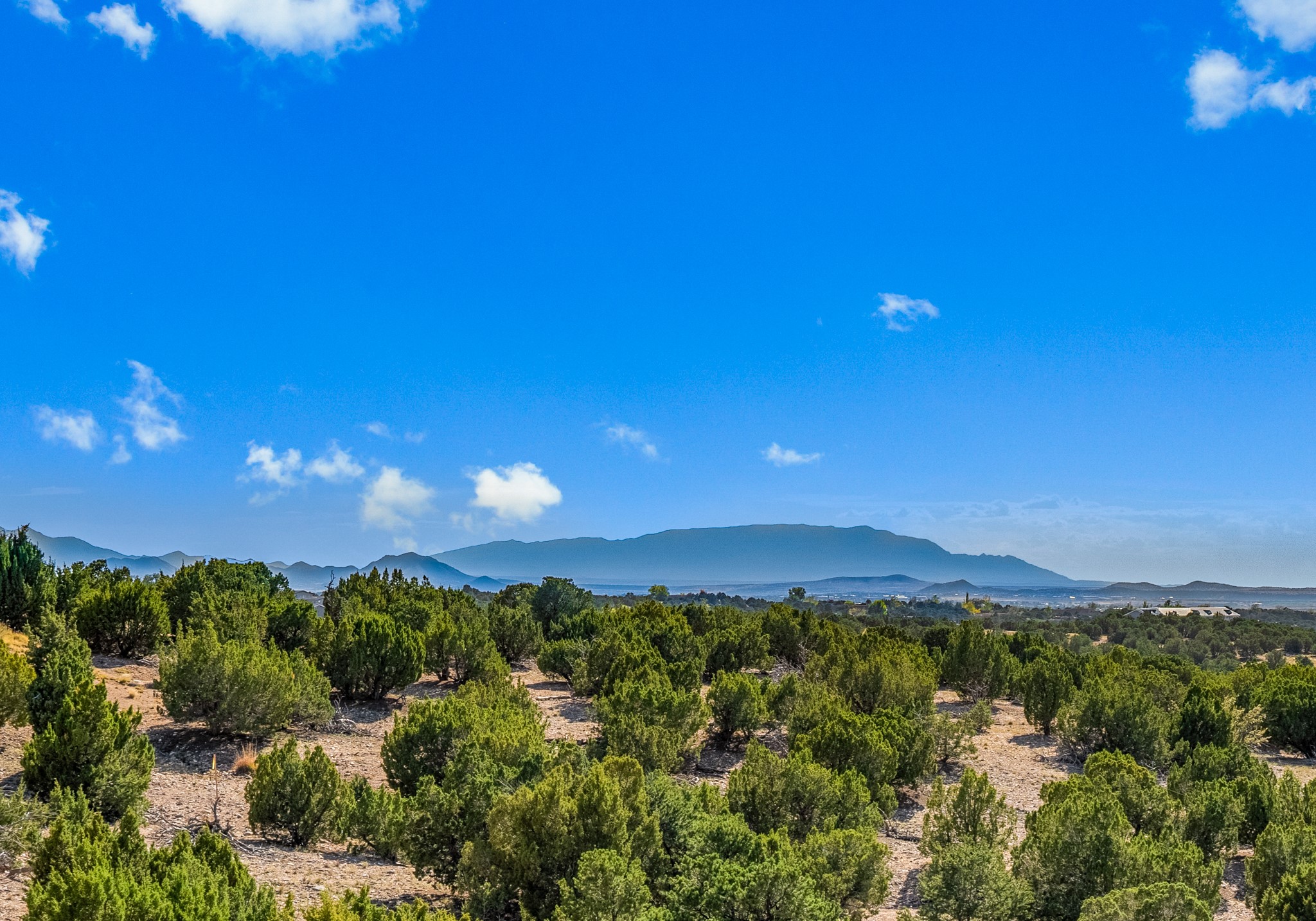 Located within the serene and picturesque community of Aldea De Santa Fe. This captivating residence offers unobstructed sunset views. The open-concept living space boasts soaring 20-foot ceilings, captivating the very best of a contemporary design. Earthy yet modern finishes throughout. Including, stone, bamboo and concrete floors and a gas burning fireplace. There are custom wood cabinets in the bathrooms that resemble a basket weave and floor to ceiling tile in the showers. The abundance of windows that allows for the New Mexico sun to pour in, creating a warm and inviting atmosphere. The living area is adjacent dining area and perfectly sized kitchen with Wolf range provide the perfect setting for culinary adventures. There is a Primary bedroom suite on the main floor with bamboo floors and a tasteful en-suite bathroom. The upstairs bedroom is generously sized with an en-suite bathroom and a loft area for relaxing and taking in Santa Fe's amazing desert views. In addition to the stylish interior, the home also offers outdoor spaces that are equally inviting. Enter from the street onto a private enclosed courtyard and you can enjoy entertaining on the deck off of the living room with those in your face views. The 2-car garage offers convenience and storage space, while the radiant heating and central air conditioning ensure year-round comfort. Aldea De Santa Fe offers a community center, parks, 13 miles of walking trails, and a strong sense of community. Enjoy the best of both worlds, with easy access to Santa Fe's vibrant cultural scene, shopping, dining, and outdoor recreation. Experience the harmony of modern living in a Southwestern setting. Don't miss the opportunity to make 87 Avenida Frijoles your new Santa Fe retreat.