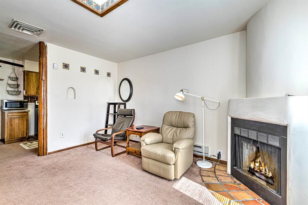 Nice second story condo situated on the backside of gated Tierra De Zia great for those seeking more privacy. Tierra De Zia has great amenities such as walking trails, swimming pool, fitness center and outdoor grills, all in a park-like setting. Light and brightwith a skylight, wood burning kiva fireplace, saltillo tile and a nice sized closet. Conveniently located just 10 minutes from the Santa Fe plaza and 3 miles from the hospital complex. Second floor unit...no footsteps above you!