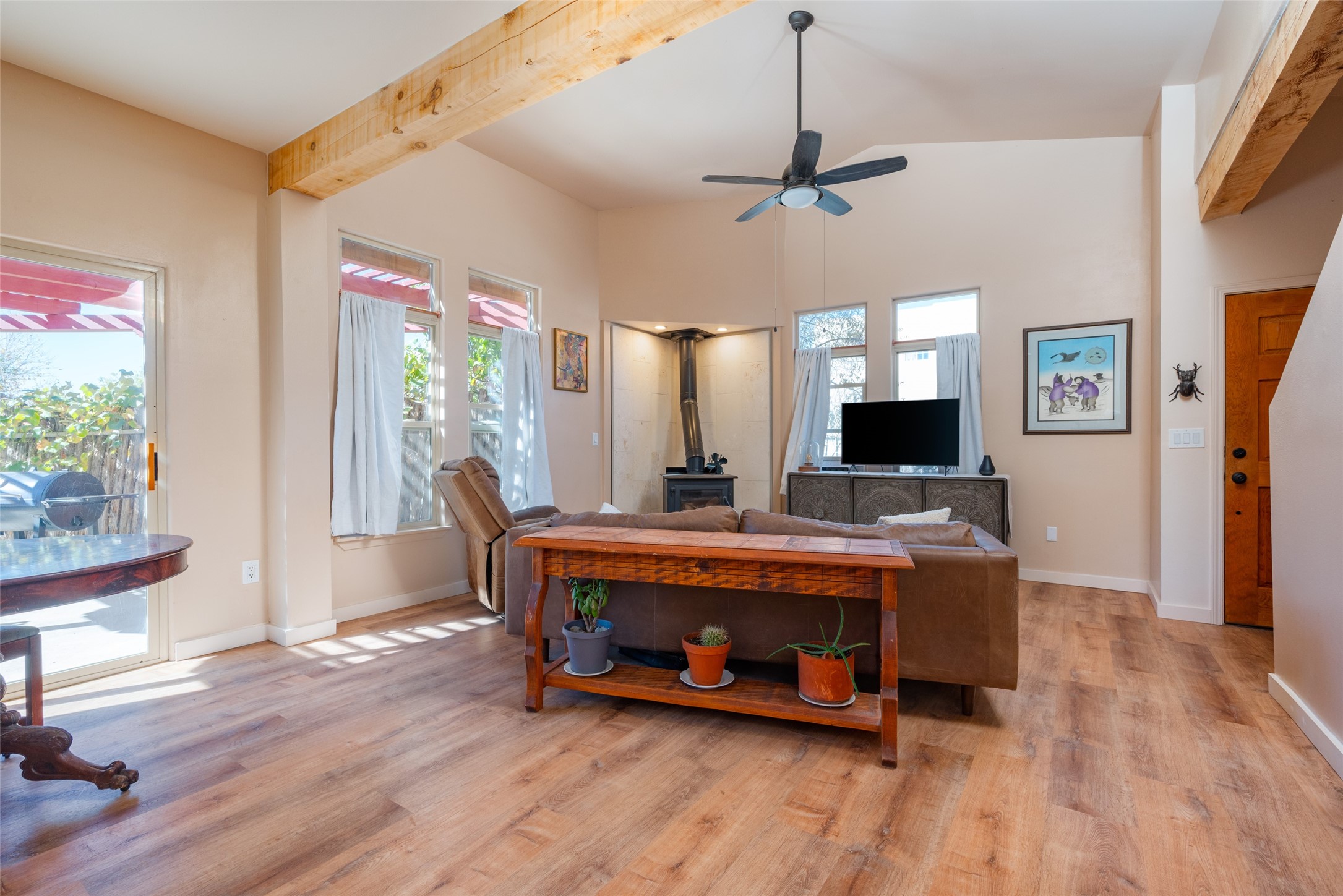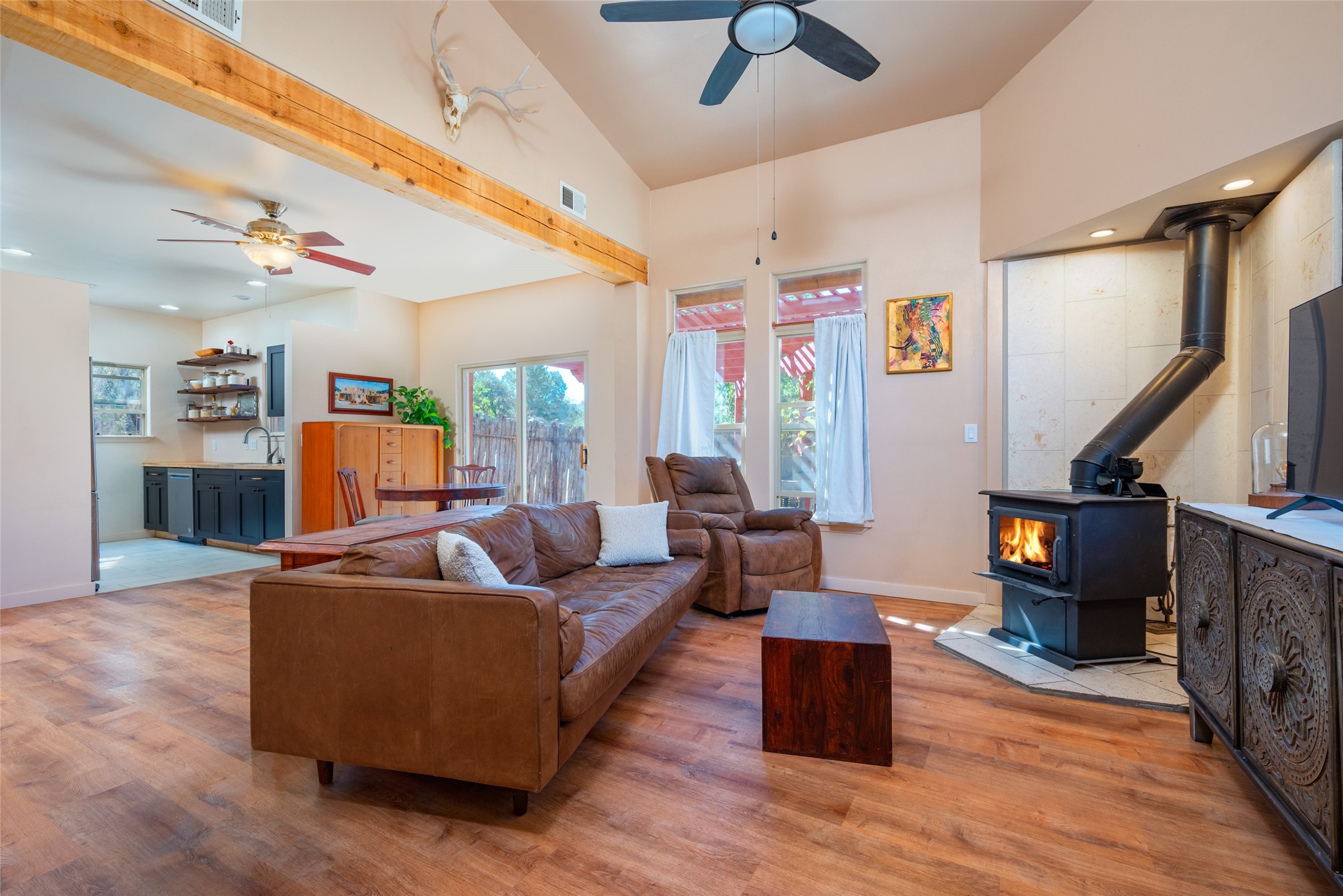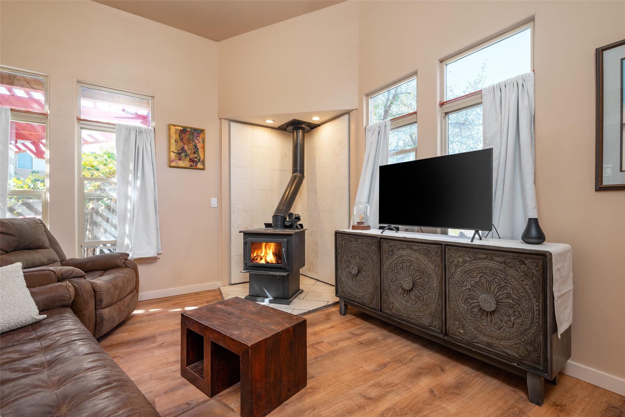 Come live at the end of the cul-de-sac in Nava Ade. This great two-story home has been completely remodeled new kitchen, appliances, and new hardwood floors in the stairway. New wood stove in the living room and vinyl plank flooring. Two bedrooms on the main floor and a new walk-in shower. The owner suite is on the second level and one can relax in private on the view deck. This home has a great open floorplan, with the kitchen & dining areas looking into the living room, plus great access to the back patio, with an arbor/pergola for shade. A finished, detached garage could make a great studio/office. Surrounded by trees and fruit trees, and pleasant outdoor spaces. Enjoy the walking trails just outside of the gate. The Nava Ade neighborhood has many amenities, including walking trails, a clubhouse with a community pool, a hot tub and steam room, a fitness center, and a meeting room. Making this a great place to live!