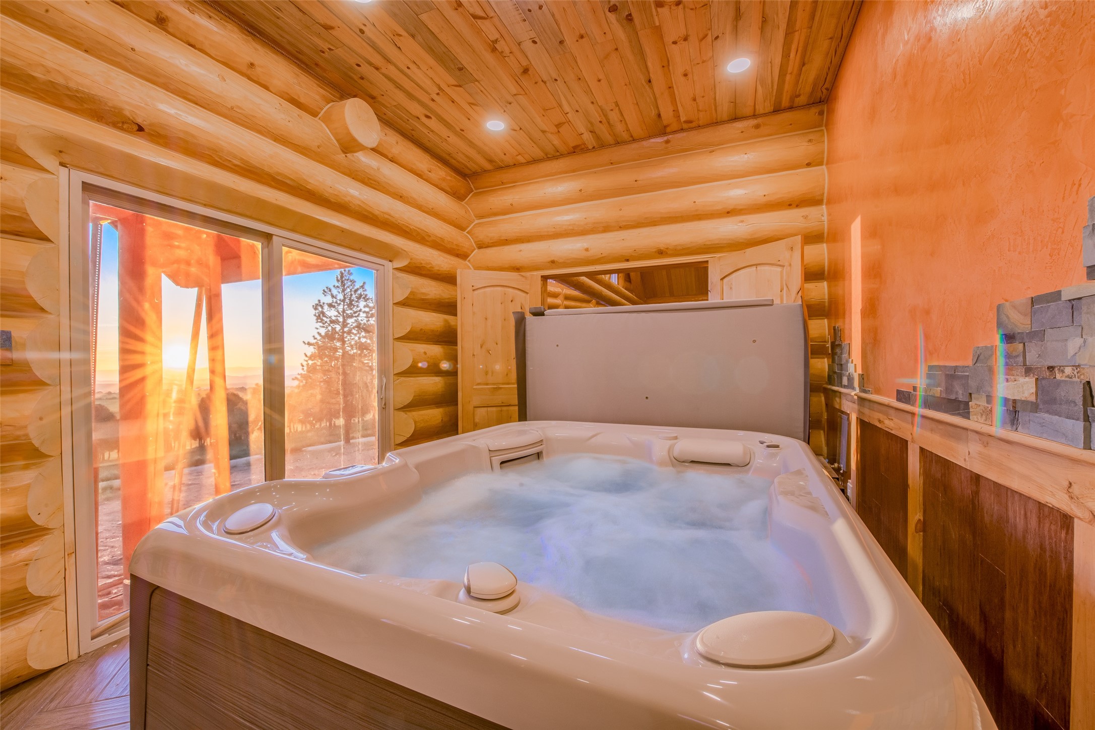 Nestled in a grove of ponderosa pine and embraced by the fresh mountain air of the Sangre de Cristo Mountain range, this property offers more than a view, it offers a way of life. The private road leads you to a unique home, resting perfectly in-tune with its environment. This home is located on the southern end of the Rocky Mountains, just 30 miles south of historic Taos, NM. It neighbors the Carson National Forest & Pecos Wilderness. It stands amongst a restored ponderosa pine forest. Two natural earth-fed springs. Numerous ponds created specifically to provide water to wildlife & for erosion control. This spacious ranch provides twenty +- acres of flood irrigated pasture from two acequias & 14+- acres of dry pasture. Registered with New Mexico Fish & Game for landowner elk tags in Unit 45 and is located within 60 to 70 miles of 5 ski resorts, namely Sipapu, Taos Ski Valley, Angel Fire, Red River and Ski Santa Fe. This log cabin lodge is newly built! It boasts a 27-foot cathedral ceiling,3 bedrooms, 2 bathrooms, hot tub, wood burning stove, and a 4-car garage/workshop with a bonus room upstairs, within its approximate 3500+- square feet, with an additional 1,200+- square feet of flawless decks - perfect for small intimate dinners or larger sophisticated gatherings. The 12-inch logs and floor plans that foundationally support this home were purchased from Montana Custom Log Homes Inc, the acclaimed creators and designers of custom-built, versatile, and handcrafted homes for generations. A view of hundreds of square miles of northern New Mexico valleys & mountains are out the west facing windows. Sunsets are glorious! Underground utilities, highspeed fiberoptic internet, cisterns for water catchment, 25 x 25 carport and so much more. Property excellent for that unique family get a way, secondary or primary home compound, or corporate retreat, the use is endless. A truly special and unique property awaits you! Don't miss out! Schedule your viewing today.