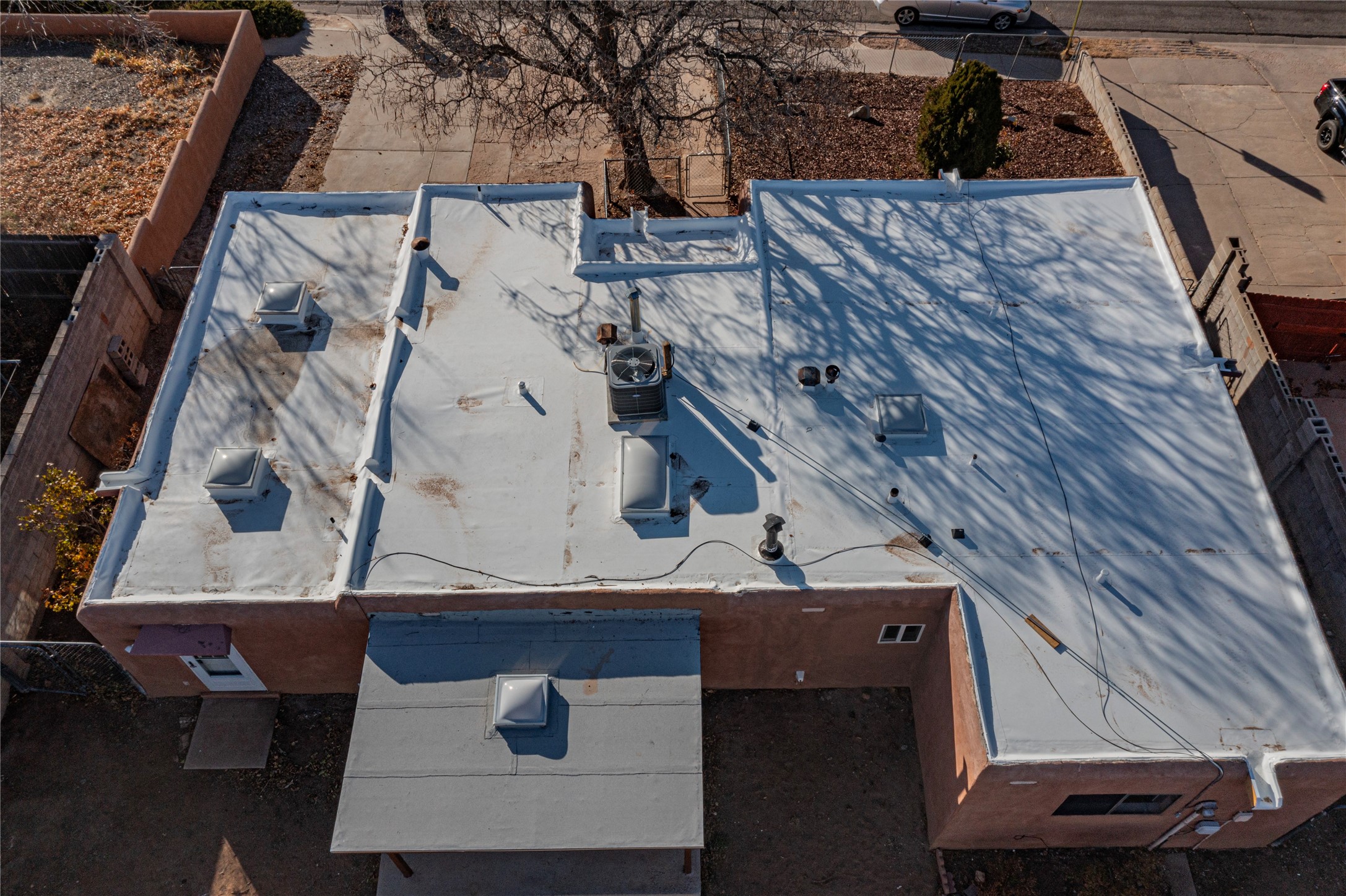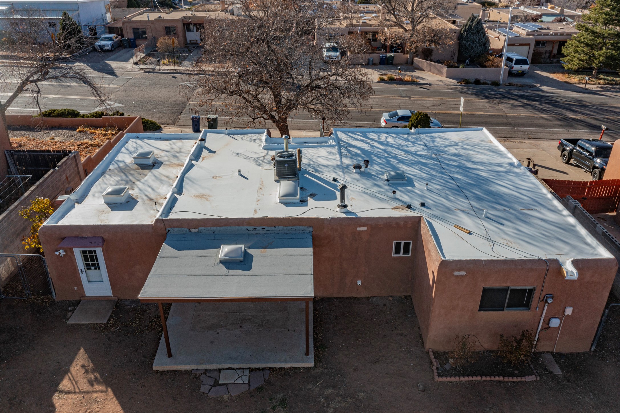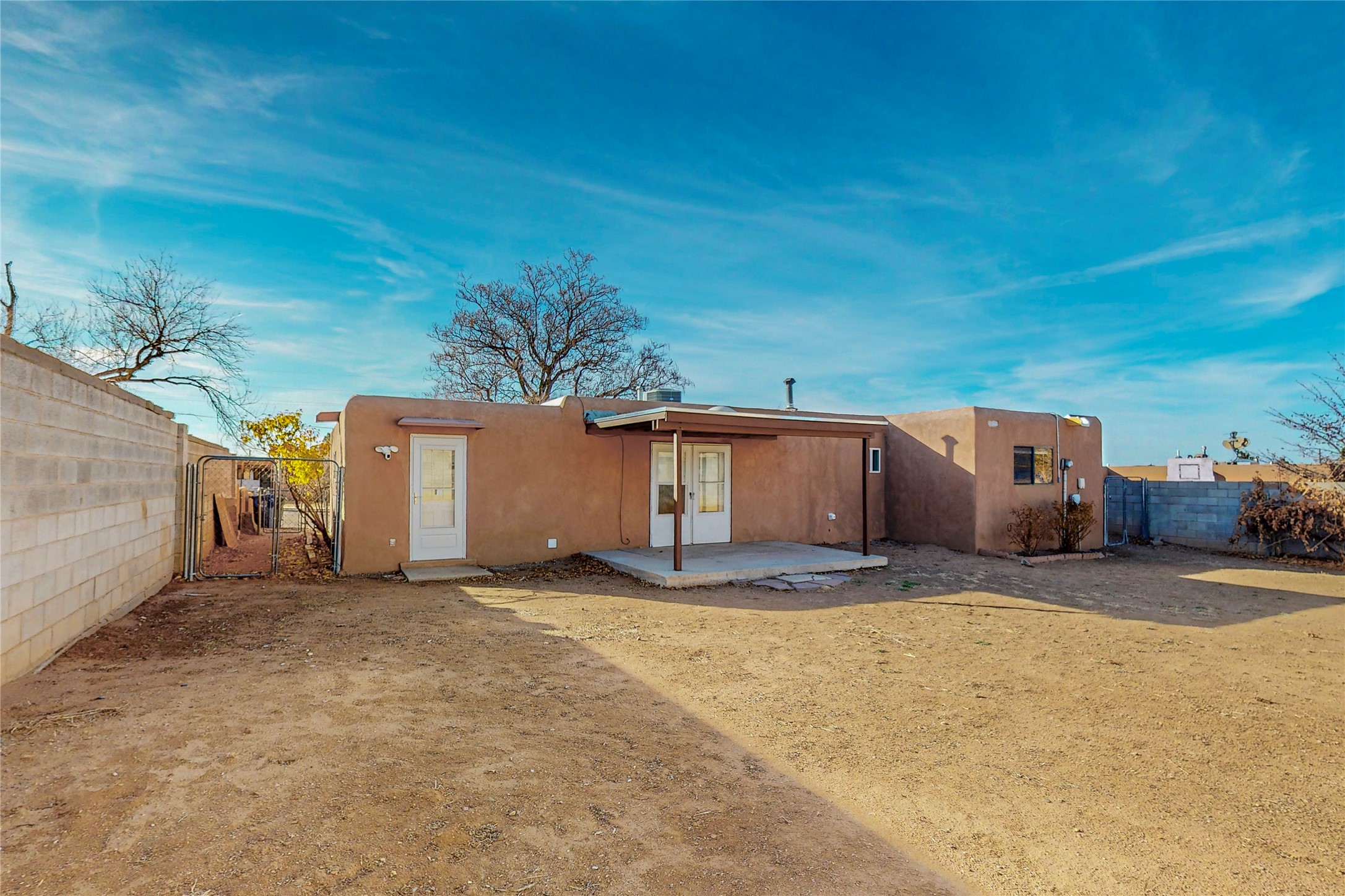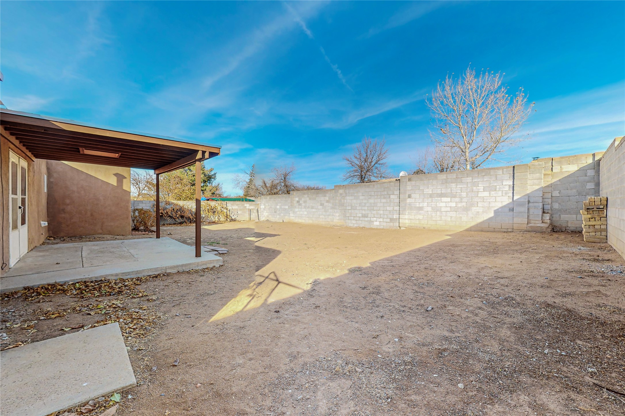 Come home to this move in ready FOUR bedroom two bathroom beautiful home! The kitchen is open concept with a dining area that over looks into the spacious living room.The living room has a cozy fireplace and french doors that open up to the very large walled back yard that your family can make their own. Ceiling fans in each of the bedrooms and beautiful skylights throughout the home. A brand new TPO membrane roof was just installed with a 20 year labor and material warranty. There is a single car attached garage with a laundry room. Conveniently located near schools, hospitals, the Railrunner and shops!