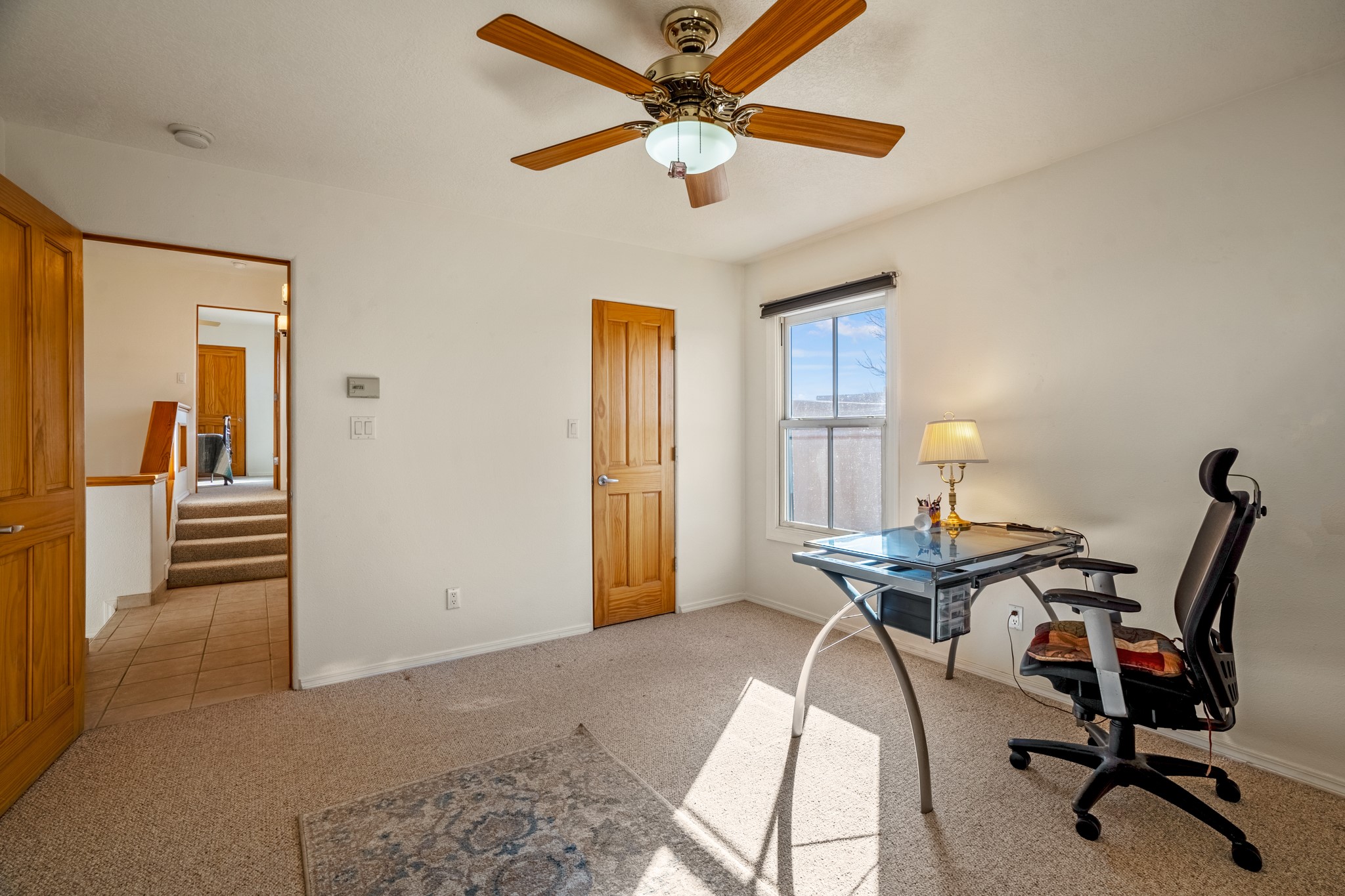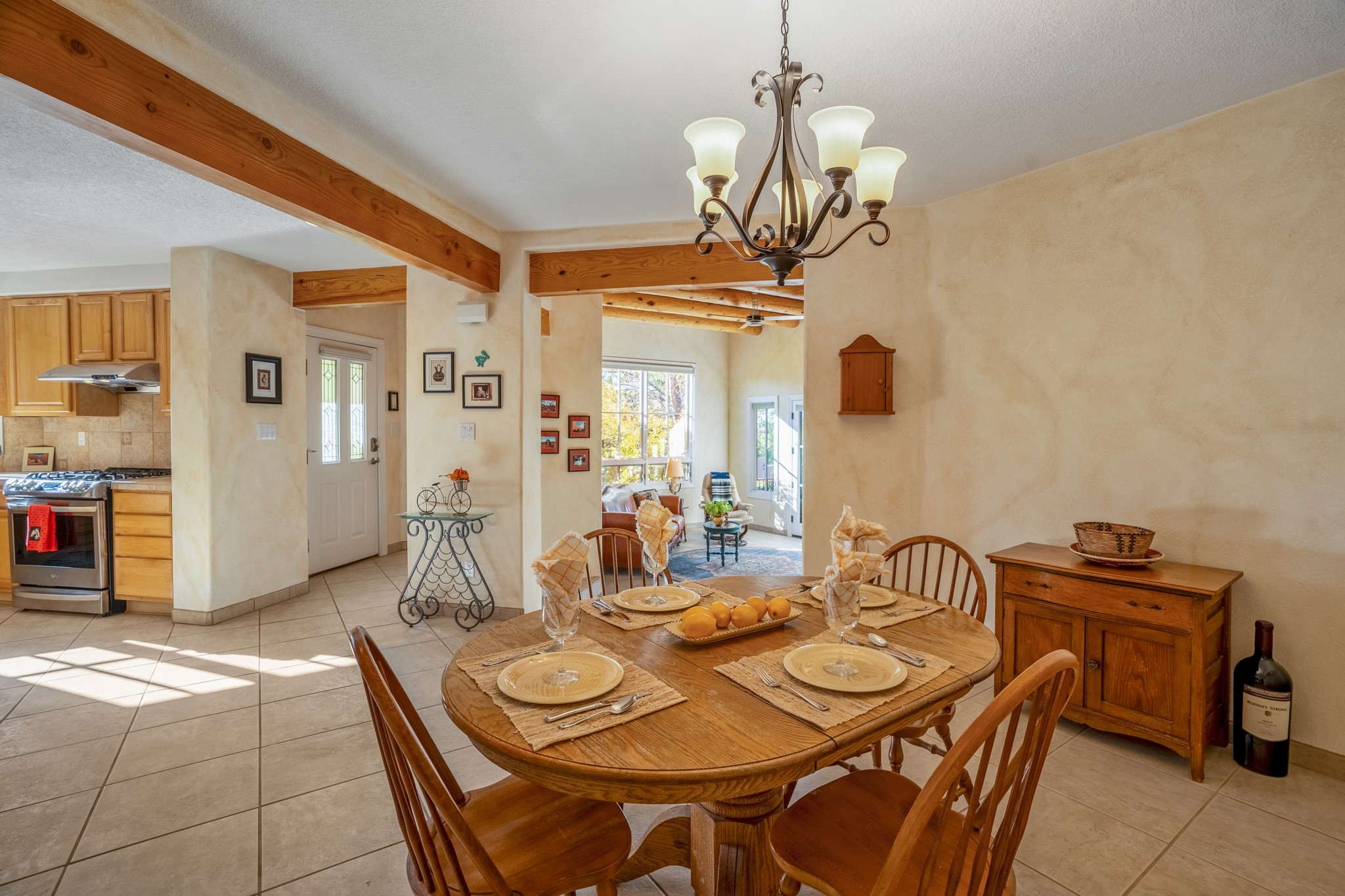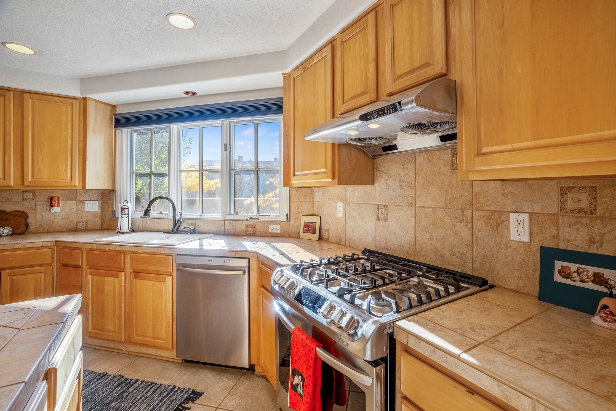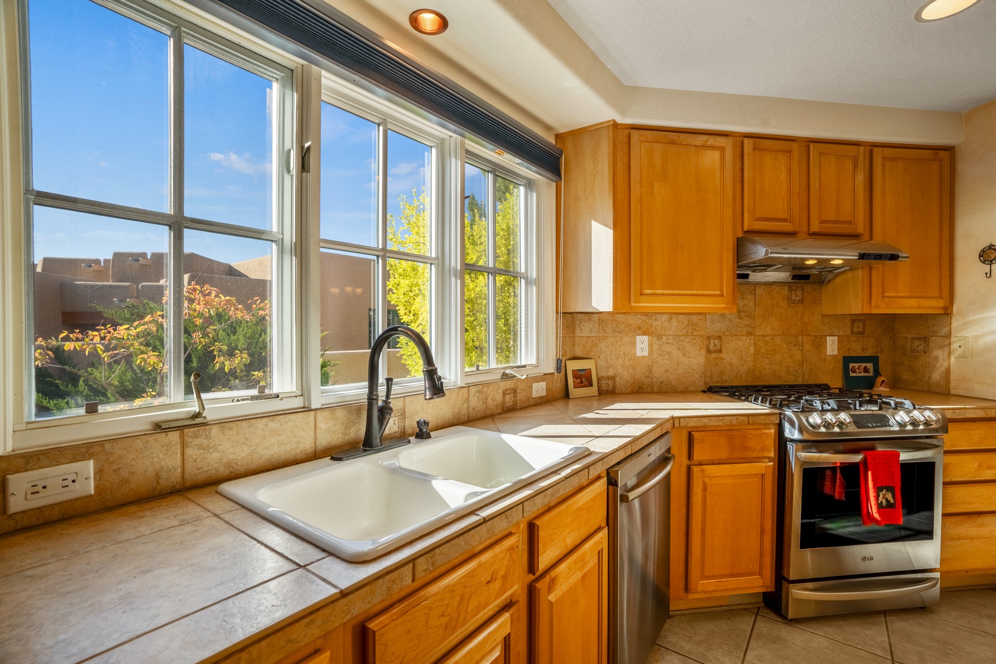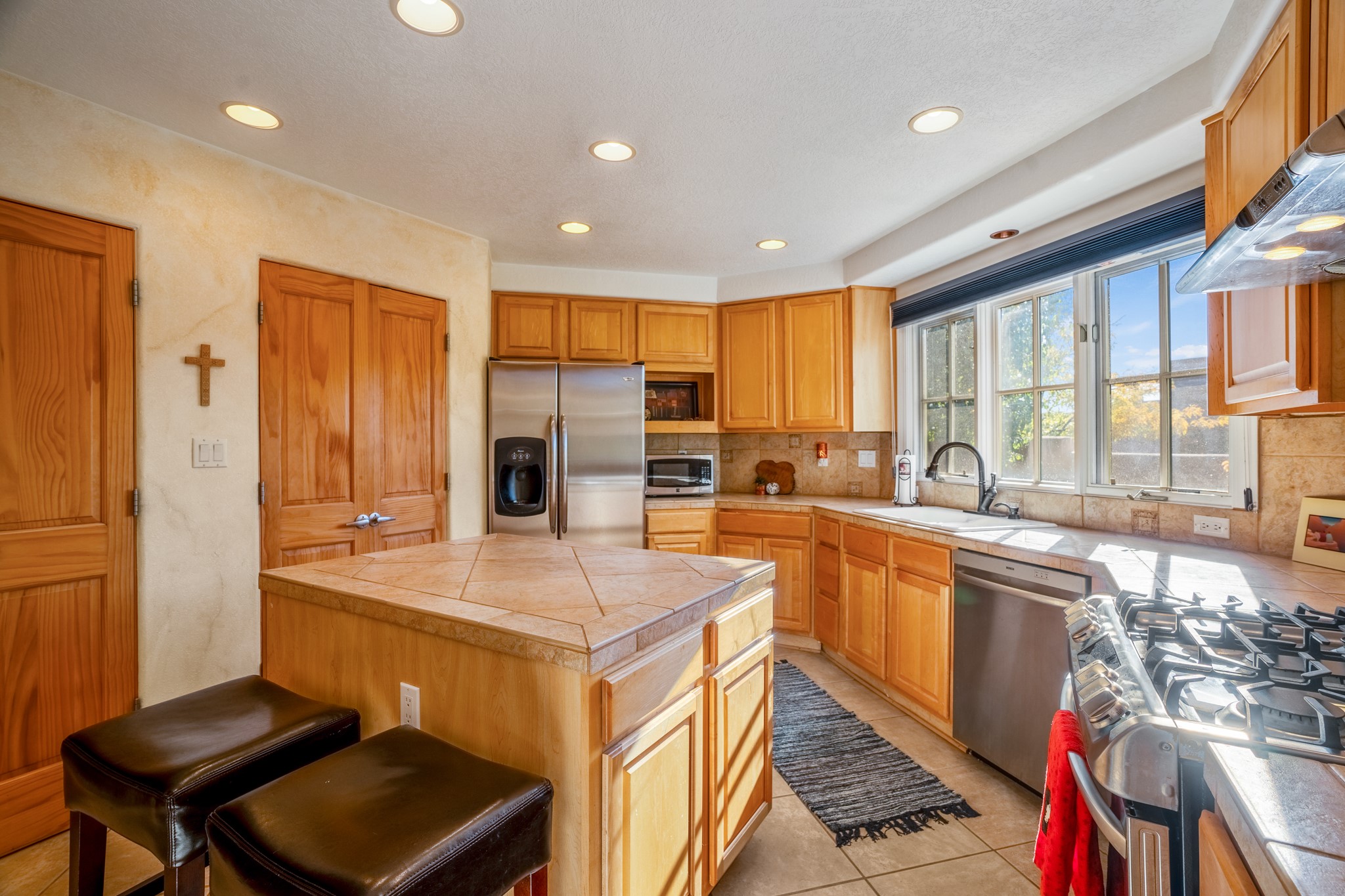 Bright, airy, contemporary patio home located in the heart of Aldea de Santa Fe. This light filled home features an open concept floor plan, first floor master suite, attached garage, radiant in floor heat, evaporative cooling, beautiful landscaping, drip irrigation and a large, covered patio with Jemez mountain views. The main living area has a high ceiling, vigas, large windows, faux paint and wood burning kiva fireplace. Kitchen features spacious pantries, maple cabinets, a center island and stainless Bosch and Amana appliances. The master suite includes a walk-in closet, jetted tub and large shower. French doors with screens in both the living room and master suite open directly to the patio. Two spacious, carpeted bedrooms and full bath are located on the second floor. The lovely and peaceful yard is completely walled for your furry friends. The front of the house faces Aldea open space, offering stunning mountain views and the serenity of a walkable community with fitness amenities, parks, and miles of walking trails. The home backs up to a large parking area for guests. Great location with easy access to NM 599, Los Alamos, downtown Santa Fe. Aldea de Santa Fe is a new urbanist subdivision that offers 13 miles of walking trails, community center, Bocci ball, tennis and basket-ball courts. Just steps away from Aldea plaza and specialty shops, caf, and businesses. community is great place to meet new friends with many special interest clubs in place.