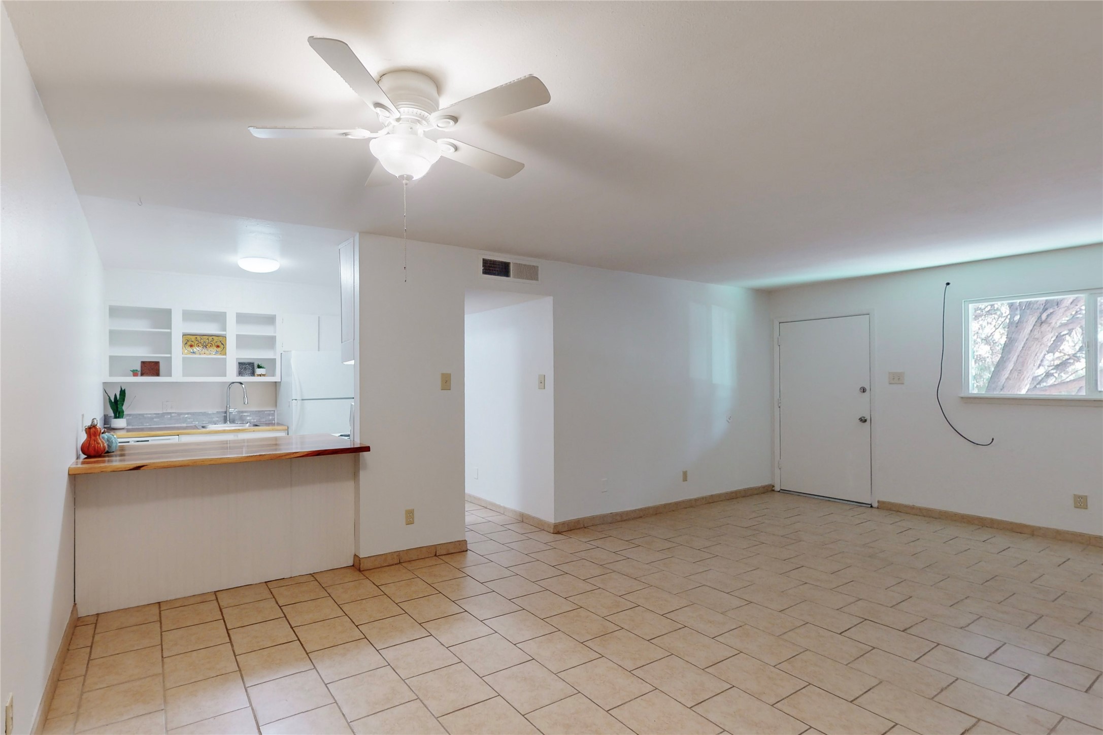Centrally located, mid-town two-bedroom, one full bath condo at an amazing and affordable price. This 874 square foot, ground-floor unit is located on a tranquil courtyard within the Coronado Condos where access to the property is gated and monitored. Floors are fully tiled, paint is fresh, kitchen has some new cabinets with drawers, butcher block counters with an over-hang for casual dining, replaced windows, and the master bedroom has a walk-in closet. You won't find anything else in Santa Fe at this price. The association has full-time on-site management and maintenance. The grounds include a clean laundry, a play ground and a community dog run. The unit comes with one assigned parking spot plus visitor spots for guests and/or a second vehicle. This property is ideal for first time home buyers, investors, or a baby-boomer who is downsizing. This condo will be considered a non-warrantable type loan if you are obtaining a loan.
