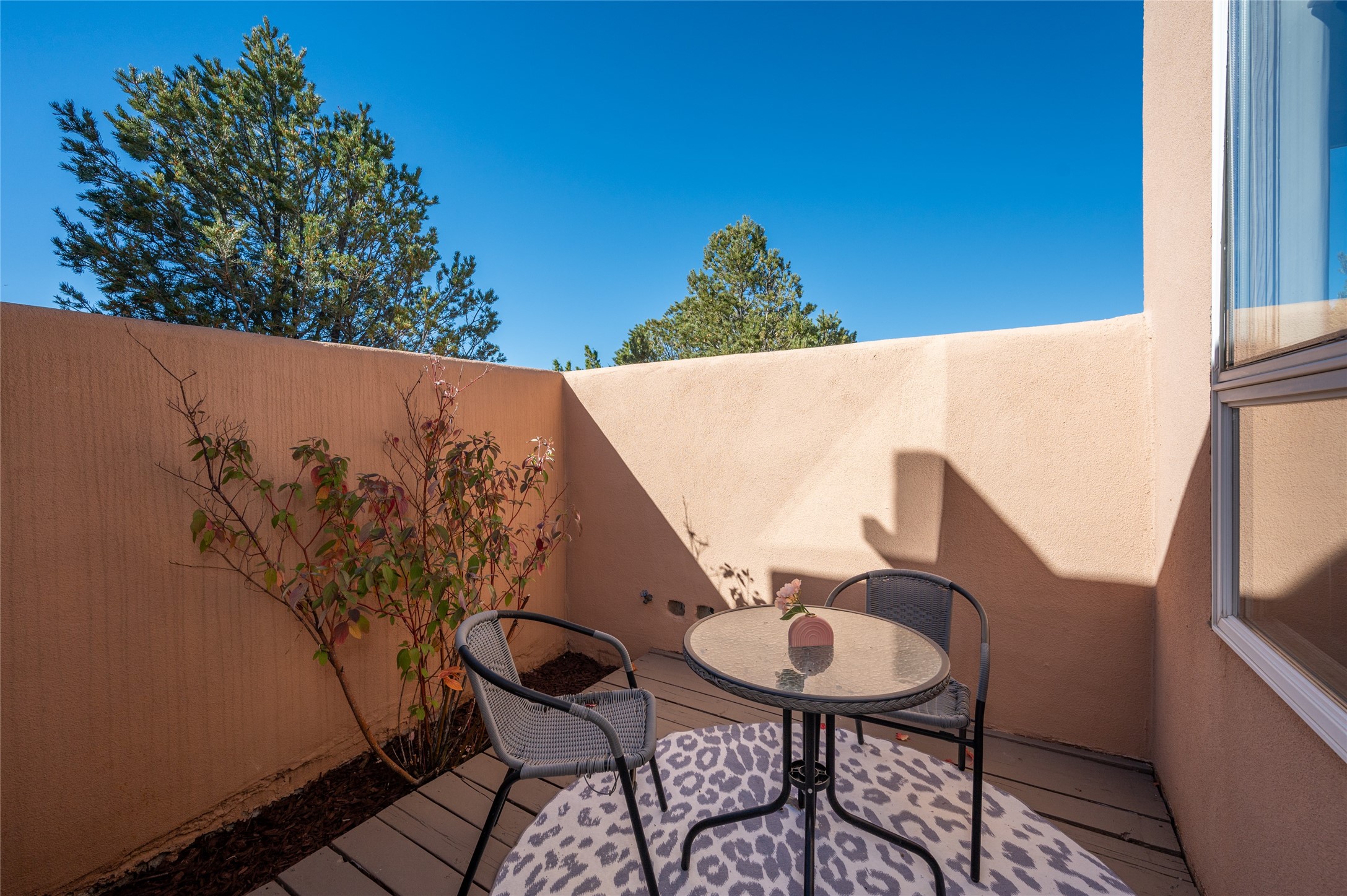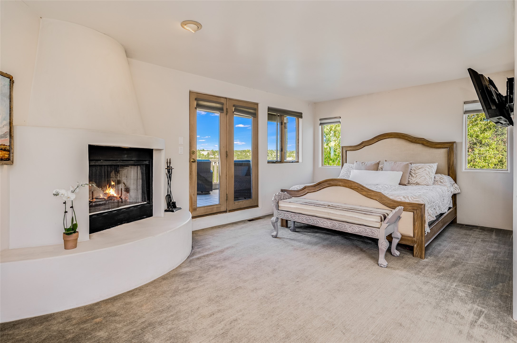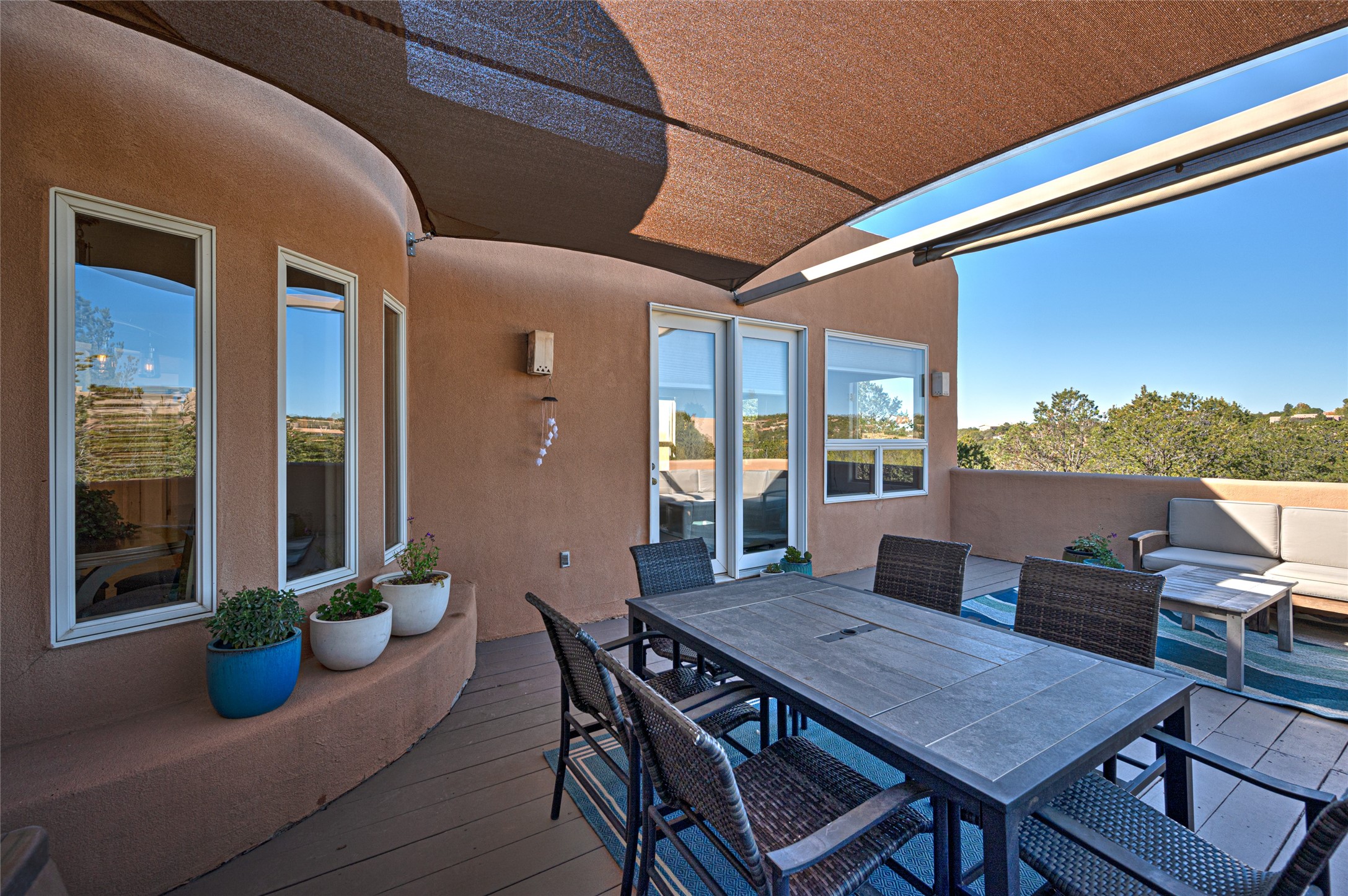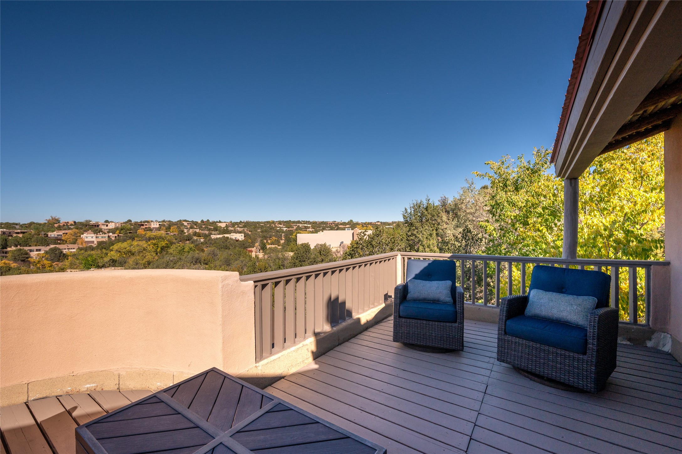 A true walk to the historic Santa Fe plaza, located in a quiet cul-de-sac, this home is nestled in the hills of downtown Santa Fe. There are 2 lovely decks to enjoy the peaceful blue skies of New Mexico! The airy, light and bright entryway lends itself to a feeling of warmth upon arrival. The Santa Fe style home has unique features such as beams, wood burning fireplaces, and nichos. The open floor plan and high ceilings give the house a spacious feel. There is nice separation between the upstairs primary suite and downstairs guest rooms. The primary suite has a private deck to sit and enjoy the outdoors! There are many updates throughout the home which has been pre-inspected. There is a gated, private courtyard leading to the front door and a 2 car garage, with direct entry. The outdoor spaces are so serene and enjoyable! The home is located near walking trails, a recreation center, downtown, schools, fabulous restaurants, shopping and an easy commute to Los Alamos! The views are astounding and the home has wonderful features throughout!