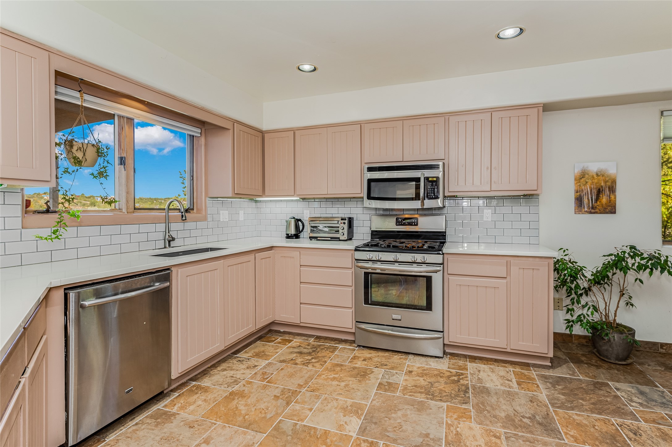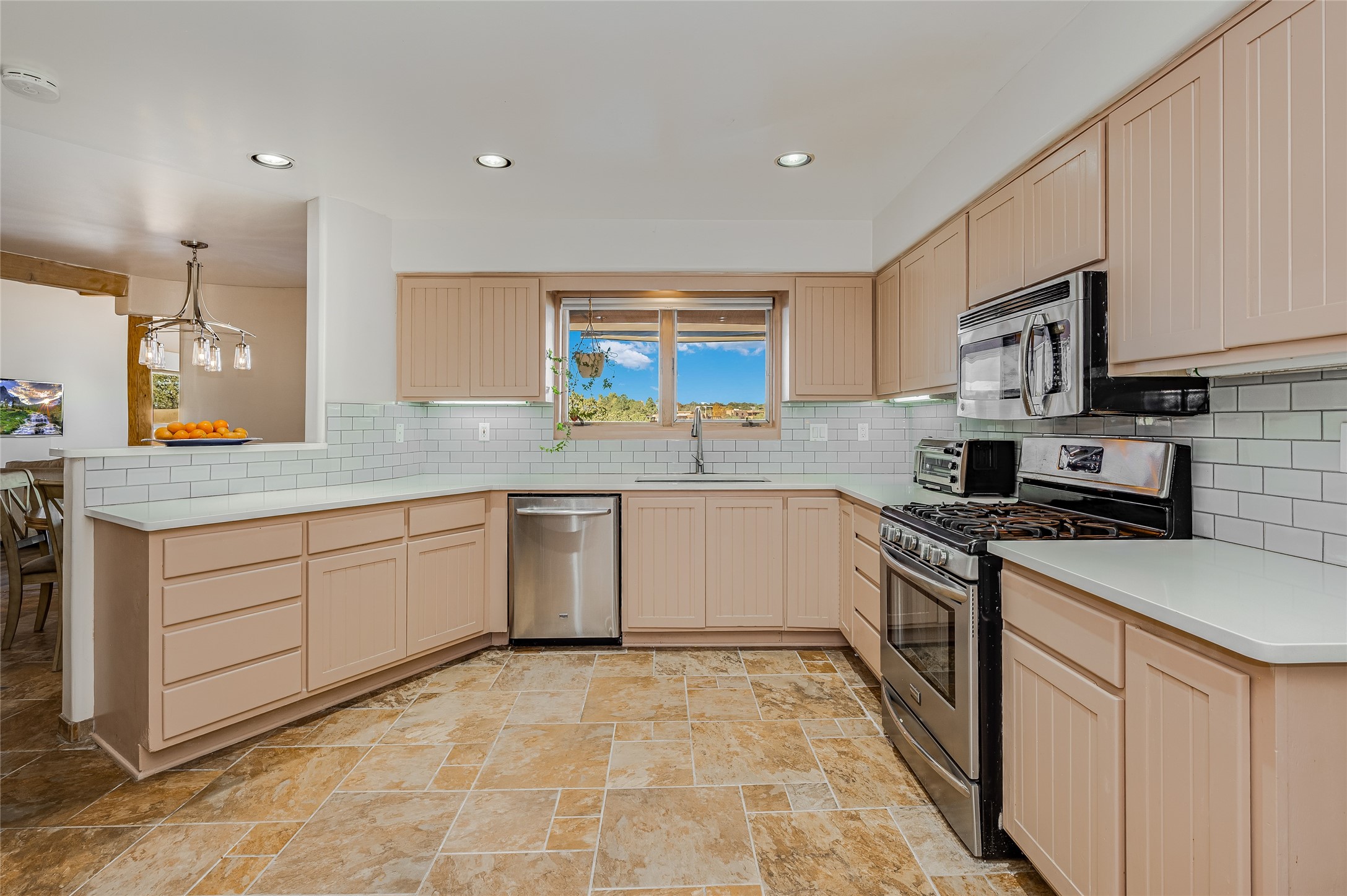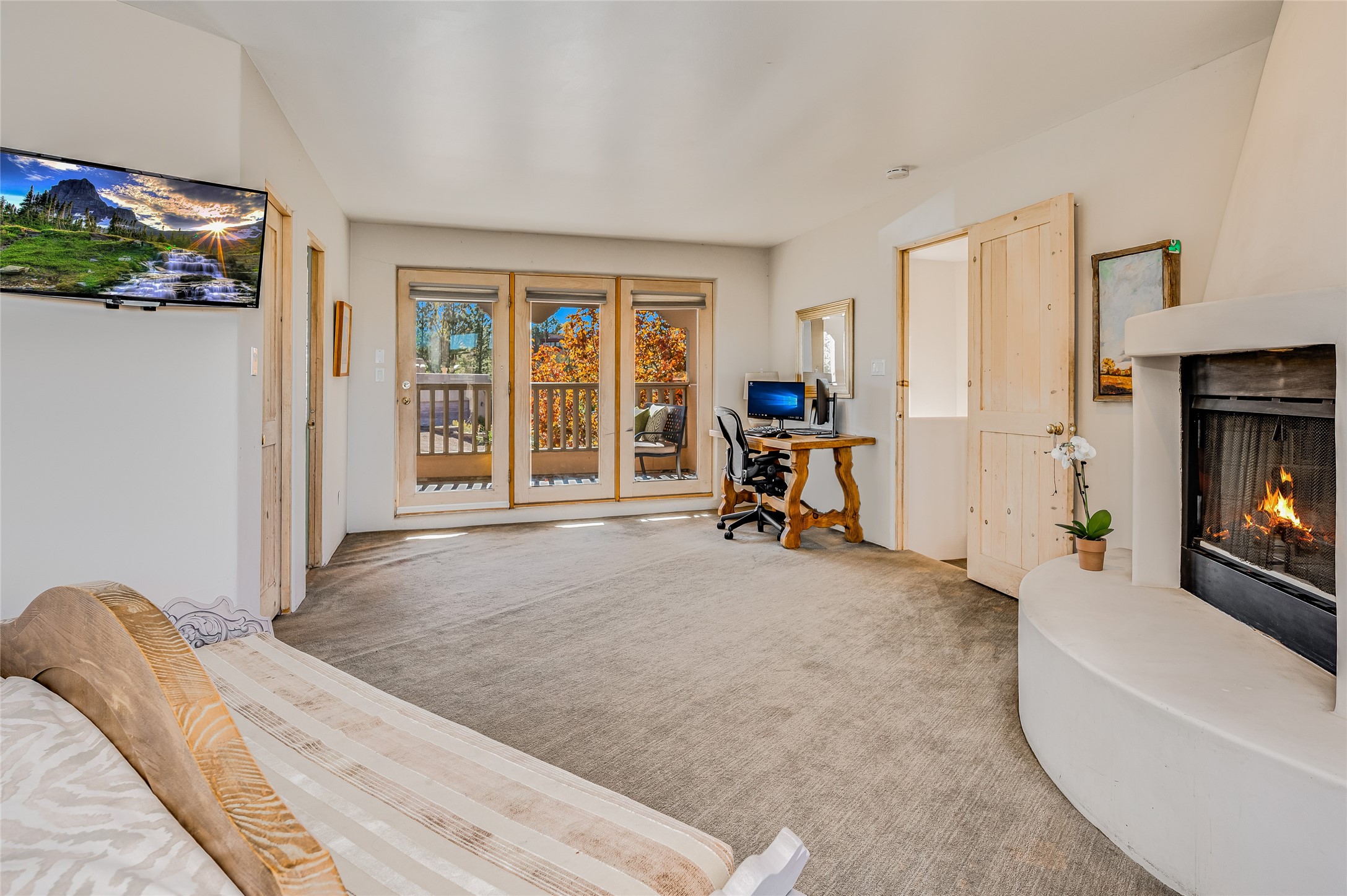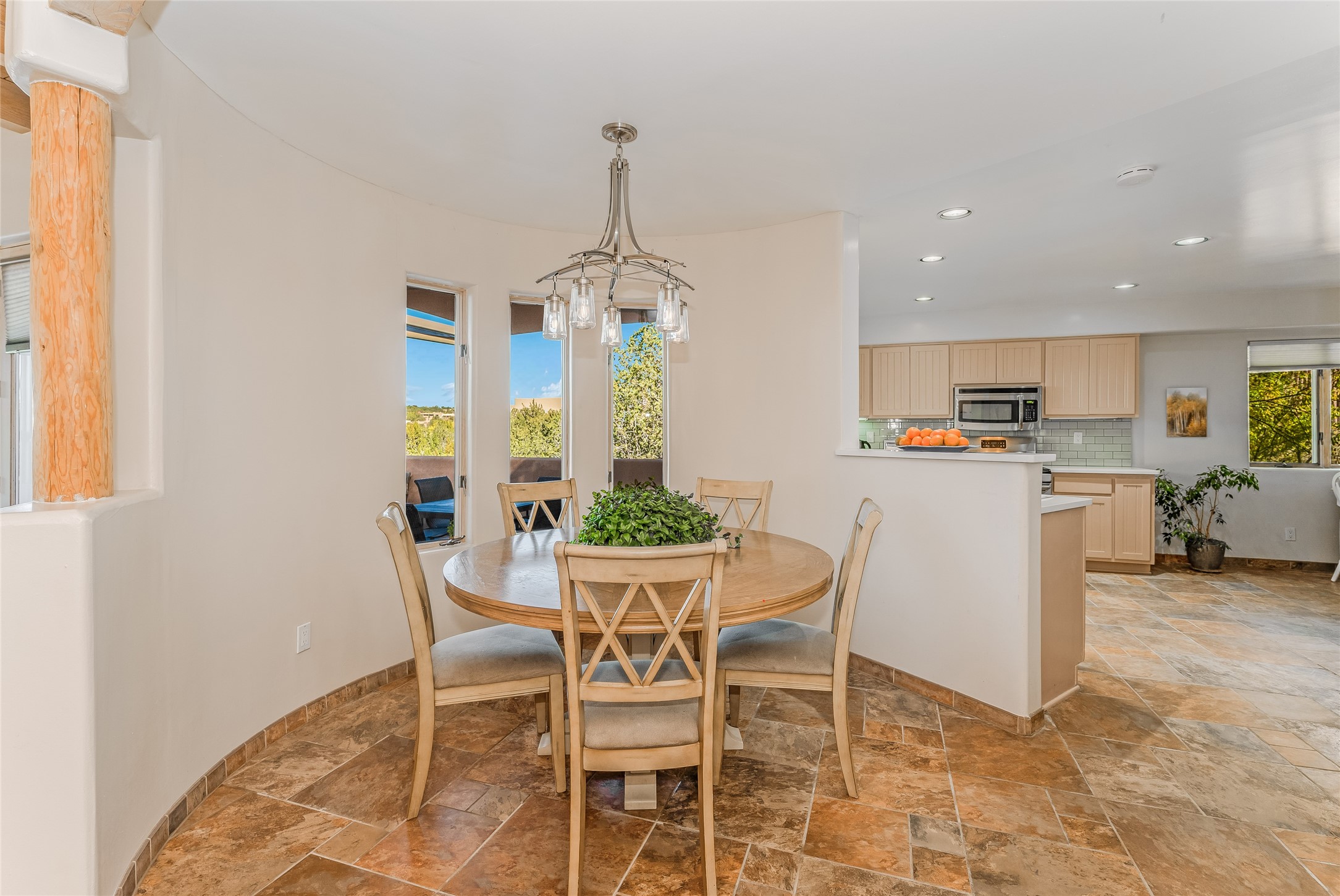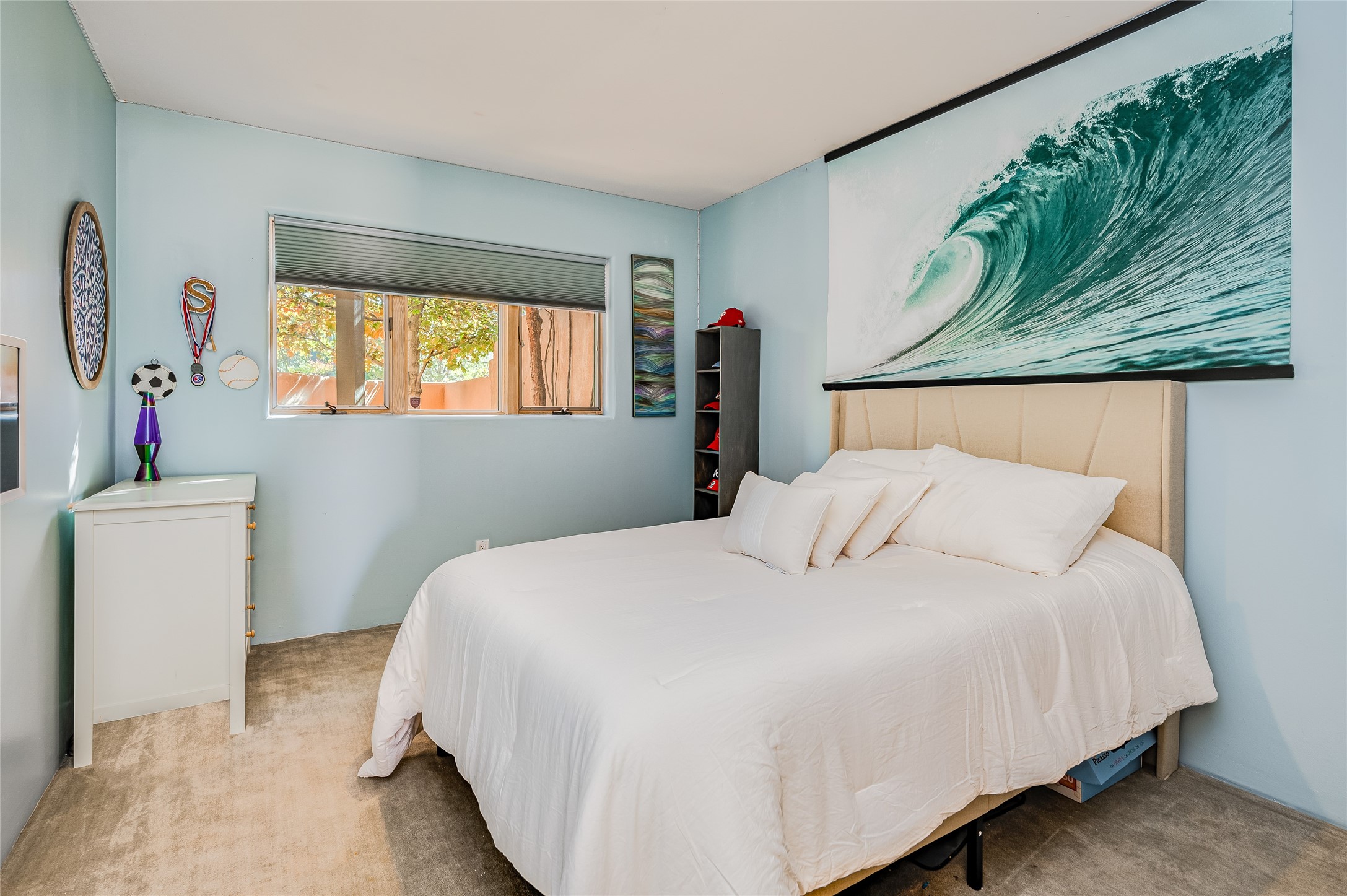 A true walk to the historic Santa Fe plaza, located in a quiet cul-de-sac, this home is nestled in the hills of downtown Santa Fe. There are 2 lovely decks to enjoy the peaceful blue skies of New Mexico! The airy, light and bright entryway lends itself to a feeling of warmth upon arrival. The Santa Fe style home has unique features such as beams, wood burning fireplaces, and nichos. The open floor plan and high ceilings give the house a spacious feel. There is nice separation between the upstairs primary suite and downstairs guest rooms. The primary suite has a private deck to sit and enjoy the outdoors! There are many updates throughout the home which has been pre-inspected. There is a gated, private courtyard leading to the front door and a 2 car garage, with direct entry. The outdoor spaces are so serene and enjoyable! The home is located near walking trails, a recreation center, downtown, schools, fabulous restaurants, shopping and an easy commute to Los Alamos! The views are astounding and the home has wonderful features throughout!