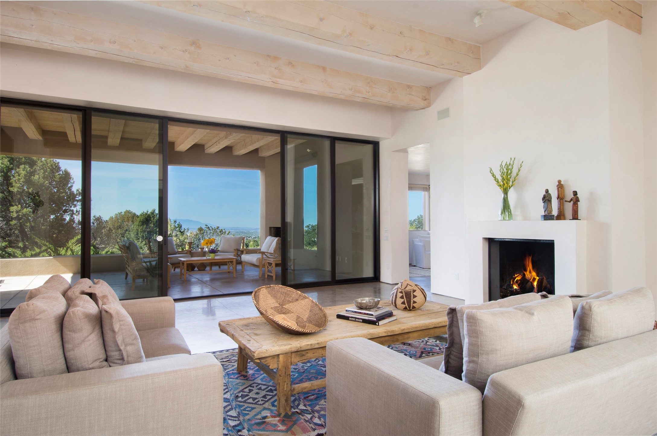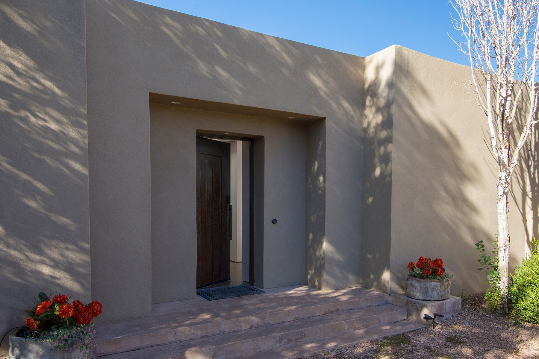 A Stunning, soft contemporary home nestled in the captivating landscapes of Santa Fe. As you approach the property you are greeted by a stunning faade that seamlessly blends modern elements with the timeless charm of the Southwest. The well-thought-out floor plan is designed to maximize natural light and showcase the picturesque surroundings at every turn. The main living area exudes elegance while maintaining a warm and inviting atmosphere. Adjacent to the living area, you'll find a meticulously designed gourmet kitchen, equipped with state-of-the-art appliances, ample counter space, and storage solutions. The bedrooms in this soft contemporary home are thoughtfully placed to ensure privacy and tranquility. Each bedroom offers an oasis of comfort. The covered outdoor portal provides a seamless extension of the living space and offers a sanctuary to relax and rejuvenate. It is a perfect spot for al fresco dining, morning coffee, or simply basking in the tranquility of the surrounding landscape. In summary, this home combines modern architectural elements with a deep appreciation for its natural surroundings. With its thoughtfully crafted floor plan, captivating views, and inviting outdoor spaces, it offers a tranquil haven where you can truly appreciate the beauty and serenity of Santa Fe.