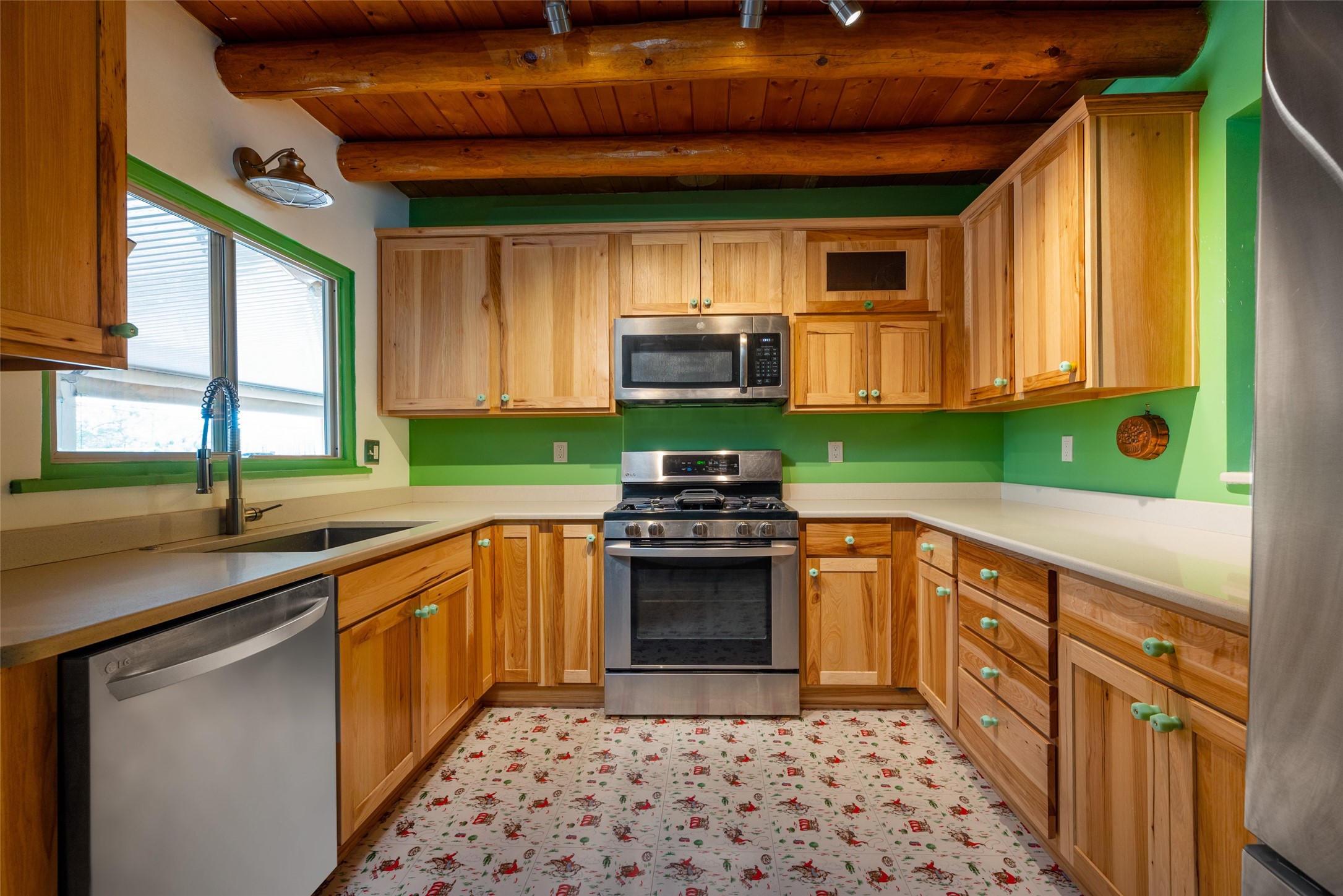 - Interior FeaturesBeamed Ceilings, No Interior Steps