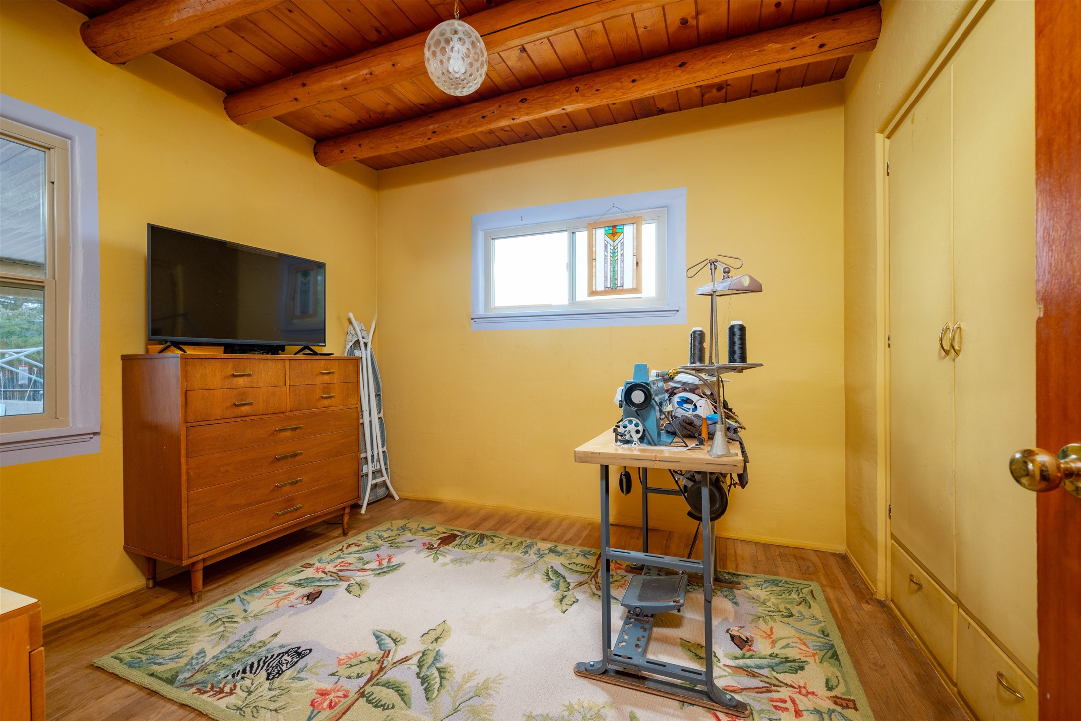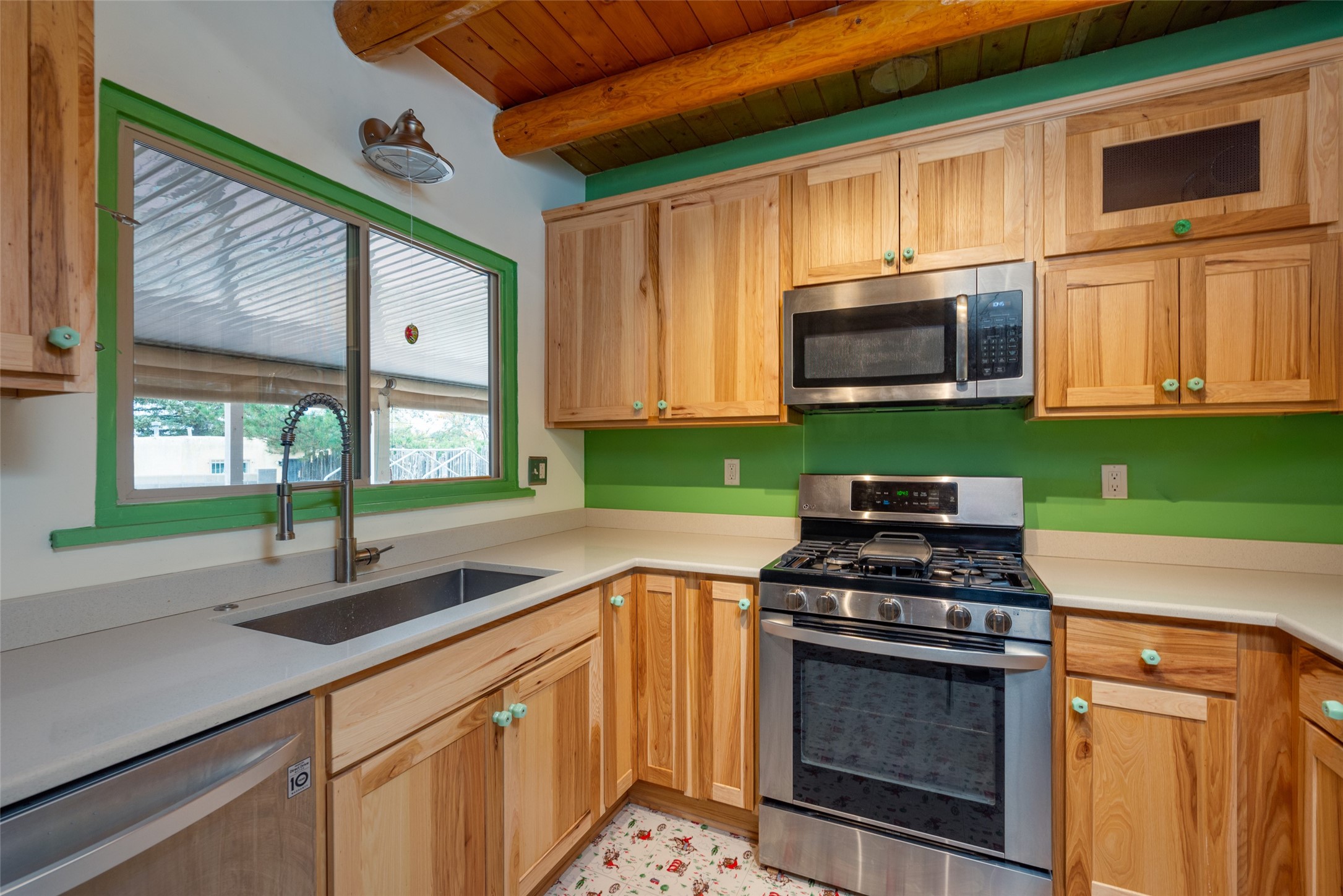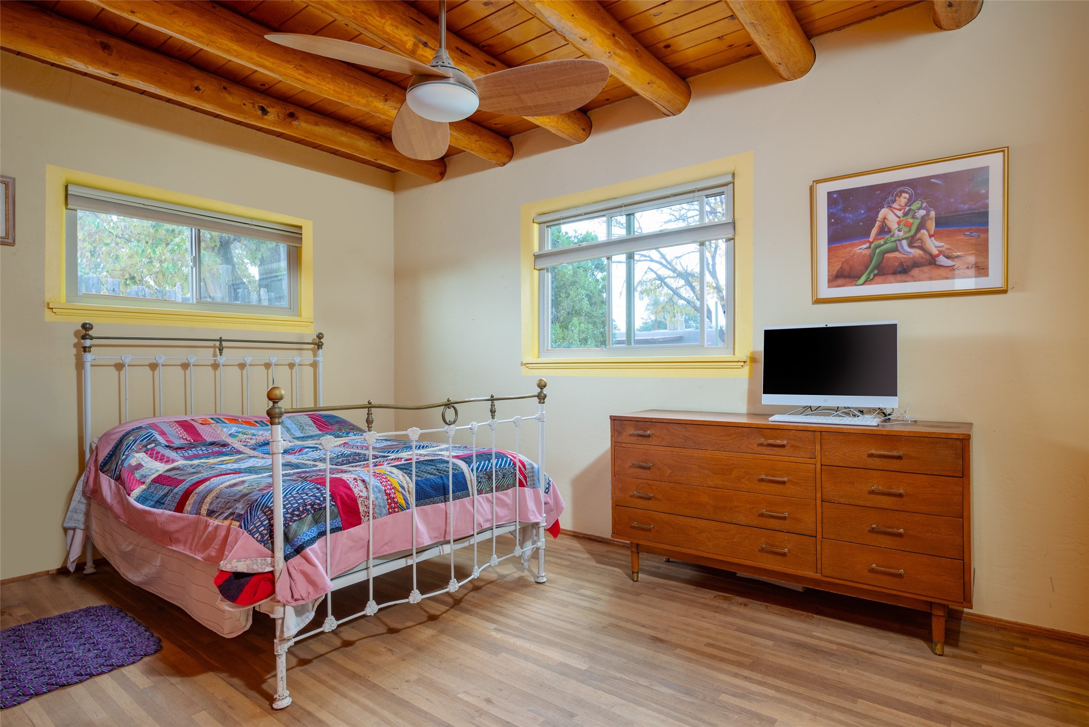 Are your clients looking for character, they'll love this stunning Stamm in Casa Alegre! Vigas with T&G throughout (even in the bathroom and front patio). Hardwood floors in living area, dining area, hallway, and two bedrooms, Kiva fireplace, new kitchen, new appliances plus new luxury vinyl flooring, new main bathroom, mature landscaping. This home has a new roof and new windows. Energy efficiency with solar photovoltaic. Looking for a home with lots of charm that will astonish your clients? This is it!