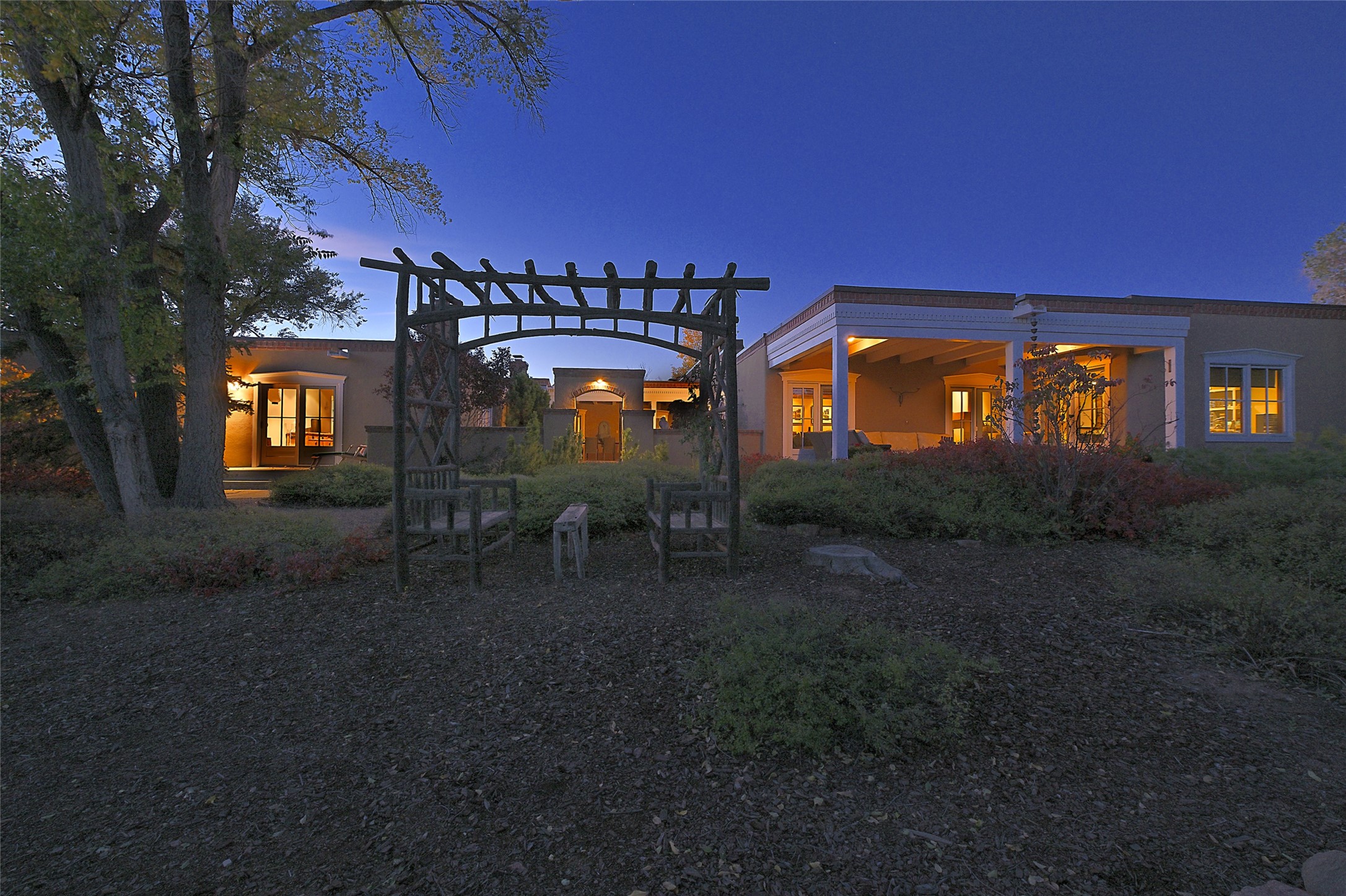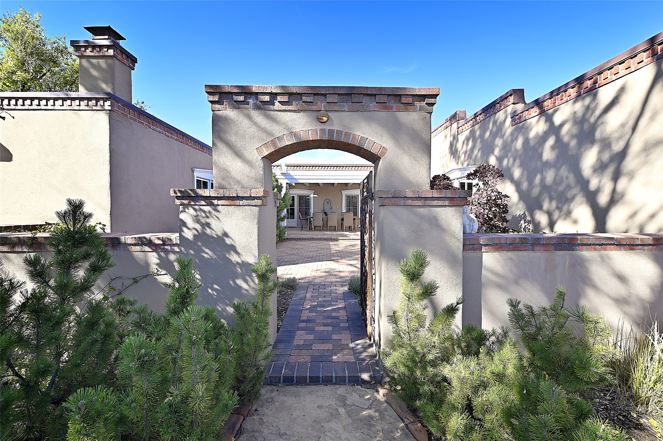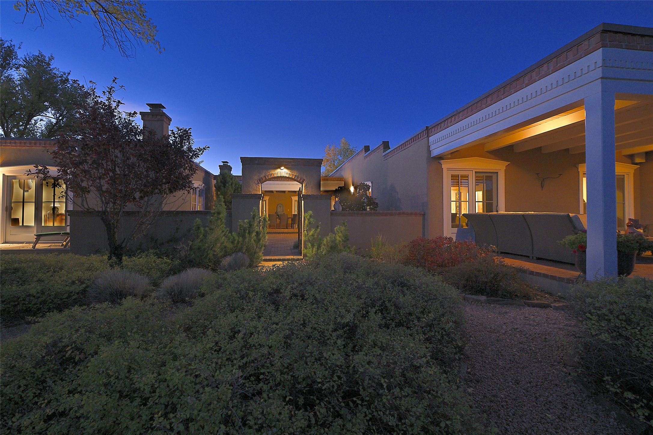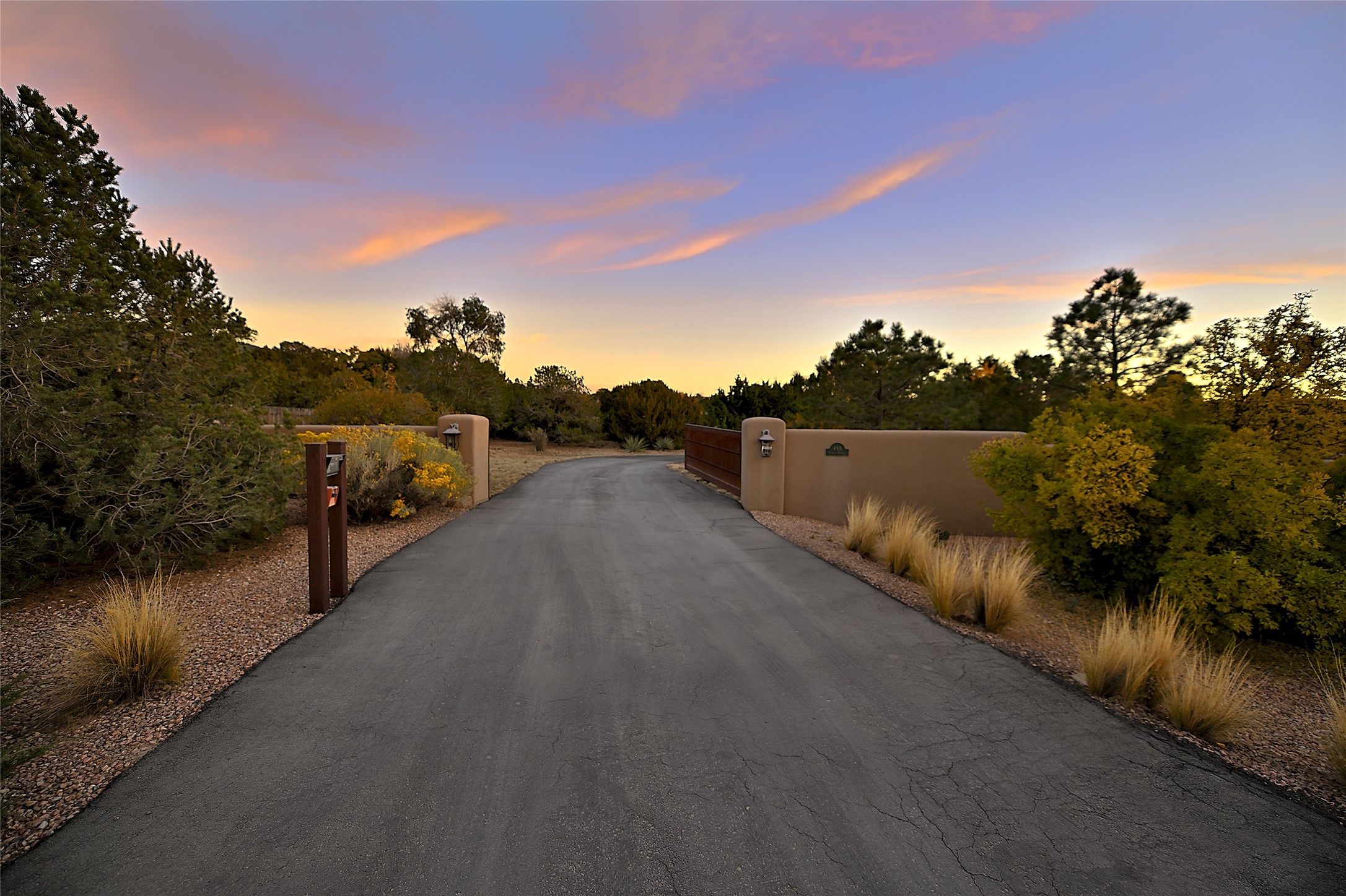 Unparalleled privacy is yours in this gated Museum Hill residence with 3 Bedrooms, 4 1/2 Baths, Office & Studio on 1.9 acres. It combines a classic Territorial exterior w Craftsman interior style, totally renovated by Wolf Corp in 2005. Living room features a cozy fireplace & wood-beamed ceiling. Kitchen is a culinary masterpiece w 4' x 8' granite island, Two Sub-Zero refrigerator drawers, 48" Sub-Zero refrigerator, 36" Wolf Range/Oven, walk-in pantry, counter-level gas fireplace plus breakfast nook w banco. Portal off Kitchen has a fireplace & soothing fountain. Media / Family Room includes a wine bar w Sub-Zero wine chiller, fireplace, easy access to the back portal & yard thru 2 sets of sliding glass doors plus adjacent Powder Bath. Art Studio is accessed from the back portal or through the 2-car Garage w large storage area. Master Bedroom & Bath suite offers a Kiva fireplace, dual walk-in closets, access to a private outdoor area w hot tub plus spacious bath w double sinks, steam shower & soothing soaking tub. Office has a built-in desk & en-suite bath. Bedroom 2 offers two twin beds & en-suite bath, while Bedroom 3 opens to the outdoor patio area & has an en-suite bath w double sinks. Special features include hand-forged hardware, custom alder cabinets, 3 forced-air heat and A/C units, as well as a new septic system in 2005. This property is a true gem--gated, renovated by Wolf Corp, on 1.9 acres, and just a short 1.1-mile stroll to Kaune's Market & the Food Trucks.