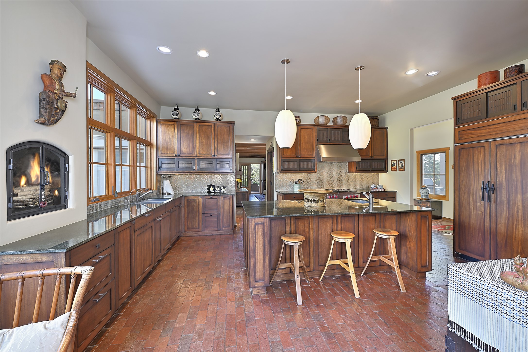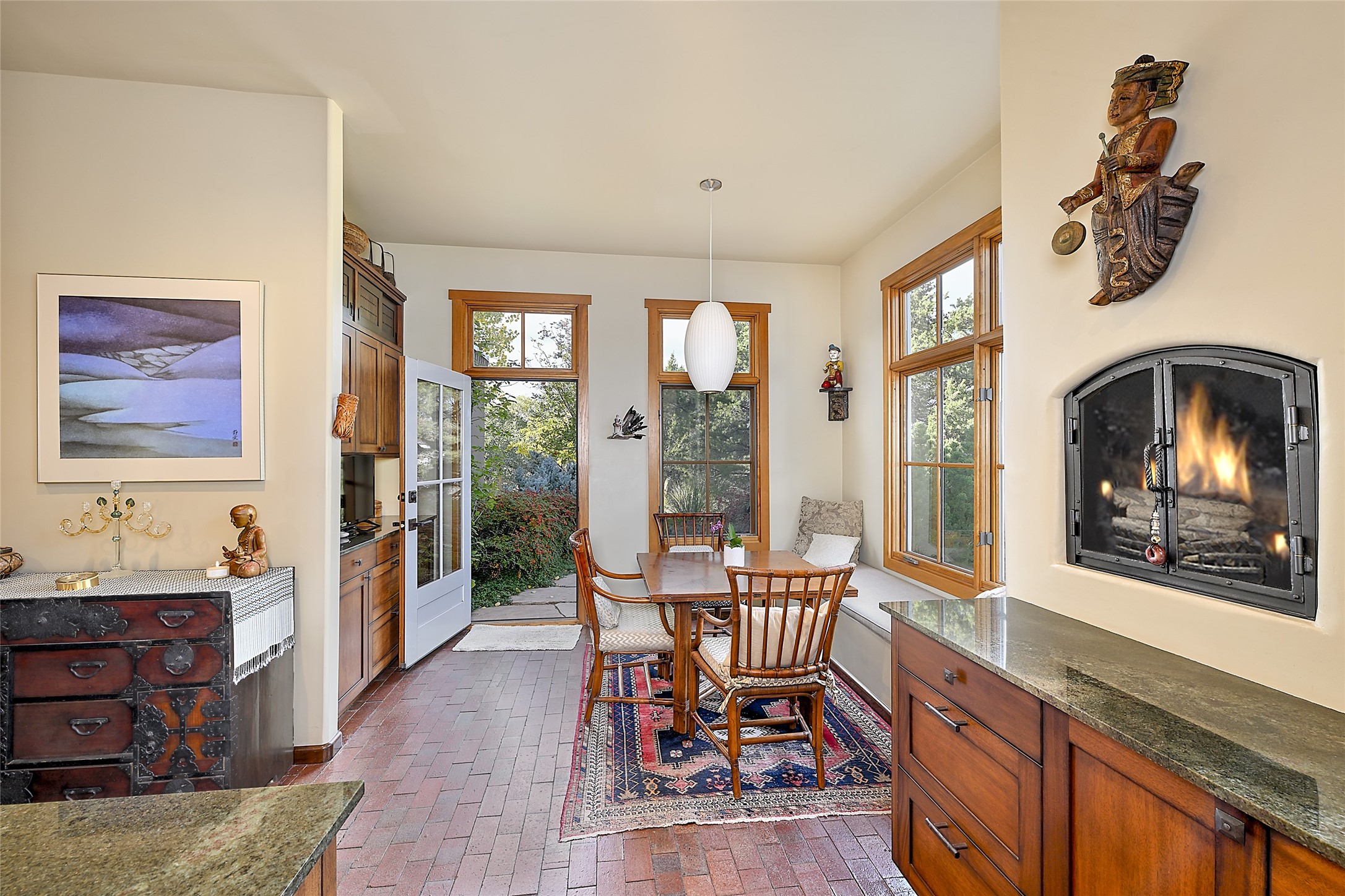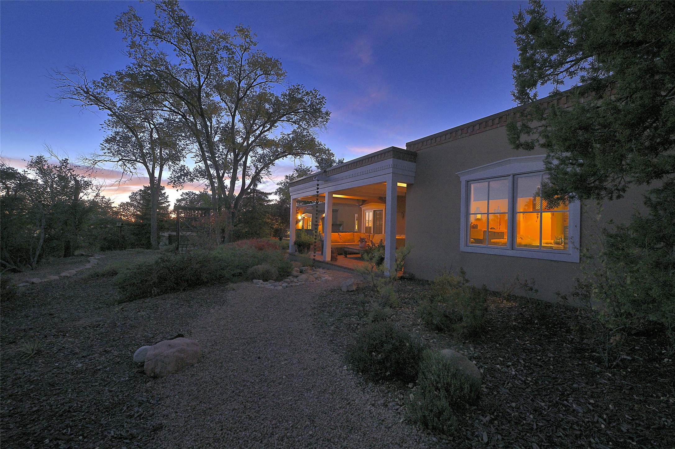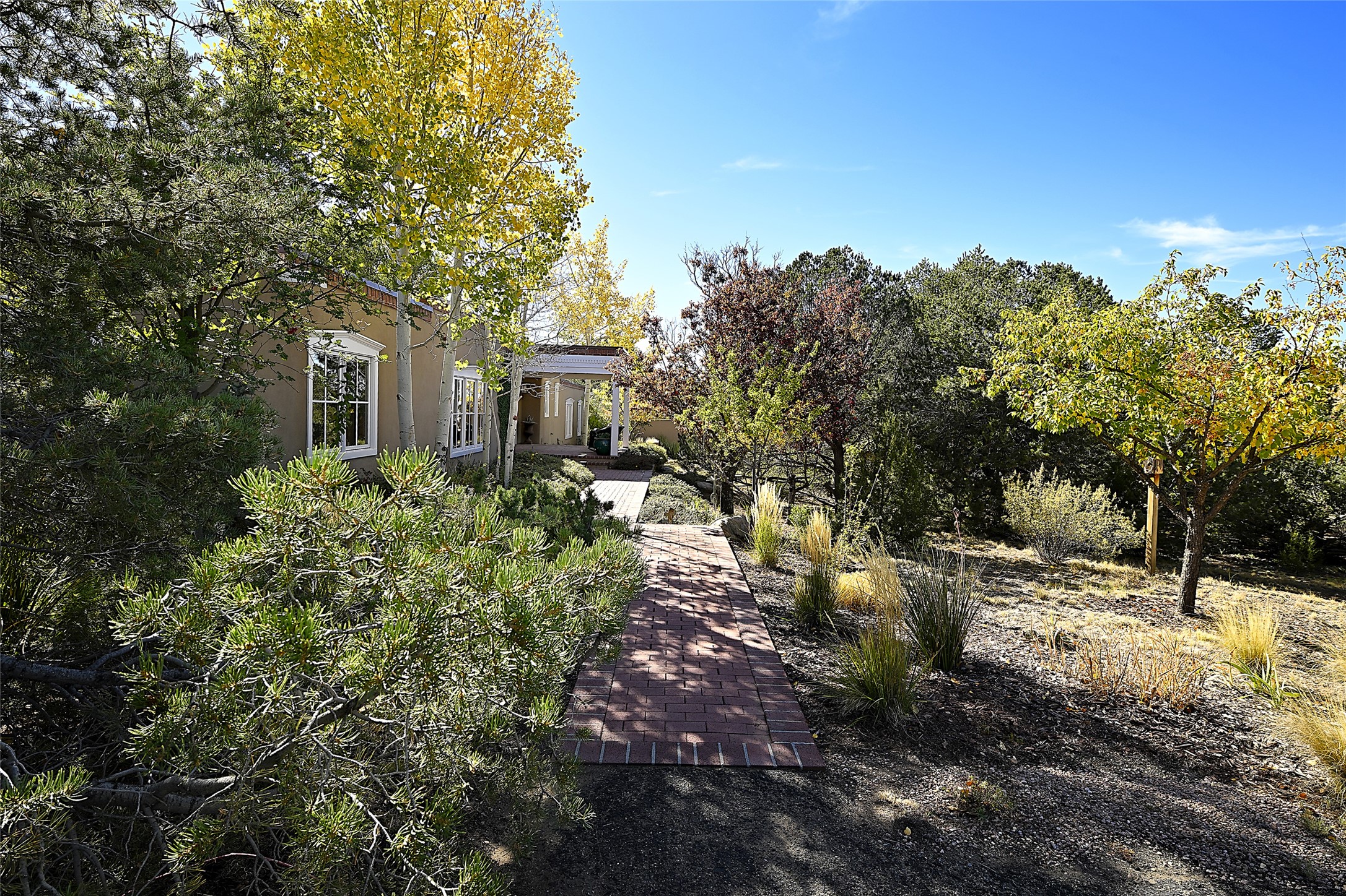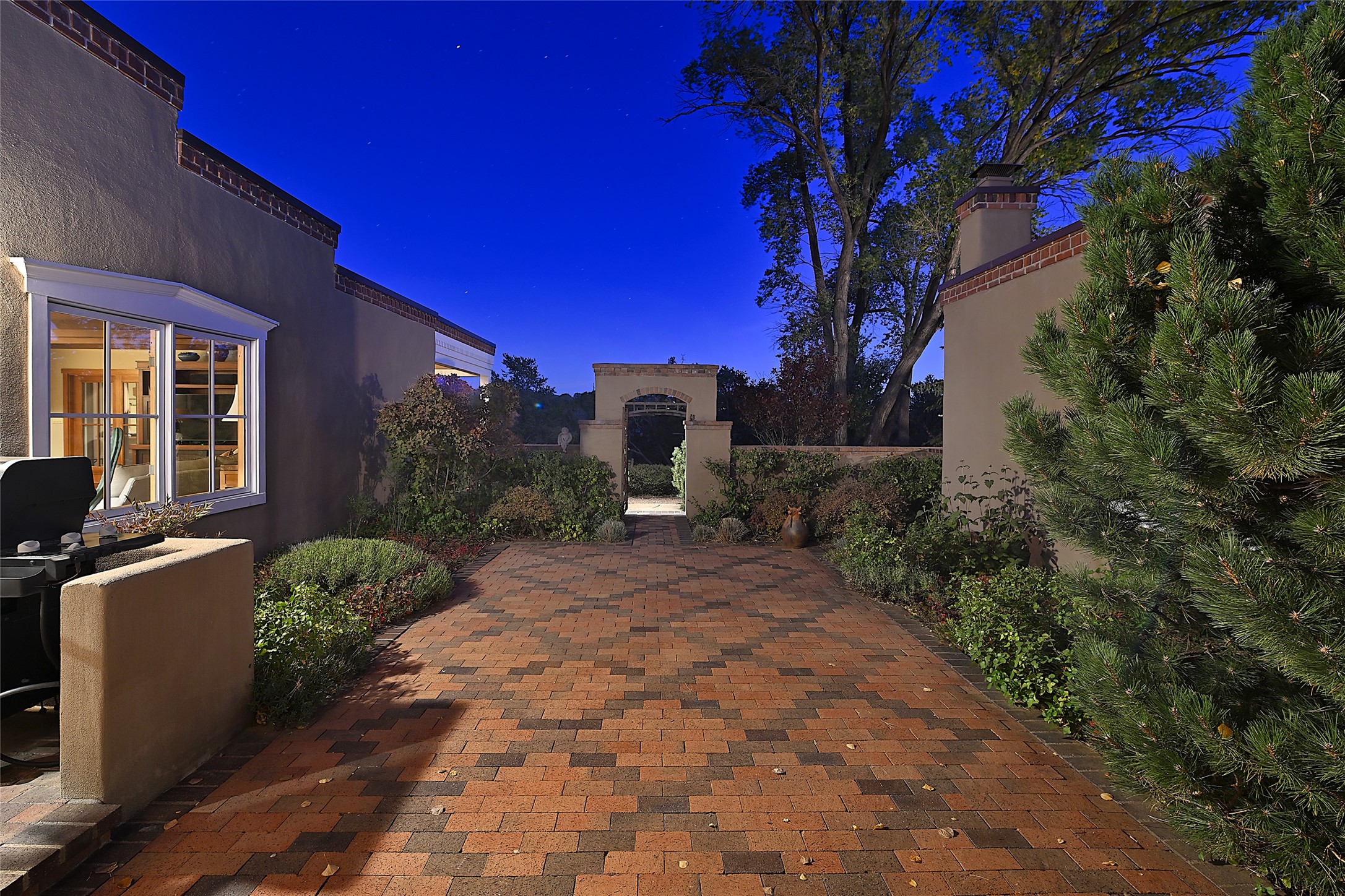Unparalleled privacy is yours in this gated Museum Hill residence with 3 Bedrooms, 4 1/2 Baths, Office & Studio on 1.9 acres. It combines a classic Territorial exterior w Craftsman interior style, totally renovated by Wolf Corp in 2005. Living room features a cozy fireplace & wood-beamed ceiling. Kitchen is a culinary masterpiece w 4' x 8' granite island, Two Sub-Zero refrigerator drawers, 48" Sub-Zero refrigerator, 36" Wolf Range/Oven, walk-in pantry, counter-level gas fireplace plus breakfast nook w banco. Portal off Kitchen has a fireplace & soothing fountain. Media / Family Room includes a wine bar w Sub-Zero wine chiller, fireplace, easy access to the back portal & yard thru 2 sets of sliding glass doors plus adjacent Powder Bath. Art Studio is accessed from the back portal or through the 2-car Garage w large storage area. Master Bedroom & Bath suite offers a Kiva fireplace, dual walk-in closets, access to a private outdoor area w hot tub plus spacious bath w double sinks, steam shower & soothing soaking tub. Office has a built-in desk & en-suite bath. Bedroom 2 offers two twin beds & en-suite bath, while Bedroom 3 opens to the outdoor patio area & has an en-suite bath w double sinks. Special features include hand-forged hardware, custom alder cabinets, 3 forced-air heat and A/C units, as well as a new septic system in 2005. This property is a true gem--gated, renovated by Wolf Corp, on 1.9 acres, and just a short 1.1-mile stroll to Kaune's Market & the Food Trucks.