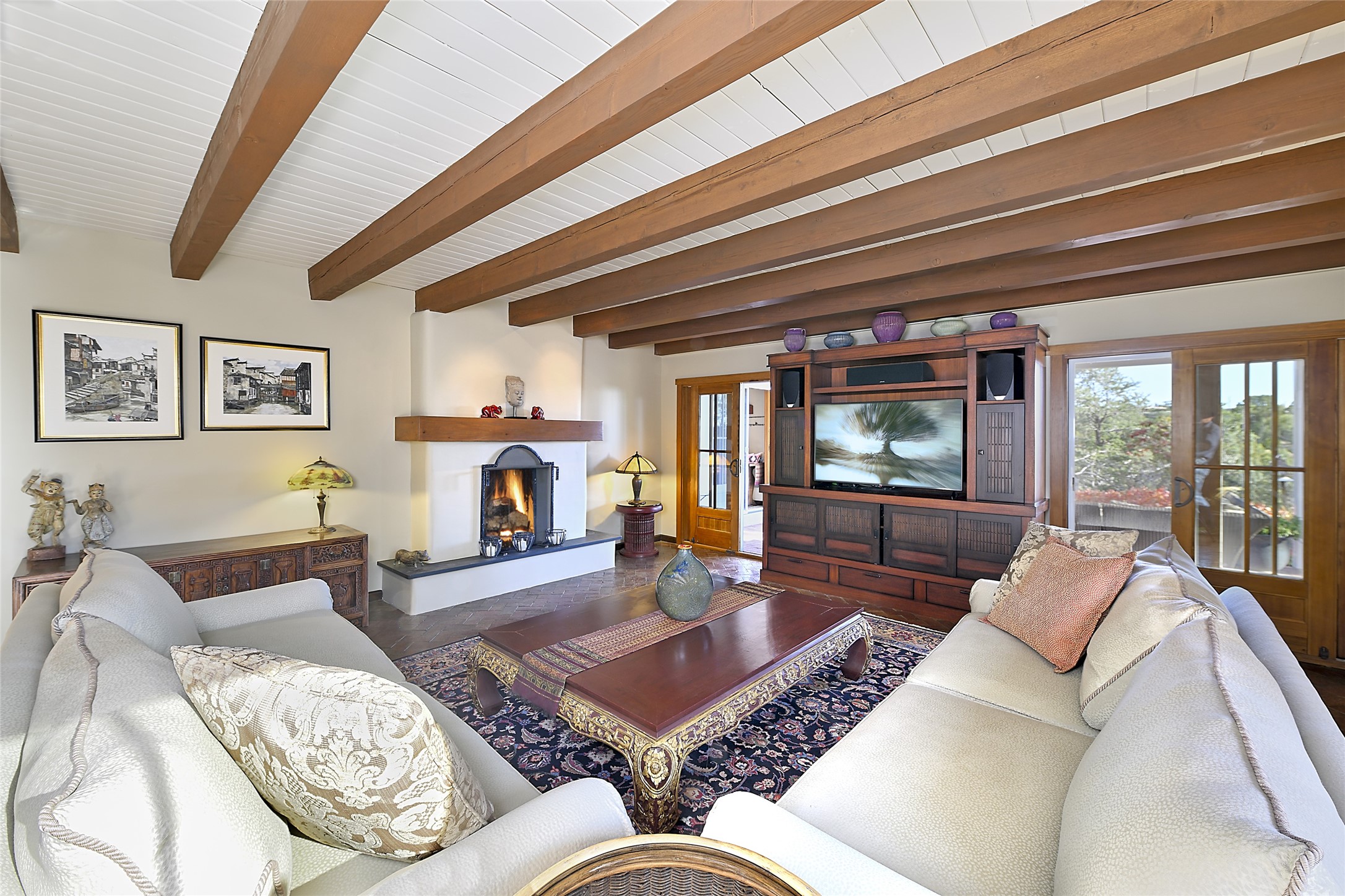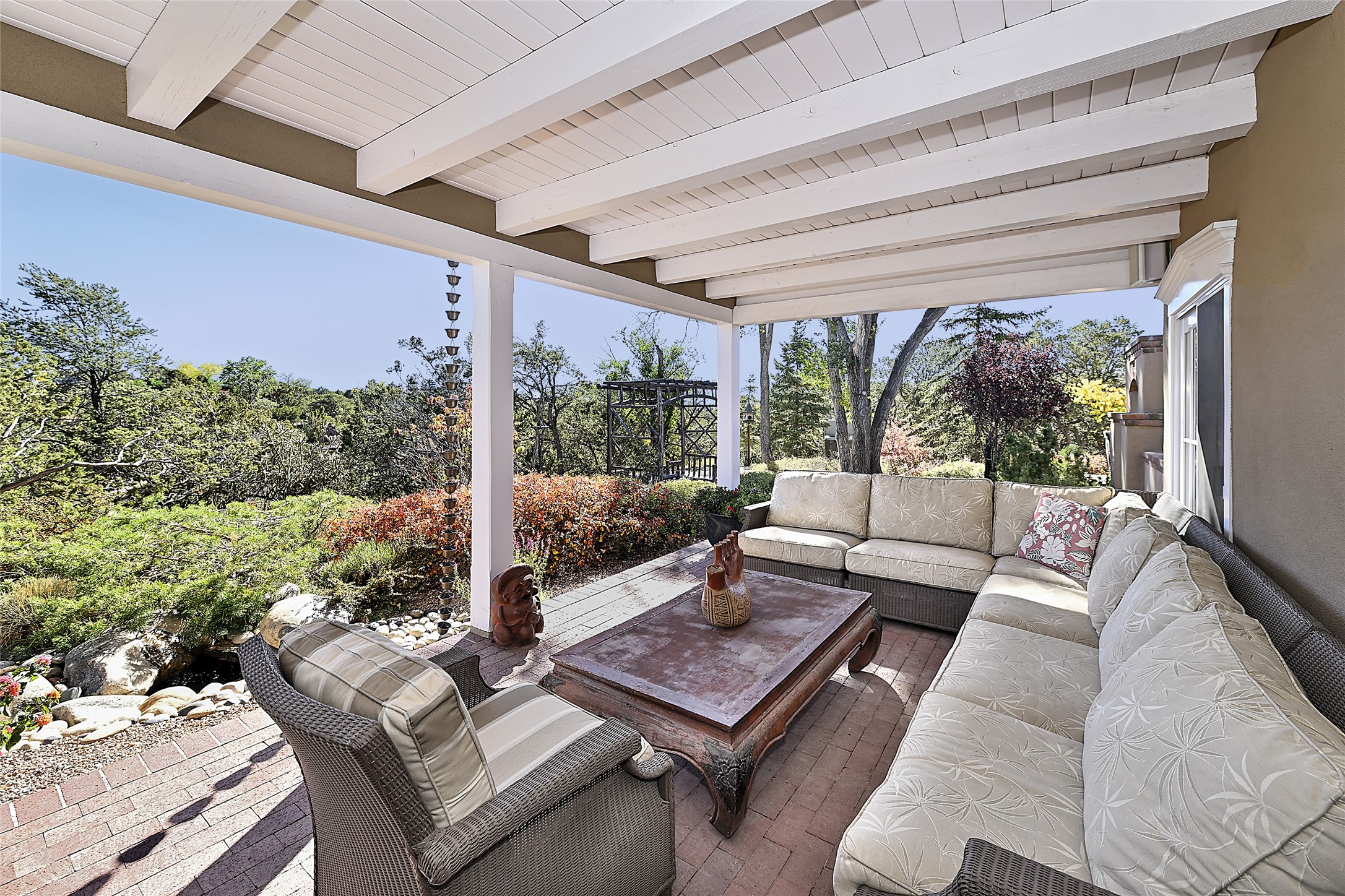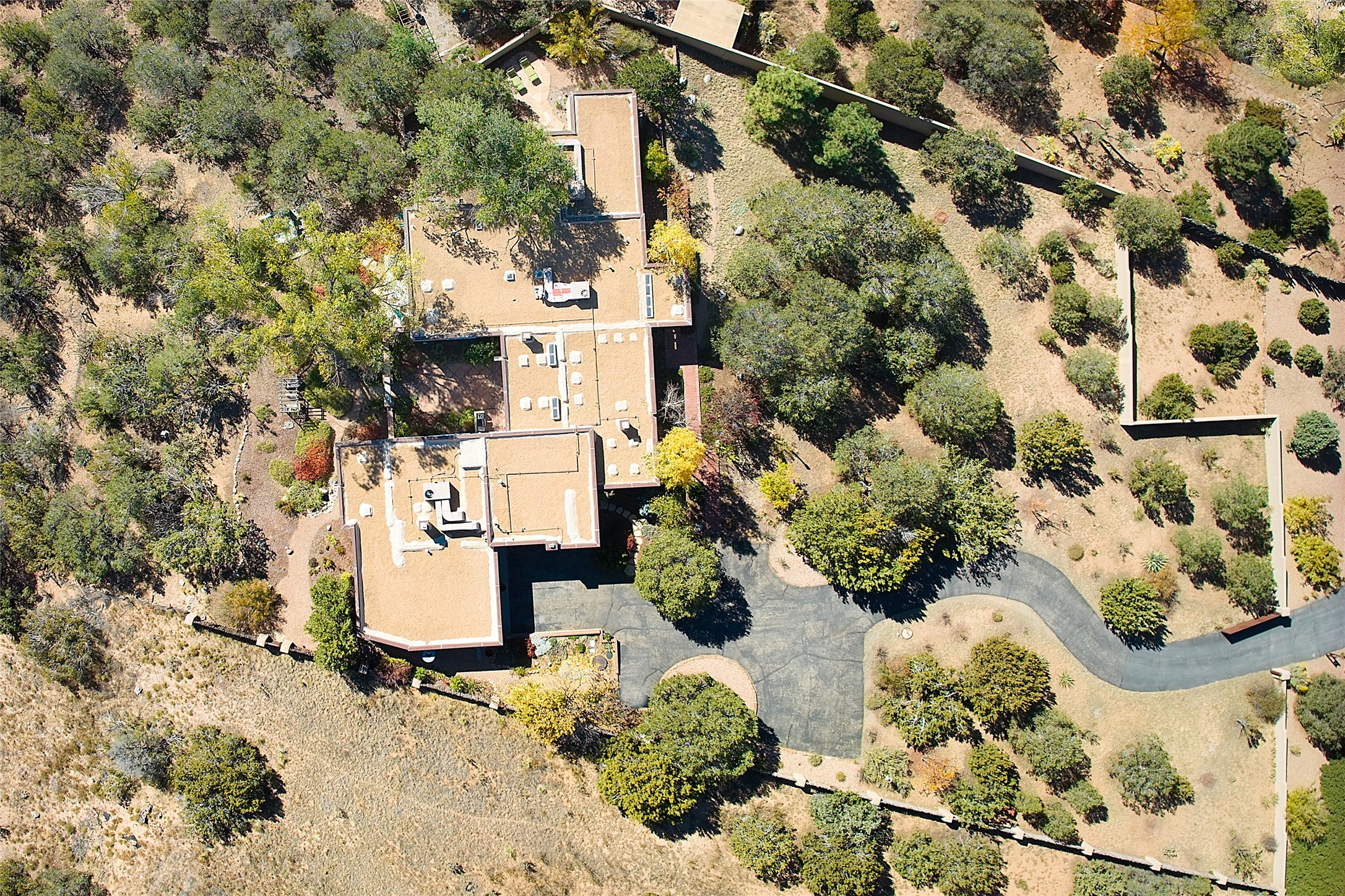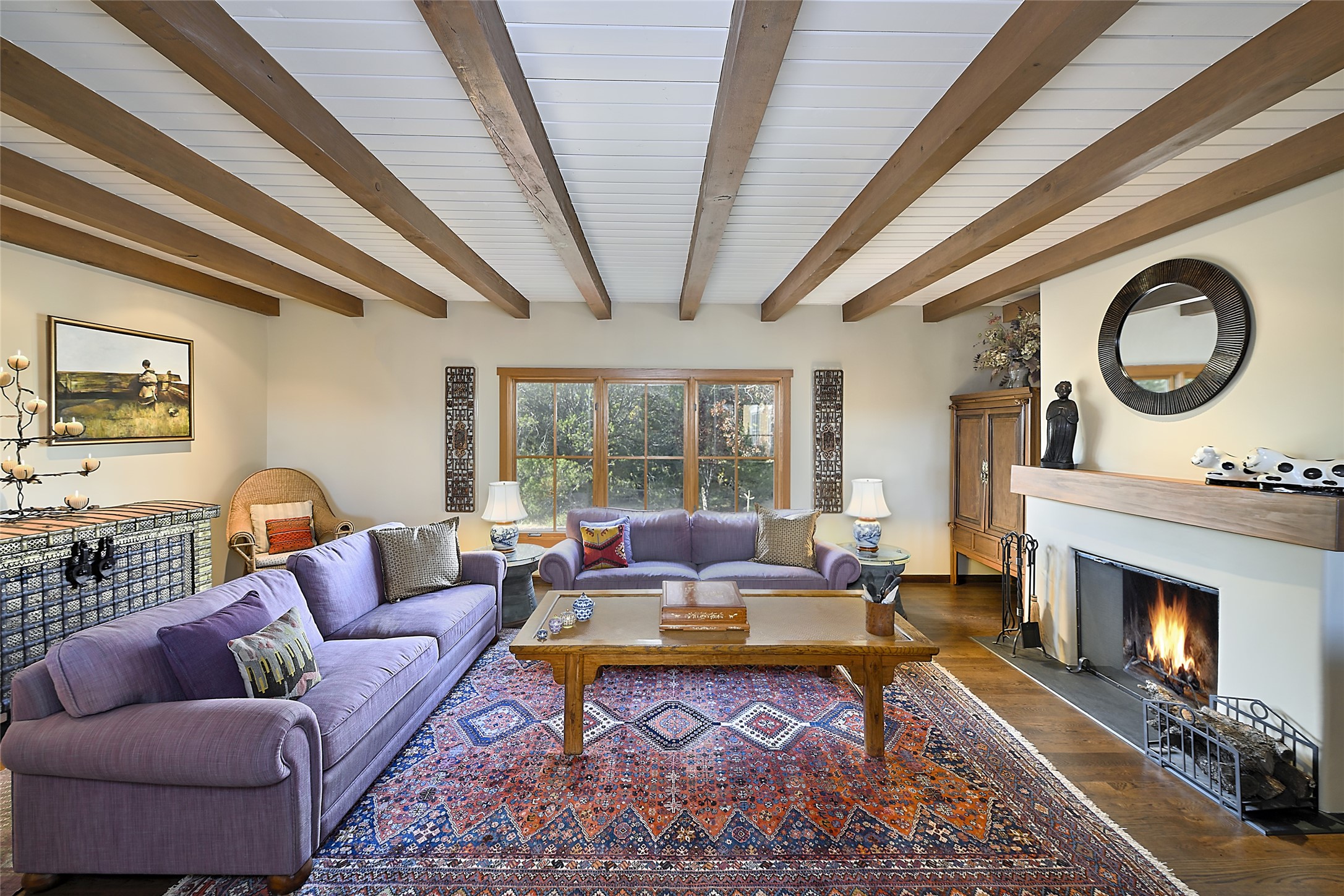 Unparalleled privacy is yours in this gated Museum Hill residence with 3 Bedrooms, 4 1/2 Baths, Office & Studio on 1.9 acres. It combines a classic Territorial exterior w Craftsman interior style, totally renovated by Wolf Corp in 2005. Living room features a cozy fireplace & wood-beamed ceiling. Kitchen is a culinary masterpiece w 4' x 8' granite island, Two Sub-Zero refrigerator drawers, 48" Sub-Zero refrigerator, 36" Wolf Range/Oven, walk-in pantry, counter-level gas fireplace plus breakfast nook w banco. Portal off Kitchen has a fireplace & soothing fountain. Media / Family Room includes a wine bar w Sub-Zero wine chiller, fireplace, easy access to the back portal & yard thru 2 sets of sliding glass doors plus adjacent Powder Bath. Art Studio is accessed from the back portal or through the 2-car Garage w large storage area. Master Bedroom & Bath suite offers a Kiva fireplace, dual walk-in closets, access to a private outdoor area w hot tub plus spacious bath w double sinks, steam shower & soothing soaking tub. Office has a built-in desk & en-suite bath. Bedroom 2 offers two twin beds & en-suite bath, while Bedroom 3 opens to the outdoor patio area & has an en-suite bath w double sinks. Special features include hand-forged hardware, custom alder cabinets, 3 forced-air heat and A/C units, as well as a new septic system in 2005. This property is a true gem--gated, renovated by Wolf Corp, on 1.9 acres, and just a short 1.1-mile stroll to Kaune's Market & the Food Trucks.