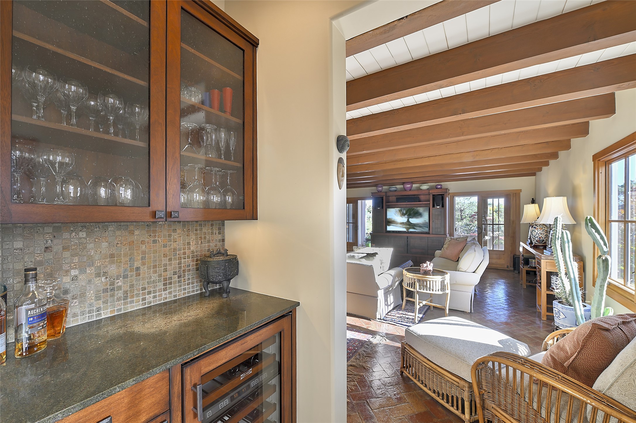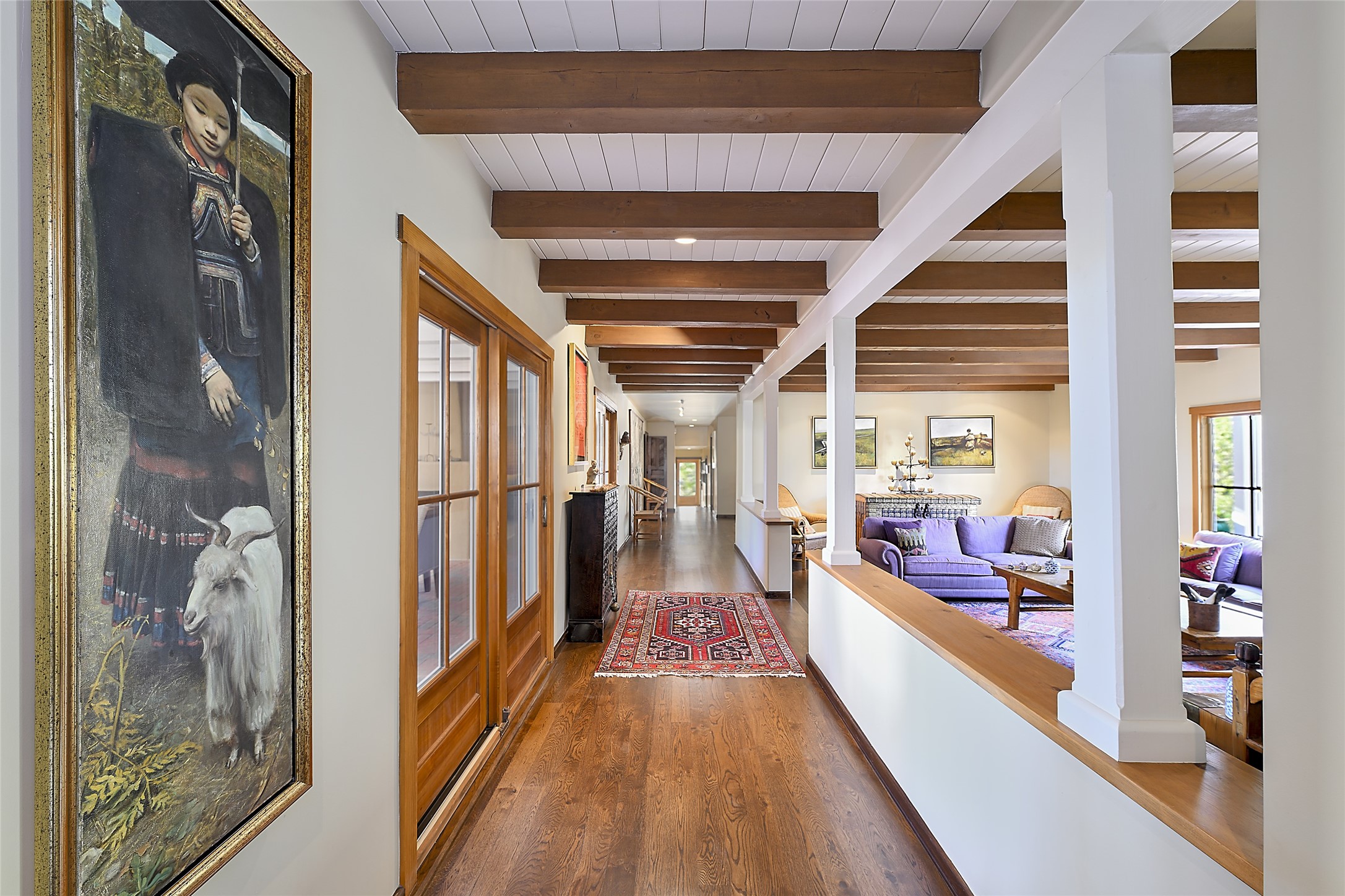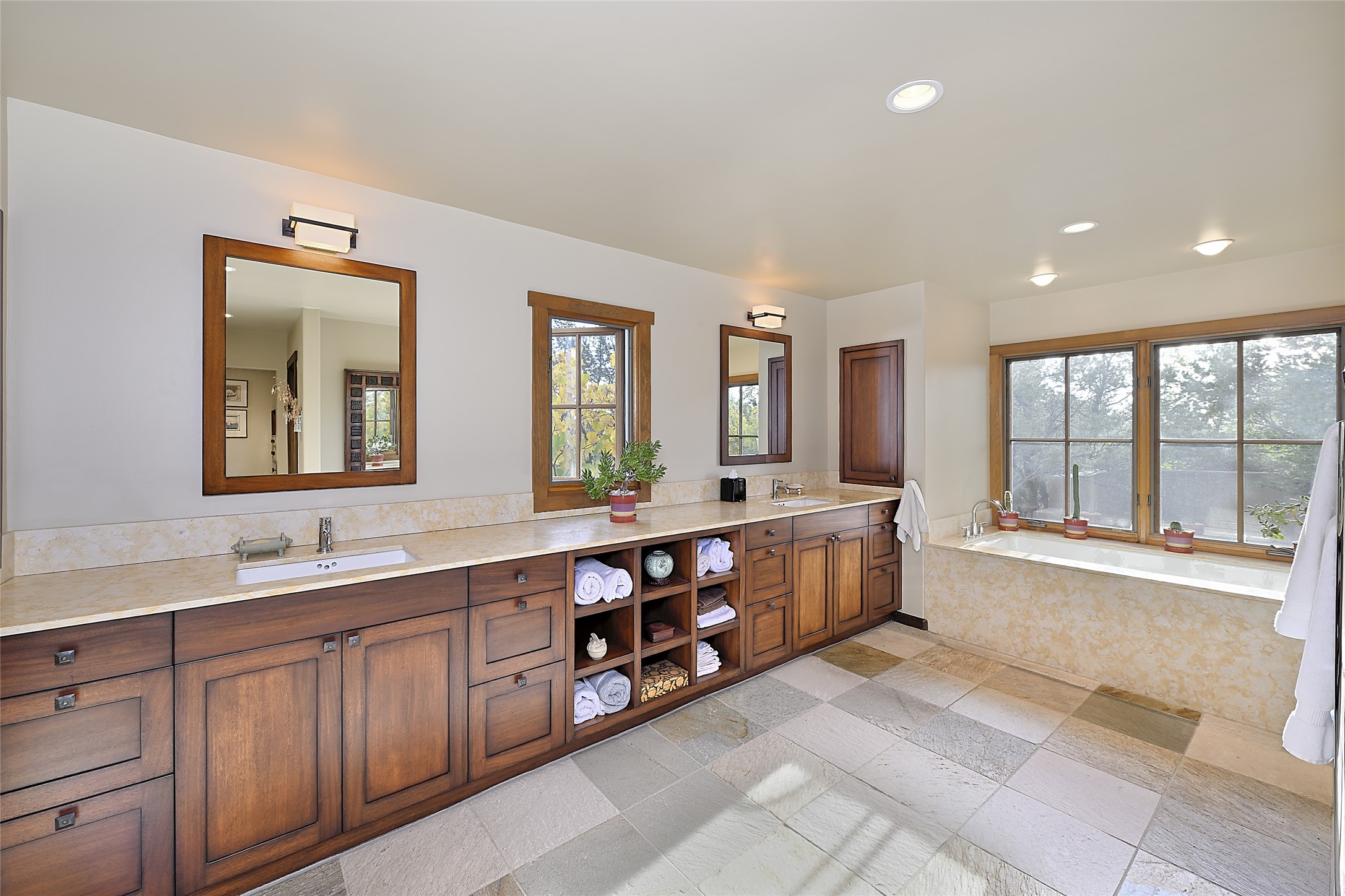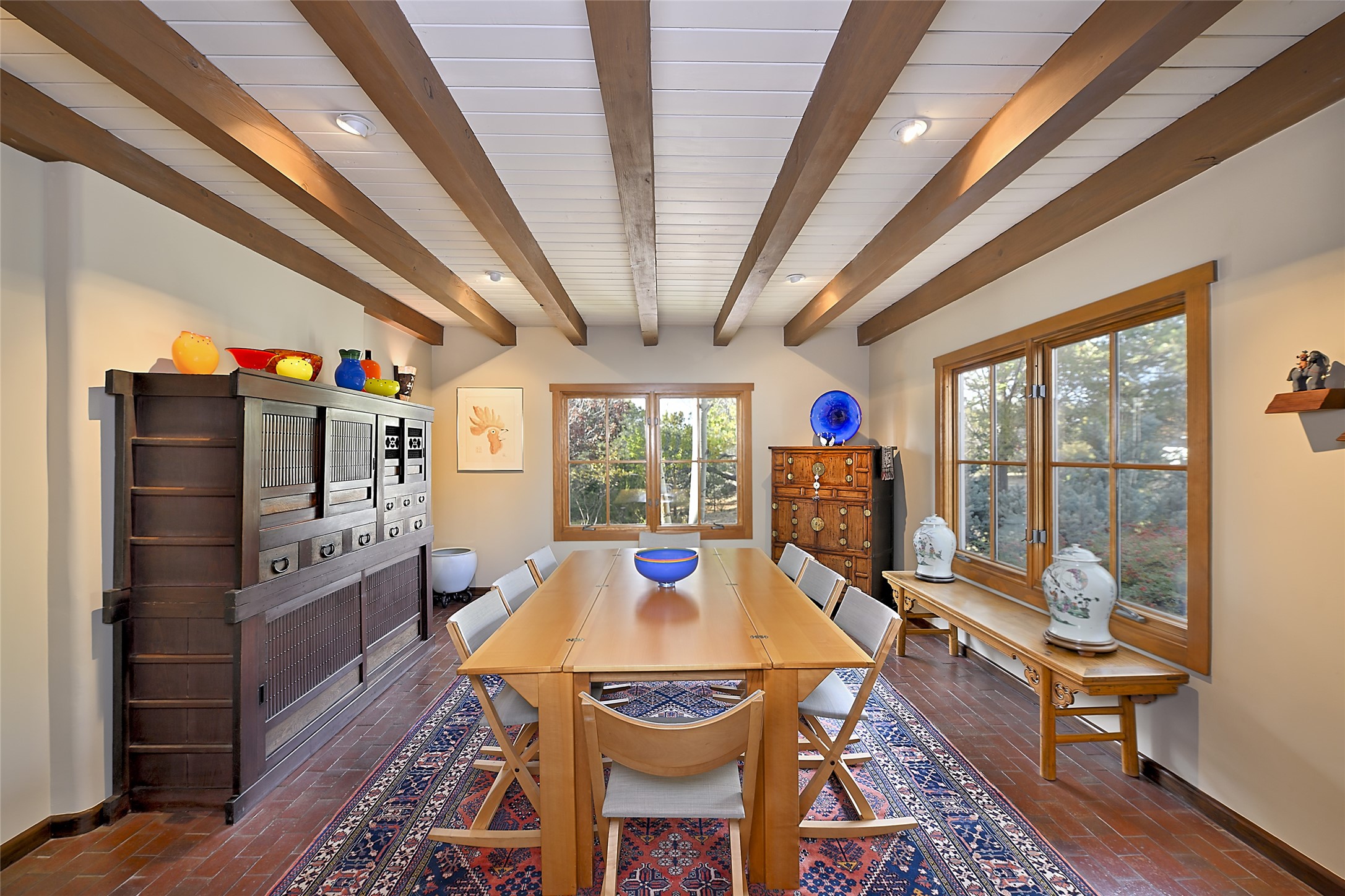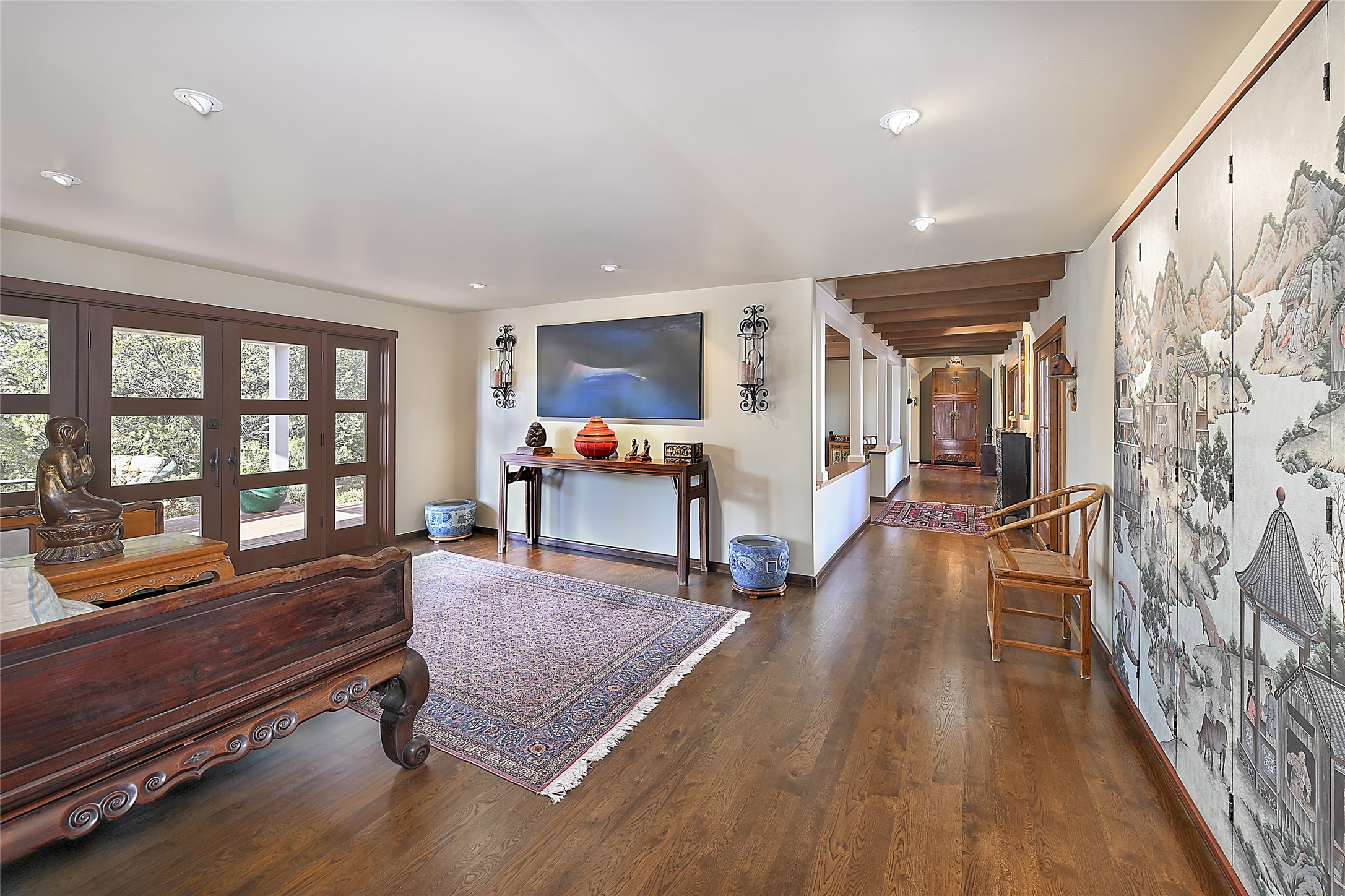 Unparalleled privacy is yours in this gated Museum Hill residence with 3 Bedrooms, 4 1/2 Baths, Office & Studio on 1.9 acres. It combines a classic Territorial exterior w Craftsman interior style, totally renovated by Wolf Corp in 2005. Living room features a cozy fireplace & wood-beamed ceiling. Kitchen is a culinary masterpiece w 4' x 8' granite island, Two Sub-Zero refrigerator drawers, 48" Sub-Zero refrigerator, 36" Wolf Range/Oven, walk-in pantry, counter-level gas fireplace plus breakfast nook w banco. Portal off Kitchen has a fireplace & soothing fountain. Media / Family Room includes a wine bar w Sub-Zero wine chiller, fireplace, easy access to the back portal & yard thru 2 sets of sliding glass doors plus adjacent Powder Bath. Art Studio is accessed from the back portal or through the 2-car Garage w large storage area. Master Bedroom & Bath suite offers a Kiva fireplace, dual walk-in closets, access to a private outdoor area w hot tub plus spacious bath w double sinks, steam shower & soothing soaking tub. Office has a built-in desk & en-suite bath. Bedroom 2 offers two twin beds & en-suite bath, while Bedroom 3 opens to the outdoor patio area & has an en-suite bath w double sinks. Special features include hand-forged hardware, custom alder cabinets, 3 forced-air heat and A/C units, as well as a new septic system in 2005. This property is a true gem--gated, renovated by Wolf Corp, on 1.9 acres, and just a short 1.1-mile stroll to Kaune's Market & the Food Trucks.