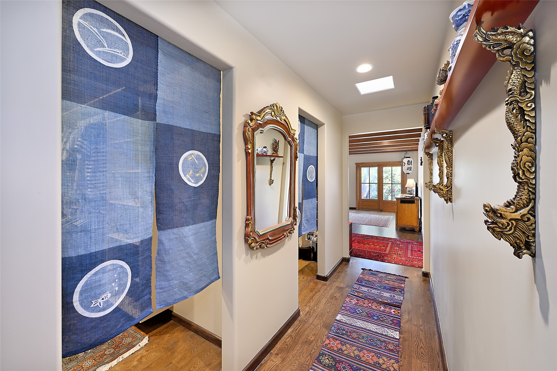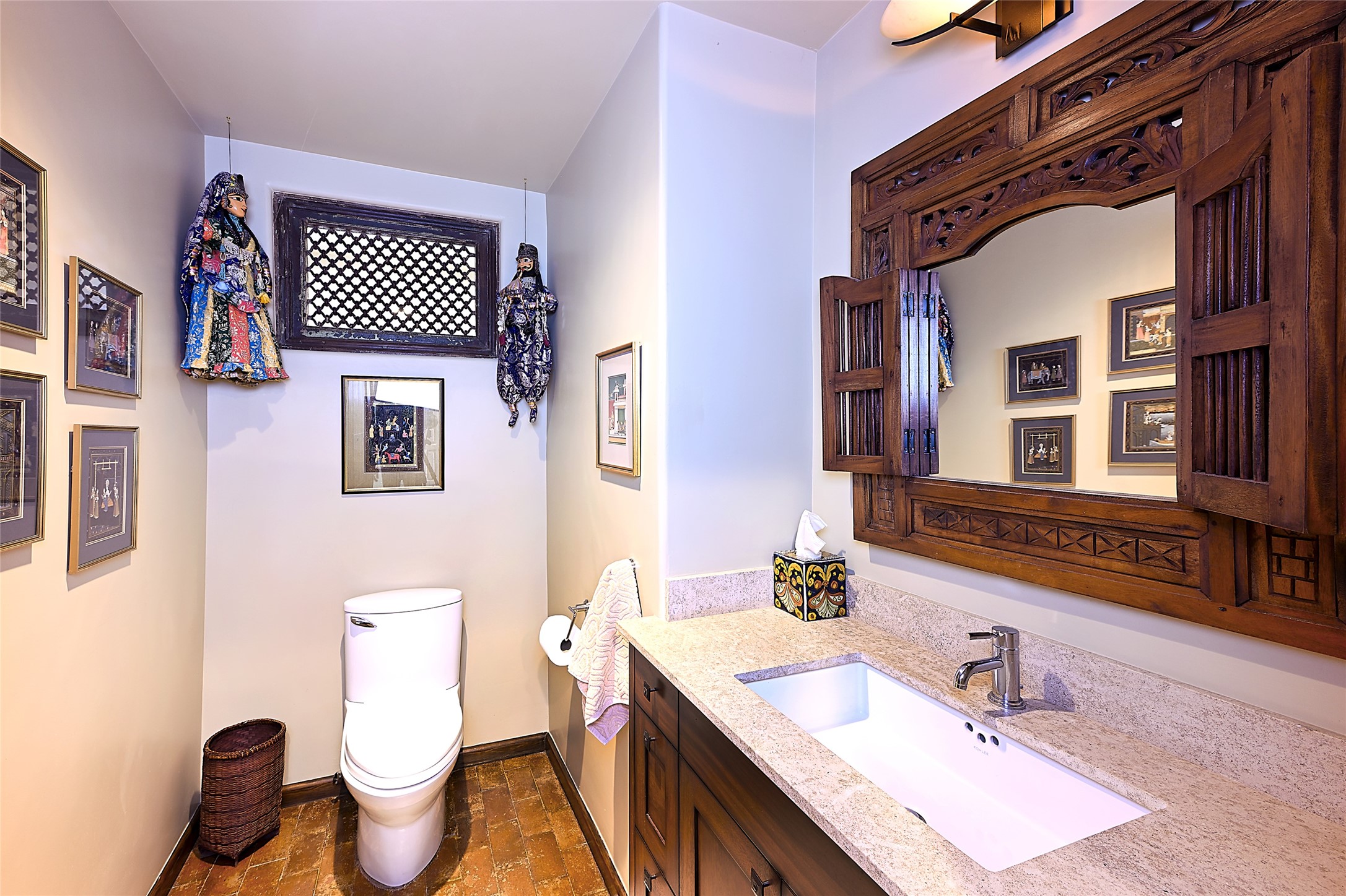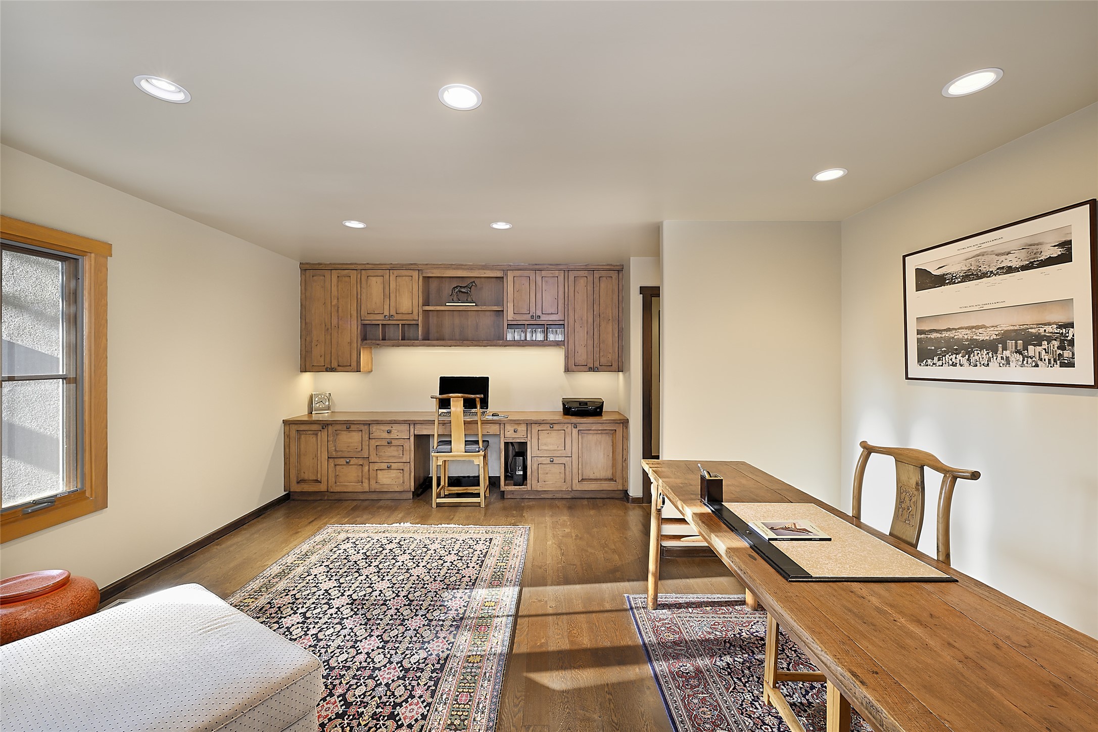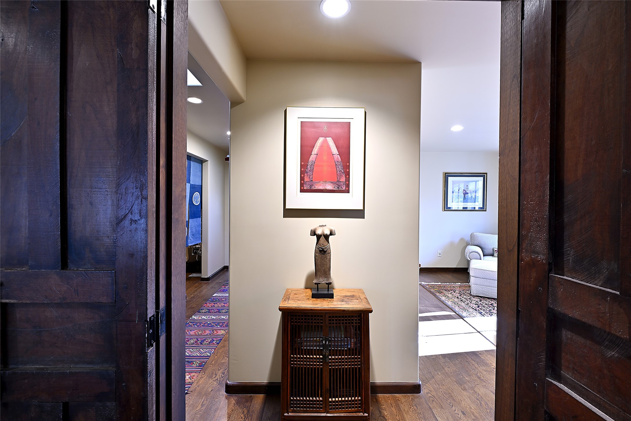 Unparalleled privacy is yours in this gated Museum Hill residence with 3 Bedrooms, 4 1/2 Baths, Office & Studio on 1.9 acres. It combines a classic Territorial exterior w Craftsman interior style, totally renovated by Wolf Corp in 2005. Living room features a cozy fireplace & wood-beamed ceiling. Kitchen is a culinary masterpiece w 4' x 8' granite island, Two Sub-Zero refrigerator drawers, 48" Sub-Zero refrigerator, 36" Wolf Range/Oven, walk-in pantry, counter-level gas fireplace plus breakfast nook w banco. Portal off Kitchen has a fireplace & soothing fountain. Media / Family Room includes a wine bar w Sub-Zero wine chiller, fireplace, easy access to the back portal & yard thru 2 sets of sliding glass doors plus adjacent Powder Bath. Art Studio is accessed from the back portal or through the 2-car Garage w large storage area. Master Bedroom & Bath suite offers a Kiva fireplace, dual walk-in closets, access to a private outdoor area w hot tub plus spacious bath w double sinks, steam shower & soothing soaking tub. Office has a built-in desk & en-suite bath. Bedroom 2 offers two twin beds & en-suite bath, while Bedroom 3 opens to the outdoor patio area & has an en-suite bath w double sinks. Special features include hand-forged hardware, custom alder cabinets, 3 forced-air heat and A/C units, as well as a new septic system in 2005. This property is a true gem--gated, renovated by Wolf Corp, on 1.9 acres, and just a short 1.1-mile stroll to Kaune's Market & the Food Trucks.