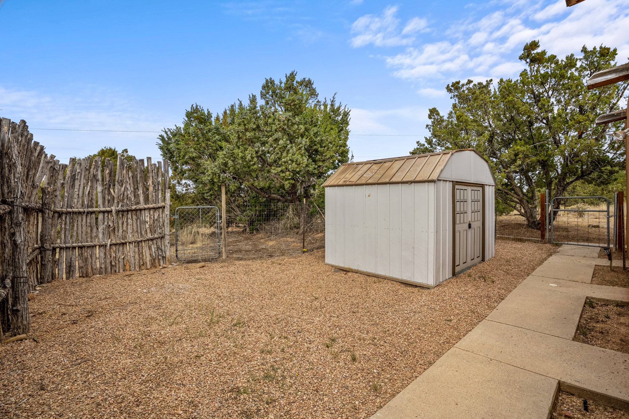 Nestled within the Sunlit Hills area of Santa Fe, this exceptional single-level home awaits its next chapter. Boasting 4 bedrooms, 2.5 baths, and a generous ~2,800 sq. ft. of living space, it sits majestically on a sprawling 5-acre lot, offering a canvas of possibilities. If your dreams include having a horse property and/or installing a a solar panel array to go greener, this is your chance to bring those dreams to life.Step inside and find a warm and inviting interior where an open living area takes center stage. The kitchen features recent updates, namely new marble countertops, sink, and range, making meal preparation a delight. With a sunny family room to bask in the morning light, a charming front porch and courtyard to savor the Santa Fe evenings, a deck with a propane BBQ hookup for outdoor dining enjoyment, a raised bed for gardeners, and a private "Catio" safely located within a half-acre fenced dog yard for your furry companions, you'll find enchanting spaces for every moment.For those seeking convenience and storage, a storage shed is on hand, and the detached 2-car garage (also with addt'l storage) along with a divided driveway offers additional parking and level in direct access to the kitchen. The flexible floorplan and property holds enormous potential for you to shape as you desire, offering the perfect blend of comfort and opportunity. New roof, stucco, + other improvements done Summer/Fall '23.Make Sunlit Hills your home and experience the charm and potential it holds.