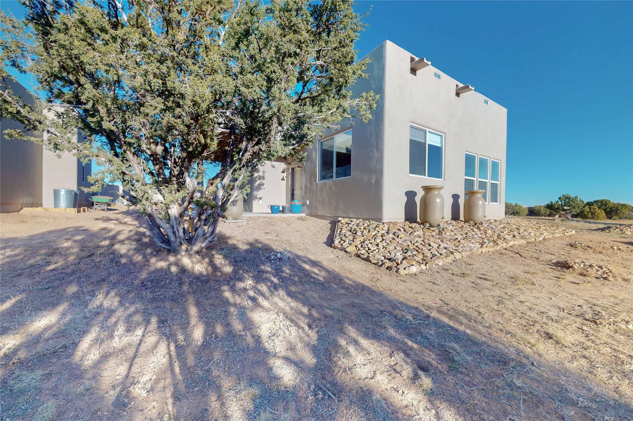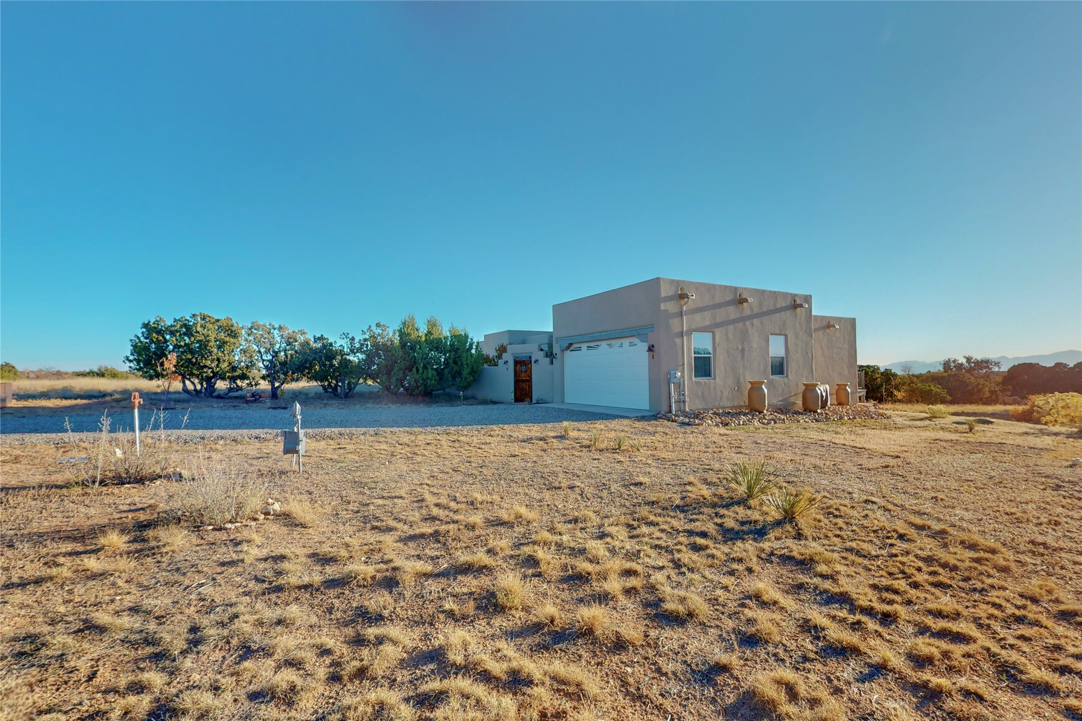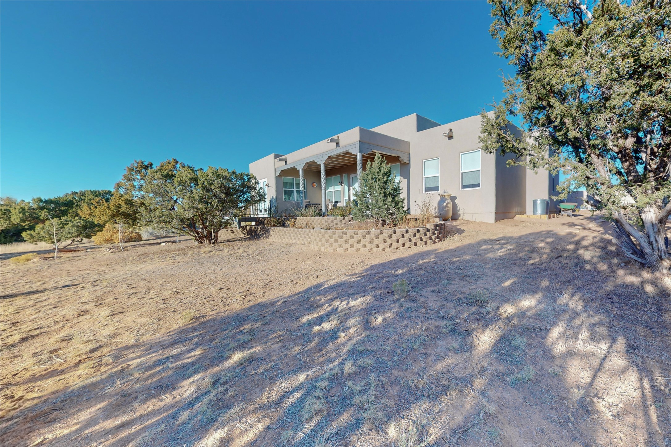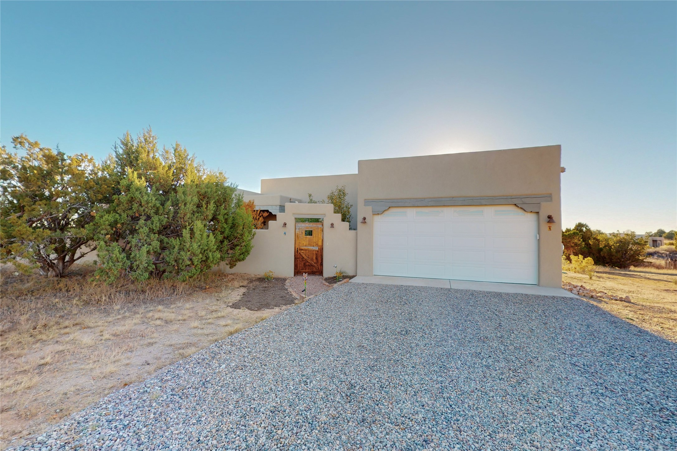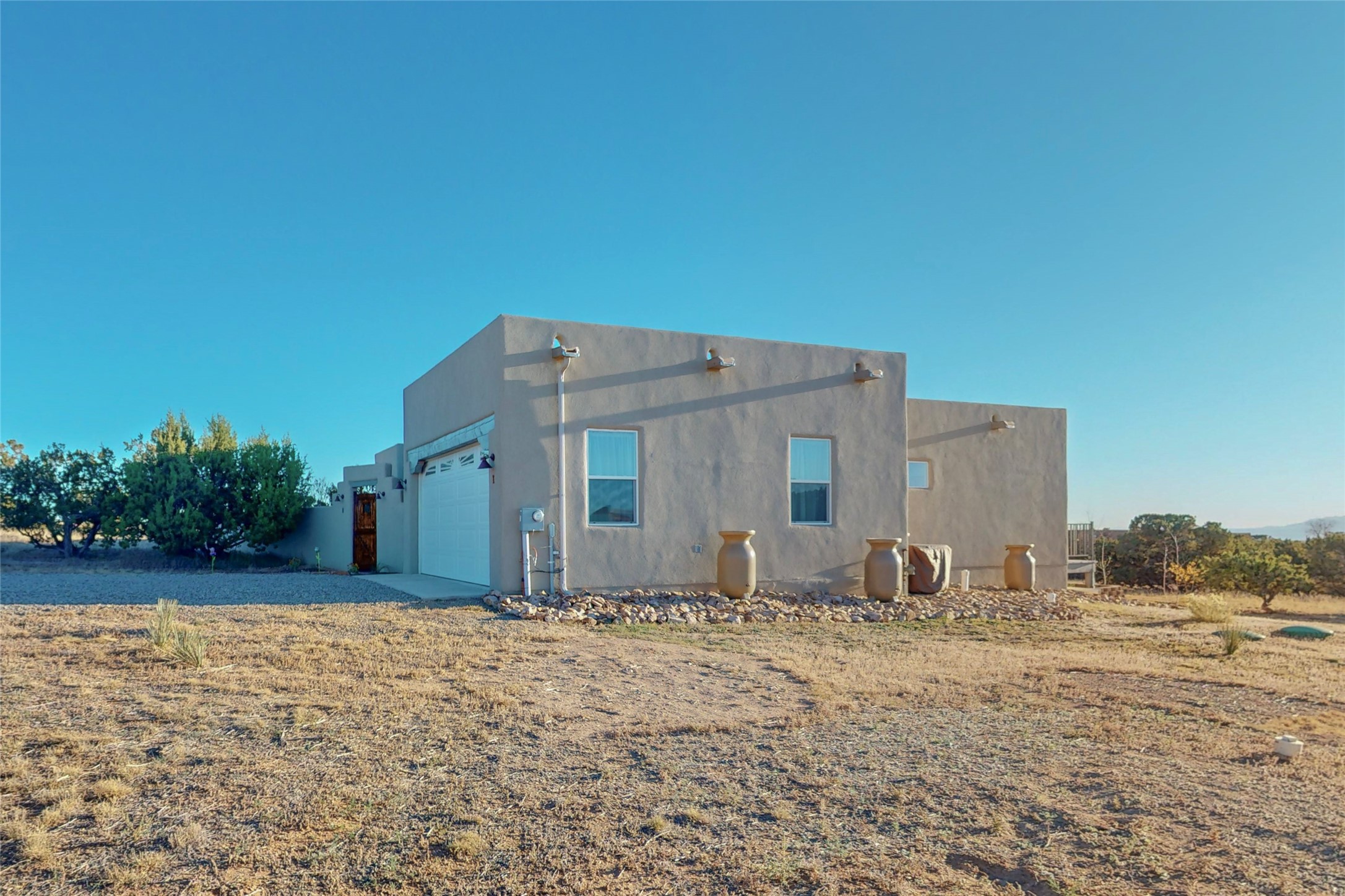 Sparkling bright "as new" 3 year old contemporary home on high corner view lot, a custom creation by Wild Sage Homes for the owners. With high ceilings and gleaming engineered wood floors throughout, this home is a perfect example of Pride of Ownership. An open plan, split bedroom design centered on a spacious great room this home was built for energy efficiency with a HERS rating of 70. Lovely long E-glass windows maximize the views and light, natural gas forced air provides efficient heating and cooling, high insulation factors make low utility bills year round. the attached finished 2 car garage includes a dedicated electrical for a freezer. An on demand gas hot water heater with a recirculating pump for instant hot water plus energy efficient upscale appliances. An 800 sqft heated RV garage with two bays and a workshop area plus a greenhouse creates space for all your hobbies and toys. This home accesses Eldorado amenities, local community activities, shopping and services plus only minutes into Santa Fe. A must see!