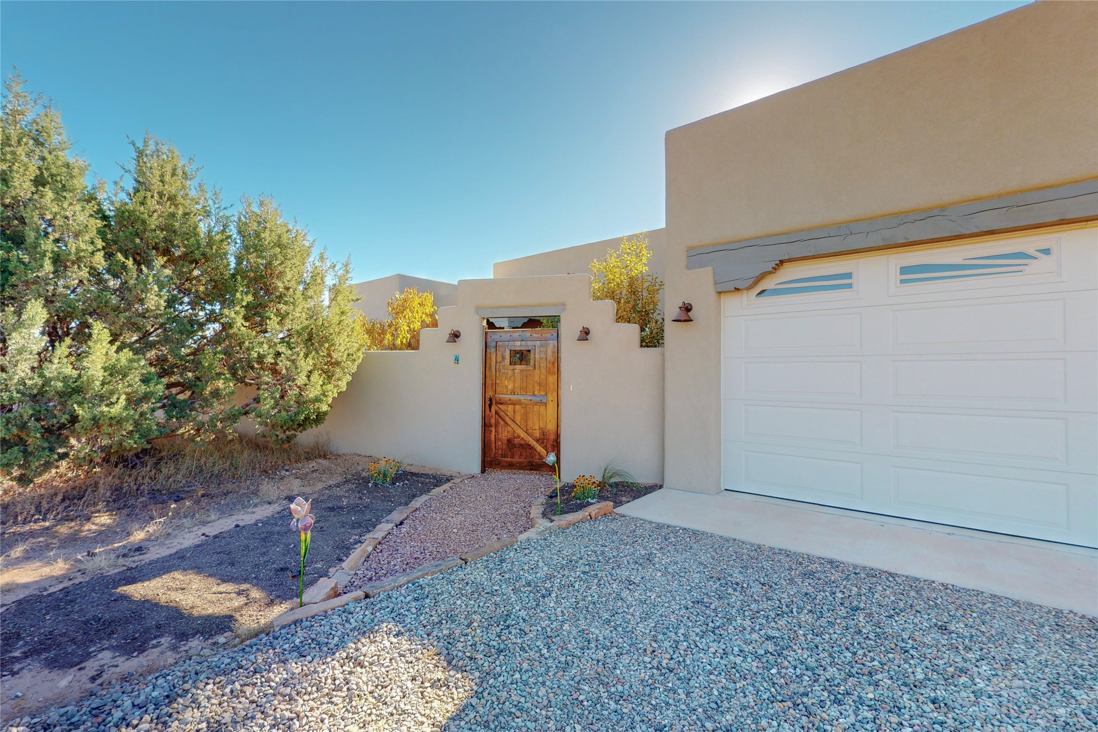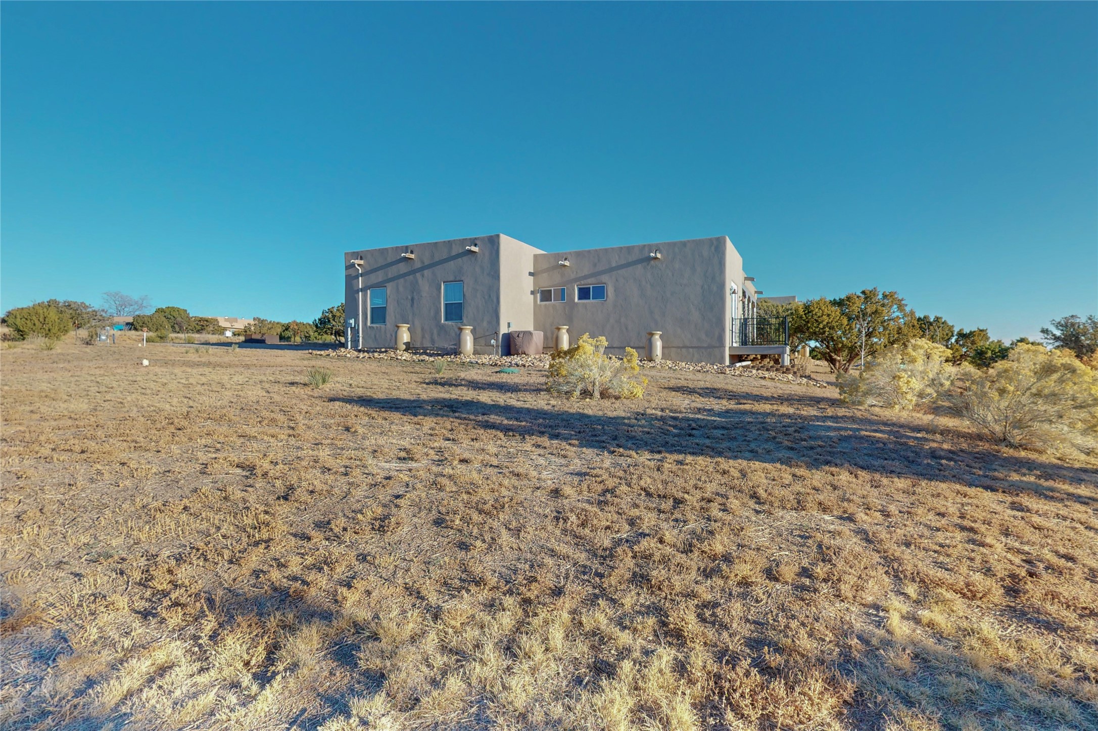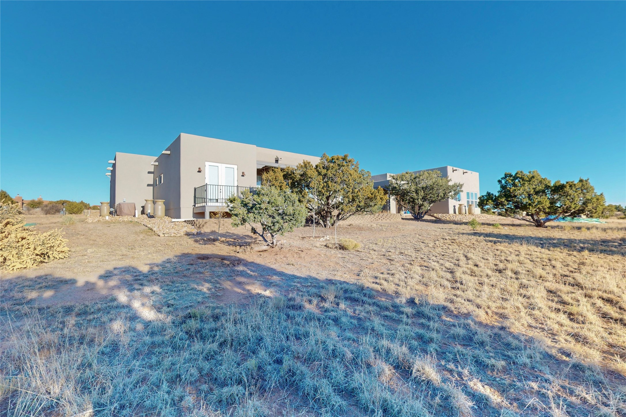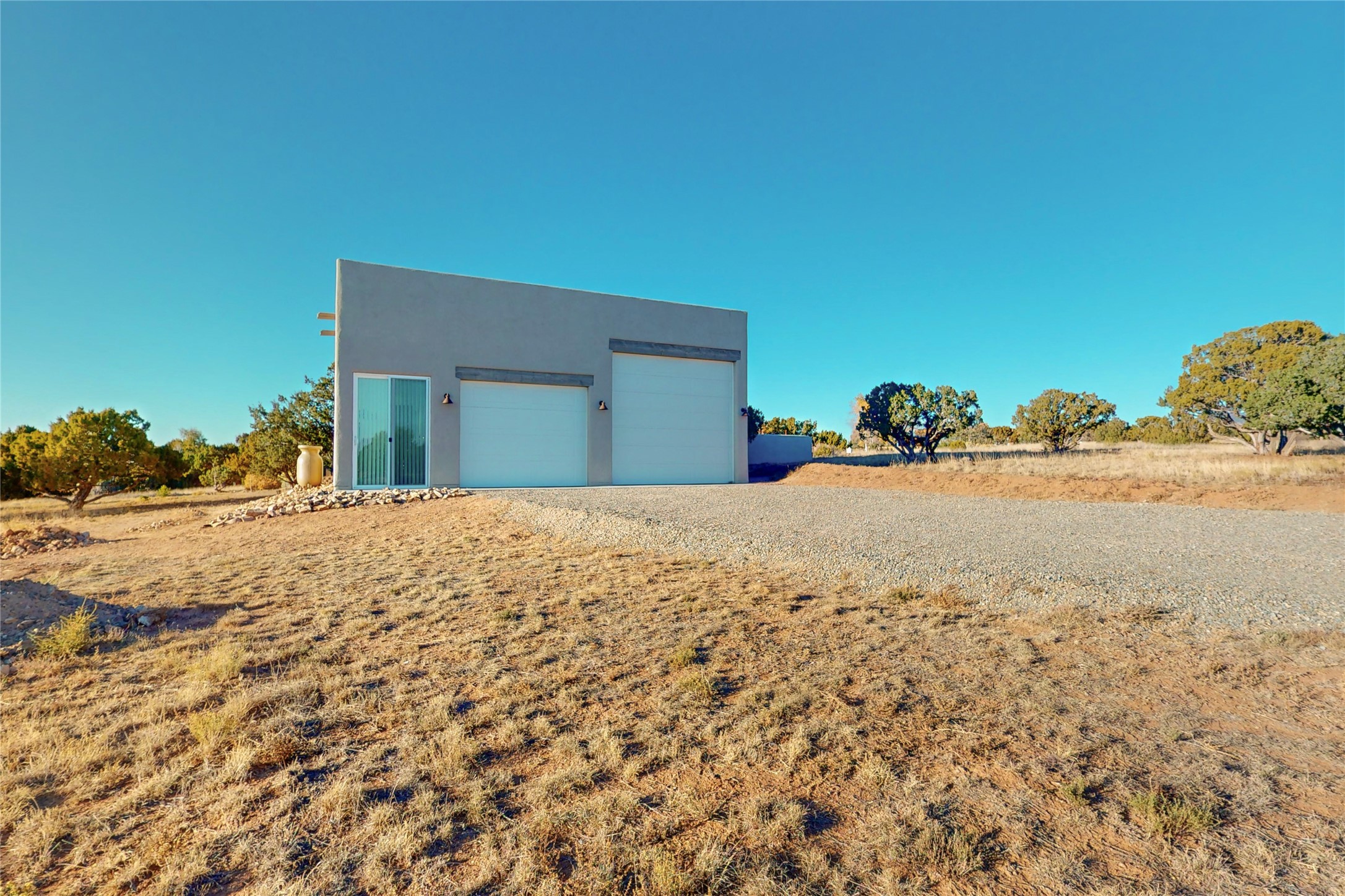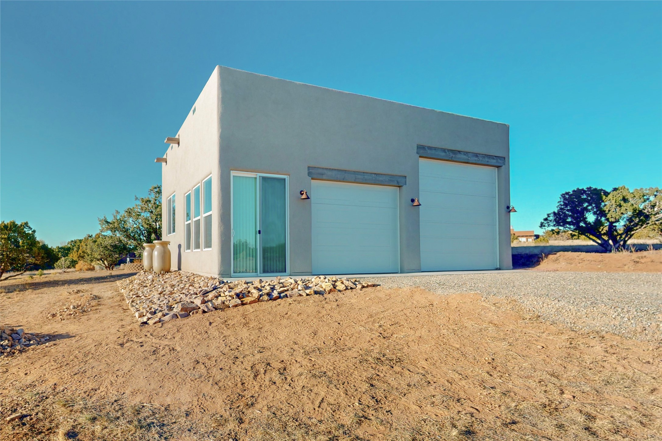 Sparkling bright "as new" 3 year old contemporary home on high corner view lot, a custom creation by Wild Sage Homes for the owners. With high ceilings and gleaming engineered wood floors throughout, this home is a perfect example of Pride of Ownership. An open plan, split bedroom design centered on a spacious great room this home was built for energy efficiency with a HERS rating of 70. Lovely long E-glass windows maximize the views and light, natural gas forced air provides efficient heating and cooling, high insulation factors make low utility bills year round. the attached finished 2 car garage includes a dedicated electrical for a freezer. An on demand gas hot water heater with a recirculating pump for instant hot water plus energy efficient upscale appliances. An 800 sqft heated RV garage with two bays and a workshop area plus a greenhouse creates space for all your hobbies and toys. This home accesses Eldorado amenities, local community activities, shopping and services plus only minutes into Santa Fe. A must see!