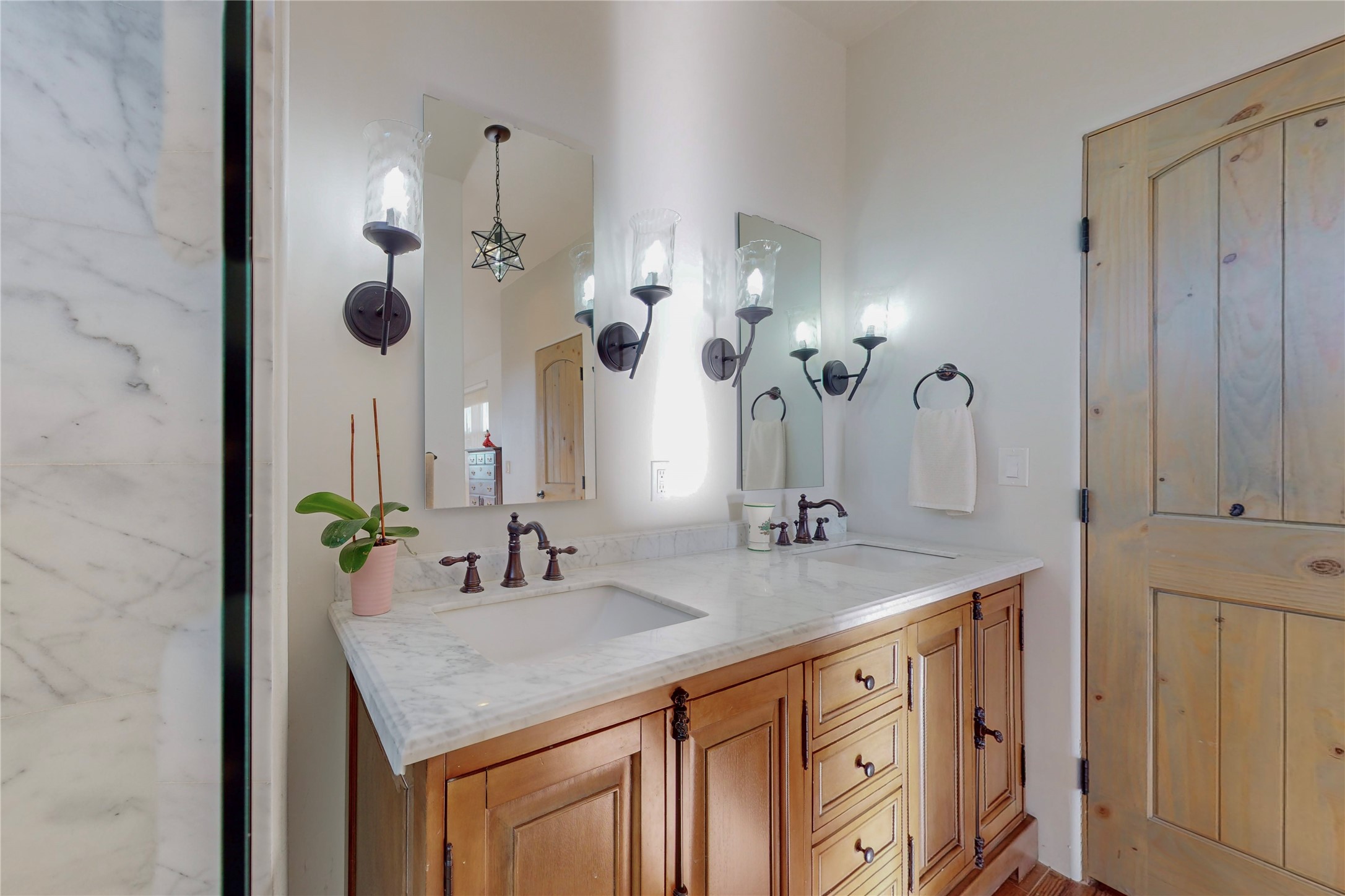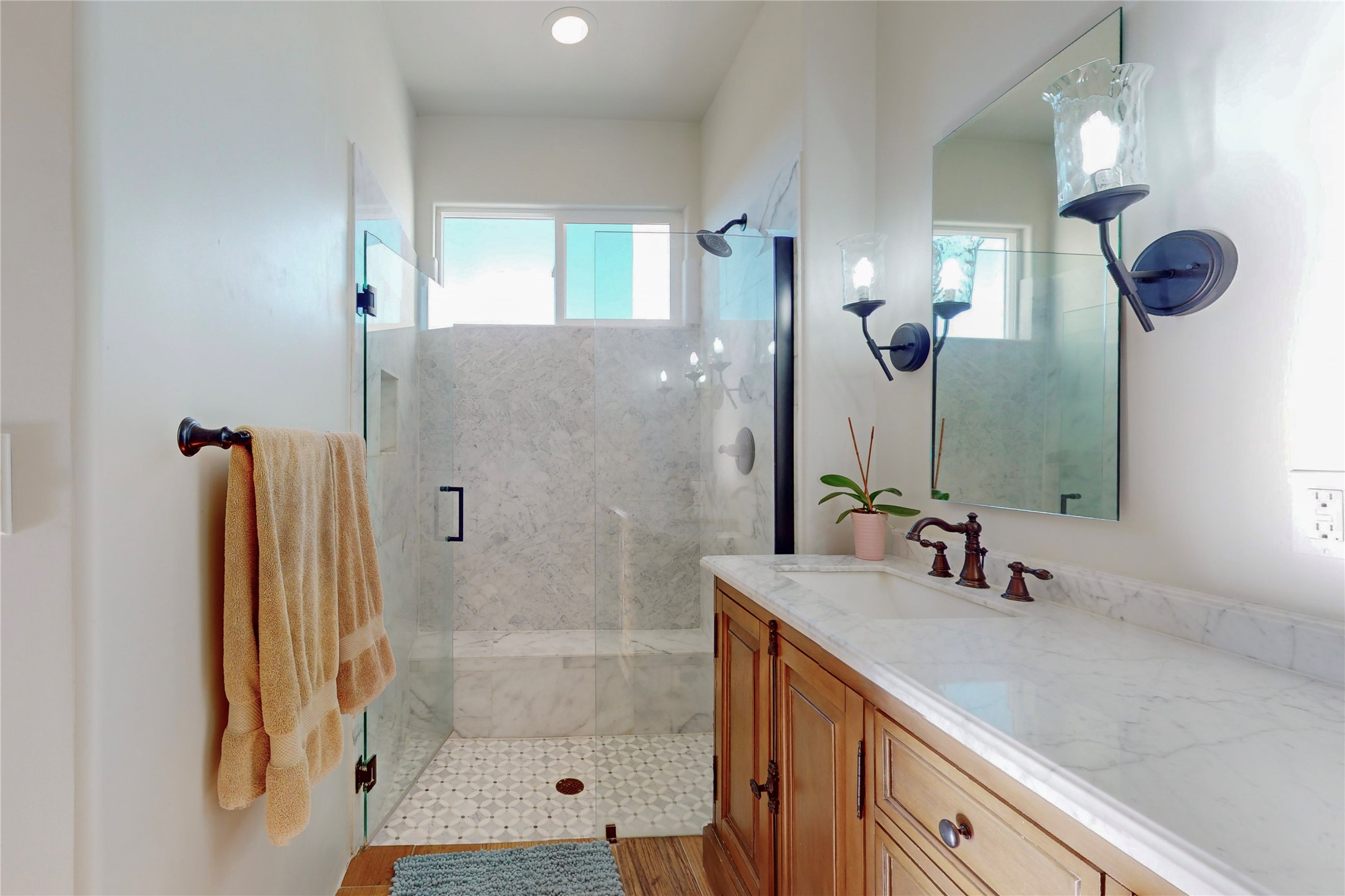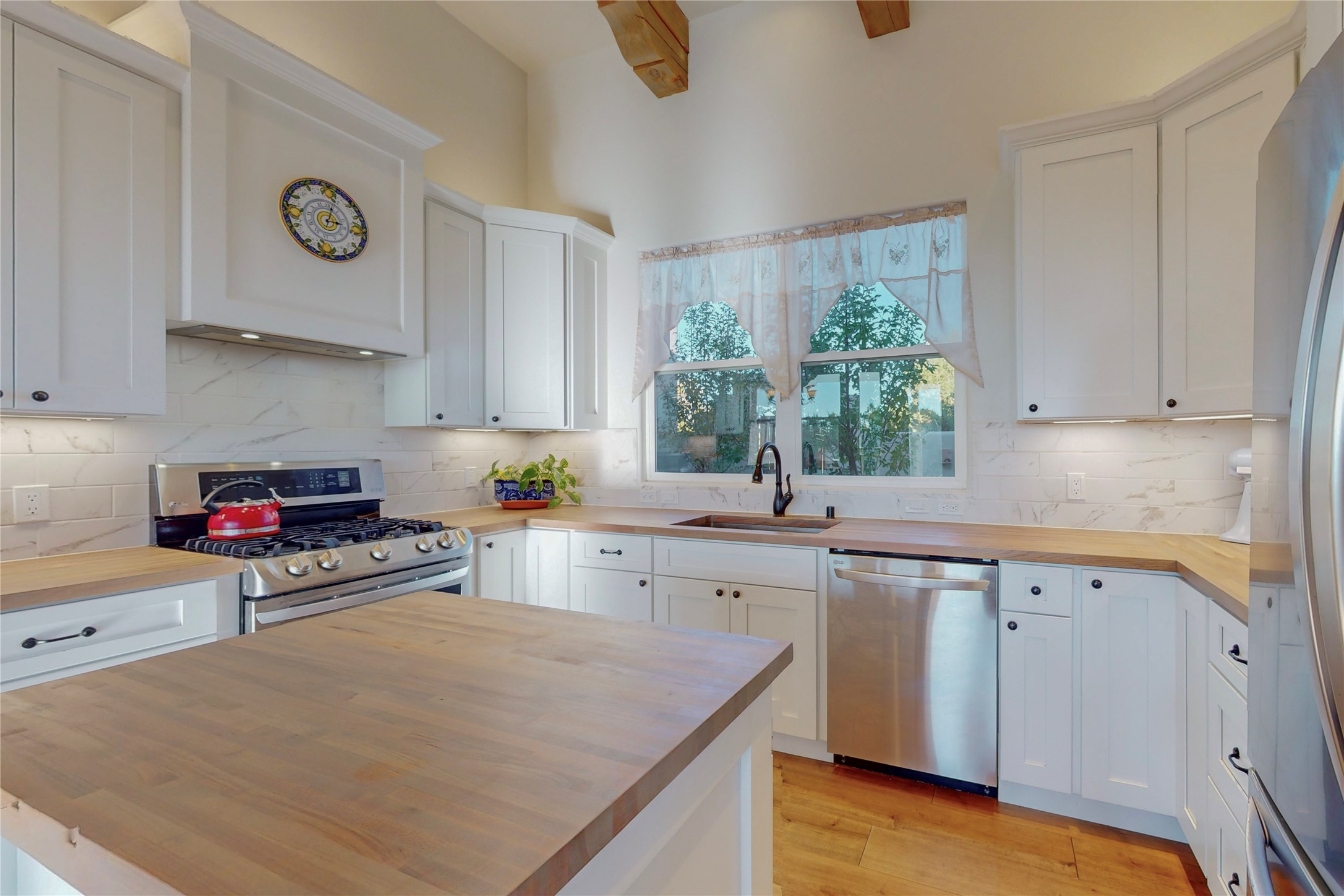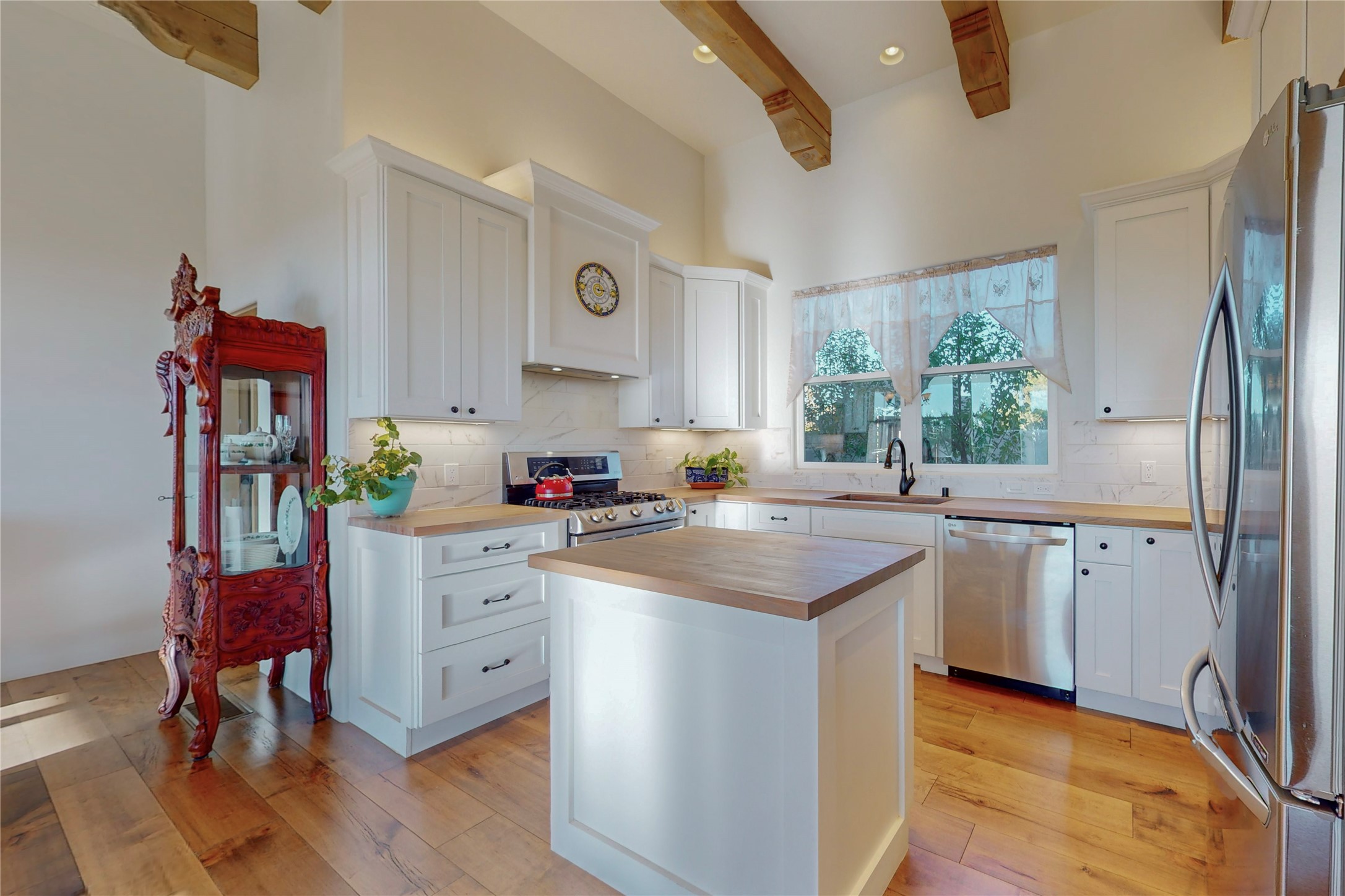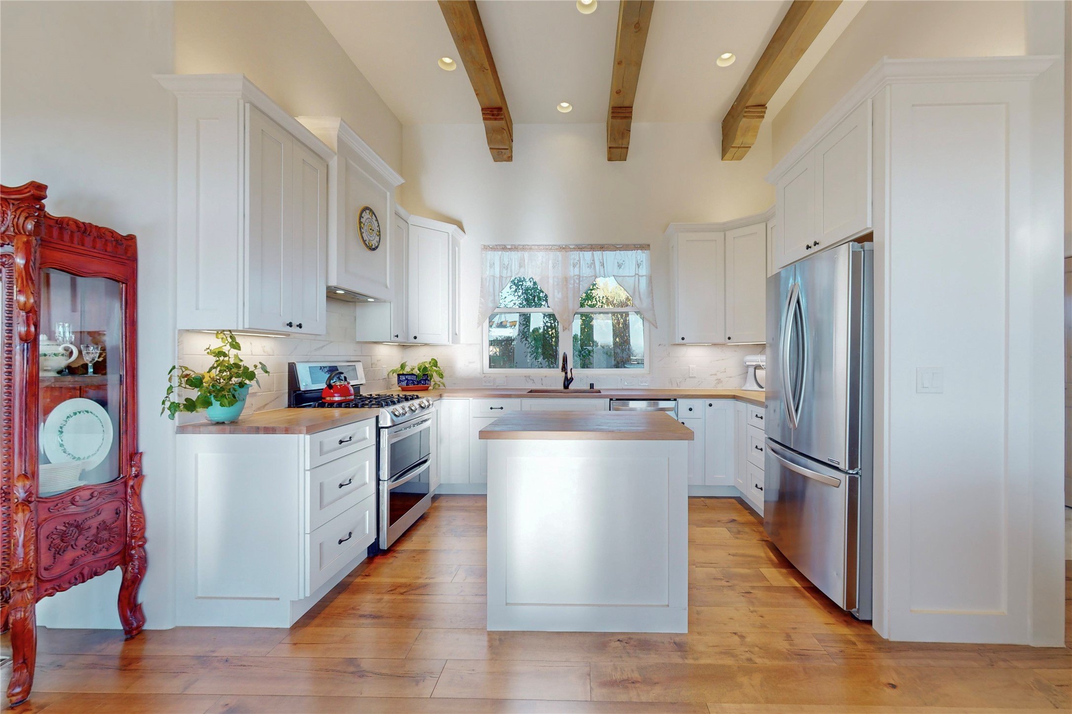 Sparkling bright "as new" 3 year old contemporary home on high corner view lot, a custom creation by Wild Sage Homes for the owners. With high ceilings and gleaming engineered wood floors throughout, this home is a perfect example of Pride of Ownership. An open plan, split bedroom design centered on a spacious great room this home was built for energy efficiency with a HERS rating of 70. Lovely long E-glass windows maximize the views and light, natural gas forced air provides efficient heating and cooling, high insulation factors make low utility bills year round. the attached finished 2 car garage includes a dedicated electrical for a freezer. An on demand gas hot water heater with a recirculating pump for instant hot water plus energy efficient upscale appliances. An 800 sqft heated RV garage with two bays and a workshop area plus a greenhouse creates space for all your hobbies and toys. This home accesses Eldorado amenities, local community activities, shopping and services plus only minutes into Santa Fe. A must see!
