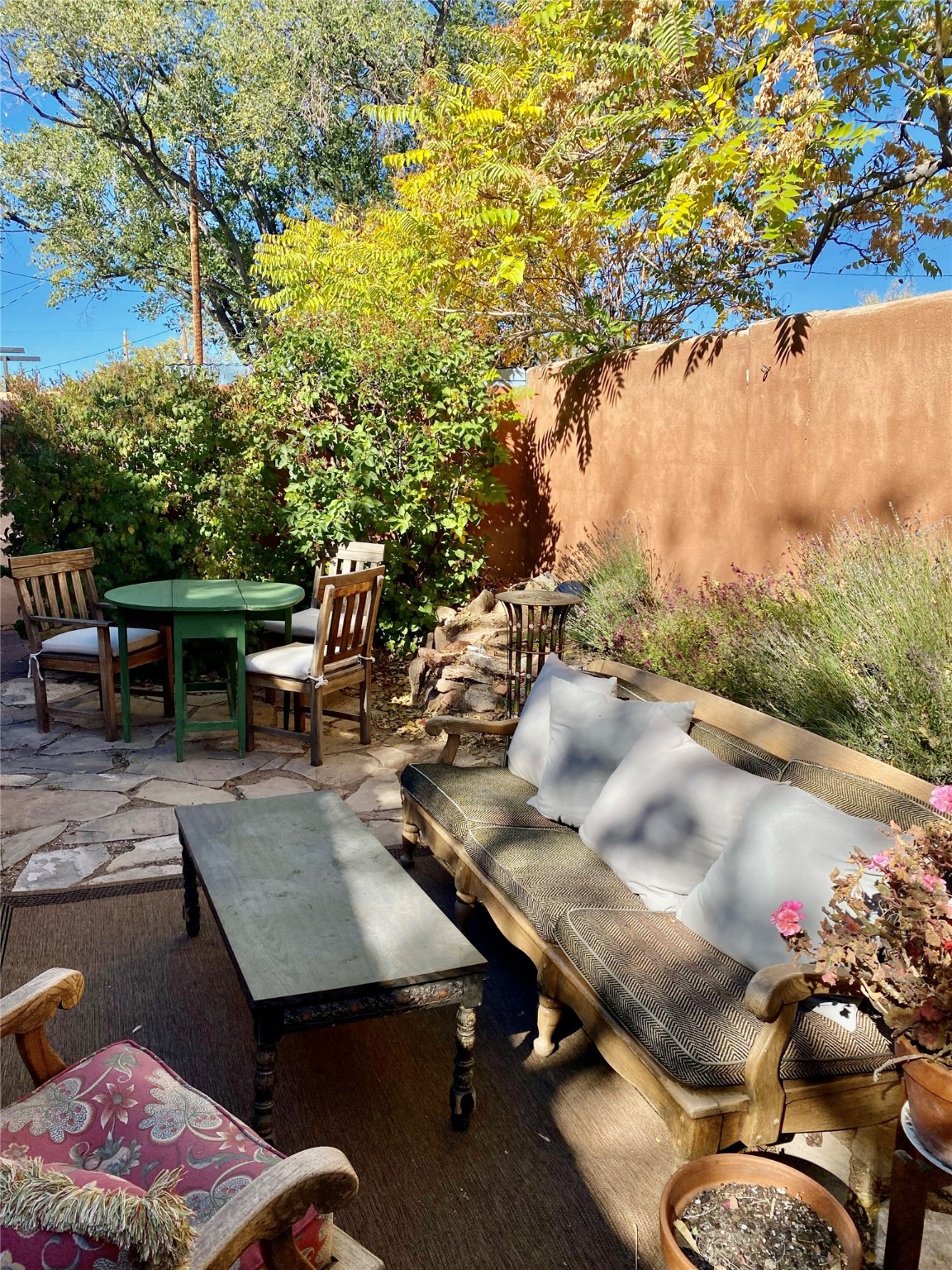 ***PENDING, TAKING BACKUP OFFERS.*** The Darling Of Manhattan Avenue - a rare finding!! As soon as you enter the door, this property will charm and delight you! An artfully designed, updated kitchen features new custom cabinets and counters, a new sink with gold faucet, a new premium Bosch dishwasher, newer Viking range, new fridge and backsplash. This property is full of Santa Fe charm with adobe walls, cove vigas, and even a secret nicho behind a mirror in one of the bedrooms! The sensible floorplan has a calming effect, and curated outdoor areas provide just enough room to relax without having to do too much yard work. The bonus Solarium is a wonderfully sunny flex space for pursuing any hobby, or perhaps making a home office or third bedroom. Three sheds give you plenty of storage. The high wall with gated entry surrounding the property provides a surprising amount of privacy. Walk to the Railyard, Violet Crown, Farmer's Market, shopping, dining and more. Enjoy all the best Santa Fe has to offer with this great property in a fantastic location!! Call your realtor today!