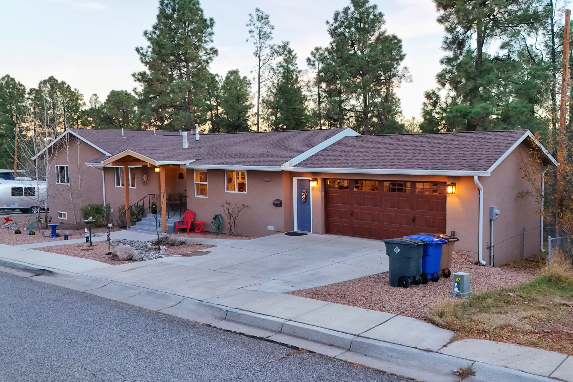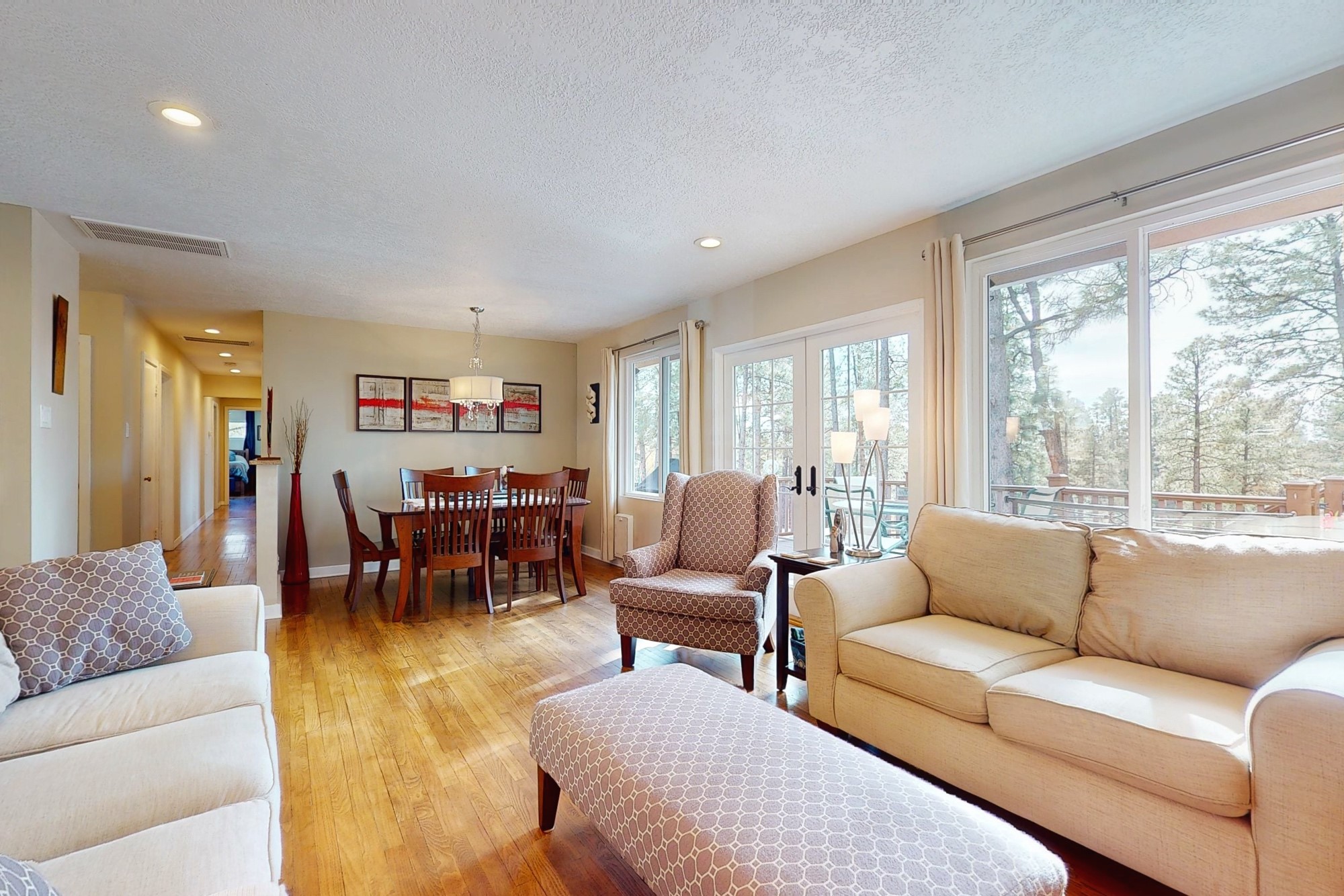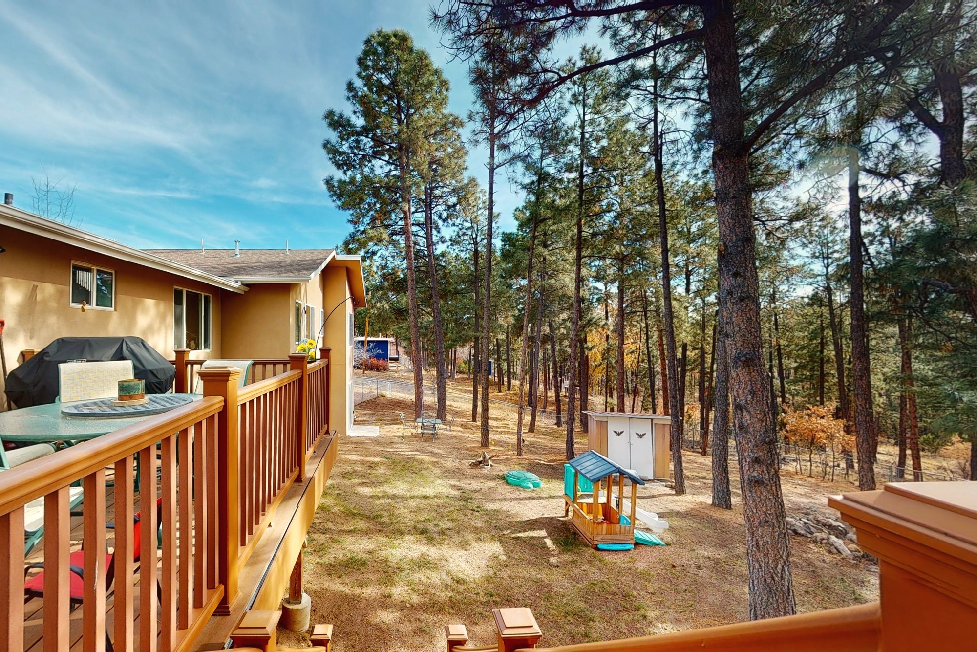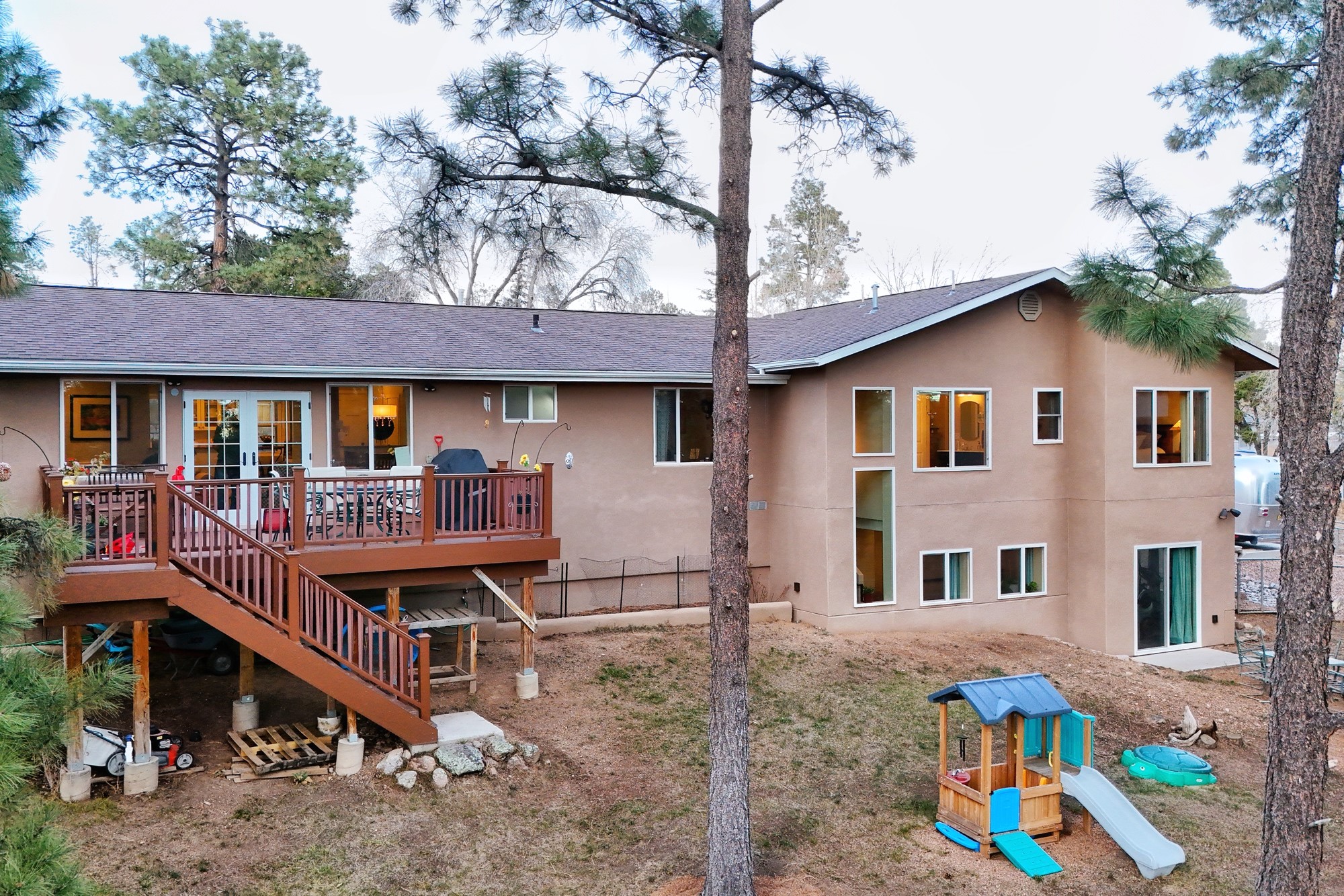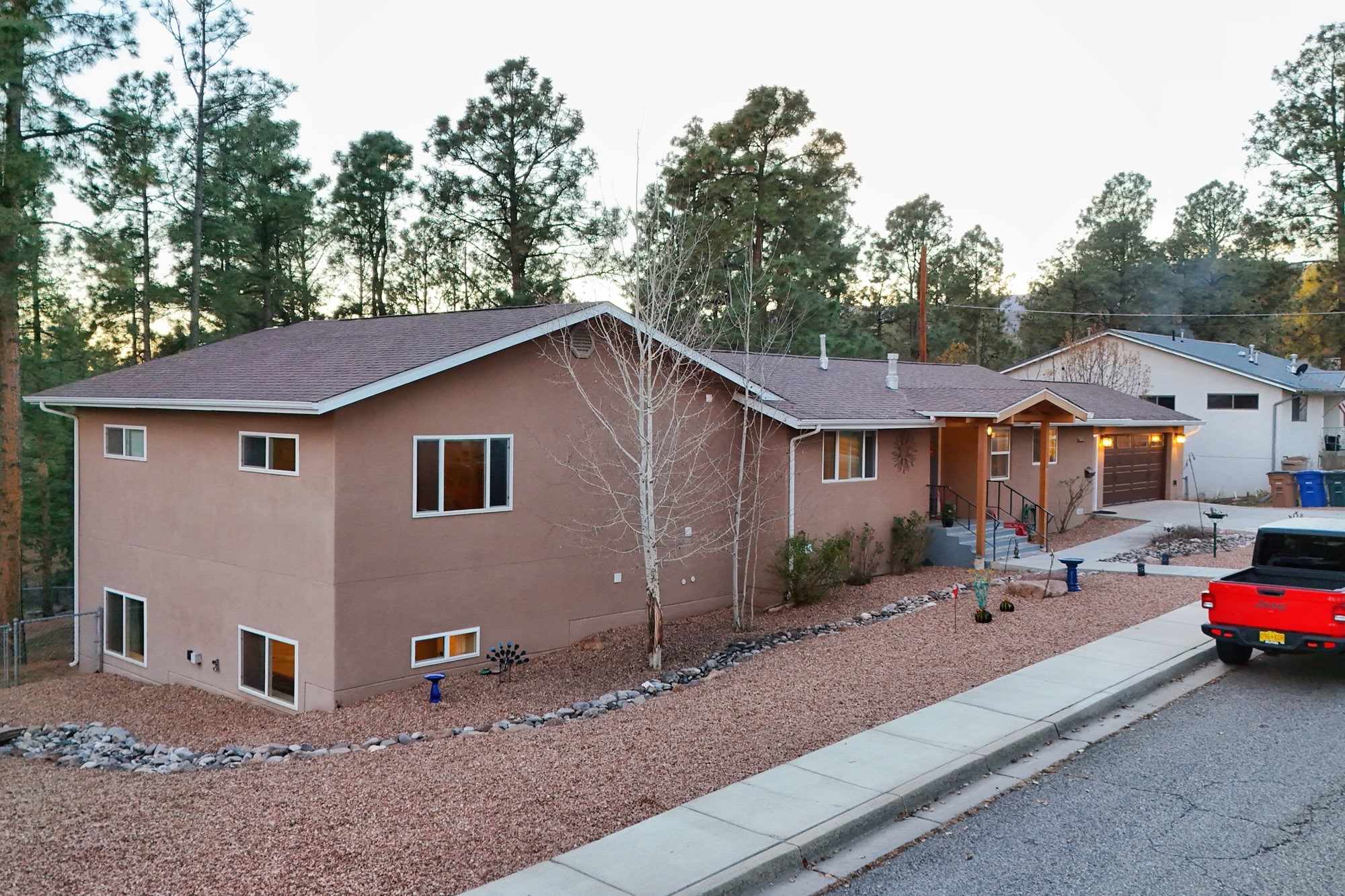 Welcome to a true masterpiece of a home, where every detail has been thoughtfully attended to, offering a lifestyle of comfort and luxury. This meticulously maintained residence boasts an exemplary flow, providing a seamless blend of functionality and style. Situated on a sprawling over half-acre lot, this home is a nature lover's paradise, backing to a serene forest and the picturesque Los Alamos Golf Course. The strategically placed windows flood the interiors with an abundance of natural light, creating a warm and inviting atmosphere. From the deck off of the main living area, enjoy captivating views of the forest, offering a front-row seat to observe various forms of wildlife in their natural habitat. The first floor boast the main living area, kitchen, three bedrooms, bonus room and laundry room. The versatile bonus space presents the perfect opportunity for an office or an extra bedroom, catering to your individual needs. The kitchen is a chef's delight, featuring updated appliances, soft-close drawers and cabinets, and an eat-in breakfast nook - the perfect setting for both casual and formal dining. The spacious primary bedroom offers tall ceilings, walk in closet, and phenomenal natural light with ample room for both relaxation and rejuvenation. Off the primary is an oversized ensuite, providing a touch of luxury and convenience. Downstairs you'll find a large additional living space, one bedroom, bathroom and more storage! The fully landscaped front yard exudes curb appeal, while the clean and spacious back area offers endless possibilities for customization. The attached garage accommodates two cars and storage and additional space for RV. Don't miss the chance to make this meticulously crafted residence your own, where every detail has been perfected to create a haven of sophistication and tranquility. Recent updates include roof, windows, stucco, water heater, and furnace, ensuring modern comfort and efficiency.