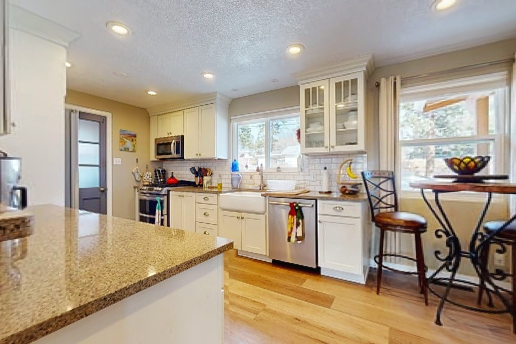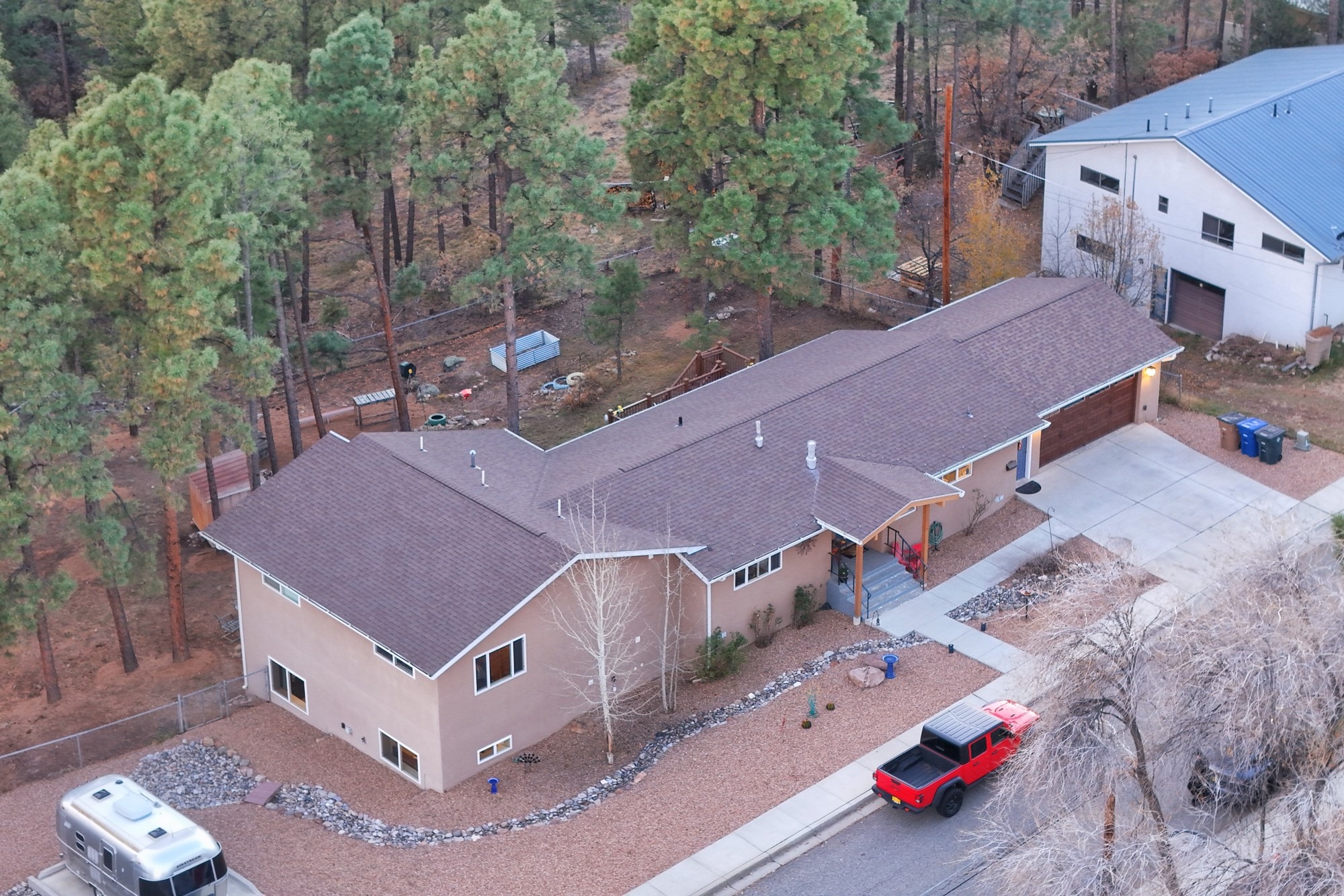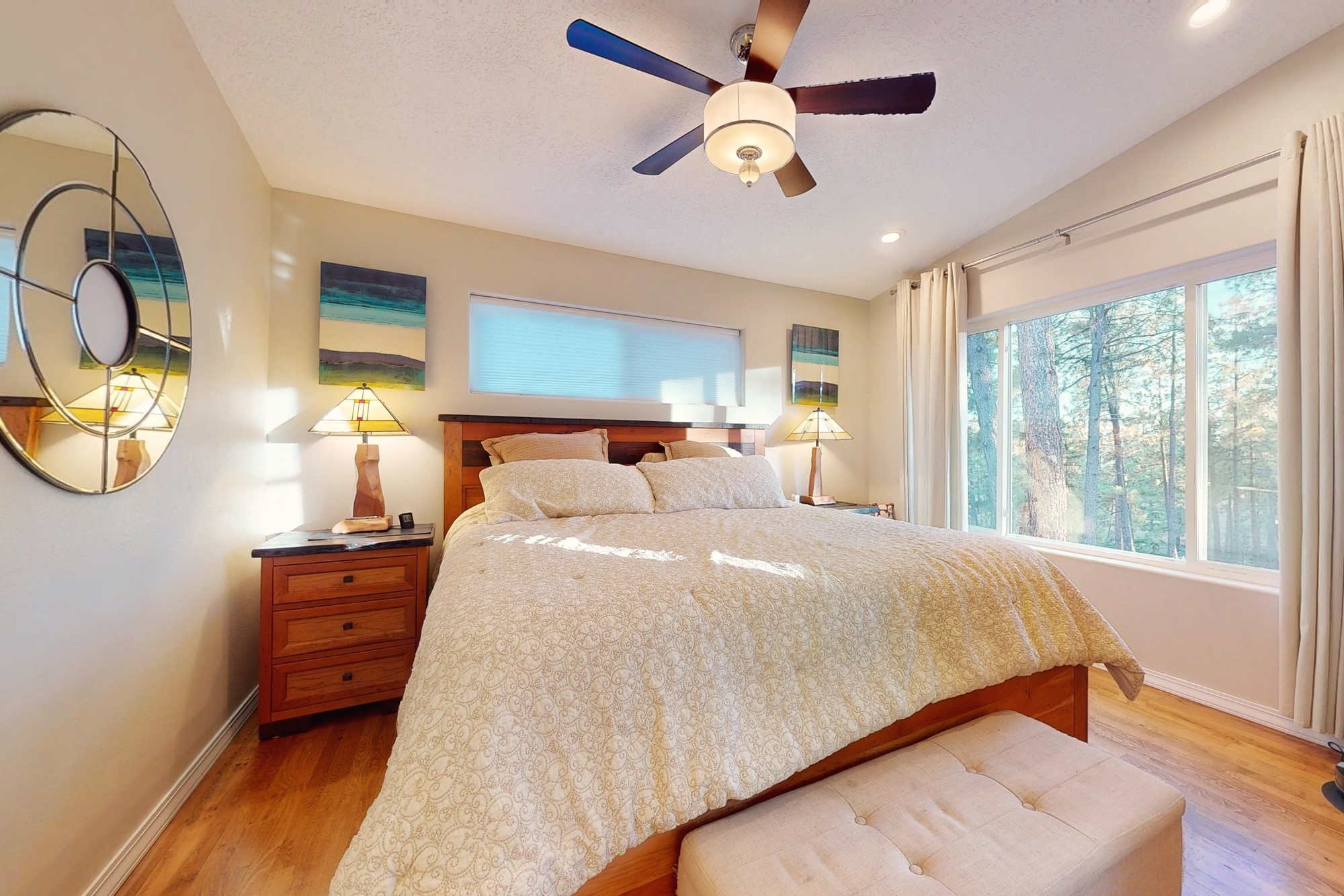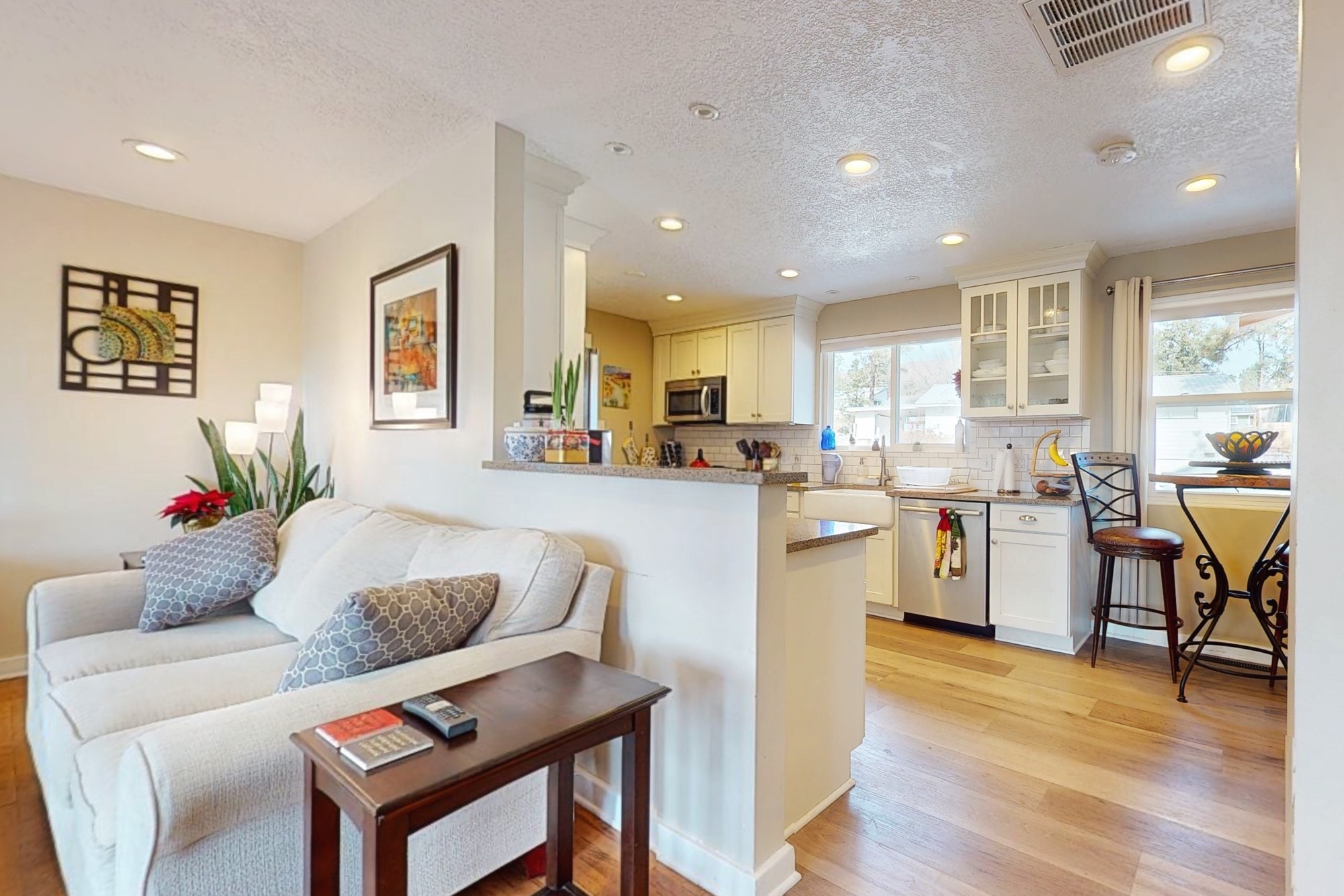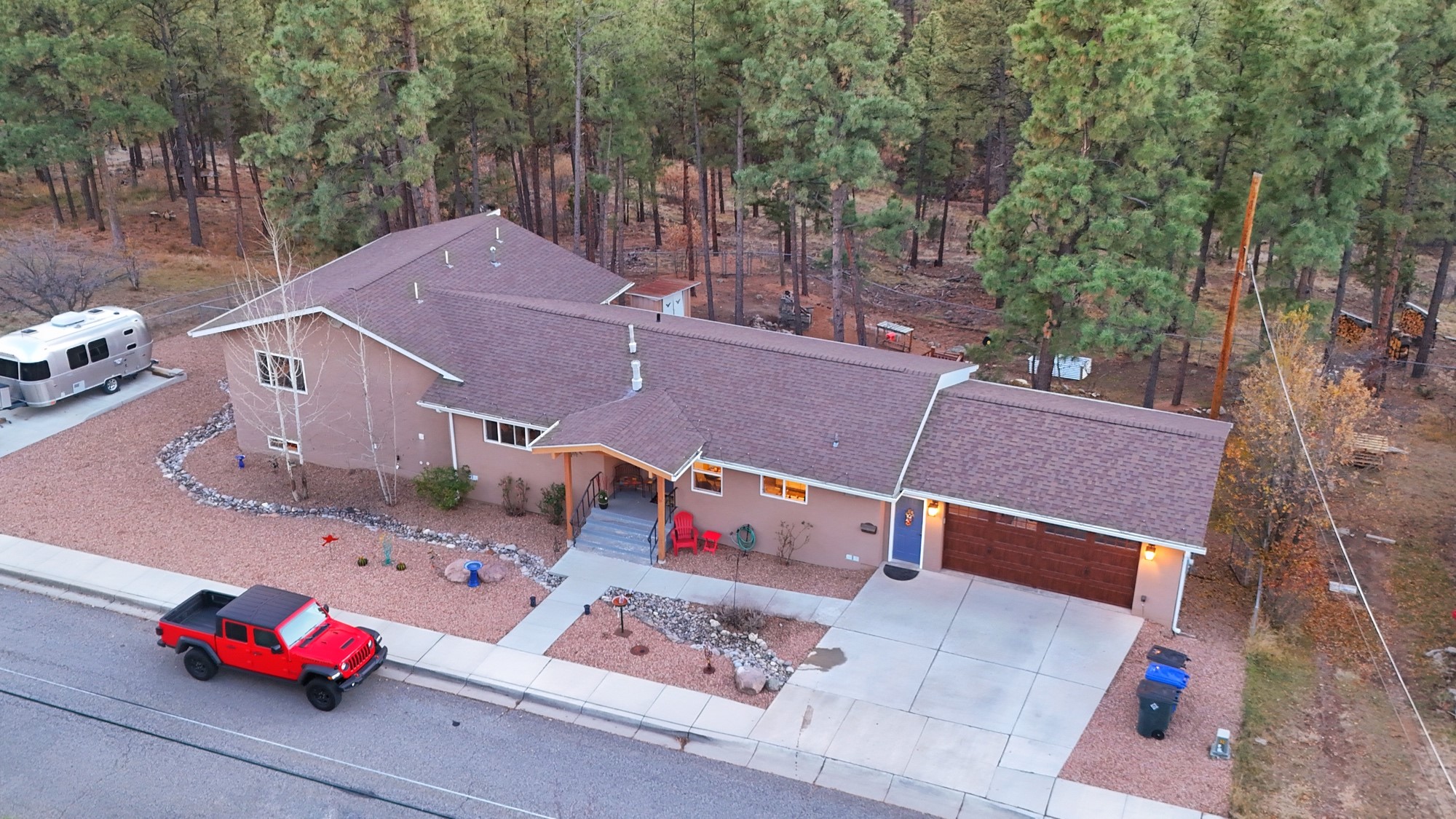 Welcome to a true masterpiece of a home, where every detail has been thoughtfully attended to, offering a lifestyle of comfort and luxury. This meticulously maintained residence boasts an exemplary flow, providing a seamless blend of functionality and style. Situated on a sprawling over half-acre lot, this home is a nature lover's paradise, backing to a serene forest and the picturesque Los Alamos Golf Course. The strategically placed windows flood the interiors with an abundance of natural light, creating a warm and inviting atmosphere. From the deck off of the main living area, enjoy captivating views of the forest, offering a front-row seat to observe various forms of wildlife in their natural habitat. The first floor boast the main living area, kitchen, three bedrooms, bonus room and laundry room. The versatile bonus space presents the perfect opportunity for an office or an extra bedroom, catering to your individual needs. The kitchen is a chef's delight, featuring updated appliances, soft-close drawers and cabinets, and an eat-in breakfast nook - the perfect setting for both casual and formal dining. The spacious primary bedroom offers tall ceilings, walk in closet, and phenomenal natural light with ample room for both relaxation and rejuvenation. Off the primary is an oversized ensuite, providing a touch of luxury and convenience. Downstairs you'll find a large additional living space, one bedroom, bathroom and more storage! The fully landscaped front yard exudes curb appeal, while the clean and spacious back area offers endless possibilities for customization. The attached garage accommodates two cars and storage and additional space for RV. Don't miss the chance to make this meticulously crafted residence your own, where every detail has been perfected to create a haven of sophistication and tranquility. Recent updates include roof, windows, stucco, water heater, and furnace, ensuring modern comfort and efficiency.