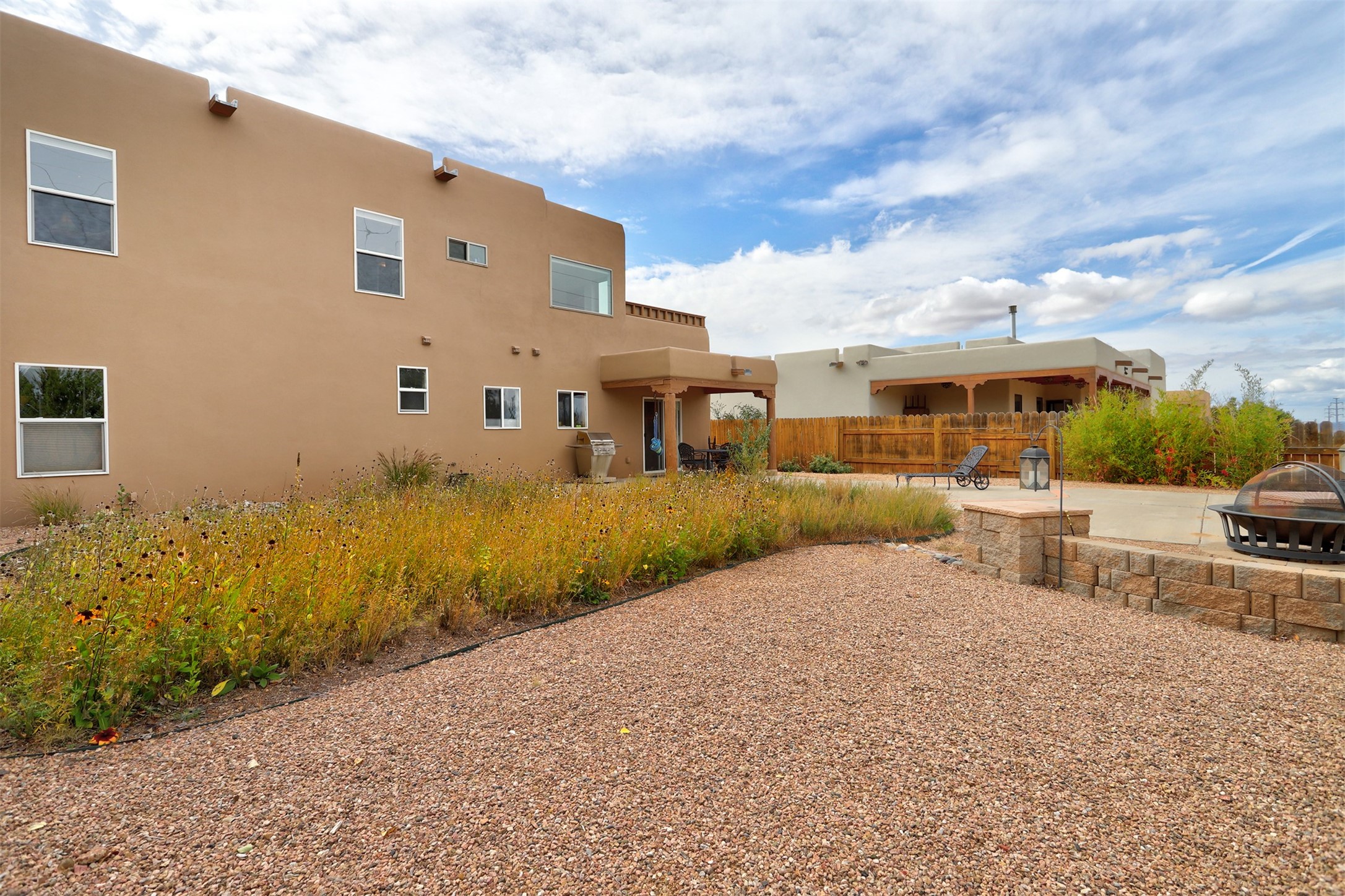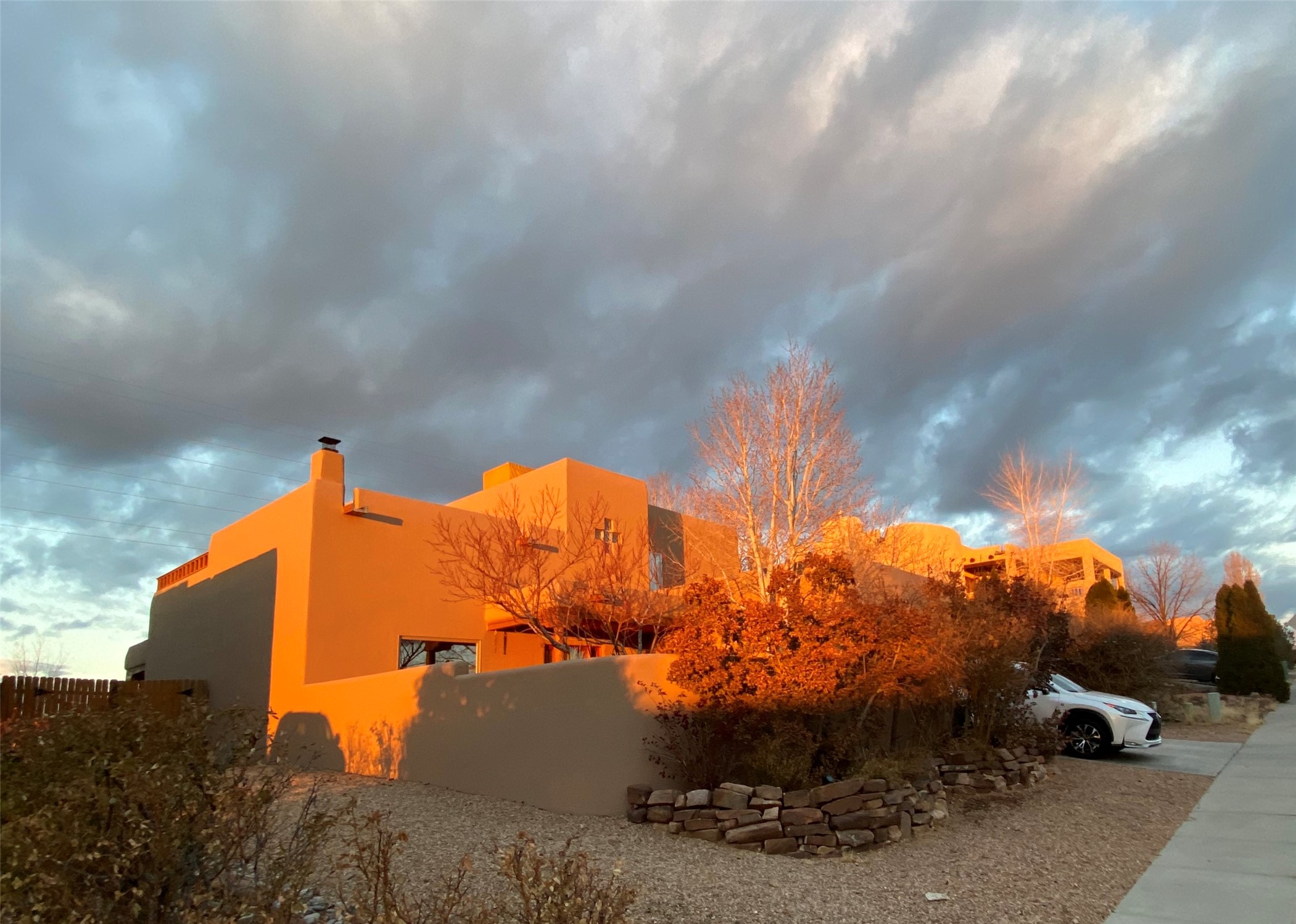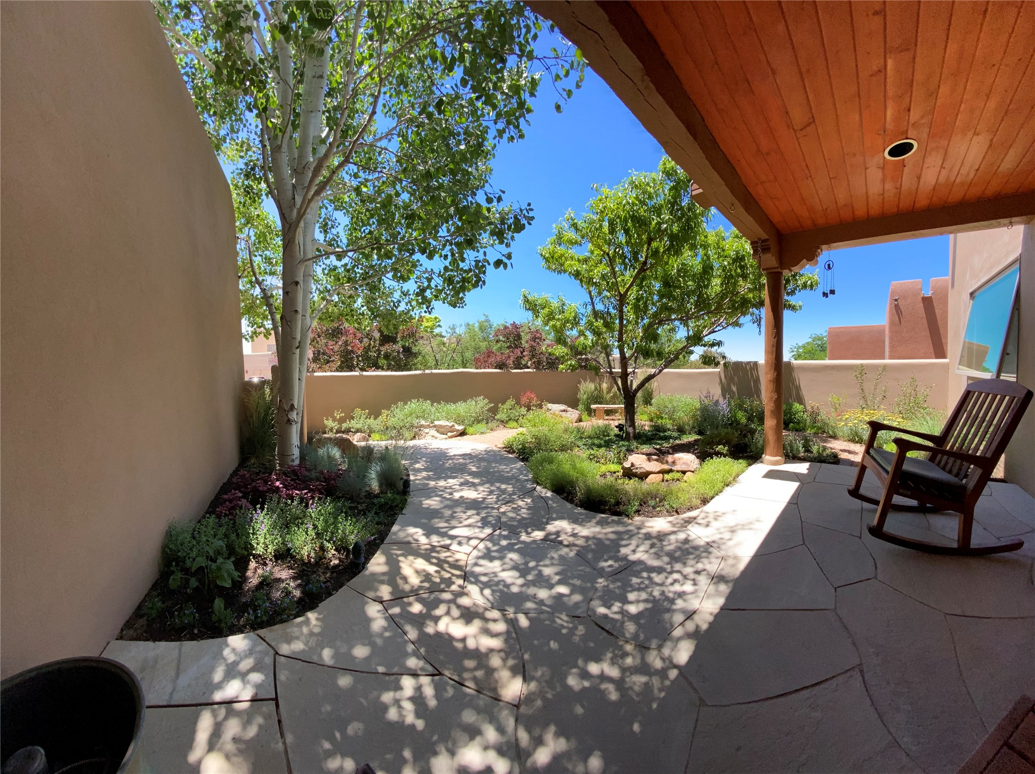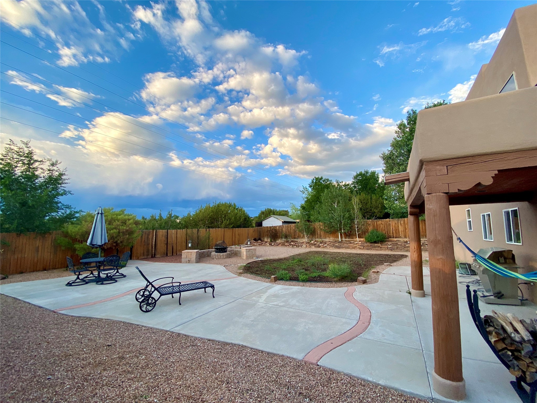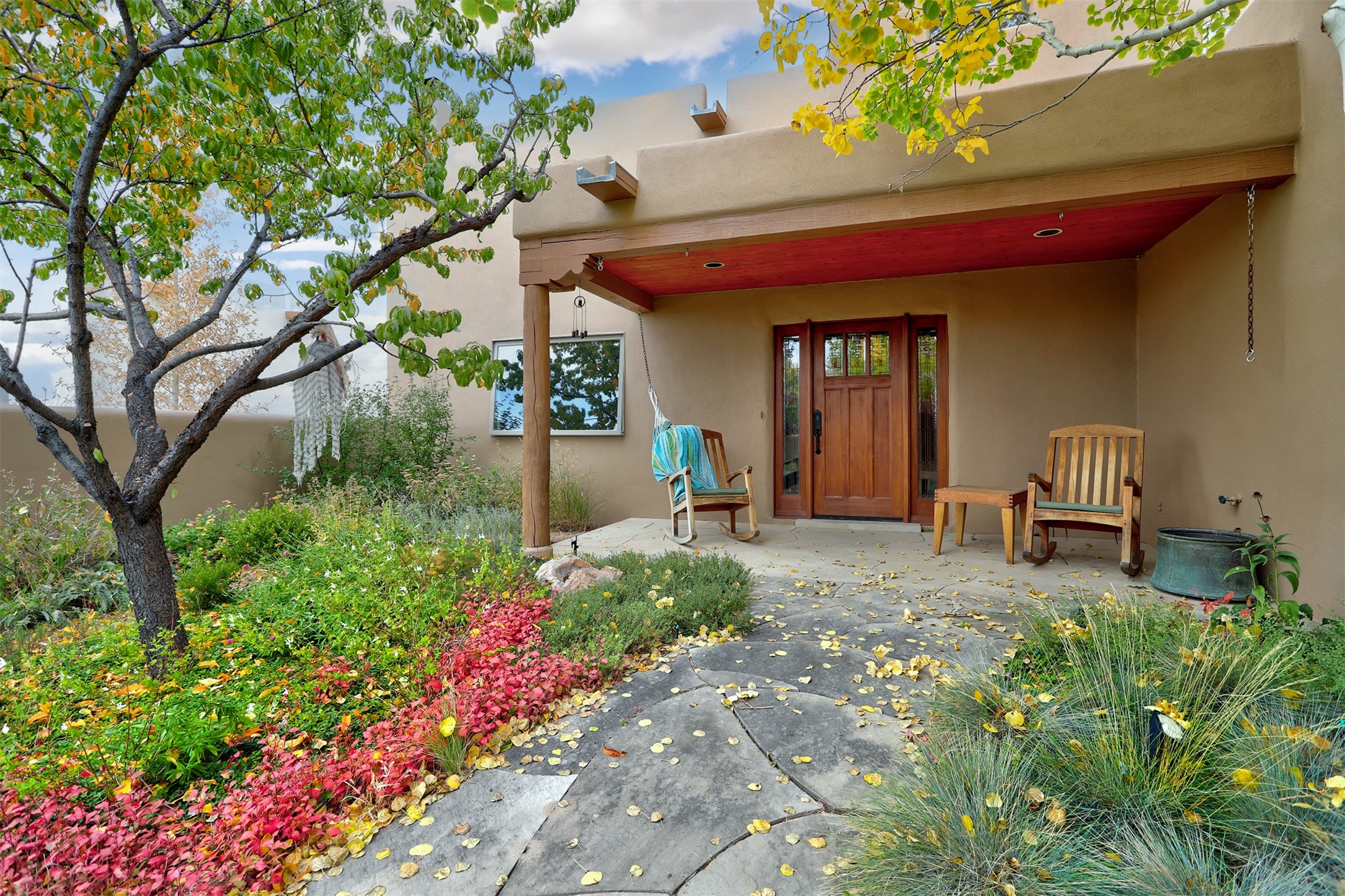 Absolutely the finest home in Pueblos del Sol with over $200k of upgrades and improvements in the last 6 years. A lush front enclosed courtyard welcomes you home. As you walk through the front door, an impeccable home presents itself that is impossible to identify from new. Current owner has painstakingly remodeled every room in the house, including a stunning primary bath featuring an impressive view toward the Sangres. Designer flooring throughout, hot water is newer on-demand unit, Carrera marble in primary bath, custom cabinets in garage, garage also has a mini-split for cooling and heat. Full list of upgrades available. Large, expansive back yard teeming with garden boxes and flowers, a true respite from the city. Large yard adjoins open space and miles upon miles of views. Easy commute to Albuquerque, 12 minutes to the Santa Fe Plaza.