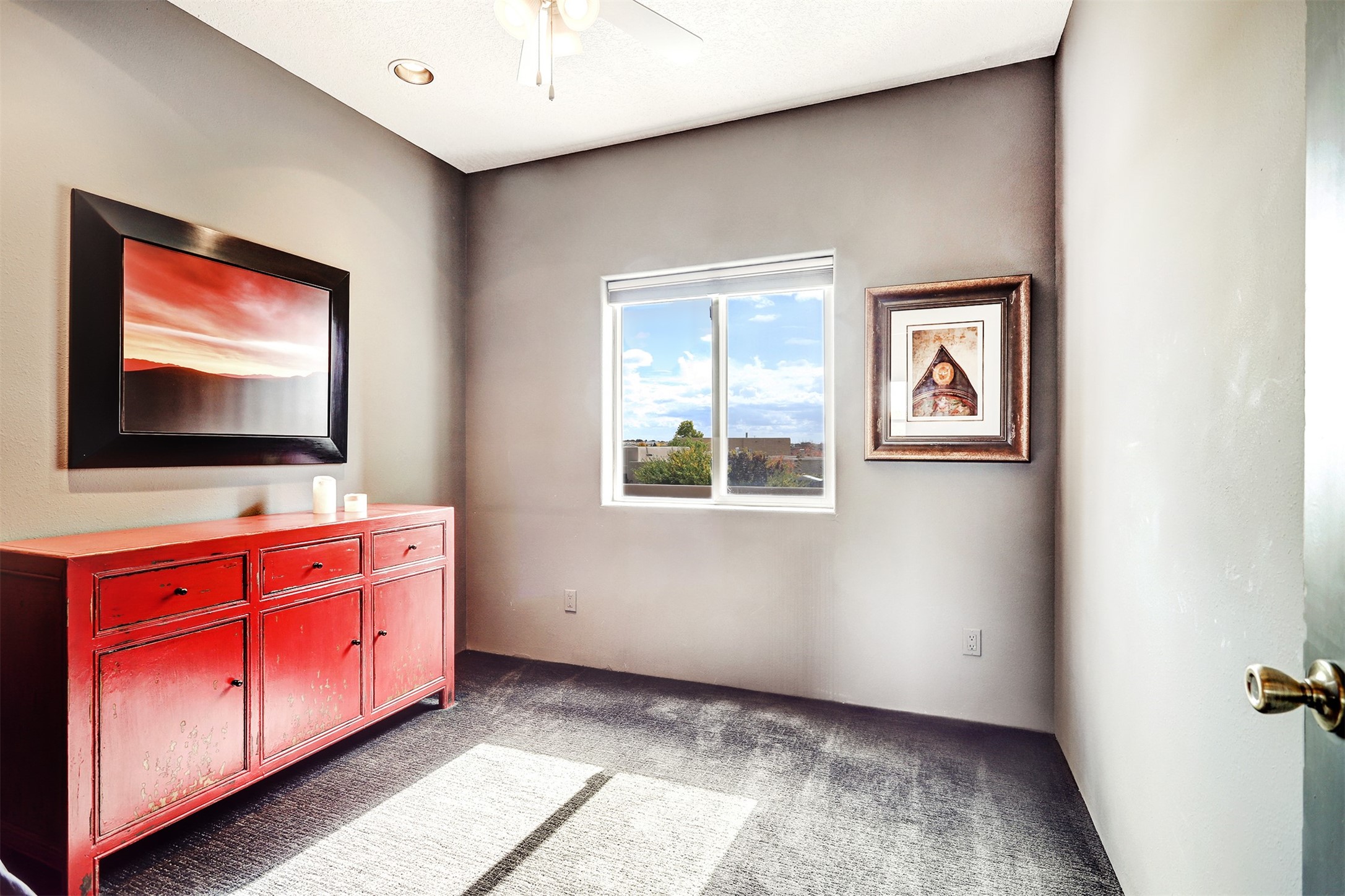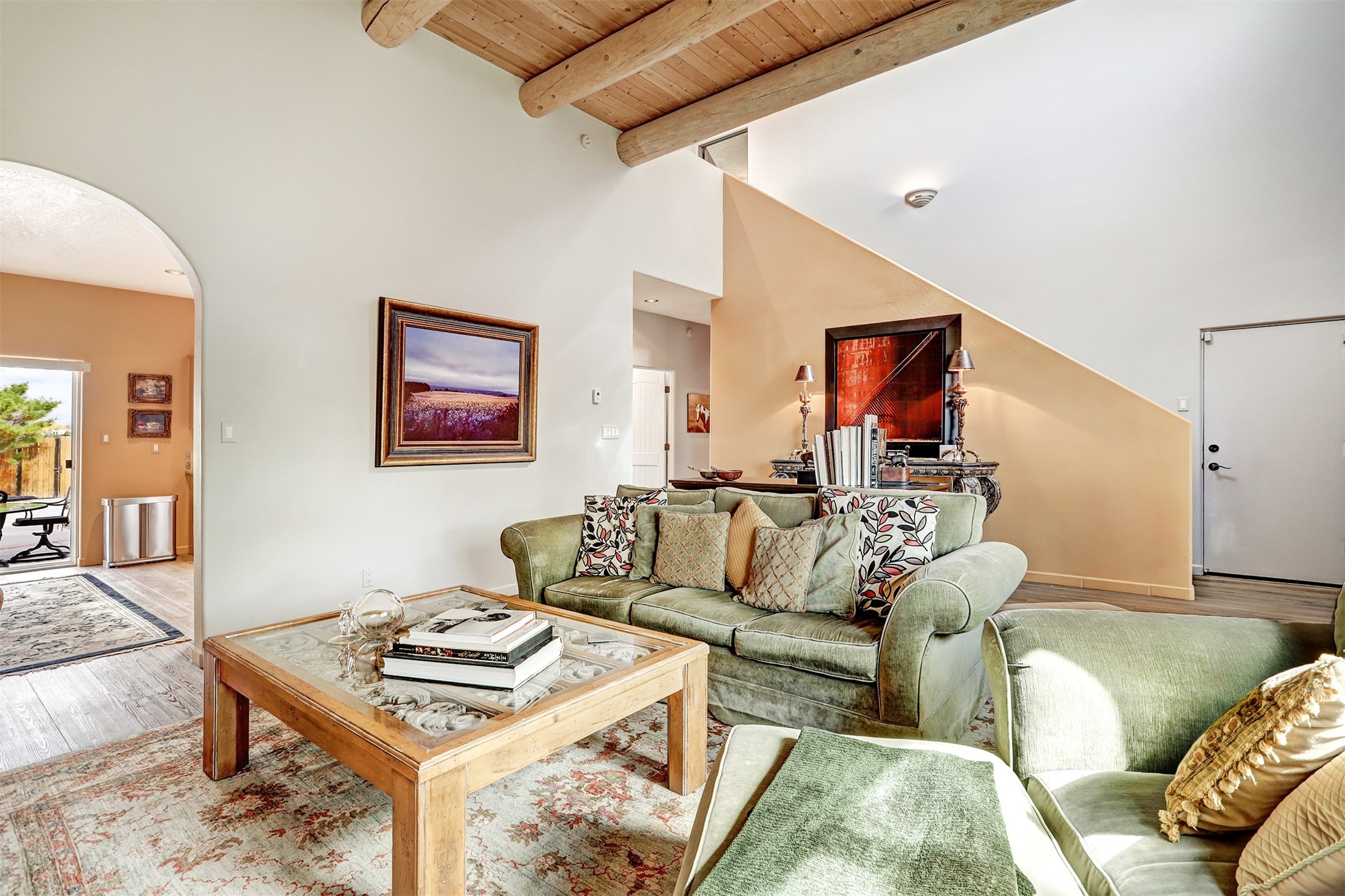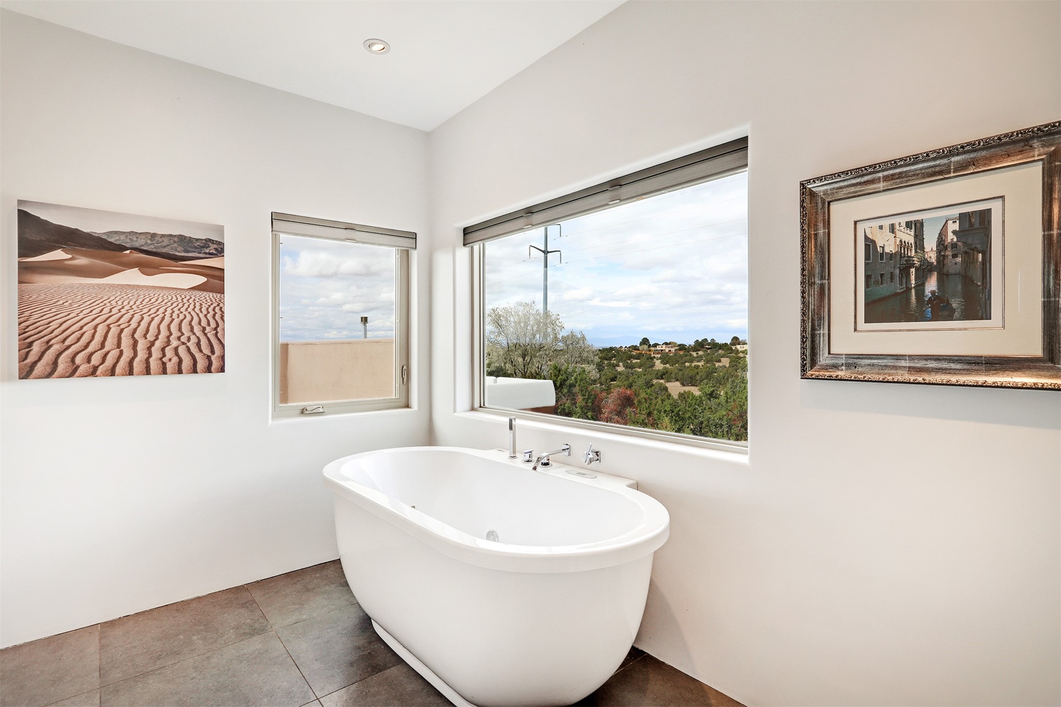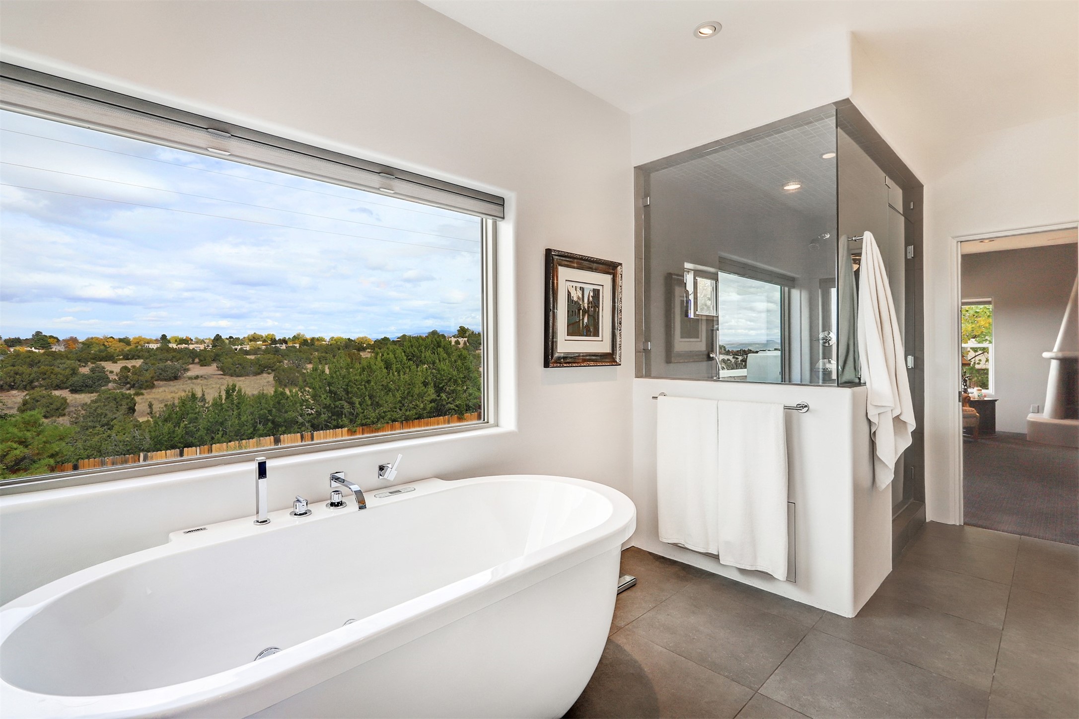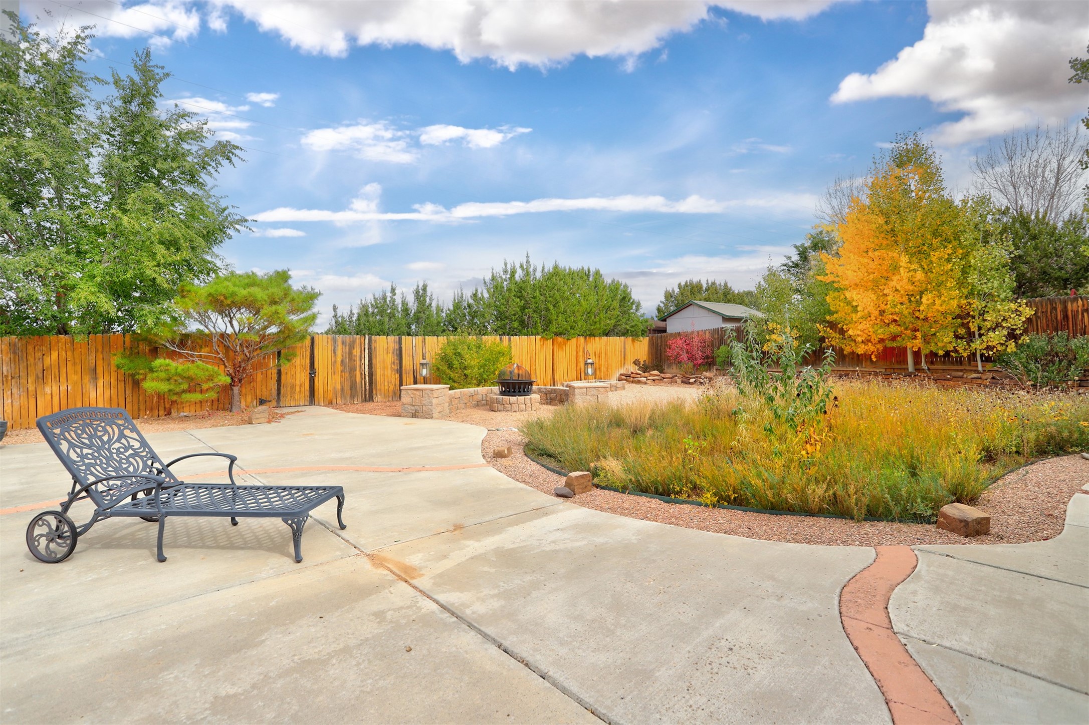 Absolutely the finest home in Pueblos del Sol with over $200k of upgrades and improvements in the last 6 years. A lush front enclosed courtyard welcomes you home. As you walk through the front door, an impeccable home presents itself that is impossible to identify from new. Current owner has painstakingly remodeled every room in the house, including a stunning primary bath featuring an impressive view toward the Sangres. Designer flooring throughout, hot water is newer on-demand unit, Carrera marble in primary bath, custom cabinets in garage, garage also has a mini-split for cooling and heat. Full list of upgrades available. Large, expansive back yard teeming with garden boxes and flowers, a true respite from the city. Large yard adjoins open space and miles upon miles of views. Easy commute to Albuquerque, 12 minutes to the Santa Fe Plaza.