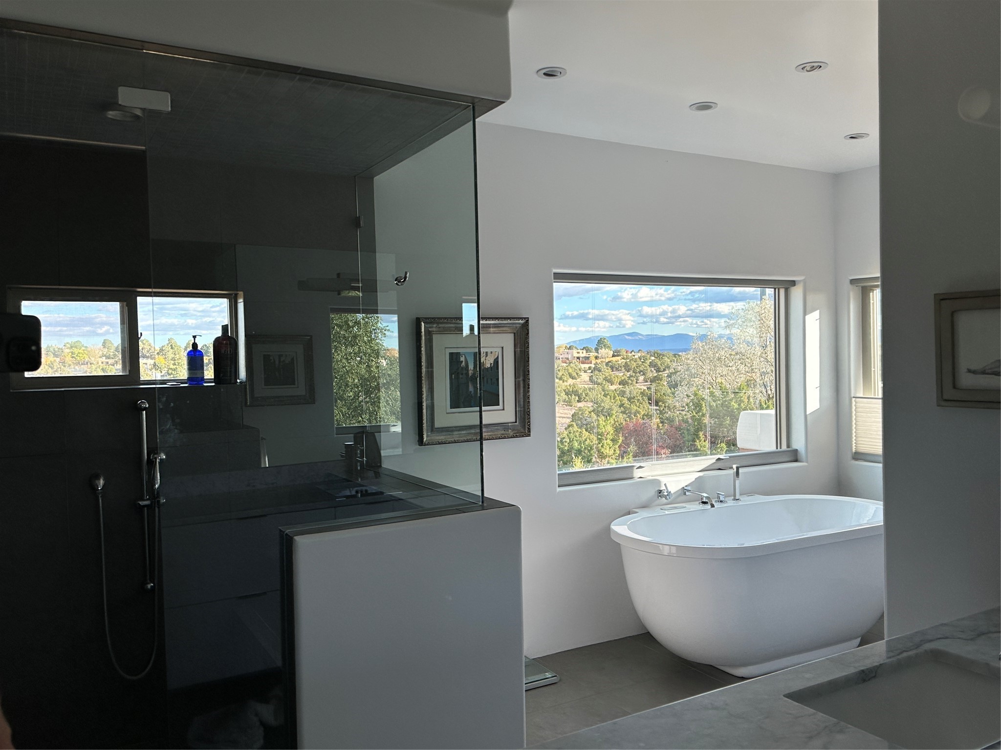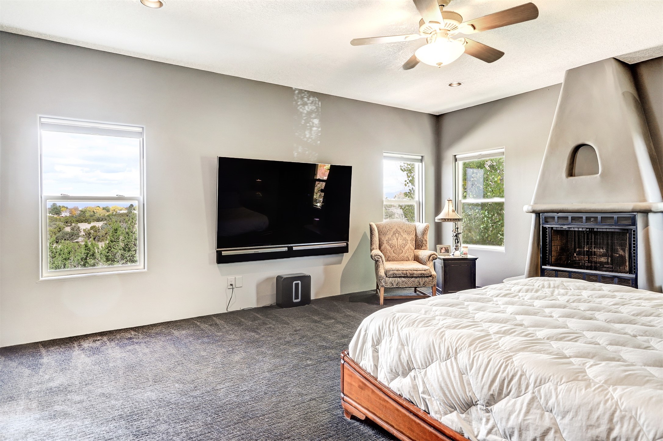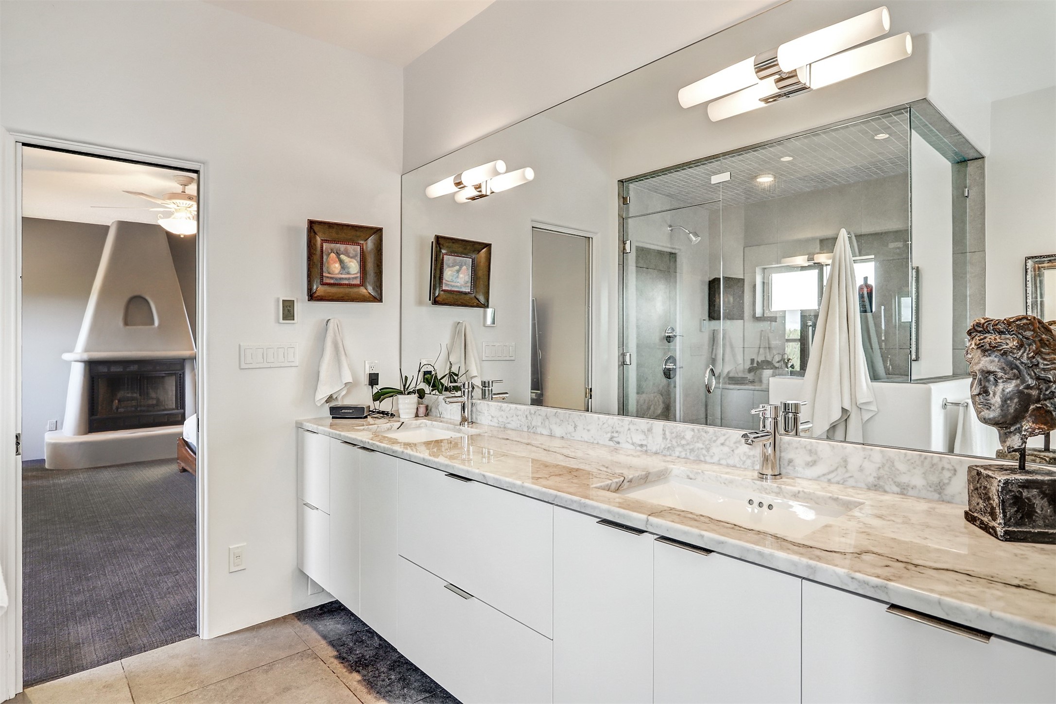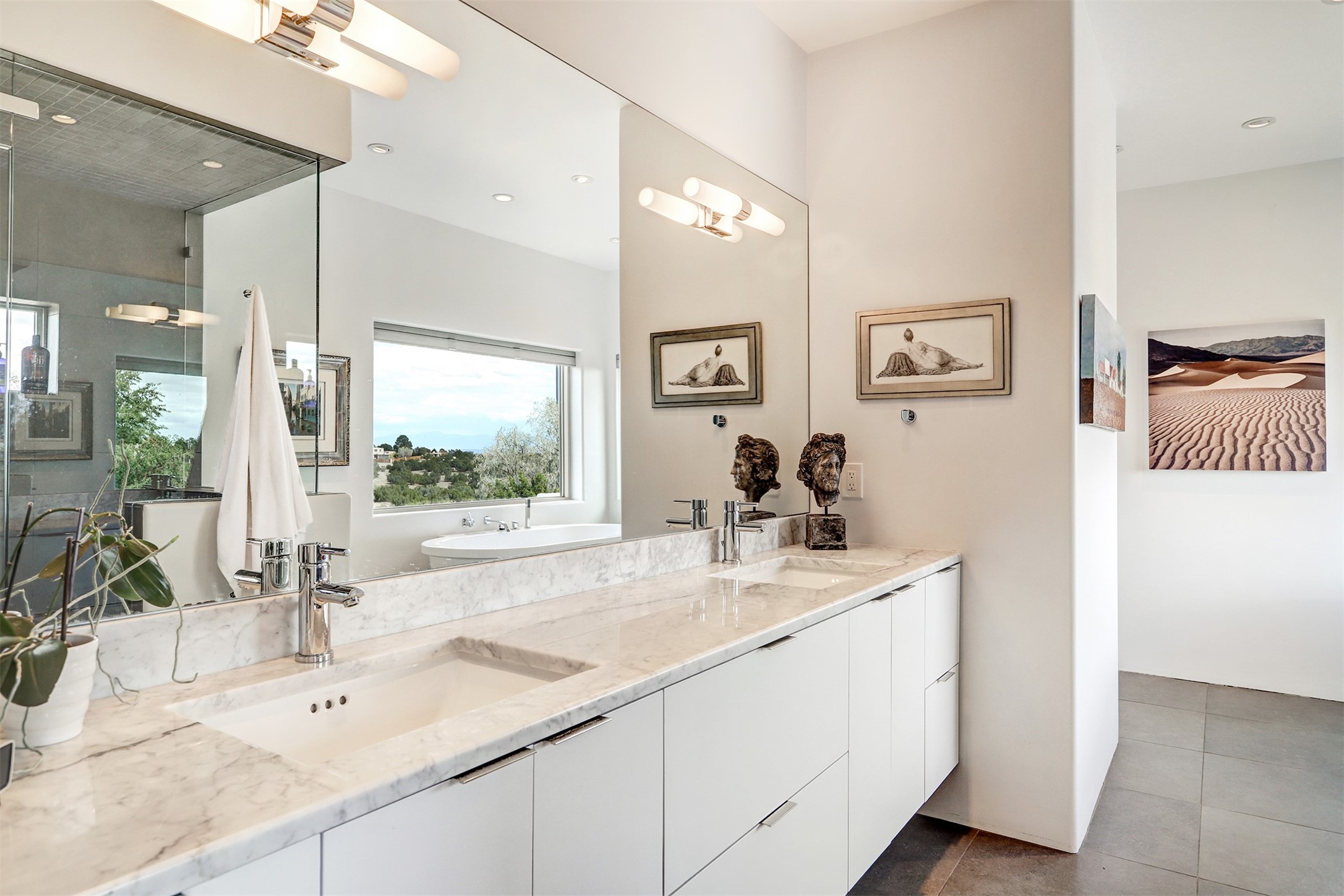 Absolutely the finest home in Pueblos del Sol with over $200k of upgrades and improvements in the last 6 years. A lush front enclosed courtyard welcomes you home. As you walk through the front door, an impeccable home presents itself that is impossible to identify from new. Current owner has painstakingly remodeled every room in the house, including a stunning primary bath featuring an impressive view toward the Sangres. Designer flooring throughout, hot water is newer on-demand unit, Carrera marble in primary bath, custom cabinets in garage, garage also has a mini-split for cooling and heat. Full list of upgrades available. Large, expansive back yard teeming with garden boxes and flowers, a true respite from the city. Large yard adjoins open space and miles upon miles of views. Easy commute to Albuquerque, 12 minutes to the Santa Fe Plaza.