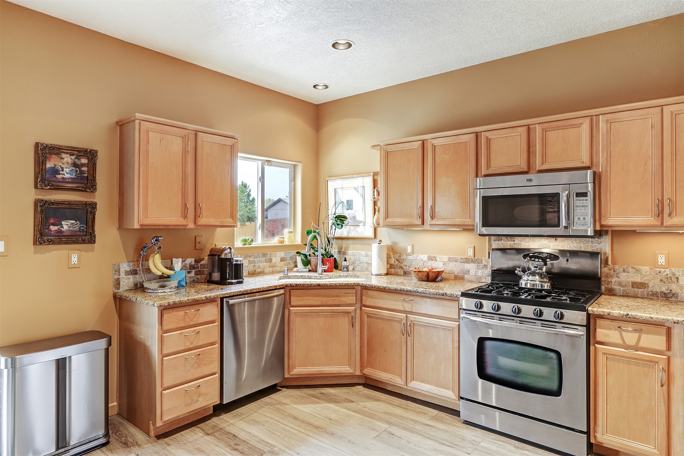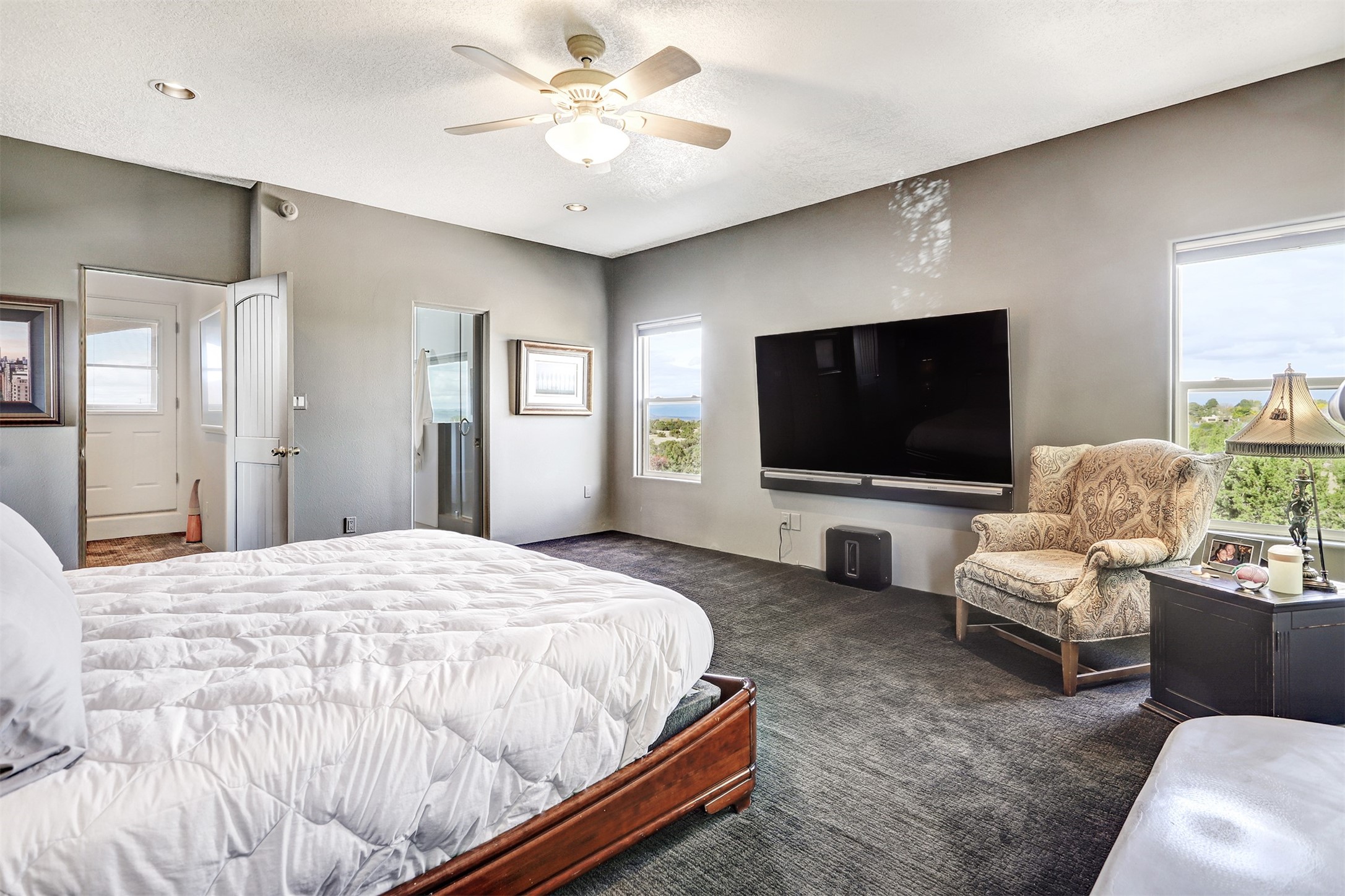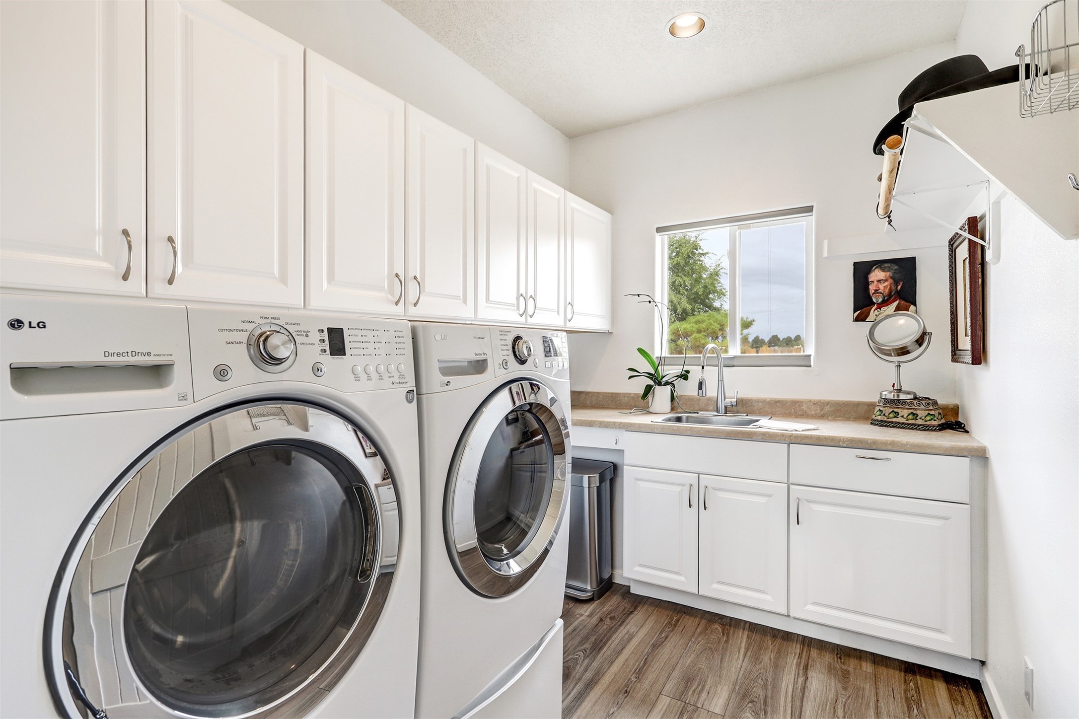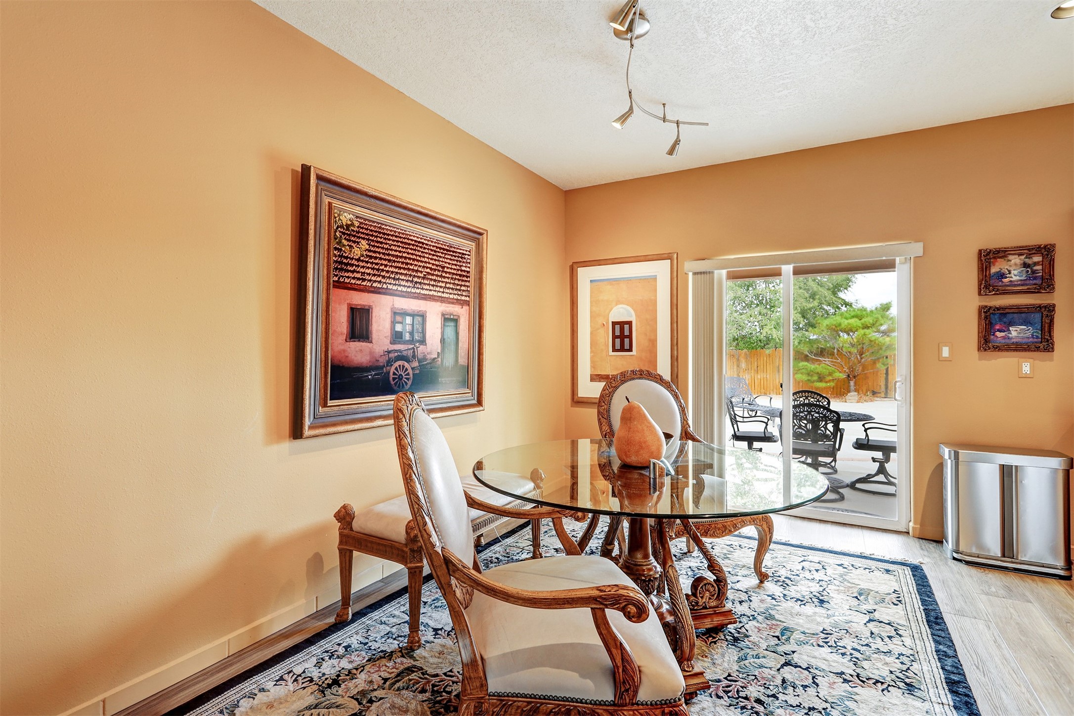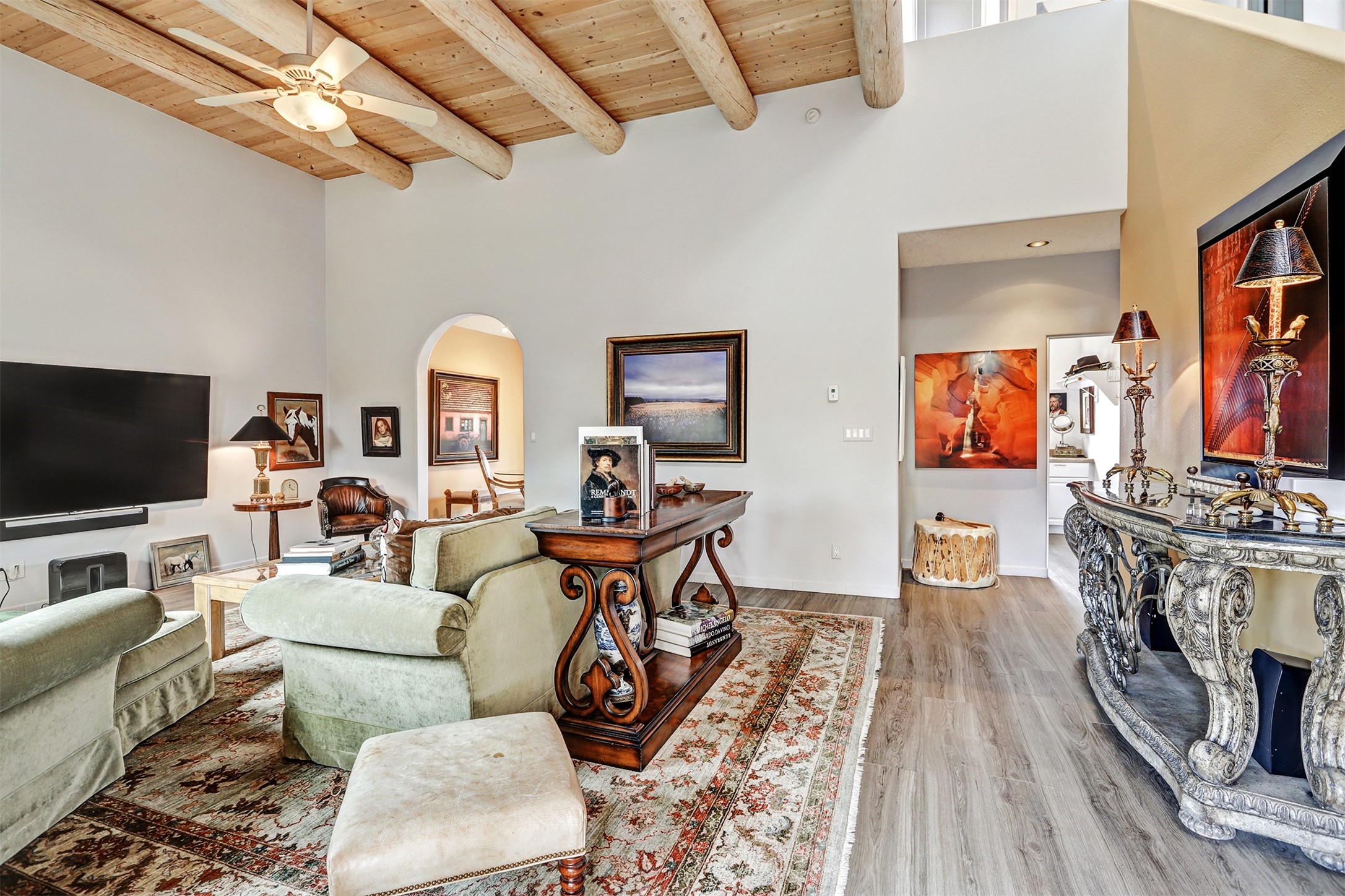 Absolutely the finest home in Pueblos del Sol with over $200k of upgrades and improvements in the last 6 years. A lush front enclosed courtyard welcomes you home. As you walk through the front door, an impeccable home presents itself that is impossible to identify from new. Current owner has painstakingly remodeled every room in the house, including a stunning primary bath featuring an impressive view toward the Sangres. Designer flooring throughout, hot water is newer on-demand unit, Carrera marble in primary bath, custom cabinets in garage, garage also has a mini-split for cooling and heat. Full list of upgrades available. Large, expansive back yard teeming with garden boxes and flowers, a true respite from the city. Large yard adjoins open space and miles upon miles of views. Easy commute to Albuquerque, 12 minutes to the Santa Fe Plaza.