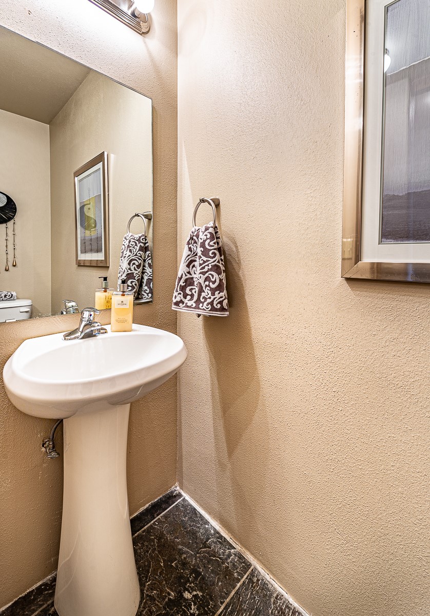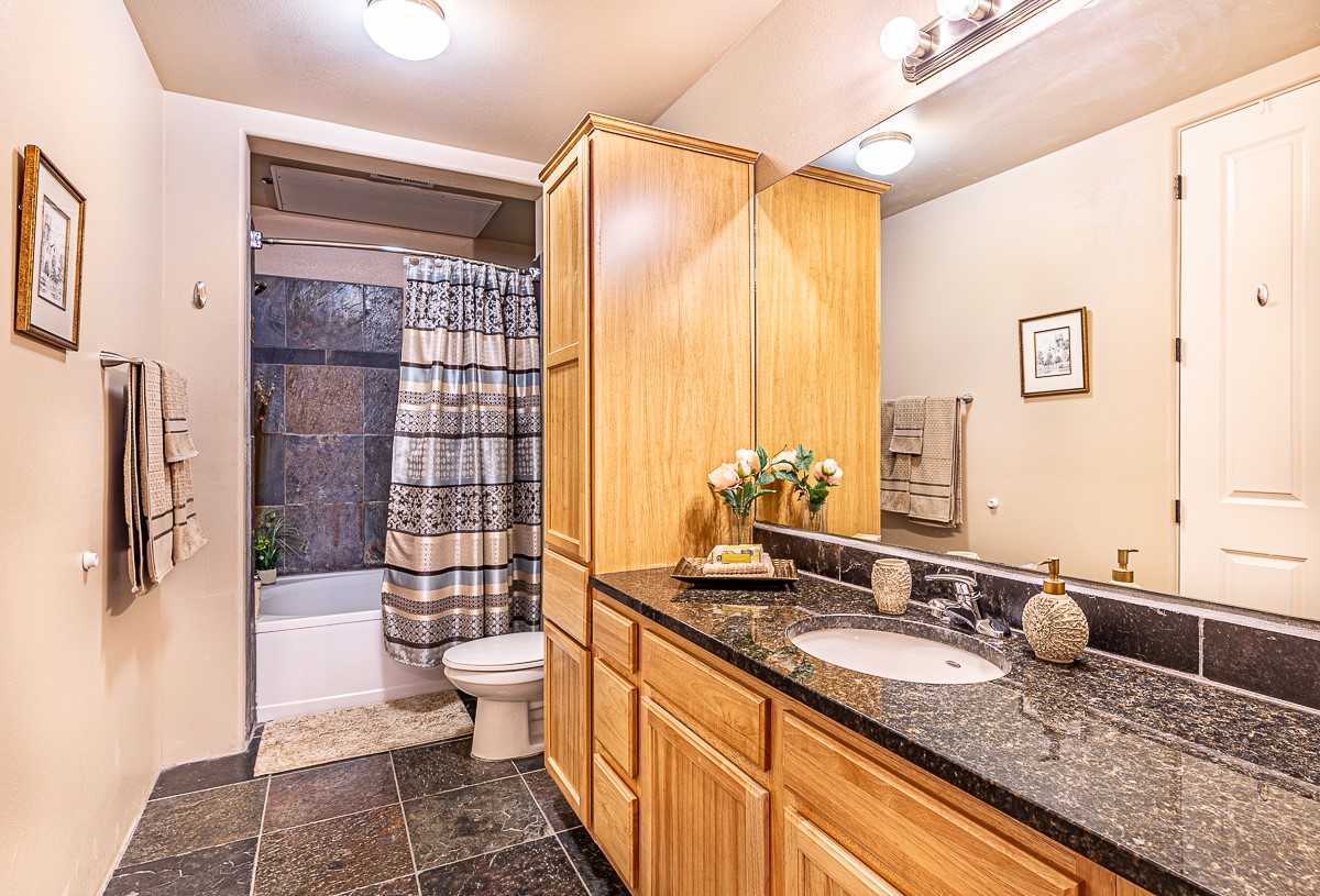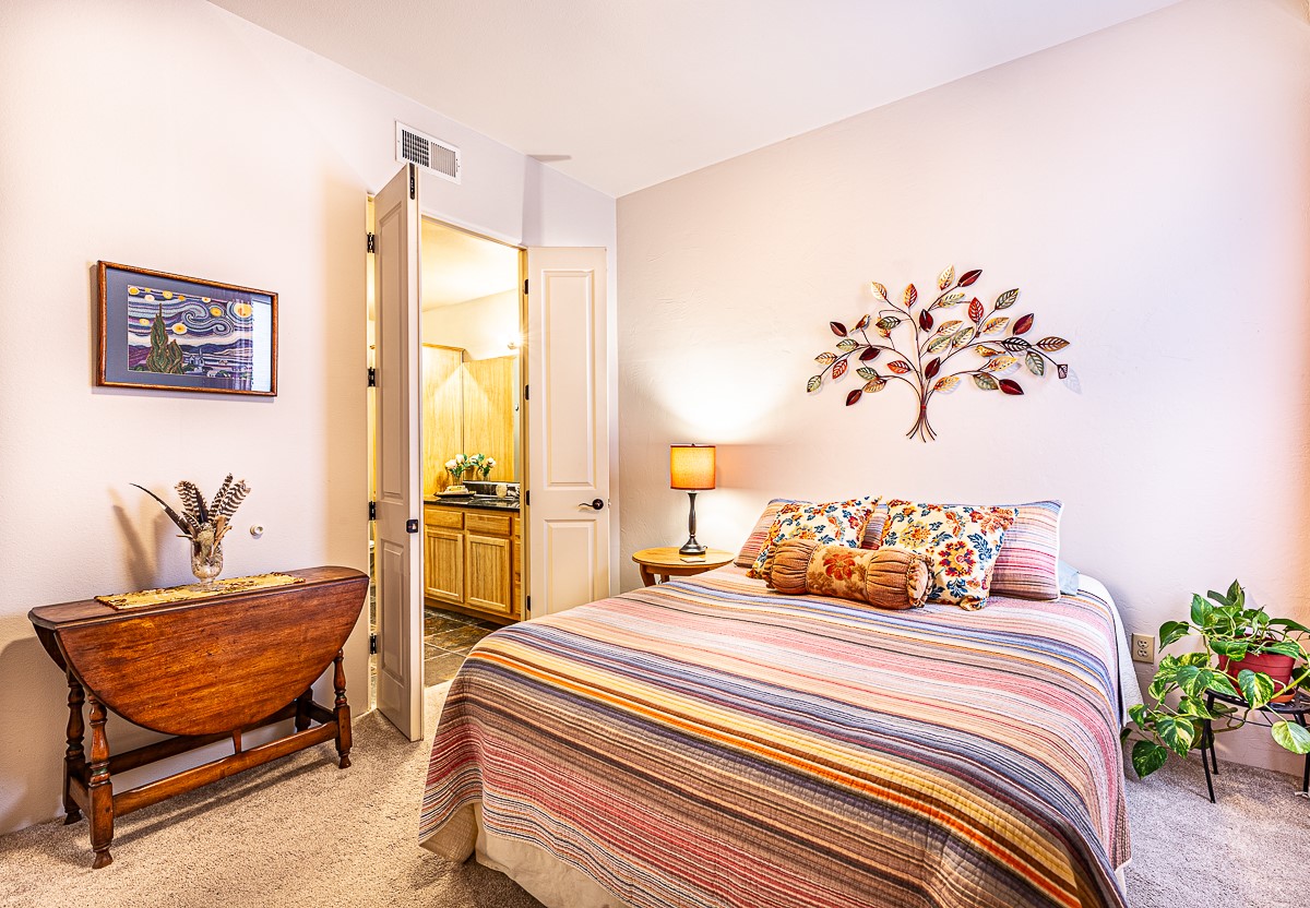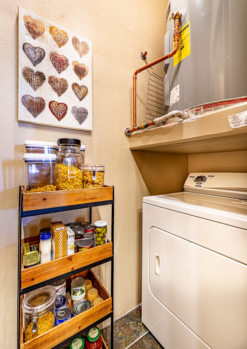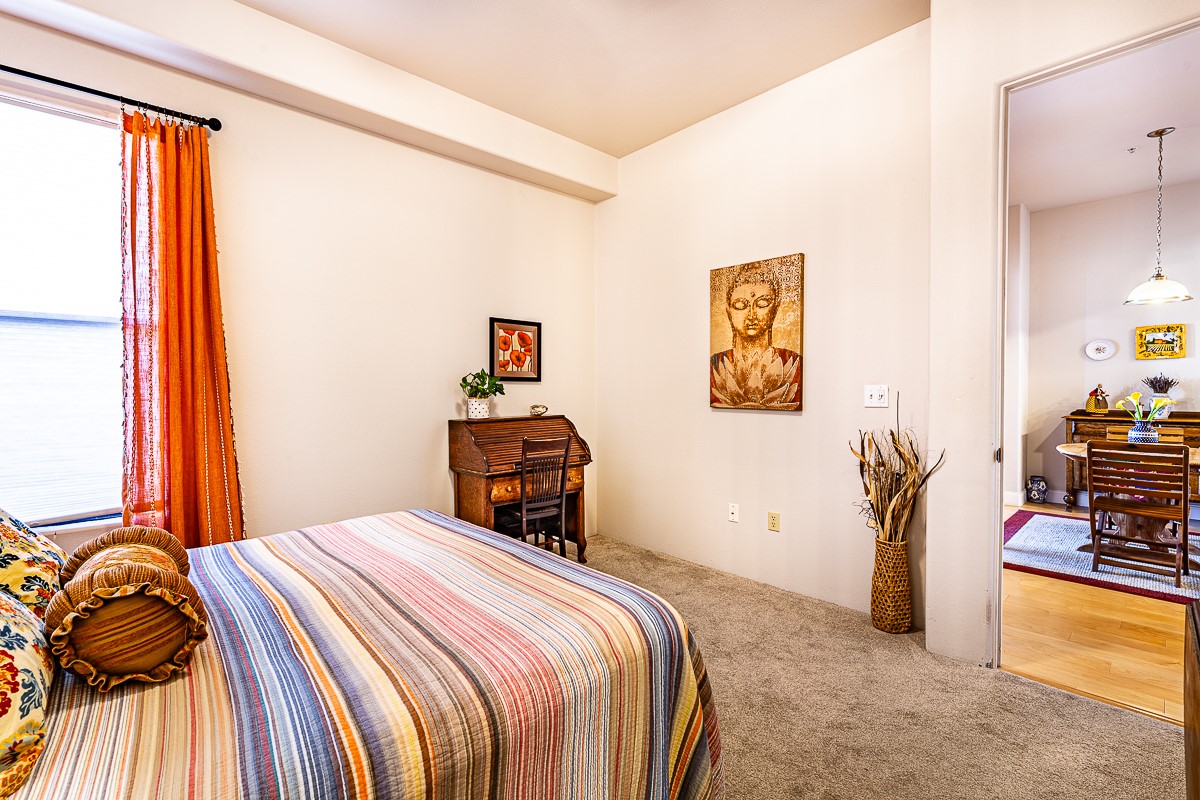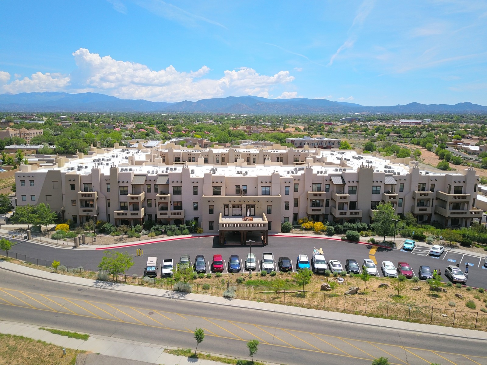 1 bedroom luxury condo PLUS storage unit PLUS garage - THIS is the condo package you have been waiting for at the Alameda! At 874 sf, this is the largest 1 BR floorplan, which includes additional sq. footage, plus a convenient half-bath and office nook. Loaded with luxury, this Pueblo style unit exudes serenity, charm, and class, with magnificent vigas and corbels, kiva FP, granite countertops, slate and birch-toned flooring, with newer carpeting in the bedroom, leading to a granite/slate bath with walk-in-closet. The stylish open kitchen includes a newer stainless steel refrigerator, disposal, dishwasher, gas range, microwave, and a washer dryer duo in a separate laundry closet. A spacious 220 sf patio-portal offers outdoor enjoyment, and your storage and parking needs are covered with the indoor storage unit, 1-car garage, and 2 additional parking spaces. In addition, this unit enjoys a prime, E-Z access location within the building, proximate to elevator and parking. As for the Alameda, this landmark complex has set the standard for luxury condo living since 2008 with a magnificent pool court, fitness center, beautiful reception rooms, library, gated parking, full time onsite management, and 24 hr controlled access for your peace of mind. Located 12 mins from the plaza, and proximate to shopping, restaurants, culture, and major transportation, this location makes Santa Fe living a breeze. Come see this unit before it's G-O-N-E!