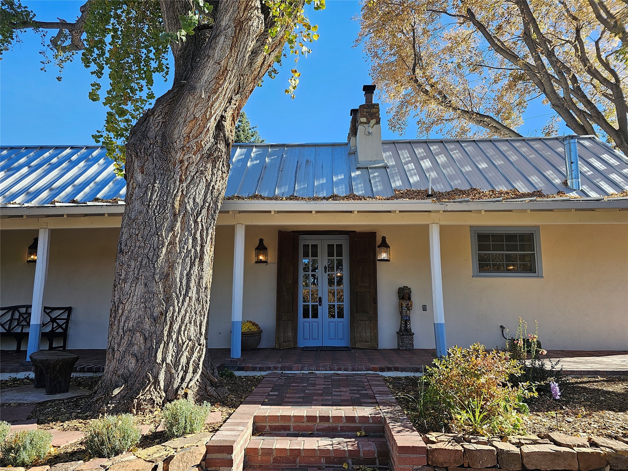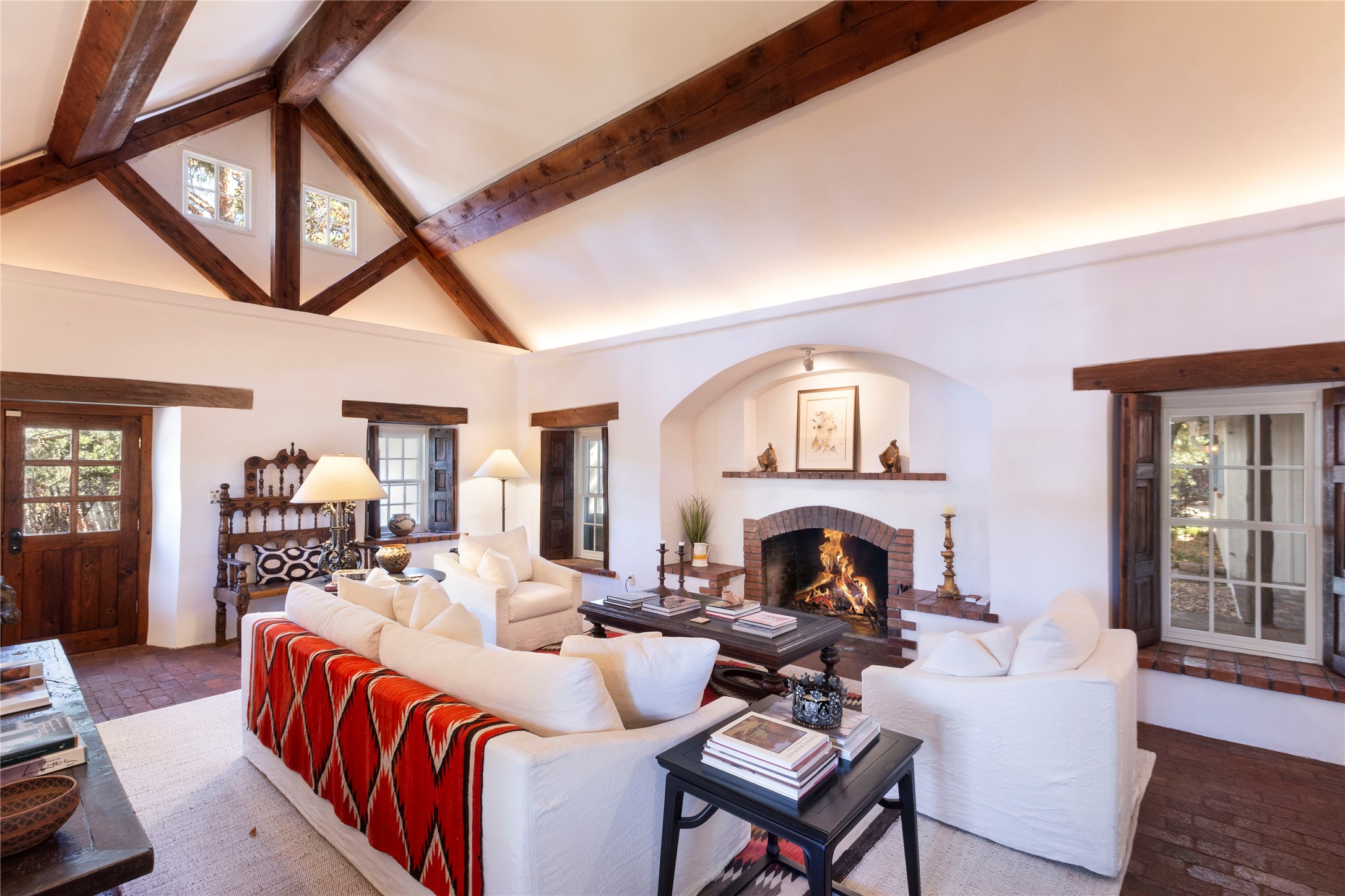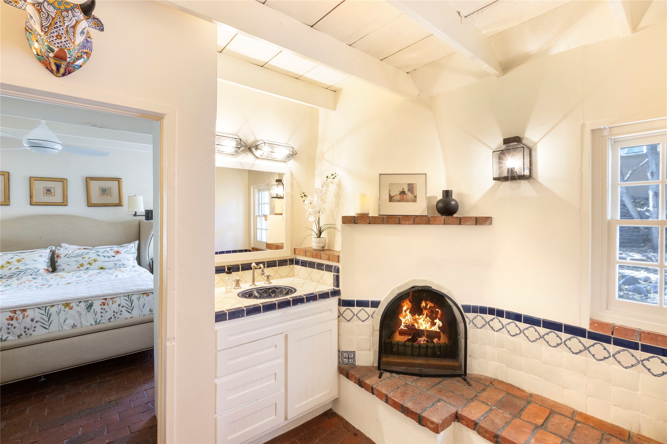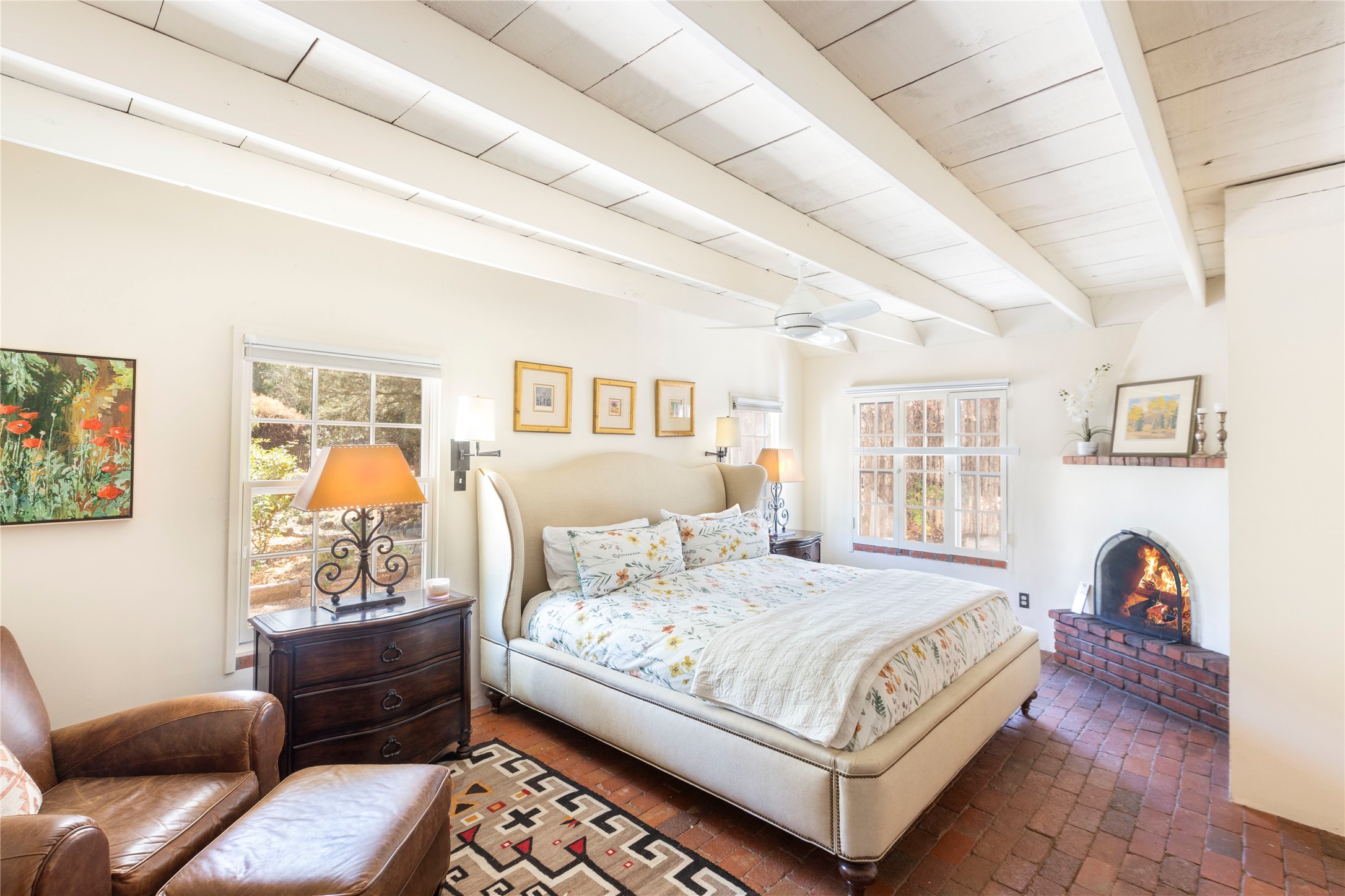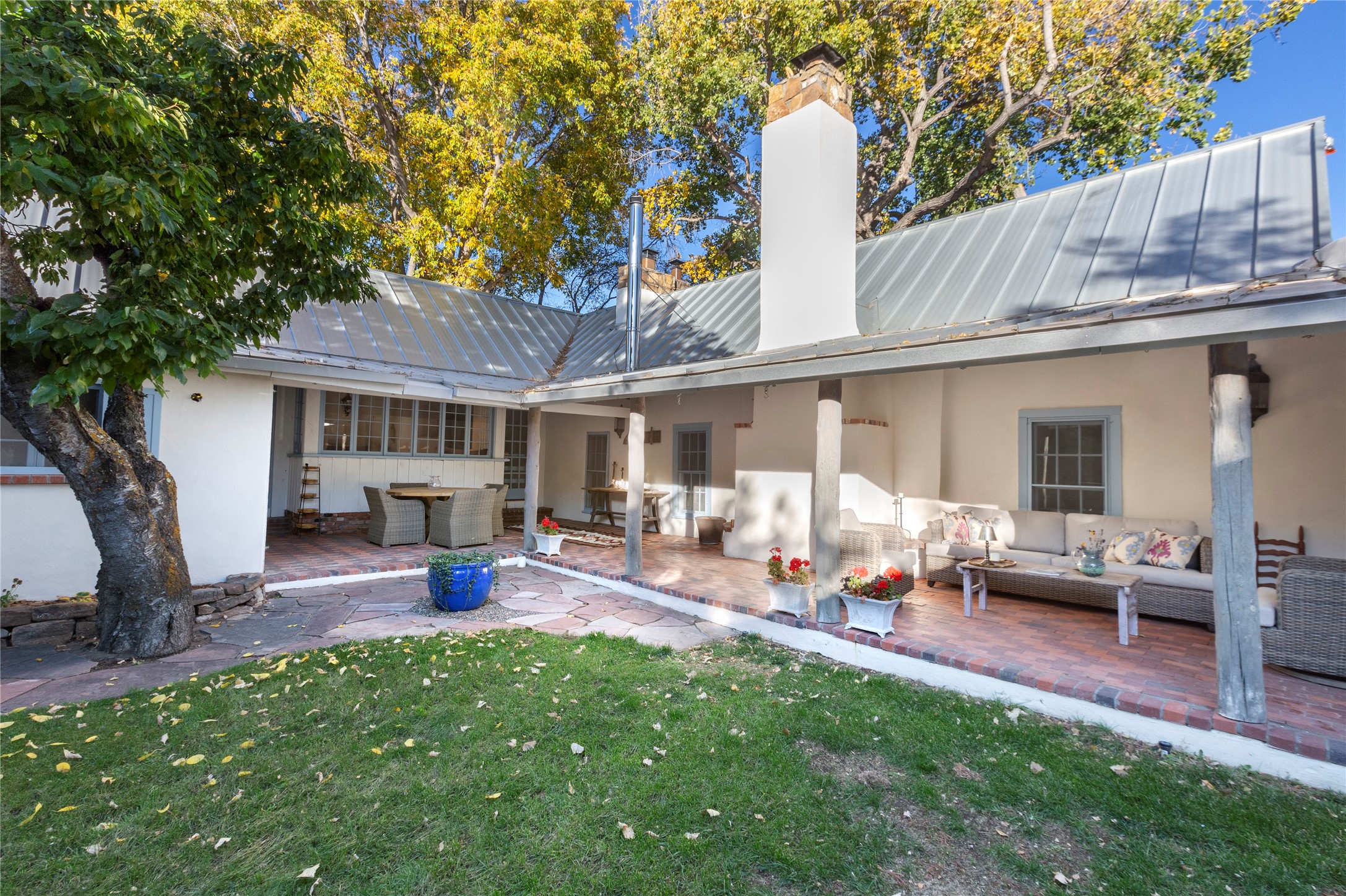 This was Betty Stewart's personal residence. Beyond charming, this house & guest house are surrounded by mature landscaped grounds. This one acre is entirely fenced and has an electric gated entrance. There are plenty of parking spaces for guests within the grounds. This house features all of the design elements that Betty is famous for i.e., deep front and back portals for outdoor entertaining. Adobe construction, plaster with sharp edges, deep set windows, specialty lighting, tumbled brick floors, 6 one-of-a-kind fireplaces and so much more. The intimate spaces have an unerring eye for the perfect room size. Never to be replicated, this home is an opportunity to live within a piece of art and local history.