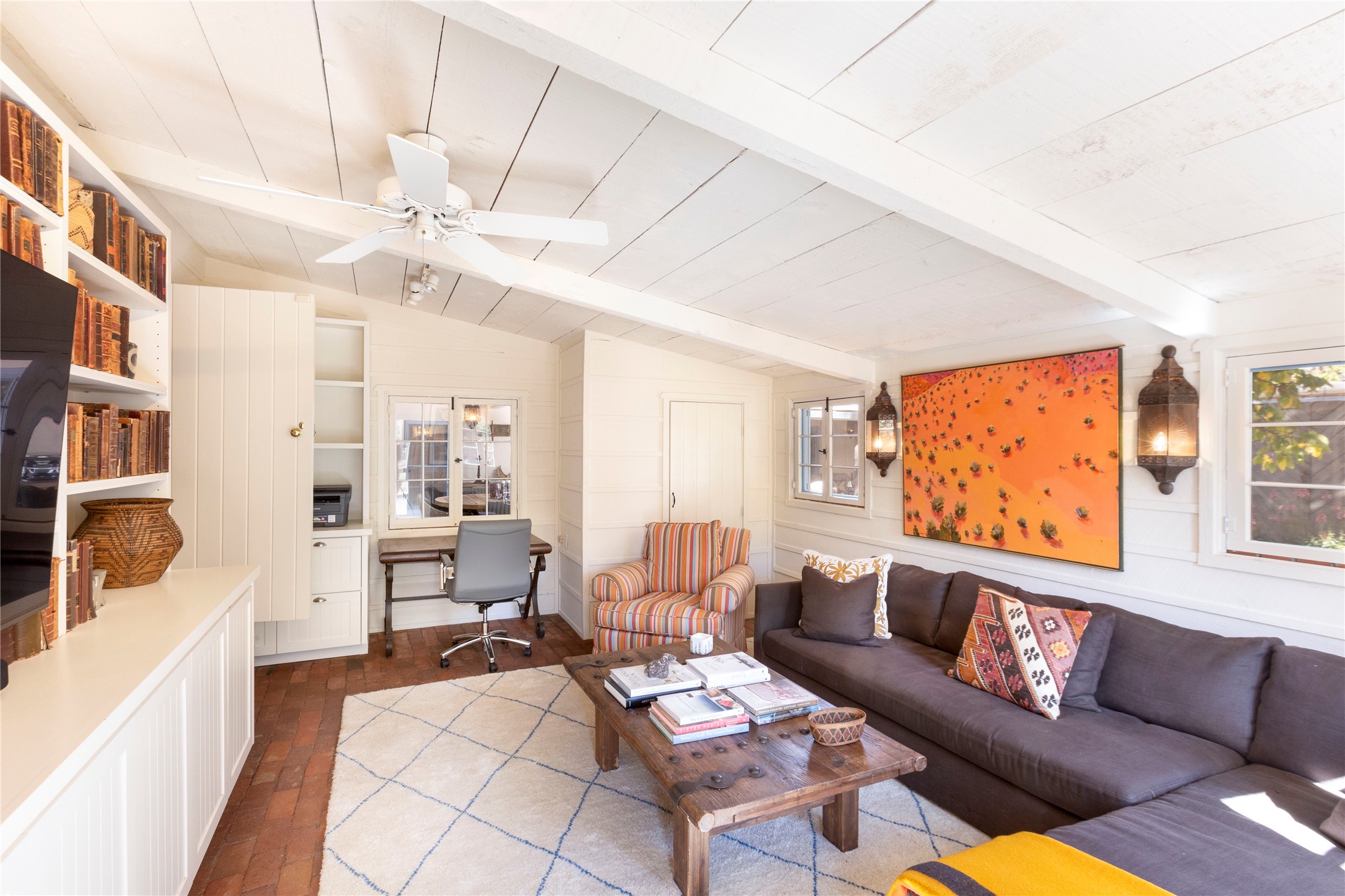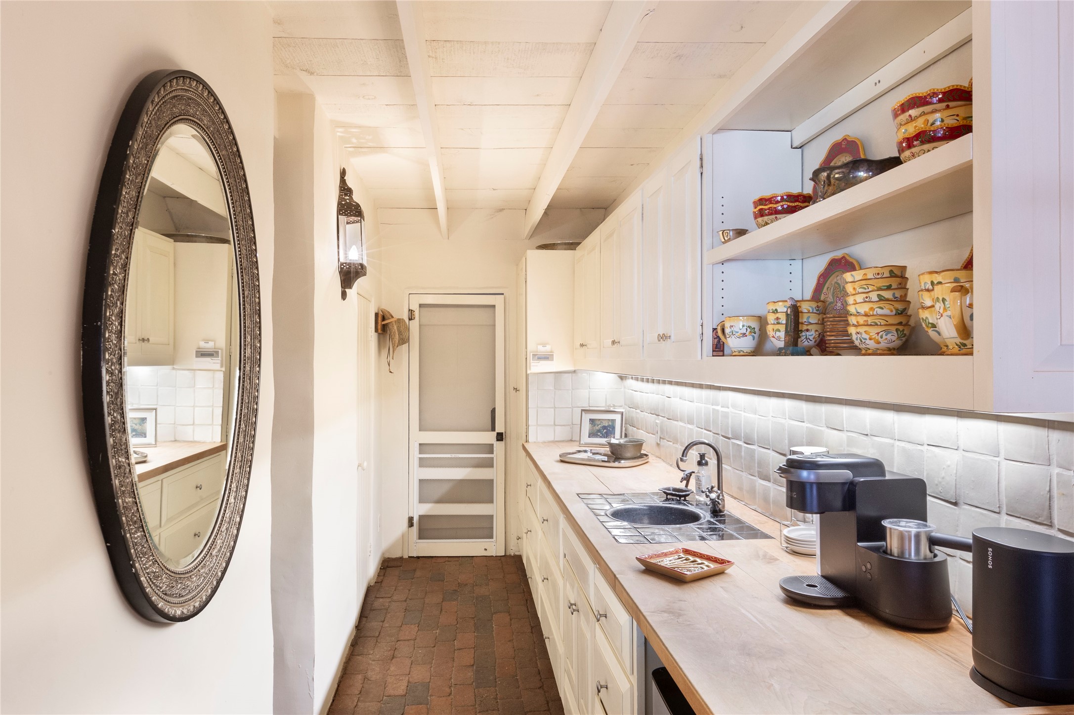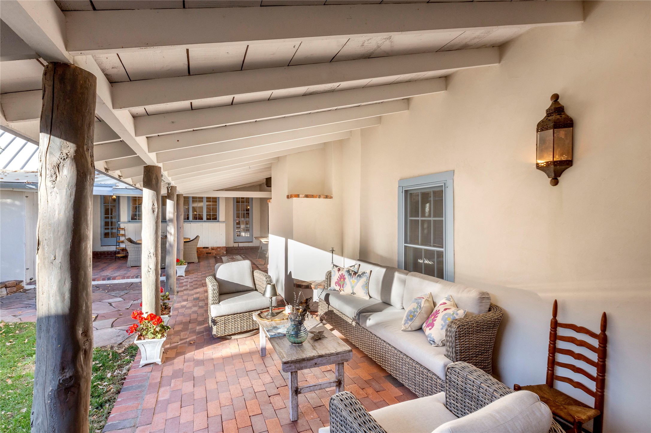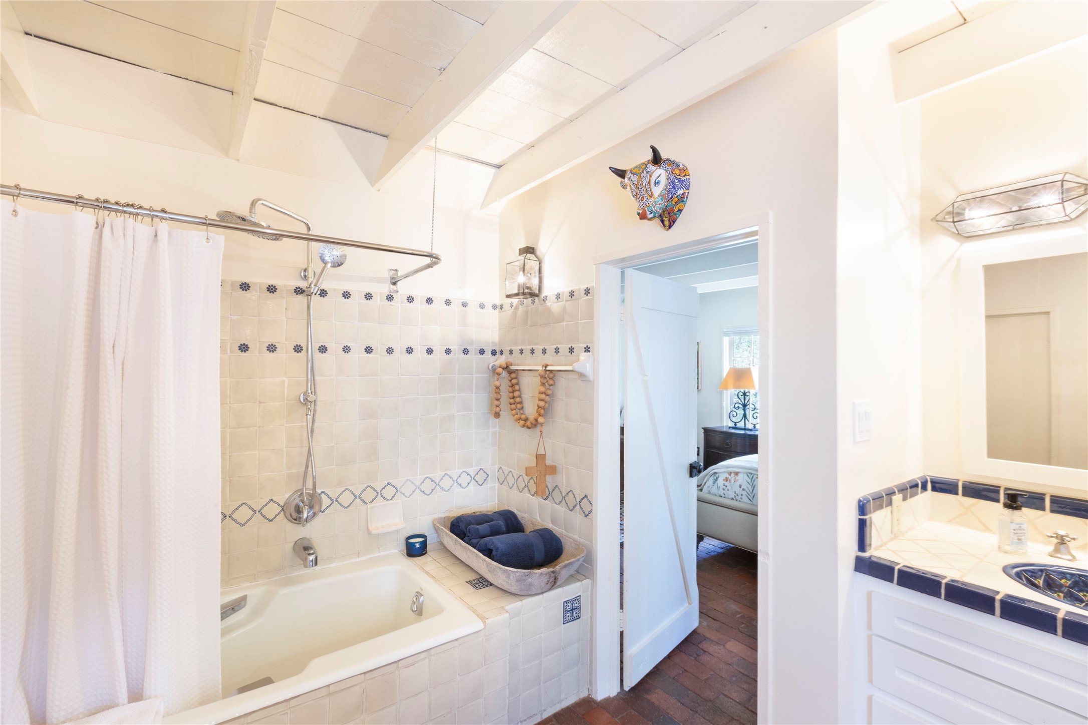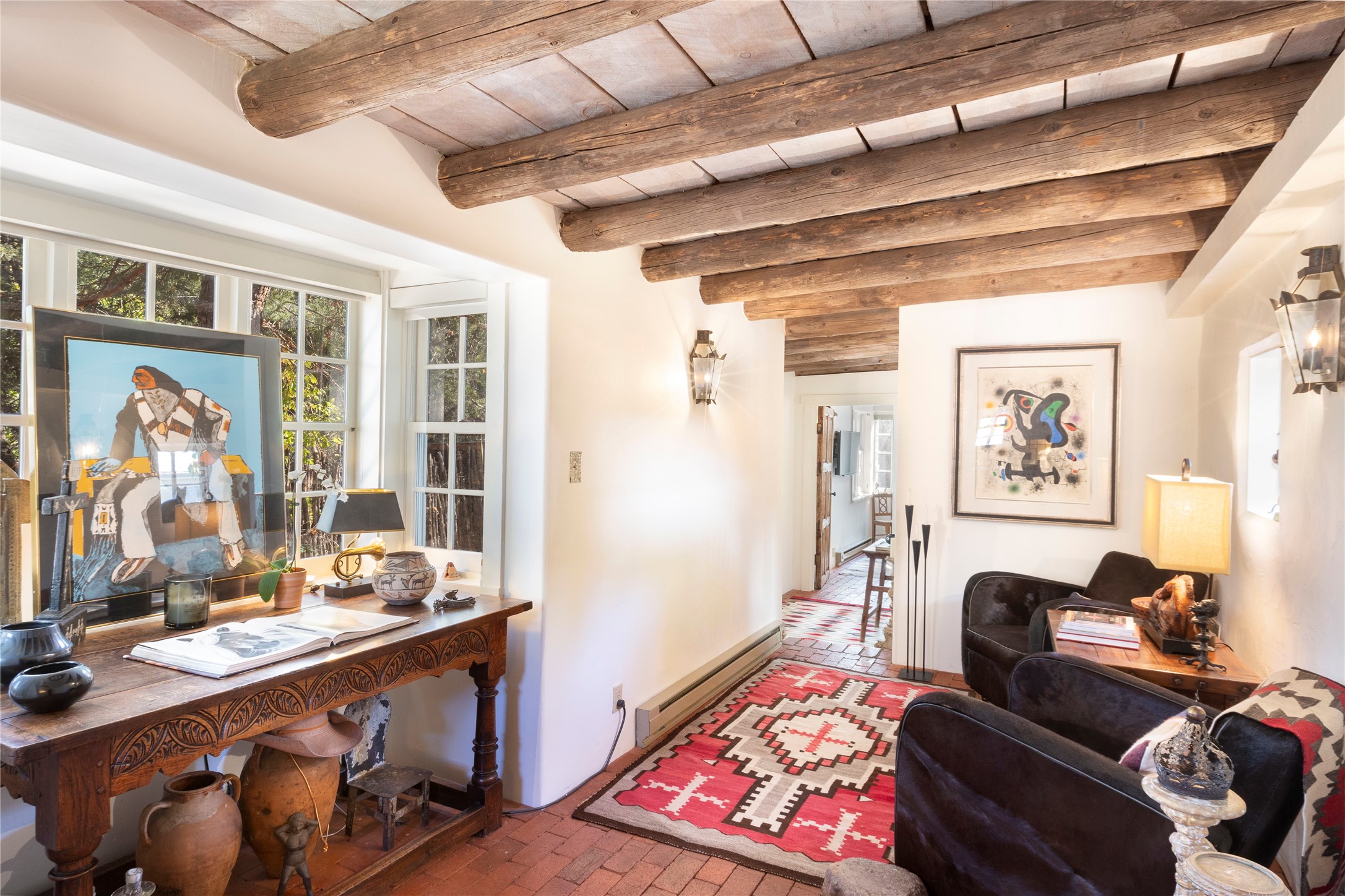 This was Betty Stewart's personal residence. Beyond charming, this house & guest house are surrounded by mature landscaped grounds. This one acre is entirely fenced and has an electric gated entrance. There are plenty of parking spaces for guests within the grounds. This house features all of the design elements that Betty is famous for i.e., deep front and back portals for outdoor entertaining. Adobe construction, plaster with sharp edges, deep set windows, specialty lighting, tumbled brick floors, 6 one-of-a-kind fireplaces and so much more. The intimate spaces have an unerring eye for the perfect room size. Never to be replicated, this home is an opportunity to live within a piece of art and local history.