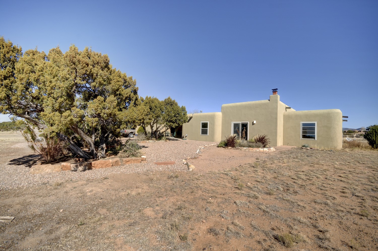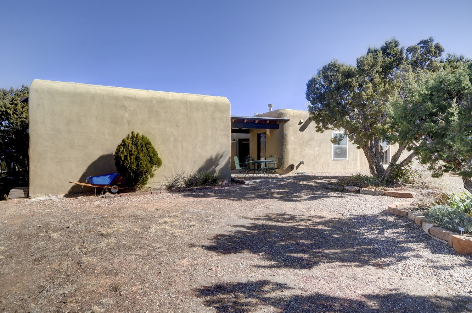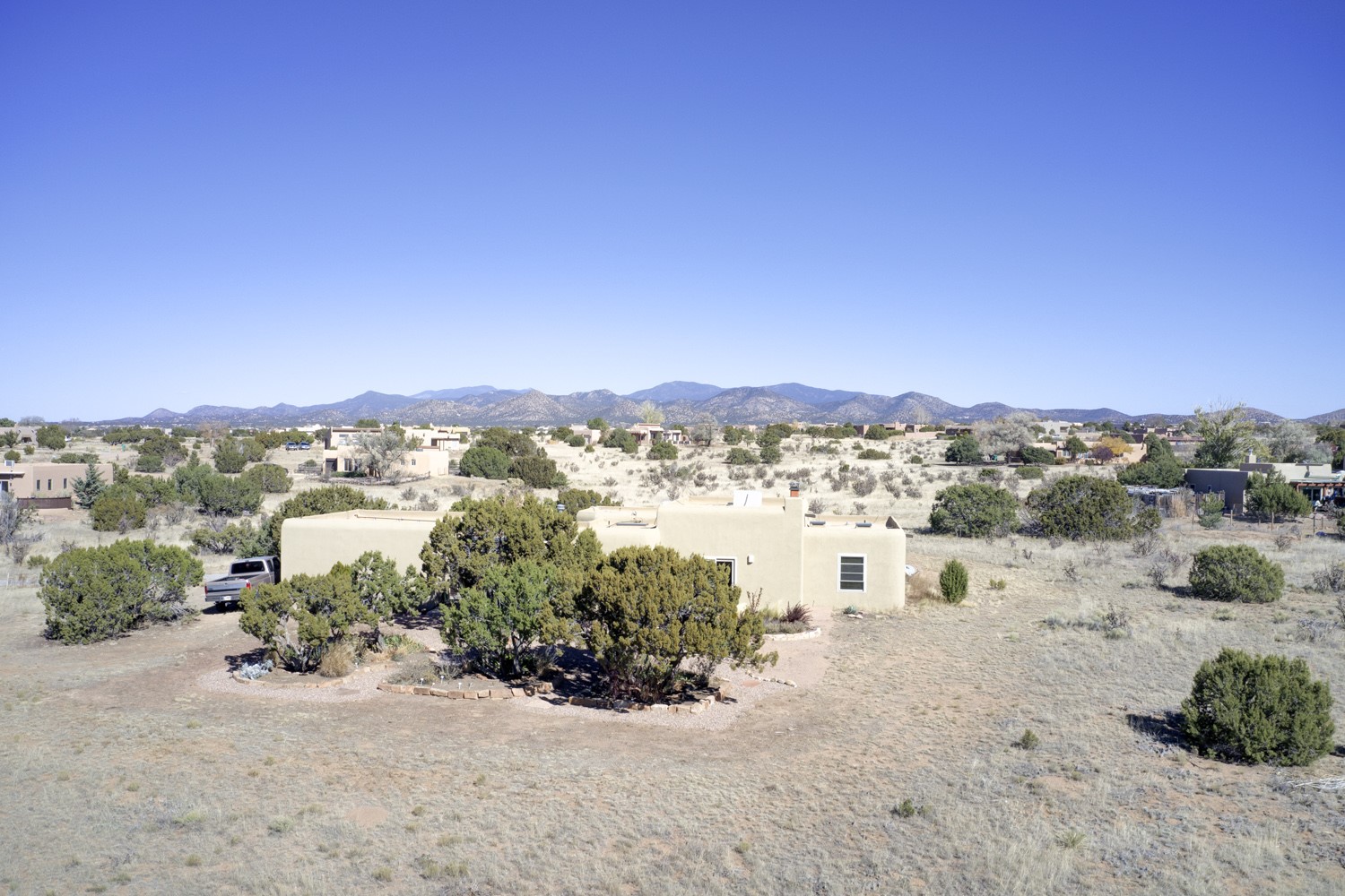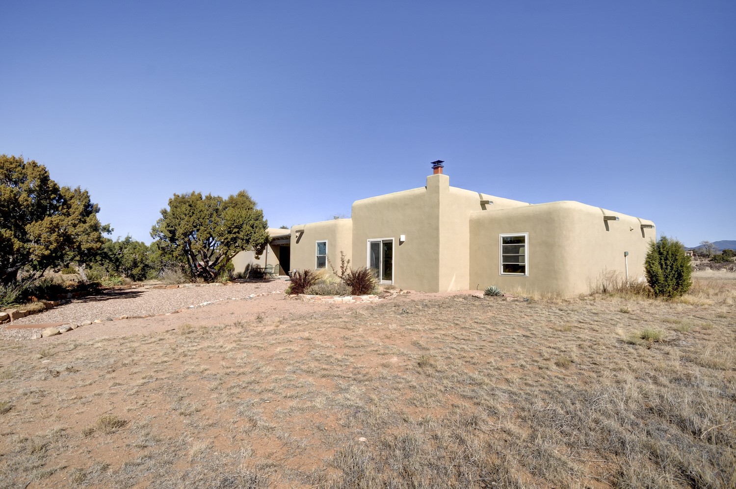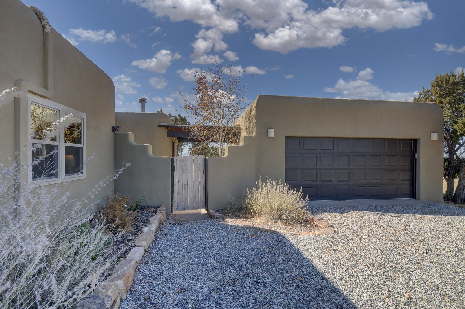 Immerse yourself in the enchanting beauty of Santa Fe with this 3-bedroom, 2-bathroom home. Contemporary Pueblo style boasts many architectural details! Tongue and Groove Viga Beam Ceilings, Hand-Carved Corbels and Saltillo tile floors capture the essence of Santa Fe living! Spacious Great Room offers a Plaster Kiva Fireplace/New Decorator Ceiling Fan! Fabulously Open Kitchen with painted white cabinetry/stainless steel gas range! Abundant Granite Counters with designer backsplash are ideal for the Chef and Ideal for Entertaining! The U-shaped kitchen has a huge breakfast bar large enough for 6-8 People! The Dining area and Kitchen flow into the Open Great Room! Split Bedroom design offers privacy! Inviting Owner's Suite with Patio access/Tile Flooring, and Spa Bath! The suite has a new Mini-Split! Separate jet tub/Tile shower with Pebble Stone Floor and Dual Sinks! Mini split in BR. Huge walk-in closet! Guest Bedrooms share a full bath with designer SW Tile! The detached oversized two-car finished garage offers space for your vehicles, toys, and a workshop area! A perfect combination of trees and meadows throughout the property. Over 100k in Recent Upgrades! The owner rebuilt the drive and cleared Cactus at significant expense! 20k+ Beautiful Landscaping on auto drip system. ur + in Extensive New Roof in 2020! Recent Windows! Upgraded Lighting! Make this property your sanctuary In New Mexico and Create Cherished Memories in one of the most captivating cities in the Southwest, Santa Fe! Move-in Ready, Ideal for 2nd home! The Home is being sold FULLY FURNISHED! Includes equipment and tools in the garage! El Dorado was Rated The Best Place to live in Santa Fe by Niche Magazine! HOA $570. year Covers Pool/Parks/Community Center and 4000 acre Nature Preserve! Endless Hiking Trails! Please go to the Community Website for more info: https://eldoradosf.org