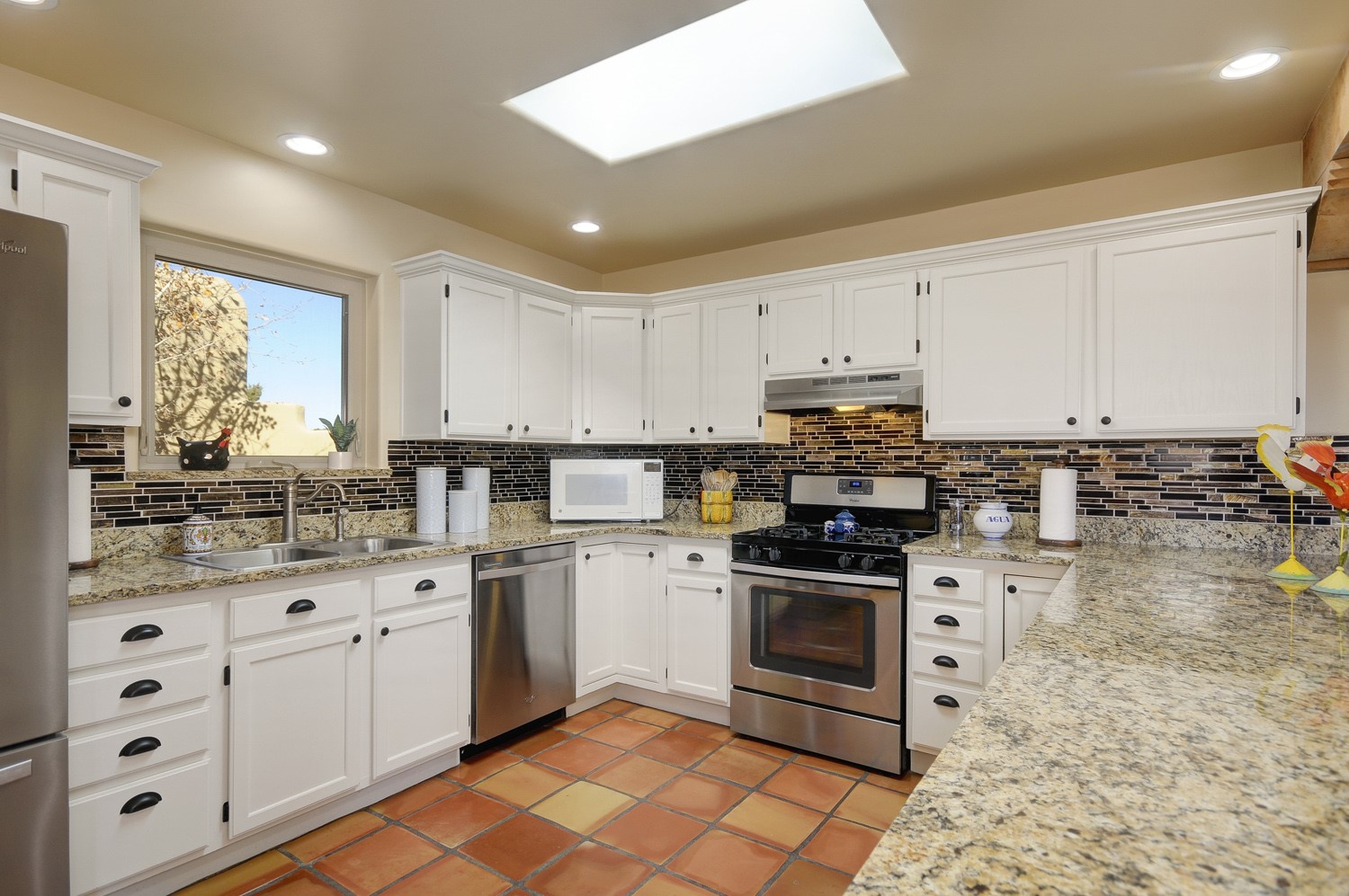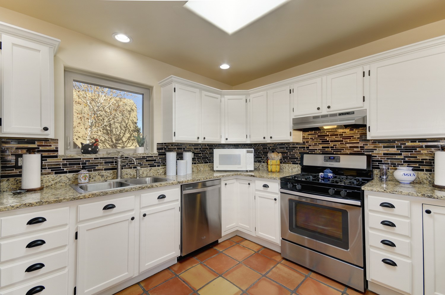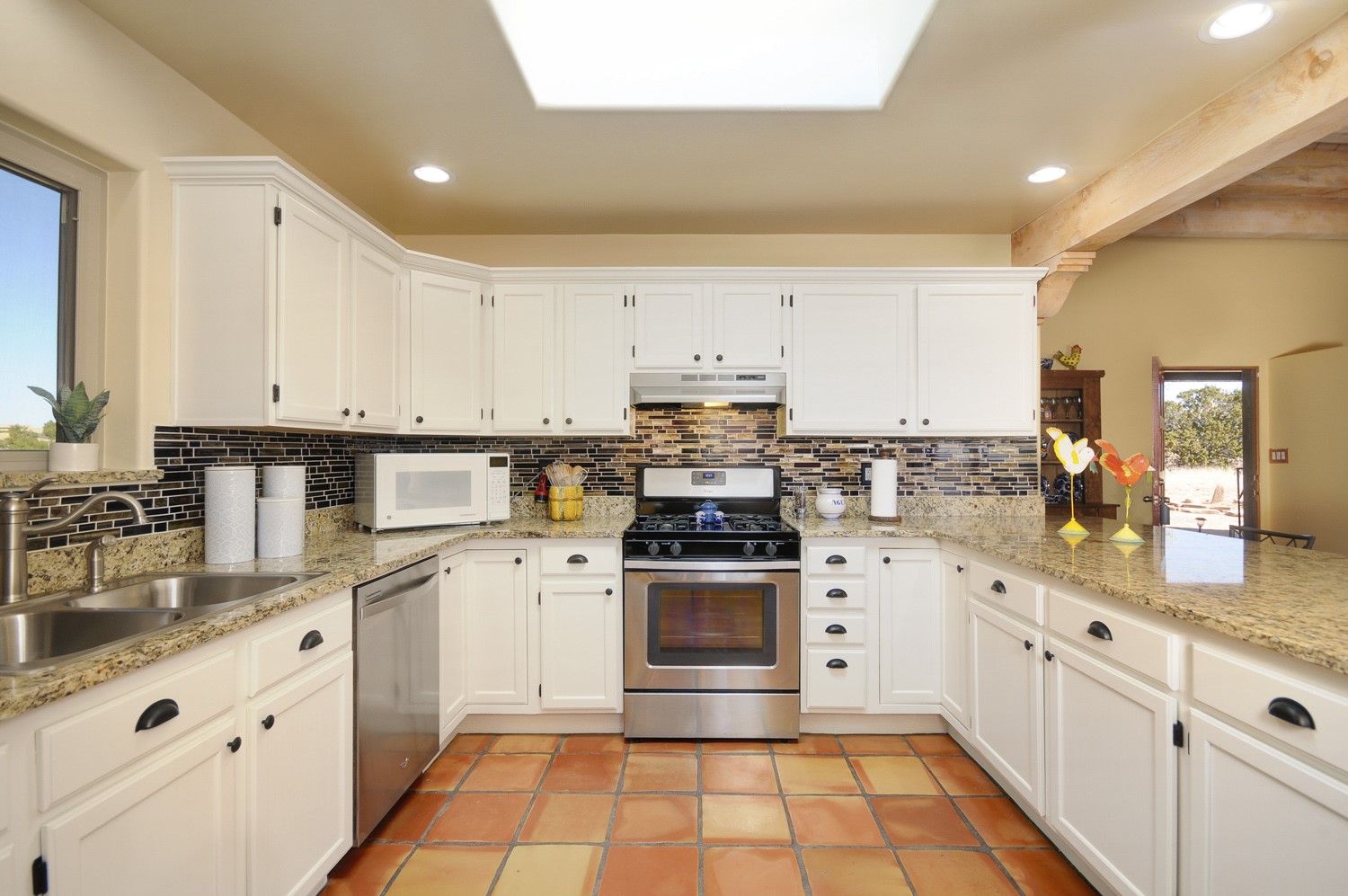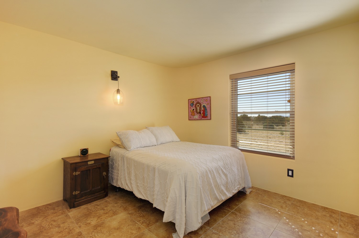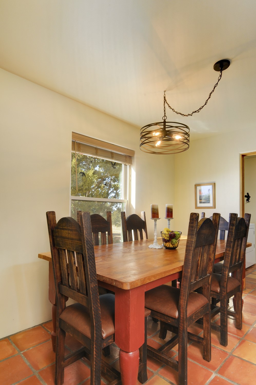 Immerse yourself in the enchanting beauty of Santa Fe with this 3-bedroom, 2-bathroom home. Contemporary Pueblo style boasts many architectural details! Tongue and Groove Viga Beam Ceilings, Hand-Carved Corbels and Saltillo tile floors capture the essence of Santa Fe living! Spacious Great Room offers a Plaster Kiva Fireplace/New Decorator Ceiling Fan! Fabulously Open Kitchen with painted white cabinetry/stainless steel gas range! Abundant Granite Counters with designer backsplash are ideal for the Chef and Ideal for Entertaining! The U-shaped kitchen has a huge breakfast bar large enough for 6-8 People! The Dining area and Kitchen flow into the Open Great Room! Split Bedroom design offers privacy! Inviting Owner's Suite with Patio access/Tile Flooring, and Spa Bath! The suite has a new Mini-Split! Separate jet tub/Tile shower with Pebble Stone Floor and Dual Sinks! Mini split in BR. Huge walk-in closet! Guest Bedrooms share a full bath with designer SW Tile! The detached oversized two-car finished garage offers space for your vehicles, toys, and a workshop area! A perfect combination of trees and meadows throughout the property. Over 100k in Recent Upgrades! The owner rebuilt the drive and cleared Cactus at significant expense! 20k+ Beautiful Landscaping on auto drip system. ur + in Extensive New Roof in 2020! Recent Windows! Upgraded Lighting! Make this property your sanctuary In New Mexico and Create Cherished Memories in one of the most captivating cities in the Southwest, Santa Fe! Move-in Ready, Ideal for 2nd home! The Home is being sold FULLY FURNISHED! Includes equipment and tools in the garage! El Dorado was Rated The Best Place to live in Santa Fe by Niche Magazine! HOA $570. year Covers Pool/Parks/Community Center and 4000 acre Nature Preserve! Endless Hiking Trails! Please go to the Community Website for more info: https://eldoradosf.org