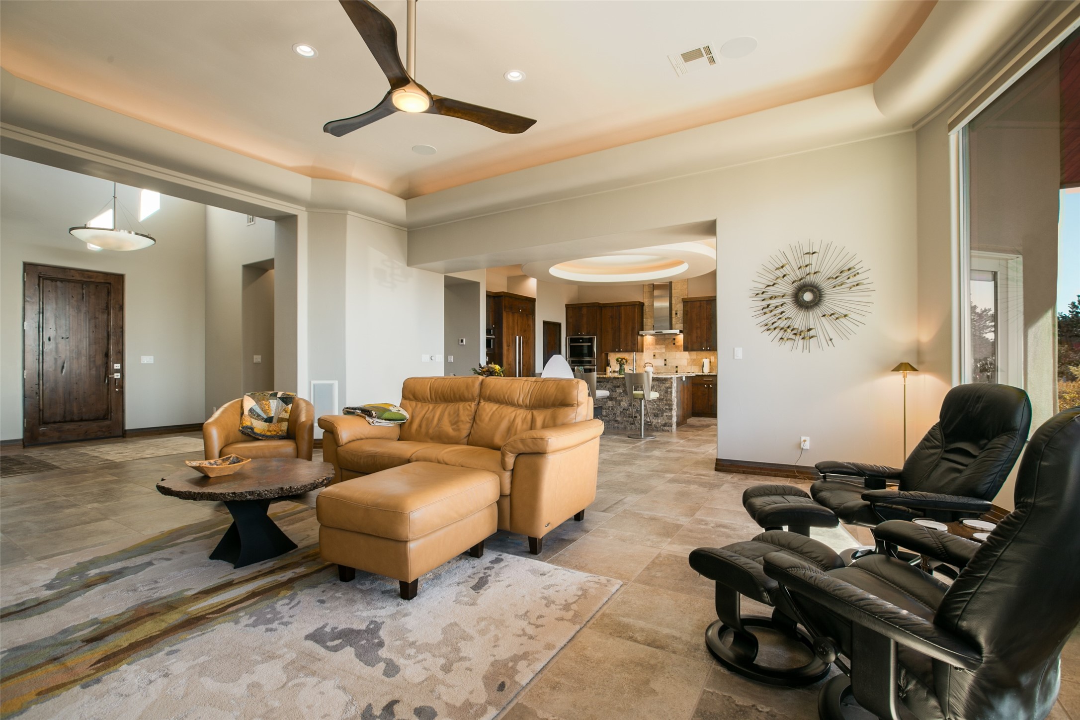 This magnificent property offers a contemporary design with a touch of southwest flair. From the moment you step inside, you'll be captivated by the abundance of natural light and the breathtaking views that stretch for miles and miles. With 5 bedrooms, 2 featuring an en-suite bathrooms and walk-in closets, this home provides the ultimate comfort and convenience. Primary suite is a true oasis, complete his and her walk-in closets . The energy efficient features ensure that your home is not only beautiful, but also energy efficient with silver rating! The kitchen is a chef's dream, with custom cabinets, pull-outs, and granite countertops. Outside, you'll find a beautiful backyard oasis! Plus, you'll have access to the community pool and club, offering endless entertainment options!