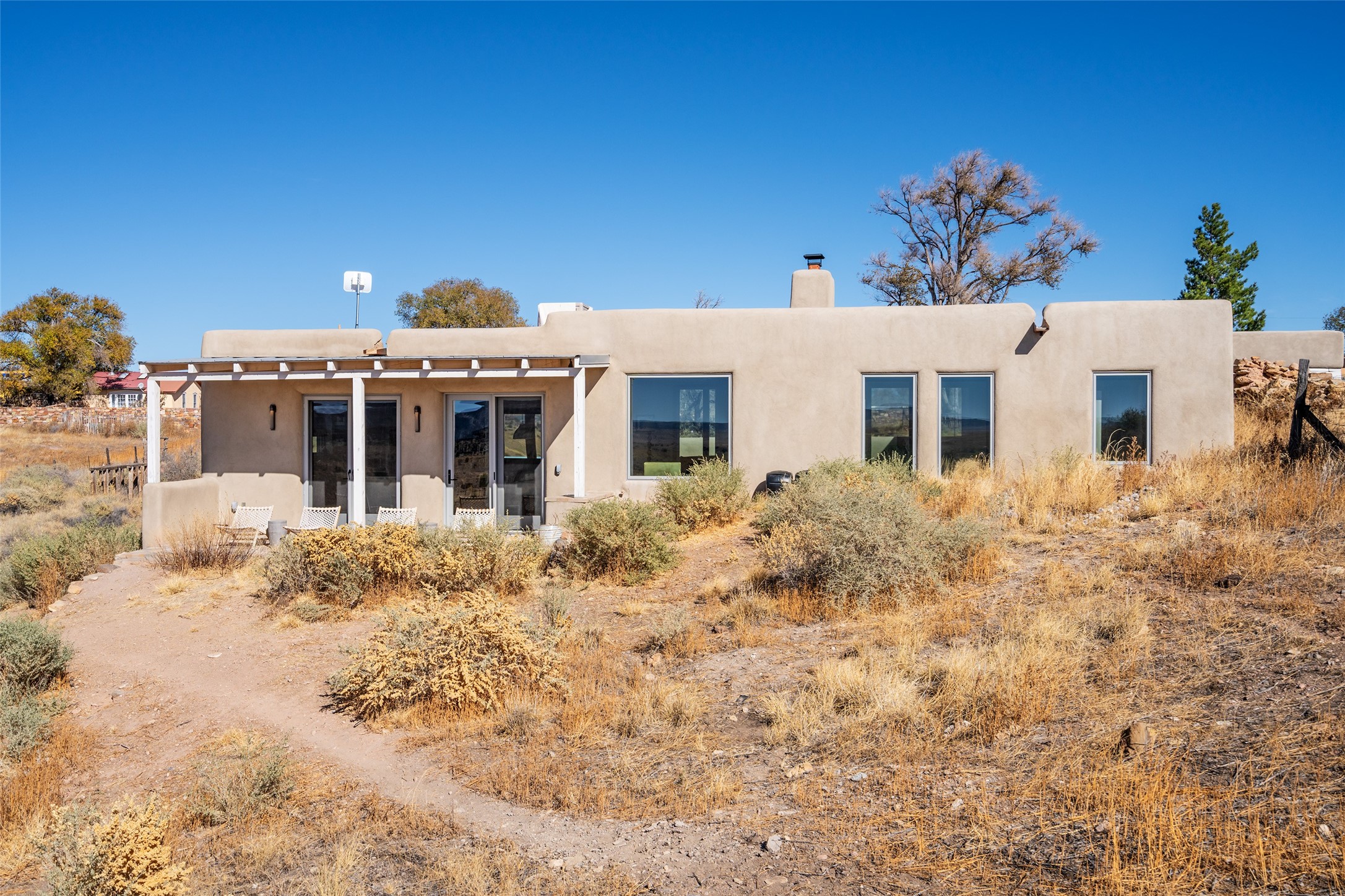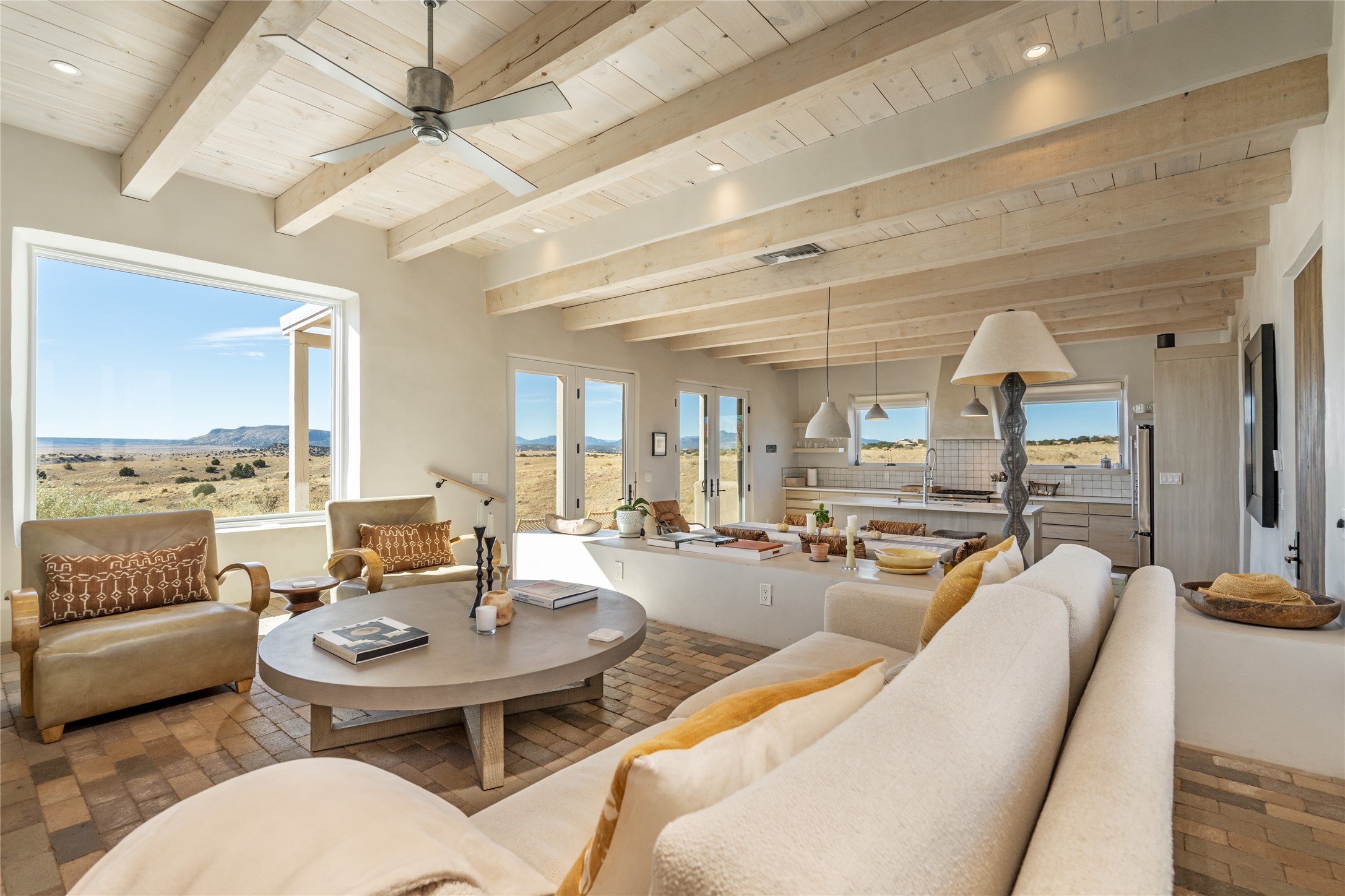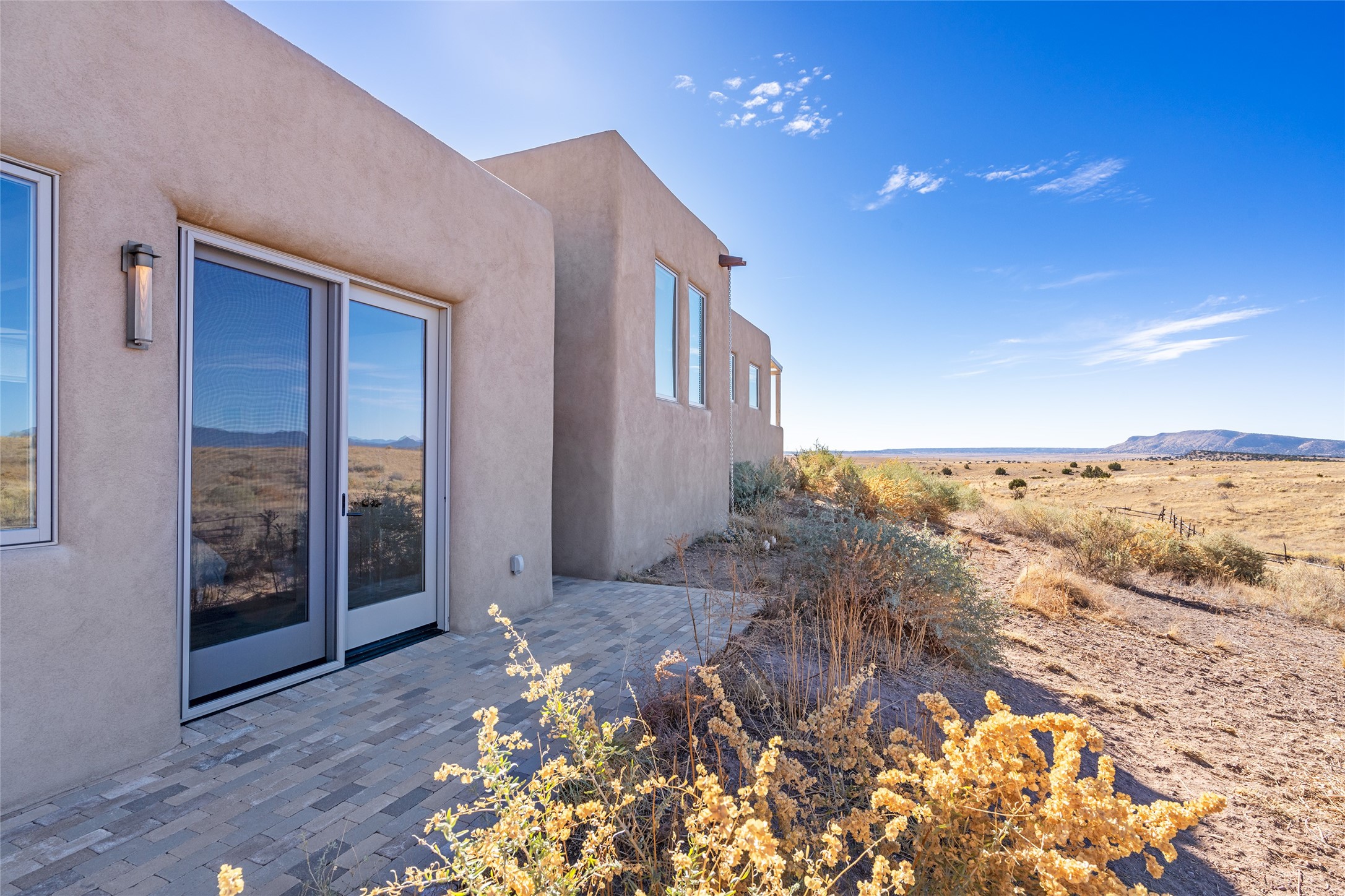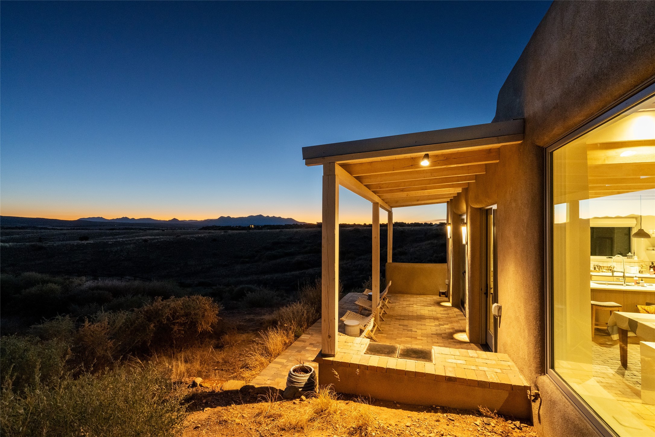 Spectacular adobe home and casita by custom builder Andrew Geer created from handmade adobe bricks in the historic village of Galisteo, offering luxurious living and majestic views overlooking the beautiful Cerro Pelon Ranch.Entertainers and chefs will adore the kitchen with Energy Star appliances, a Wolf dual fuel range oven, and incredible views for doing dishes. The home's large windows allow the outdoors in, creating a spacious feeling in the dining and main living areas in this open floor plan 2 bed, 2 bath main home. The contemporary design features modern amenities including an energy efficient HERS Index of 55, radiant heating, and satellite internet with whole house wi-fi, combined with old world accents such as brick floors and beam ceilings, with a sleek fireplace and intimate ambiance.Nature lovers will prize the abundant natural light from walls full of glass doors and picture windows, as well as a private courtyard and open back patio gazing across the epic landscape and dazzling skies. Artists, remote workers, and guests will love the adobe studio casita with office/flex nook and bath.This special property is a unique blend of past and present, an alluring oasis a world away yet within arms reach of the vibrance and culture of downtown Santa Fe.Experience its splendor today.